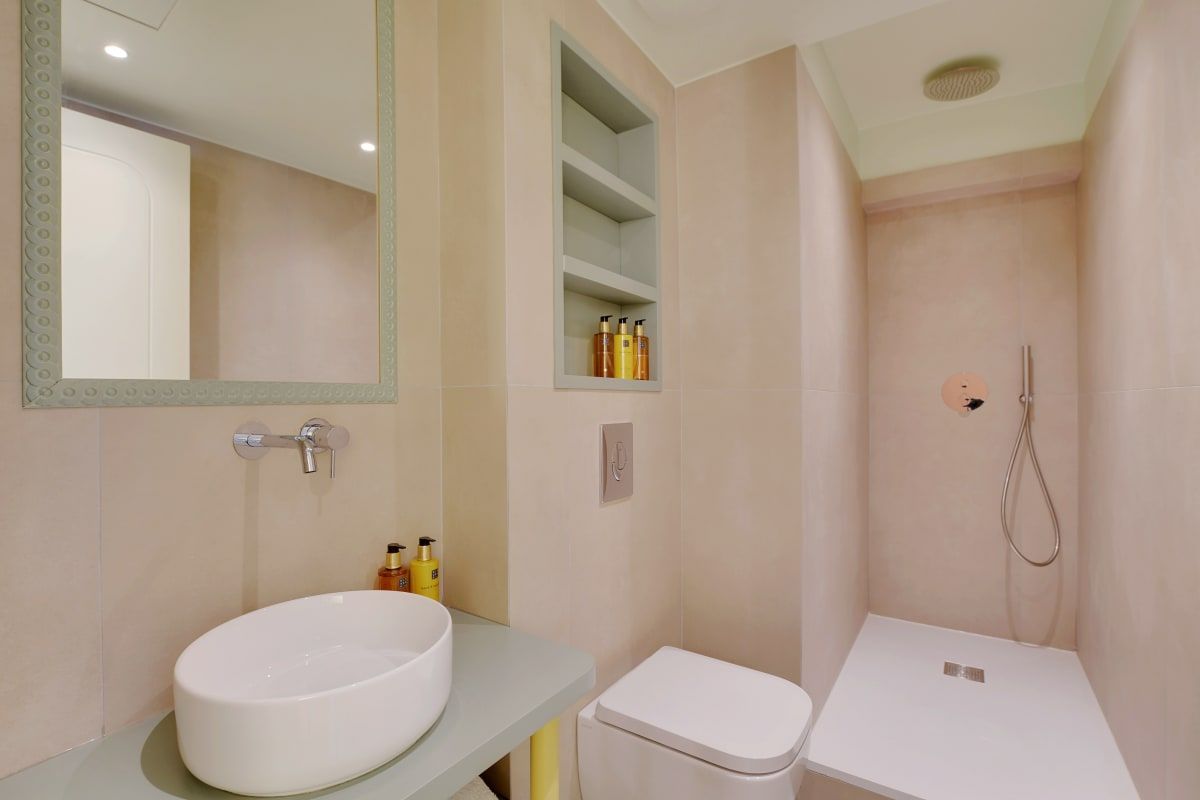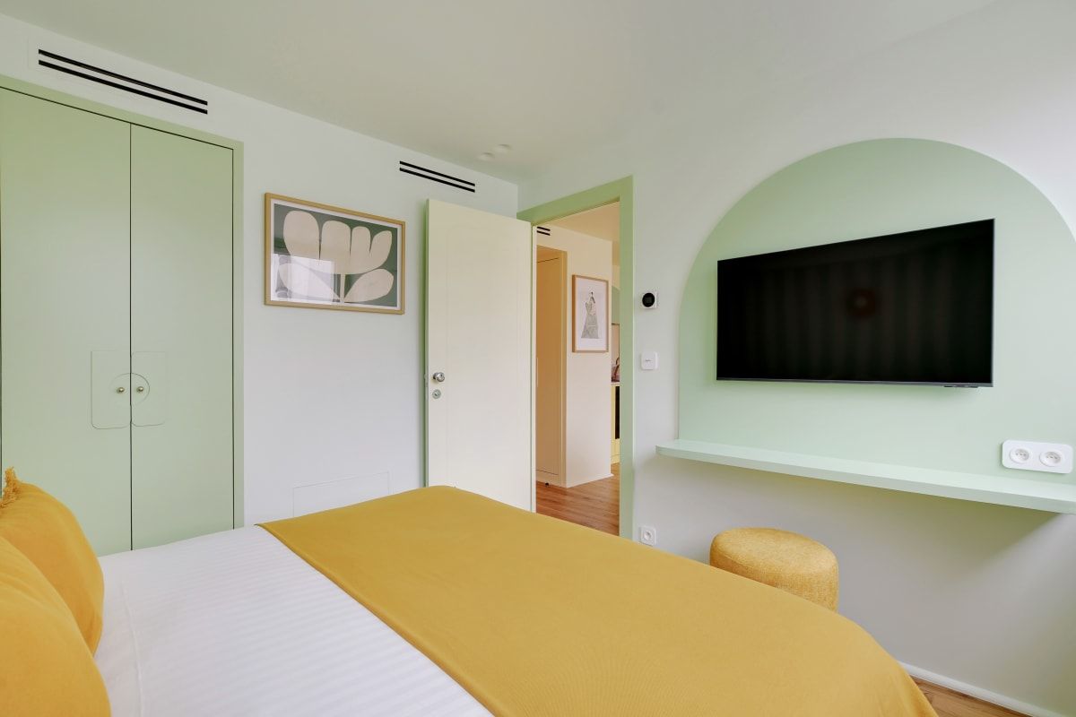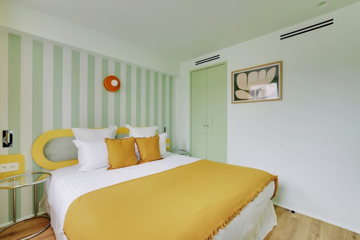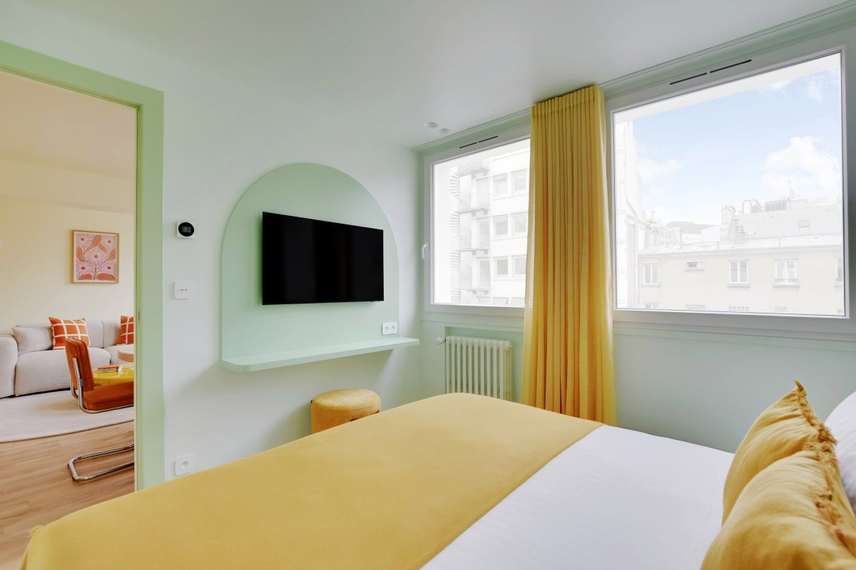 For a colourful base in Paris, this apartment is an excellent choice. It’s conveniently located just off the Champs-Élysées, close to the Arc de Triomphe and Jardin des Tuileries, right in the thick of the action. From here, you can explore all of Paris on foot or by using the Metro. The apartment has a retro feel, thanks to the colourful decor – it’s candy-coloured and cute. The open-plan living, dining, and kitchen space has a sofa bed for two guests– it’s not the most private option, but we think it works for a city break. The daily maid service helps to keep things tidy.