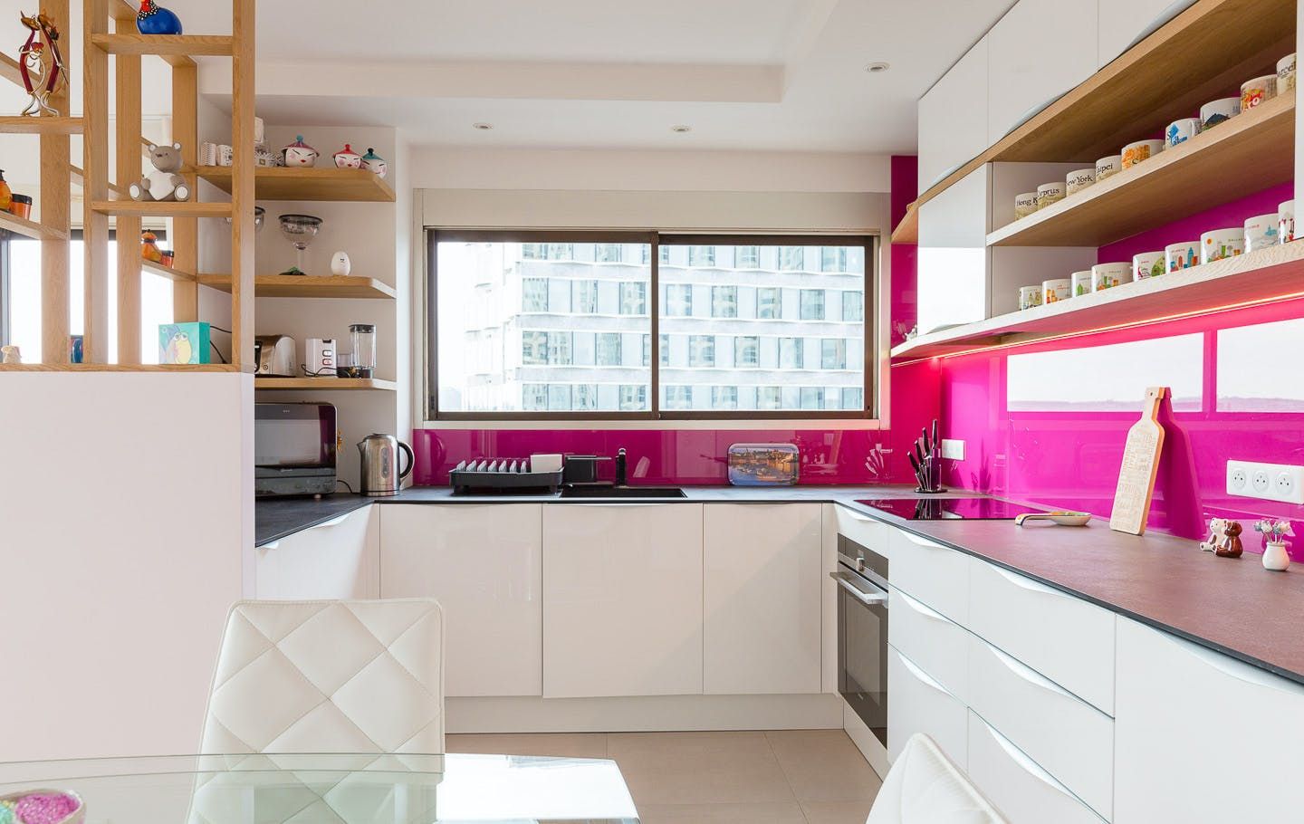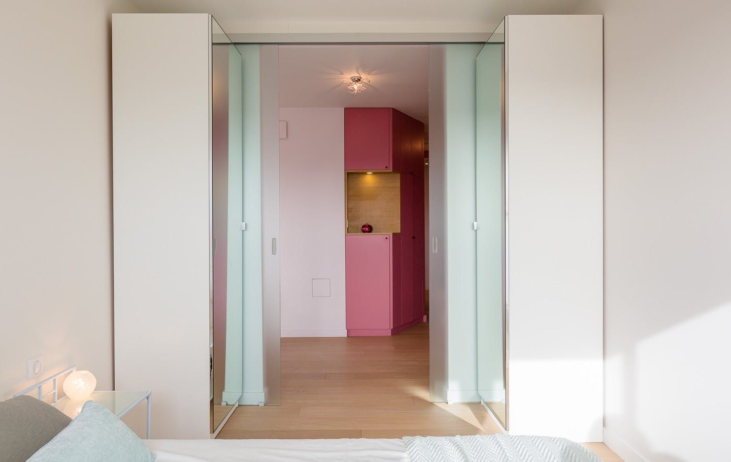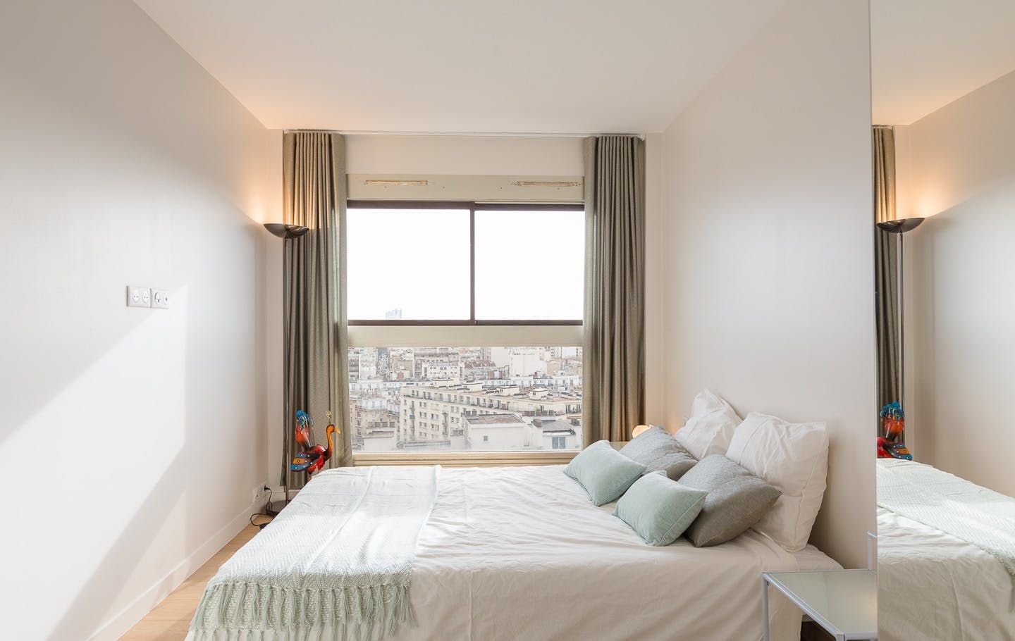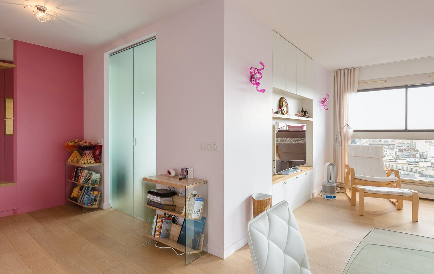 If pink is your favourite colour, you're in for a treat. This high-floor apartment in the heart of the 15th arrondissement is modern, smart and decorated in a mix of cool whites and hot pinks. From the moment you walk in the door, you're greeted with a cheerful hallway full of bespoke storage (in pink, of course) and a big mirror to check your outfit before a big night out. But it's far from this home's only selling point. Move through into the open-plan living and kitchen space and you'll be struck by the floor-to-ceiling windows giving unparalleled views across the rooftops of Paris. Minimalist and neat, it's an easy place to feel right at home in, whether it's cooking in the contemporary kitchen, eating together at the glass dining table or lounging with a cup of coffee on the sofa – all the while gazing across this most fabulous of cities. With spacious bedrooms, each with its own impressive views from bed, and each with a dedicated bathroom, it's a great choice if you want to make the most of Paris.