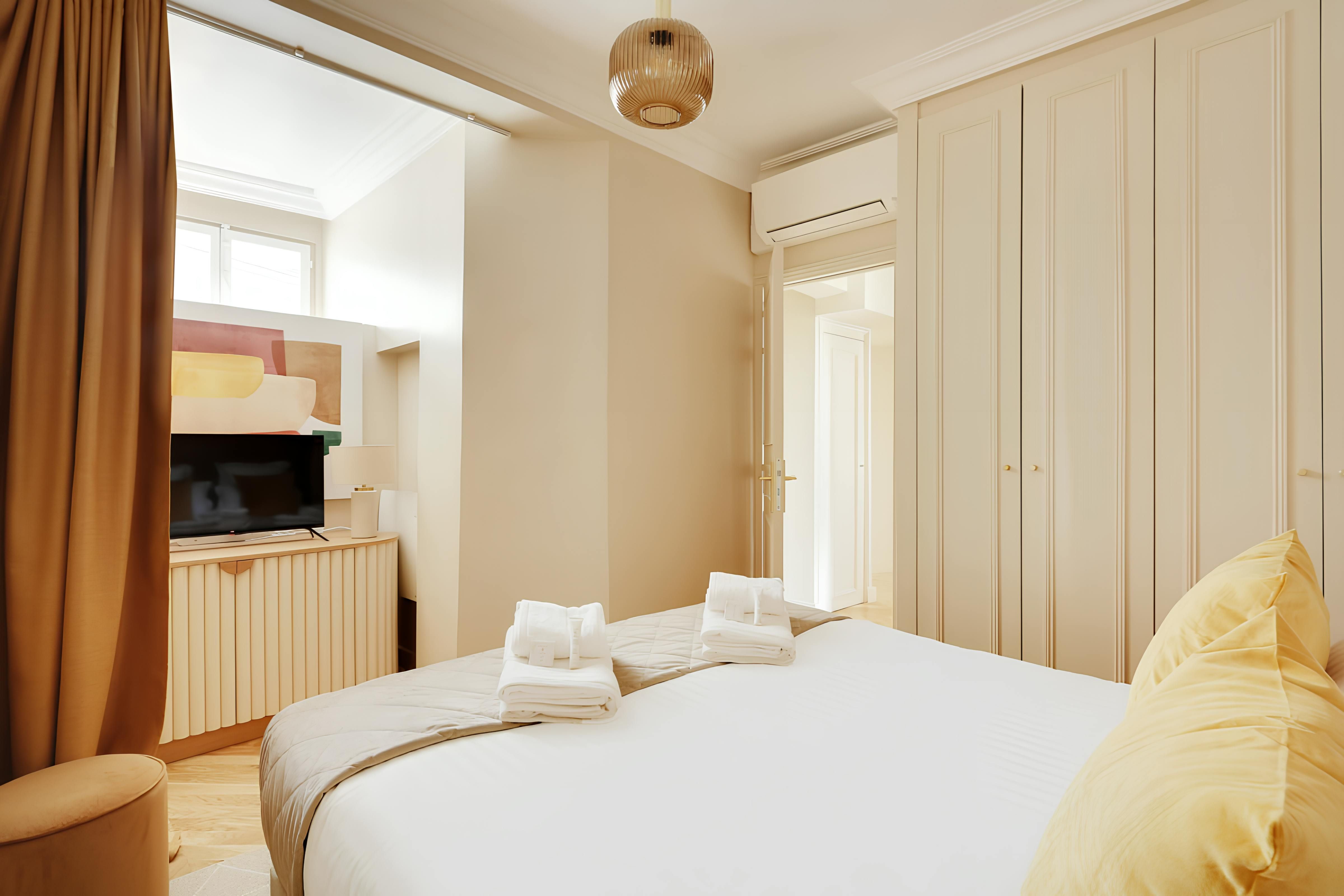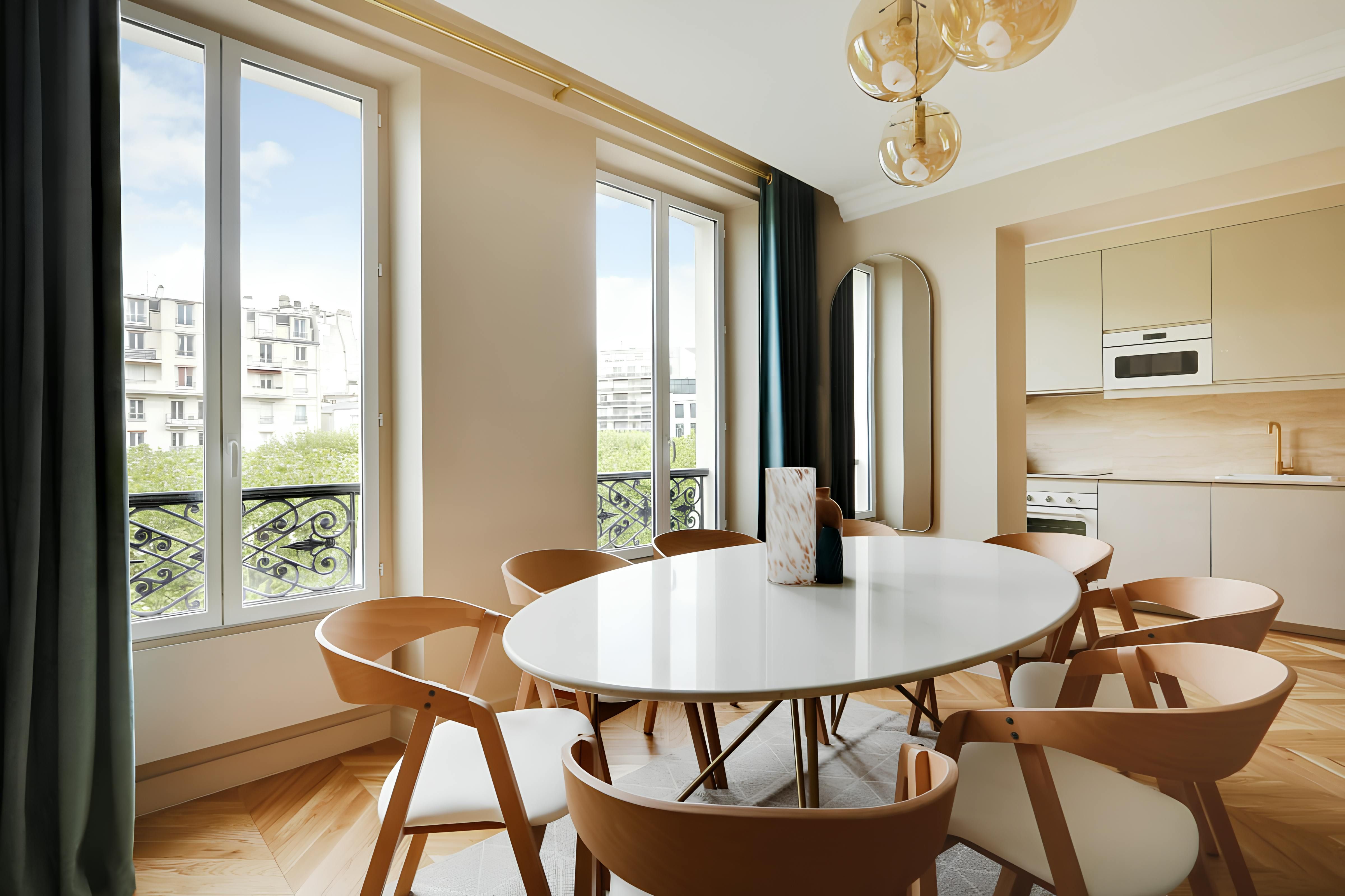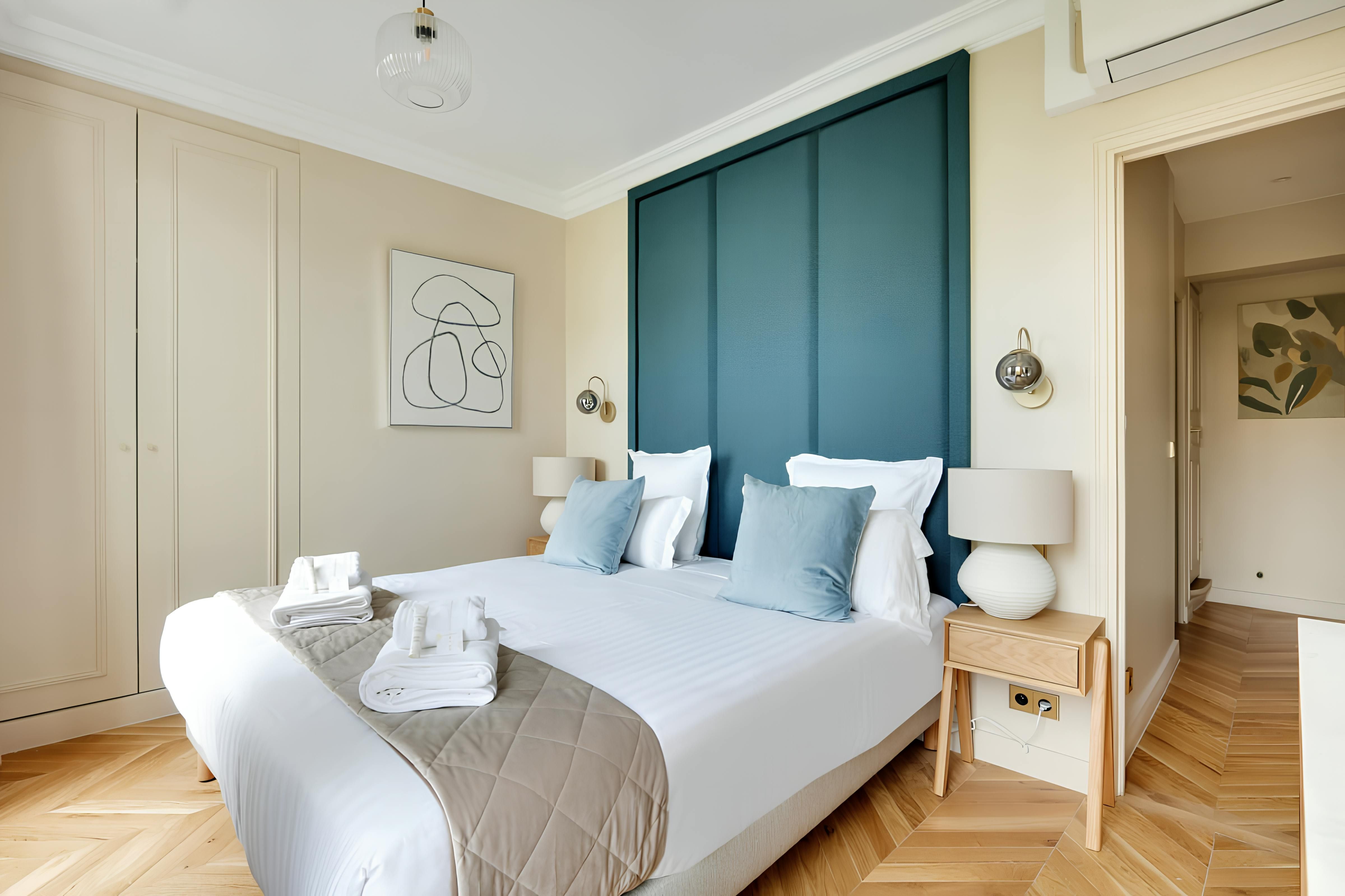 Located on the Left Bank, this apartment is within walking distance of the Hôtel des Invalides, with its museums and monuments. Other places of interest accessible on foot include the Eiffel Tower and the elegant Bon Marché, Paris's oldest department store. This area also has some grand architecture, and you don’t have to go anywhere to admire it – the French doors here offer great views. We love that the living and dining room is bathed in natural light. It’s also worth mentioning that if you’re a group of eight, two people will be sleeping here on a sofa bed. This apartment is a sound choice for friends and familes.