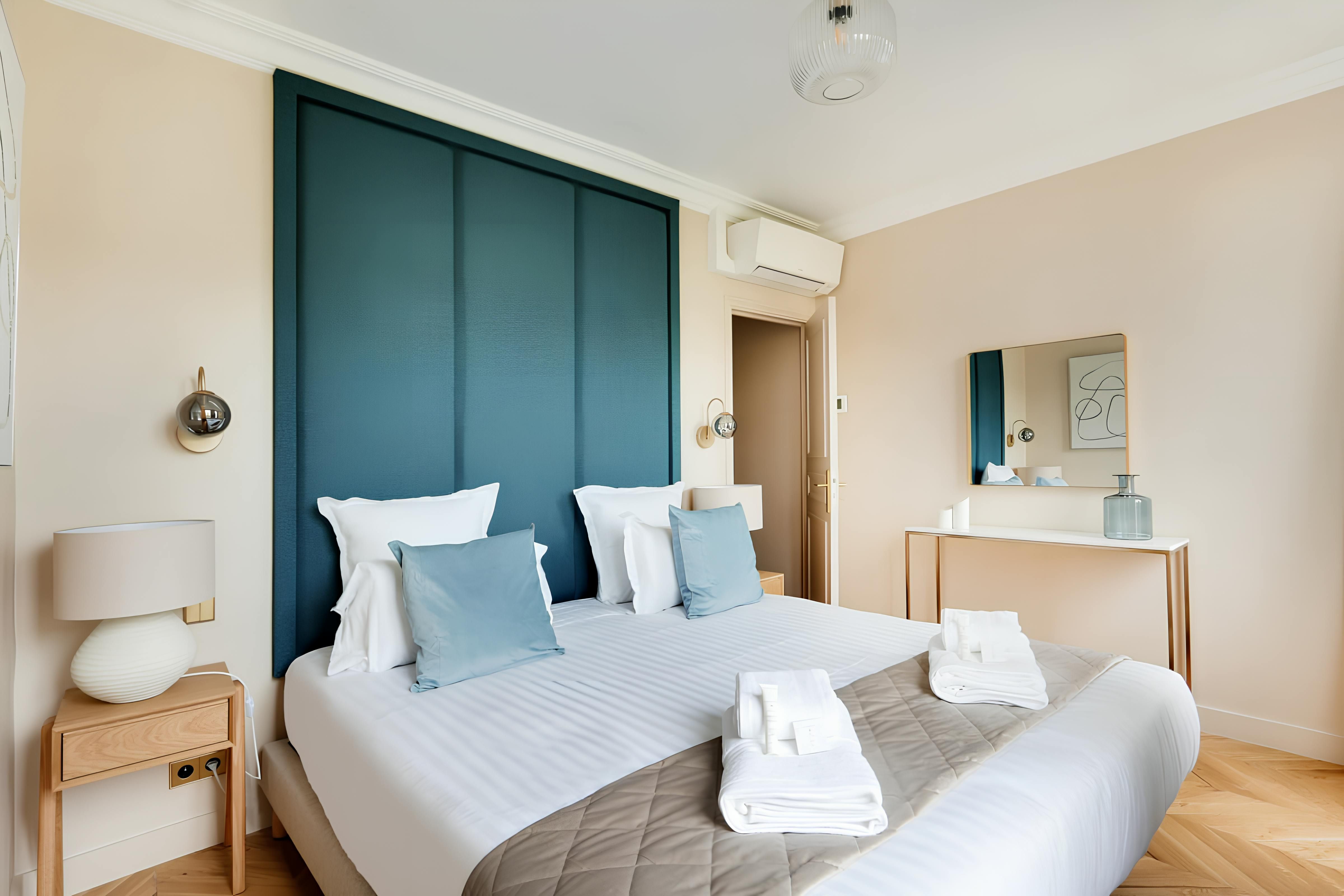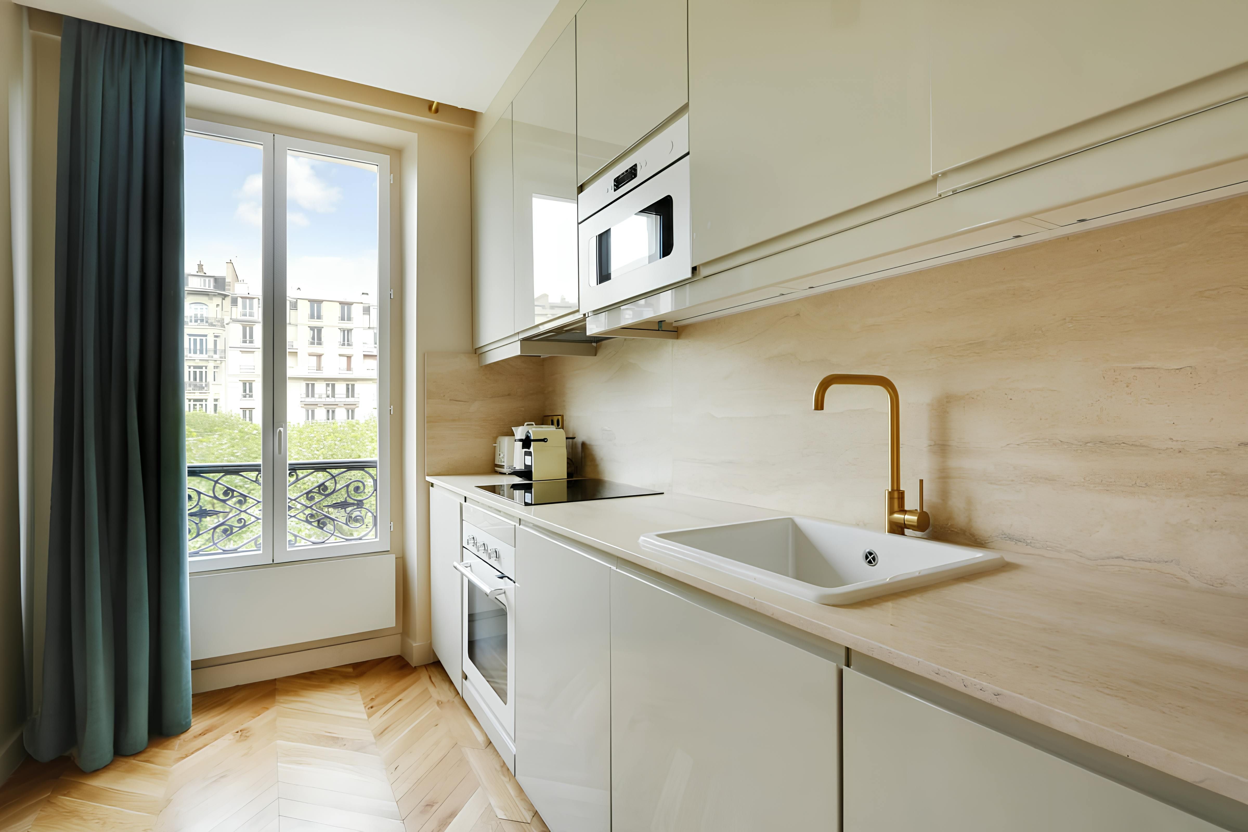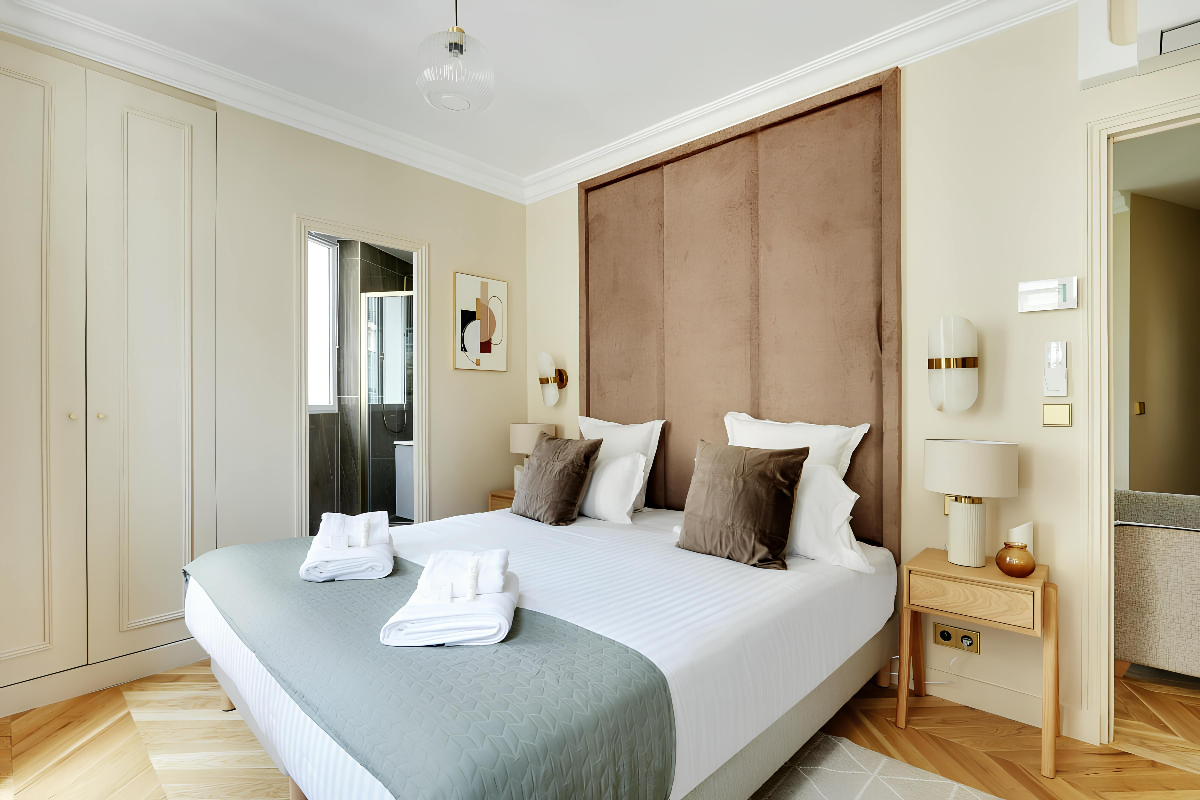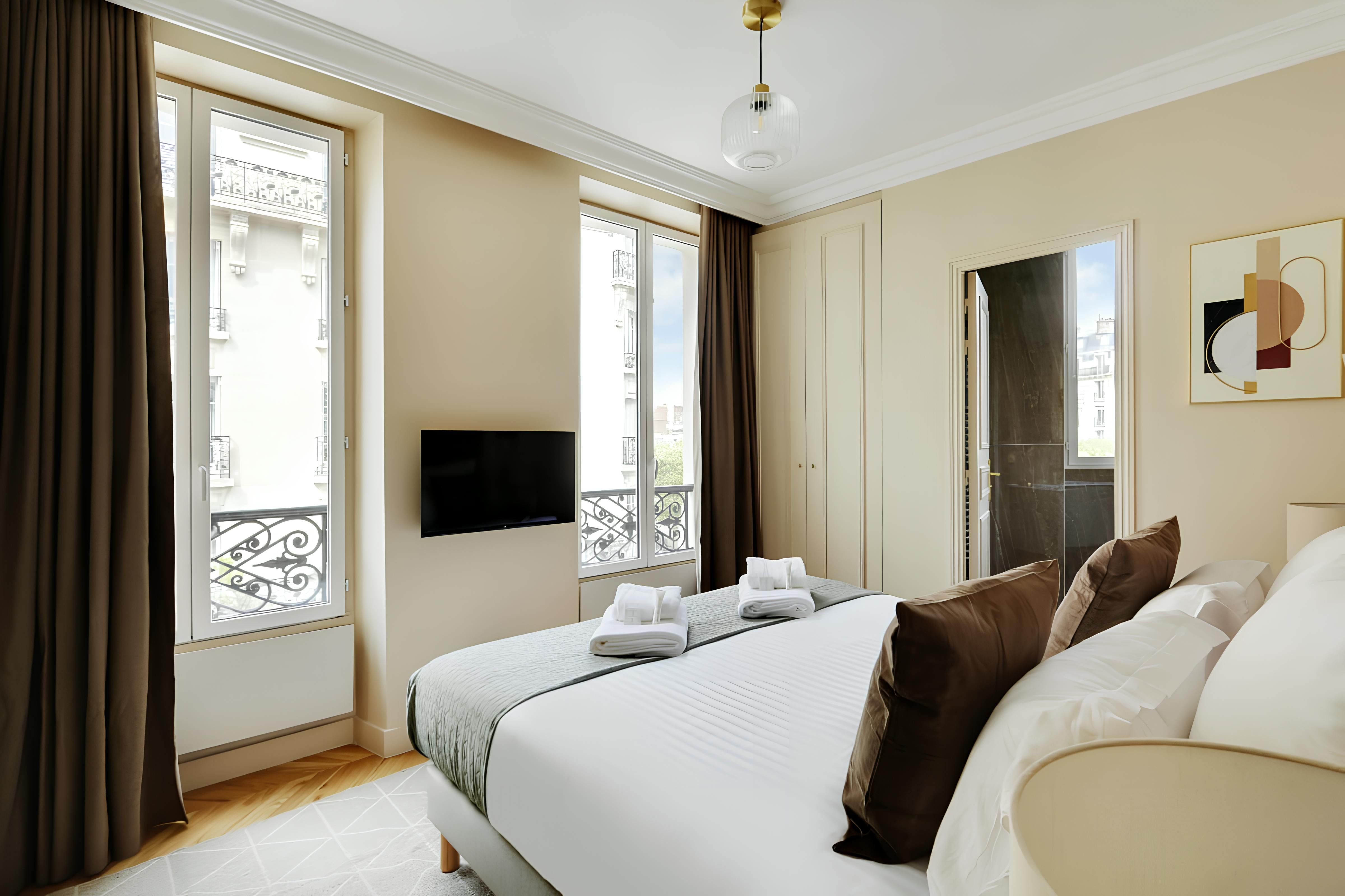 Located on the Left Bank, this apartment is within walking distance of the Hôtel des Invalides, with its museums and monuments. Other places of interest accessible on foot include the Eiffel Tower and the elegant Bon Marché, Paris's oldest department store. This area also has some grand architecture, and you don’t have to go anywhere to admire it – the French doors here offer great views. We love that the living and dining room is bathed in natural light. It’s also worth mentioning that if you’re a group of eight, two people will be sleeping here on a sofa bed. This apartment is a sound choice for friends and familes.