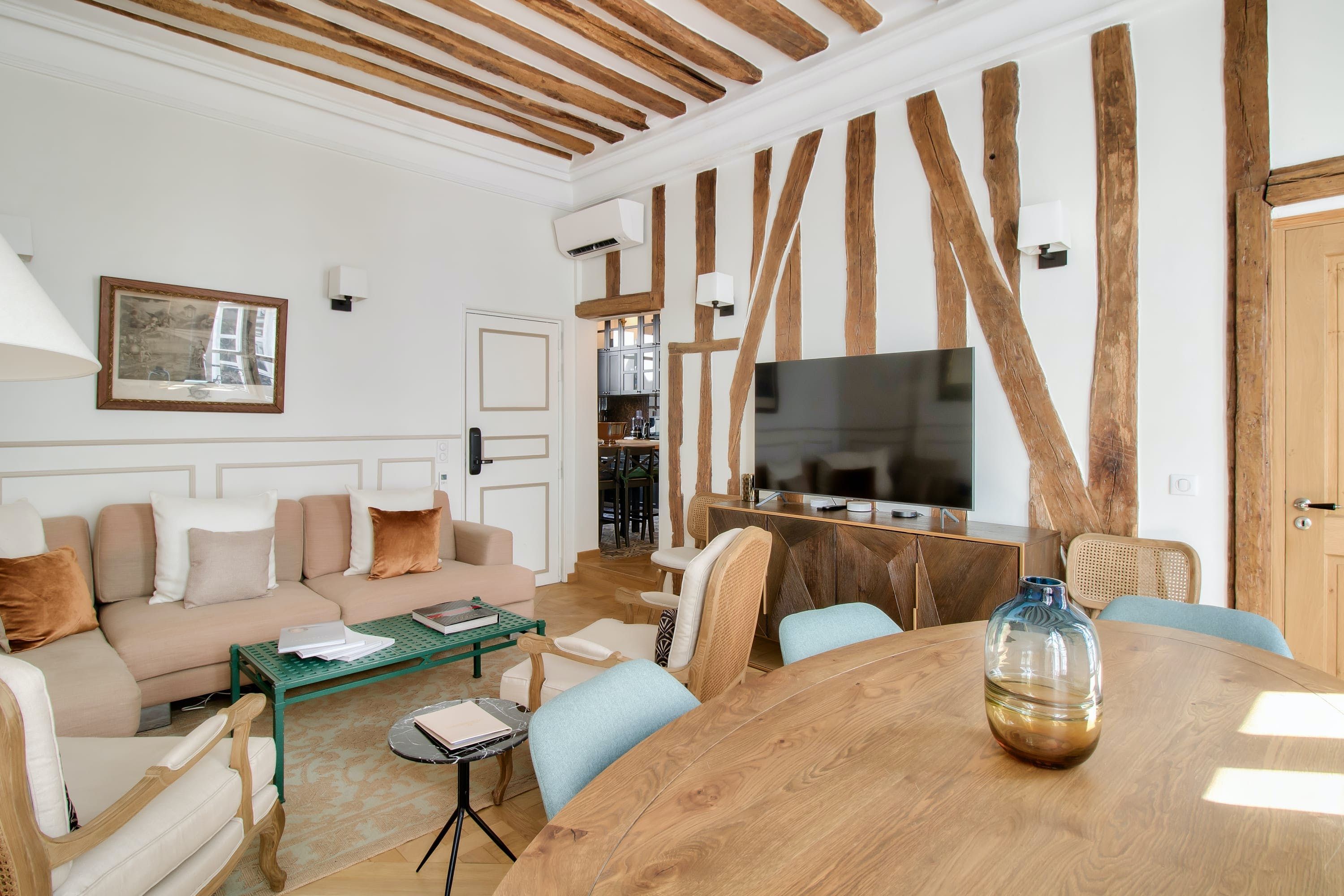 This 18th-century apartment set in the 2nd arrondissement is ticking all our boxes with its Juliet balcony windows and Rocaille-style antiques. Each of the three bedrooms is as expertly styled as the next, although if we were being picky, they feel a little short on floor space. But for such an unbeatable central location, we can forgive that. Call in on Mona Lisa at the Louvre Museum. Take a turn around the gardens of the Palais Royal. Or soak up the splendour of Notre Dame. It’s all within easy walking distance in the Montorgueil district.