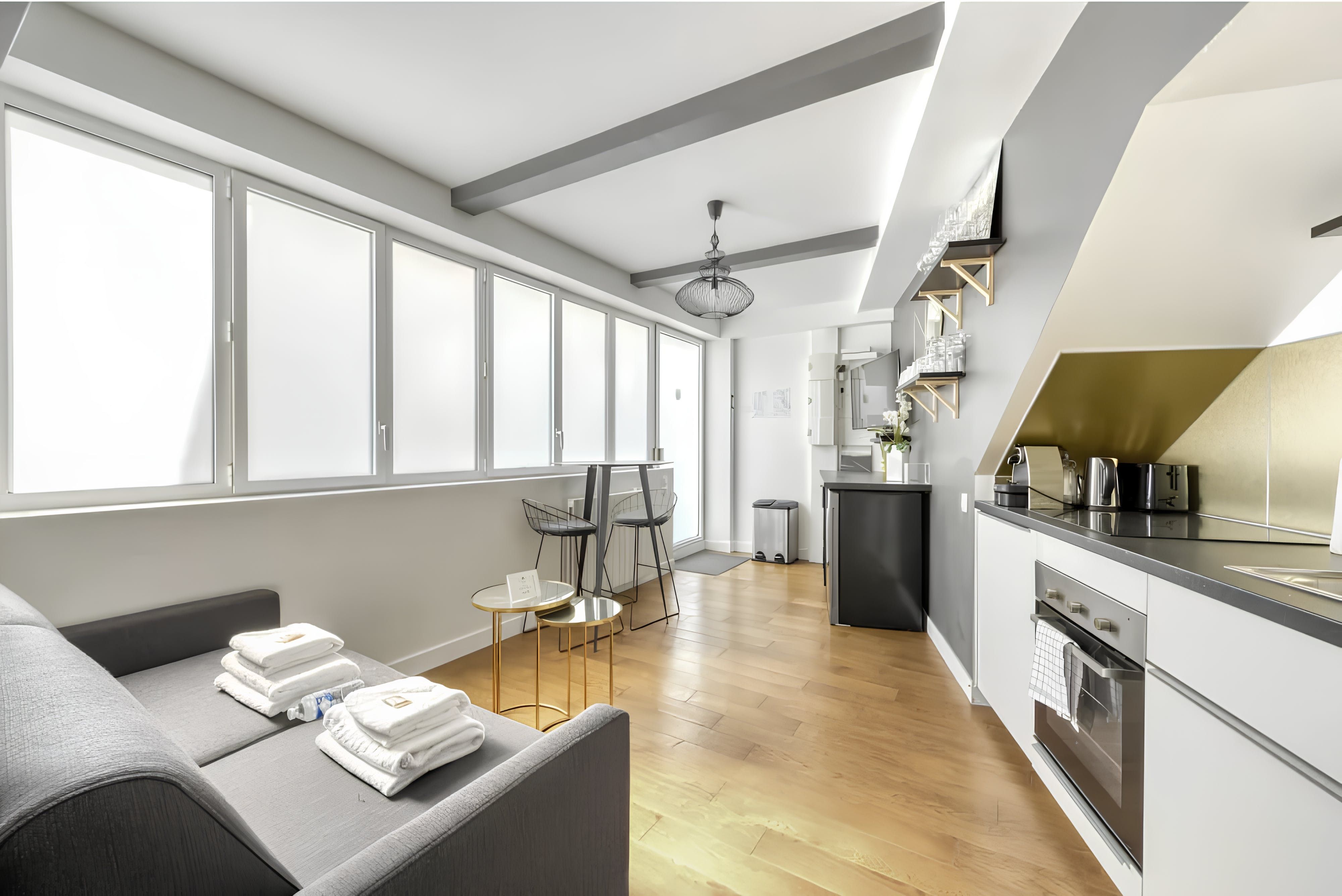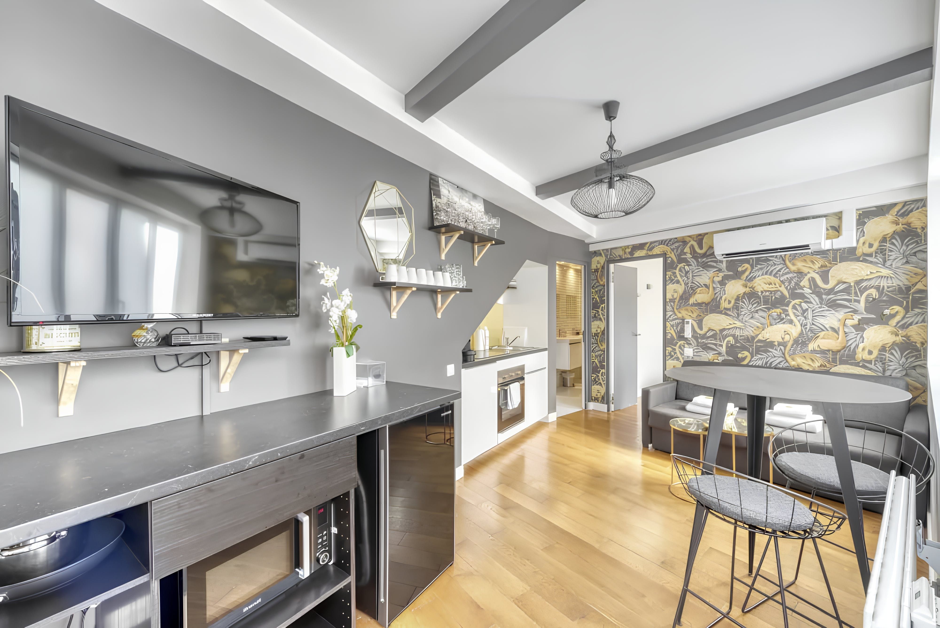 Located in charming Montmartre, this small apartment offers a great base from which to explore one of Paris' finest neighbourhoods. You'll find the famous Sacré-Cœur right on your doorstep, while Abbesses Metro station is just a short walk away and takes you into the city centre with ease. Upon arrival, you'll be greeted by a shared terrace, serving as a pretty spot for morning coffees. Inside, it's a bright and practical space with a handy kitchenette for preparing light bites – though you'll need to head out for large meals. That said, you'll find plenty of Paris' excellent eateries and cafes nearby.