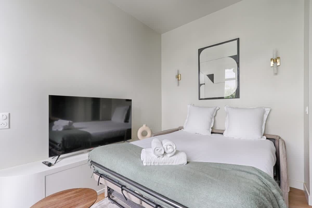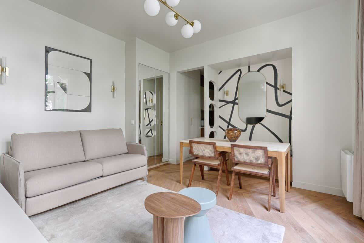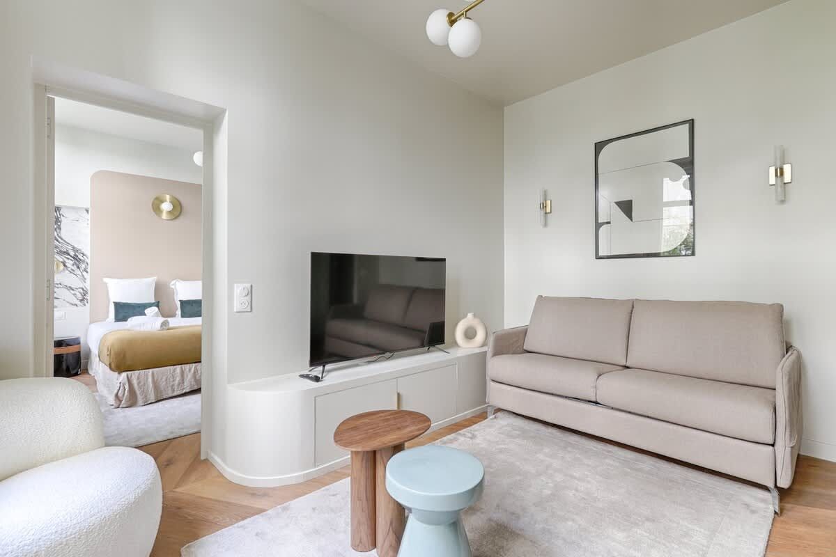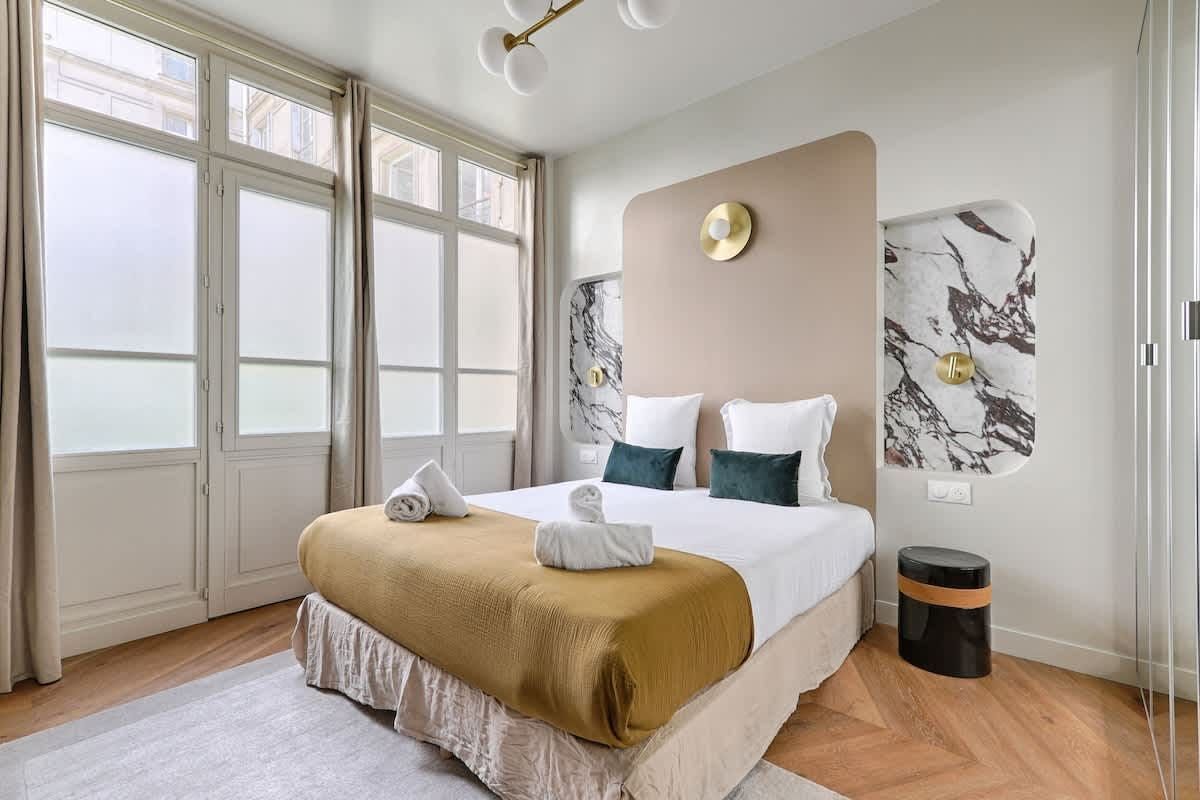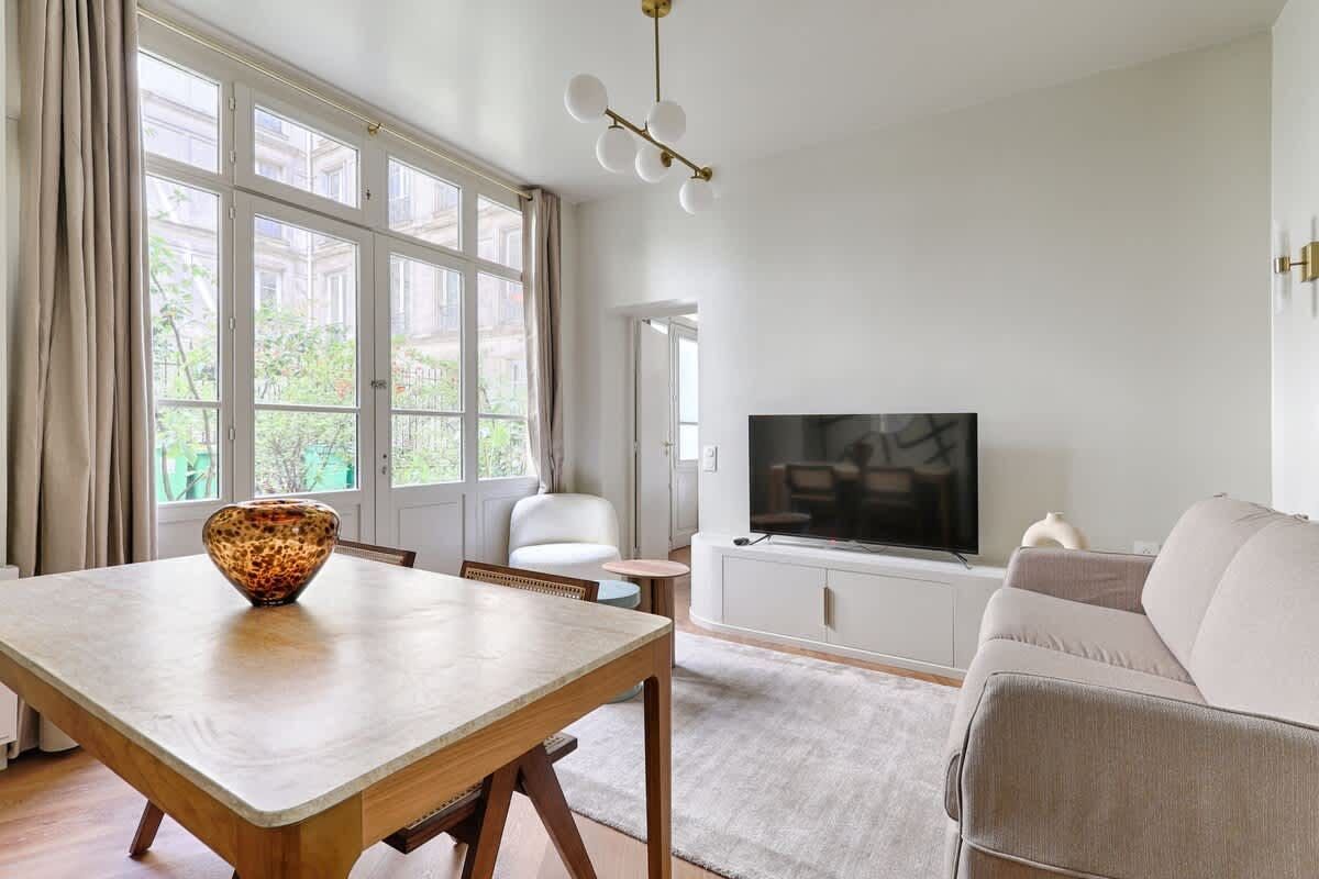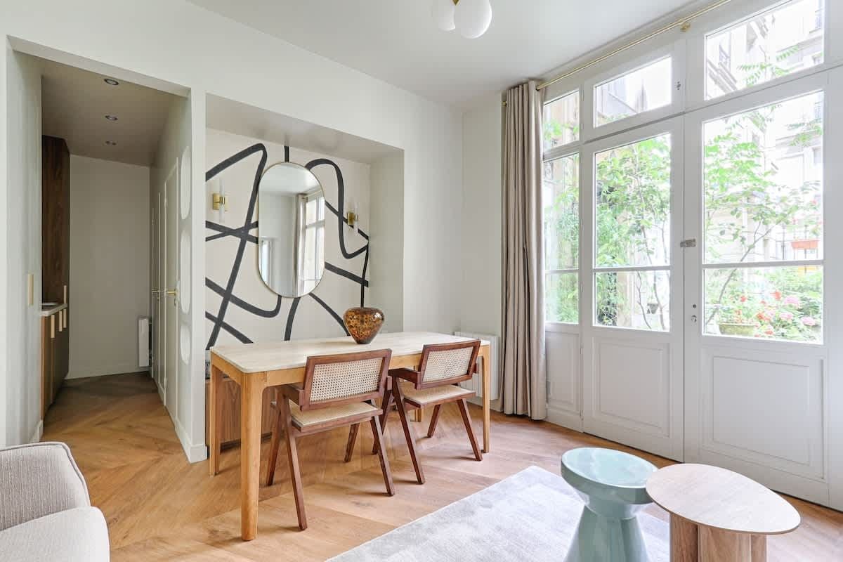 This stylish and modern apartment is perfect for Parisian city breaks and long stays. The open-plan living and dining room has a view of the sunny courtyard beyond the big French doors, the dining table doubles up nicely as a desk, and there's a sofa bed for two. The central location is a highlight – in the heart of the 9th arrondissement with theatres, museums and music venues nearby. For food, you'll have your pick of authentic bakeries and restaurants, and you'll also be a five-minute walk from the nearest metro, which will whisk you around the rest of the city.