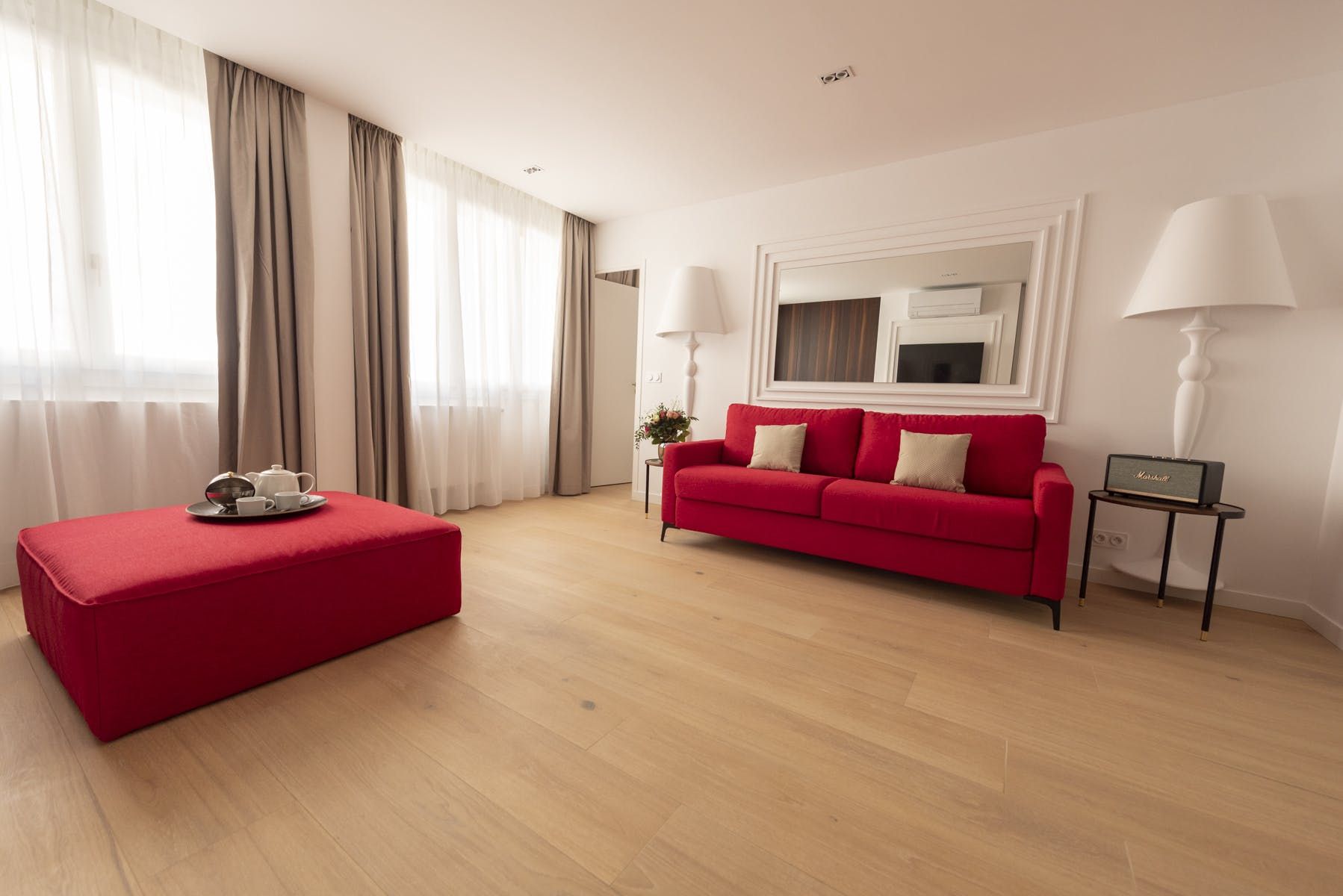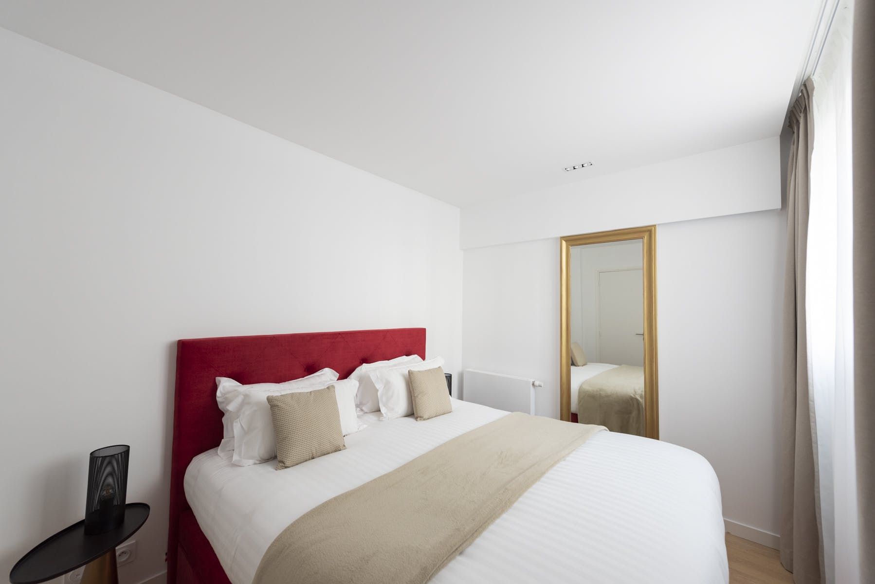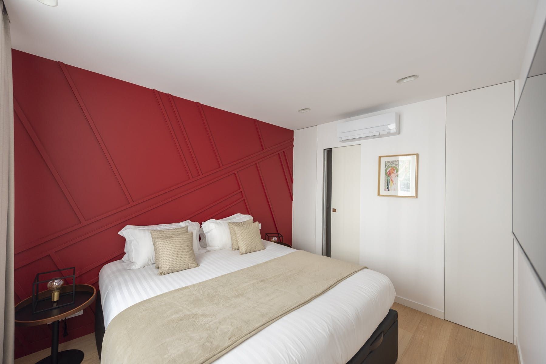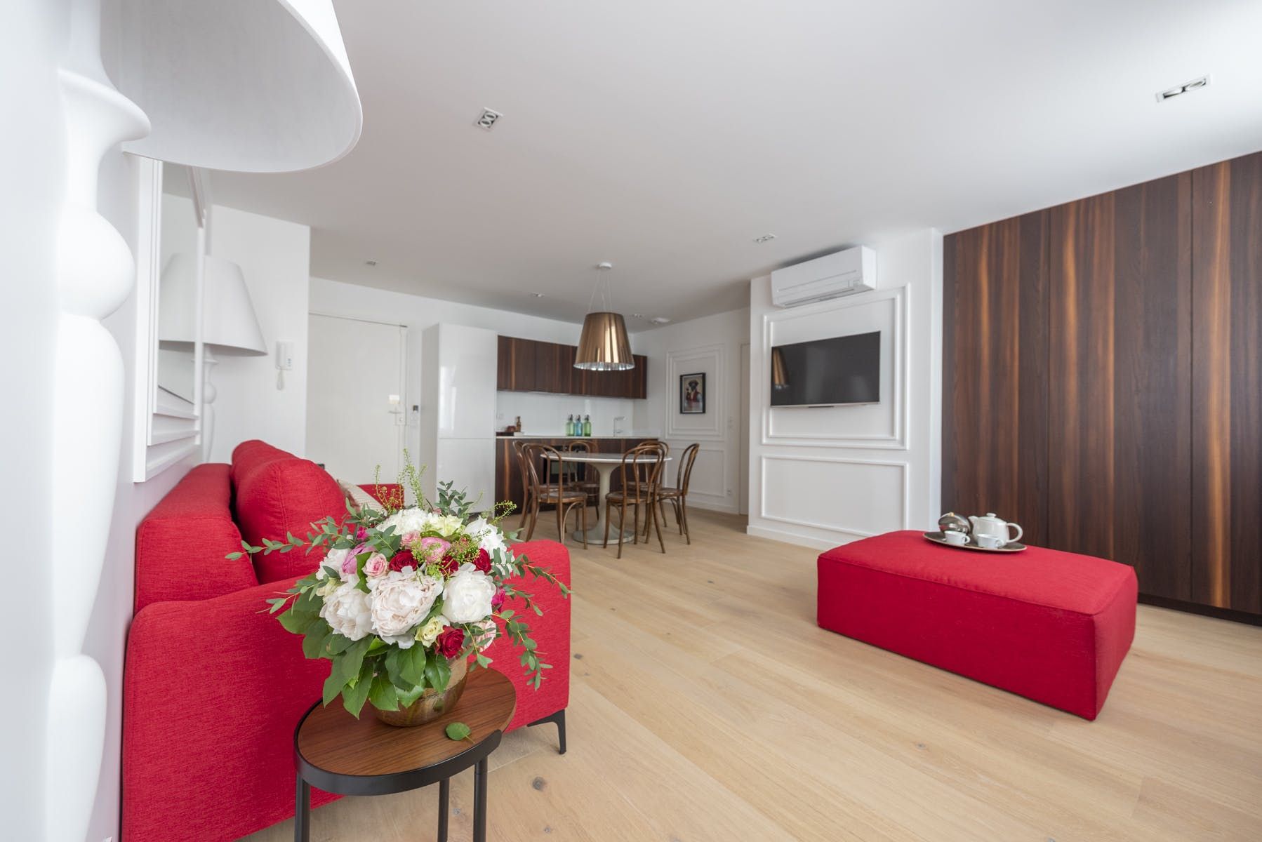 With the Seine just a stone’s throw away and the historic Place de la Bastille a four-minute walk from your door, this elegant apartment puts you in an ideal spot to see the city’s most famous sights. Minimalist yet chic, there’s something incredibly Parisian about the dining room’s bistro-style chairs, the wood floors and large draped windows in the main living space. You’ll relish kicking back on the bright red sofa with a glass of French wine and a box of macarons and gathering around the table for meals made with fresh produce from the weekly Marché Bastille on Boulevard Richard-Lenoir, a six-minute walk away. With their vibrant pops of red and sleek white detailing, the bedrooms are also all set to drift you into a comfortable night’s sleep ahead of another day of sightseeing. Speaking of exploring, you’re just a twenty-minute walk from both Notre Dame and the trendy Marais district, a thirty-minute stroll from Père Lachaise Cemetery and a thirty-five-minute walk from the Louvre.