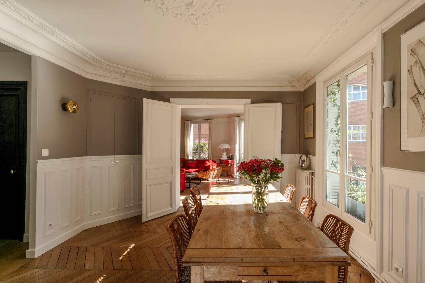 You’ll find this home in the more residential 17th arrondissement, making it the perfect pad for living like a local. The pretty Parc Monceau is nearby for picnics and play dates, while the Metro makes it easy to head into the centre of Paris. As for the apartment, it’s a sophisticated spot to base yourself, styled with plush furnishings and eclectic art pieces. The bedrooms are a little less refined, but big windows and Juliet balconies mean they’re full of natural light, so you can wake up to Parisian sunshine (at least sometimes).