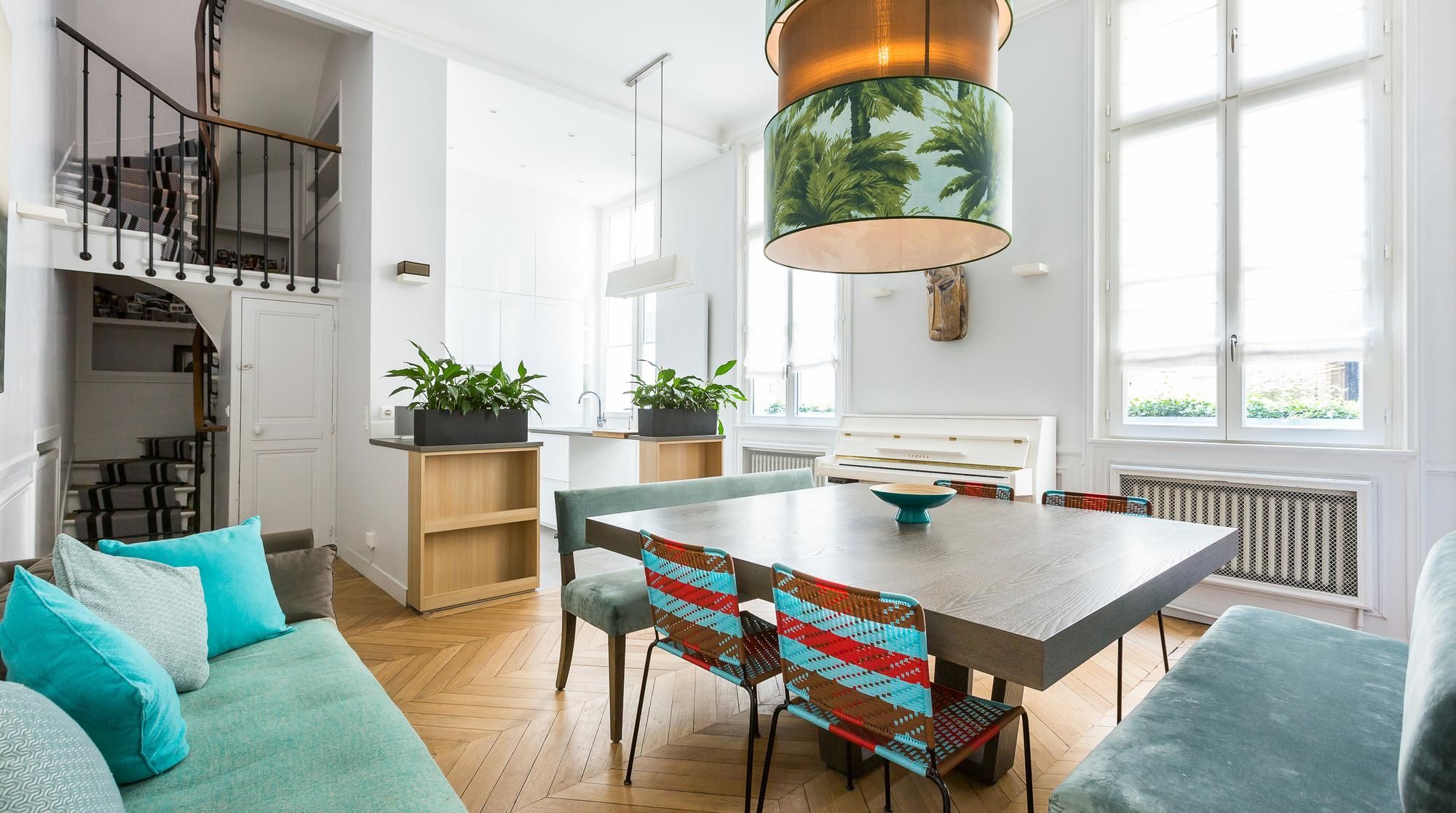 This bright and contemporary home, brimming with greenery, can be found tucked away in the artistic district of Saint-Germain-des-Prés. Well located, you're only a short walk from iconic landmarks like the Louvre Museum but also wedged between parks, cafes and galleries. With an office space perfect for writers inspired by the city, this home can accommodate business trips. Though we think it's best for families, especially with the trundle beds and nursery. We recommend lazy breakfasts in style around the dining table.