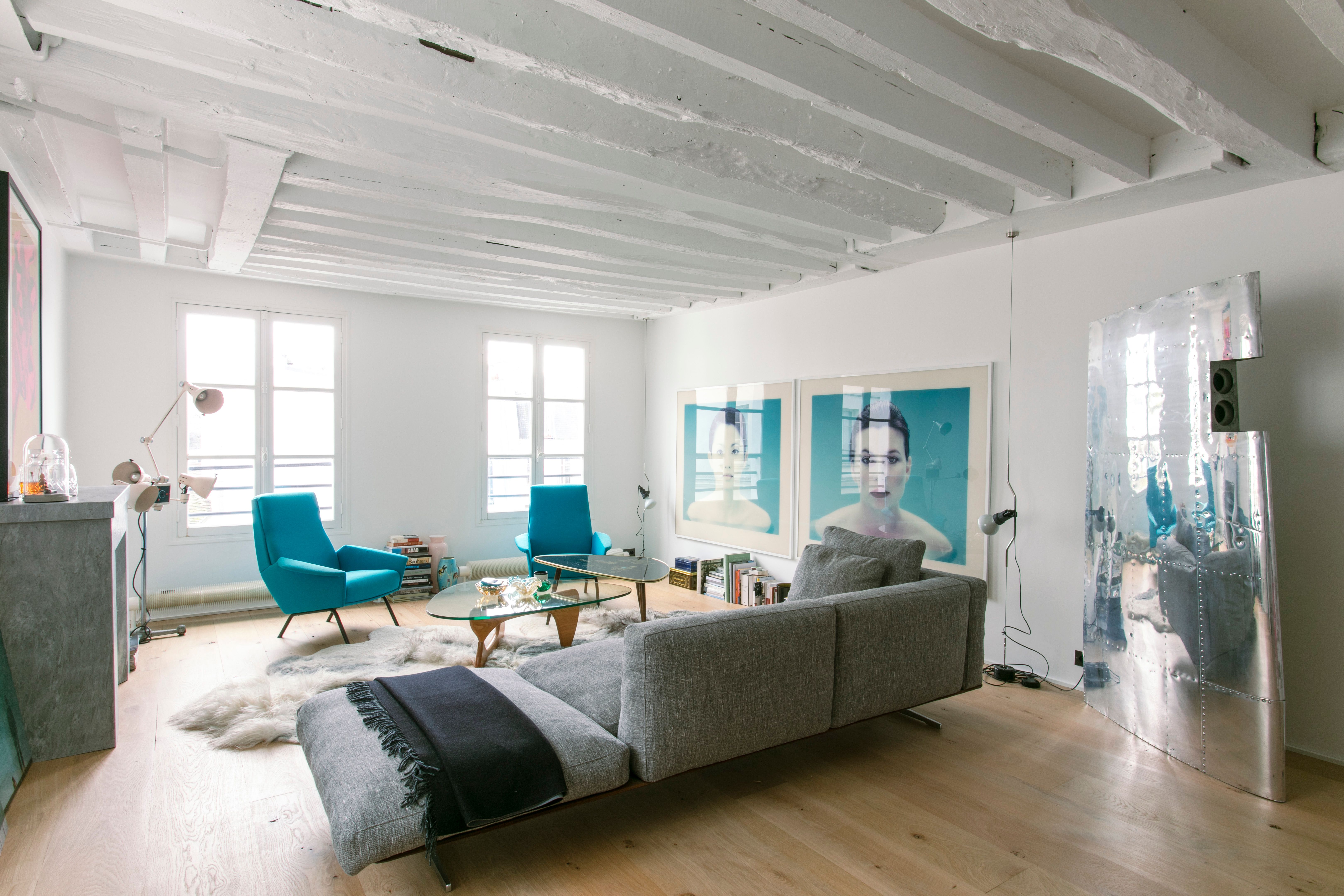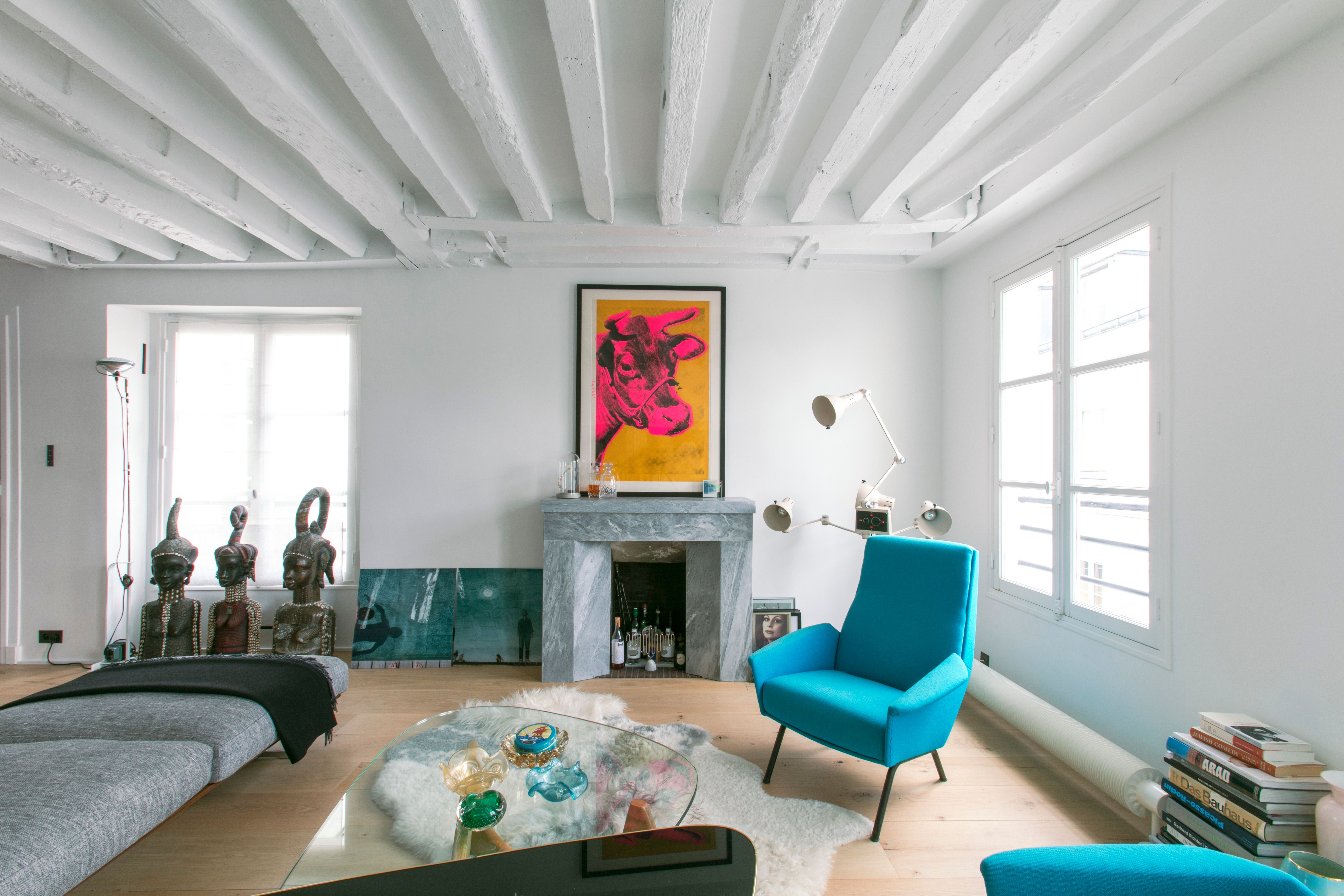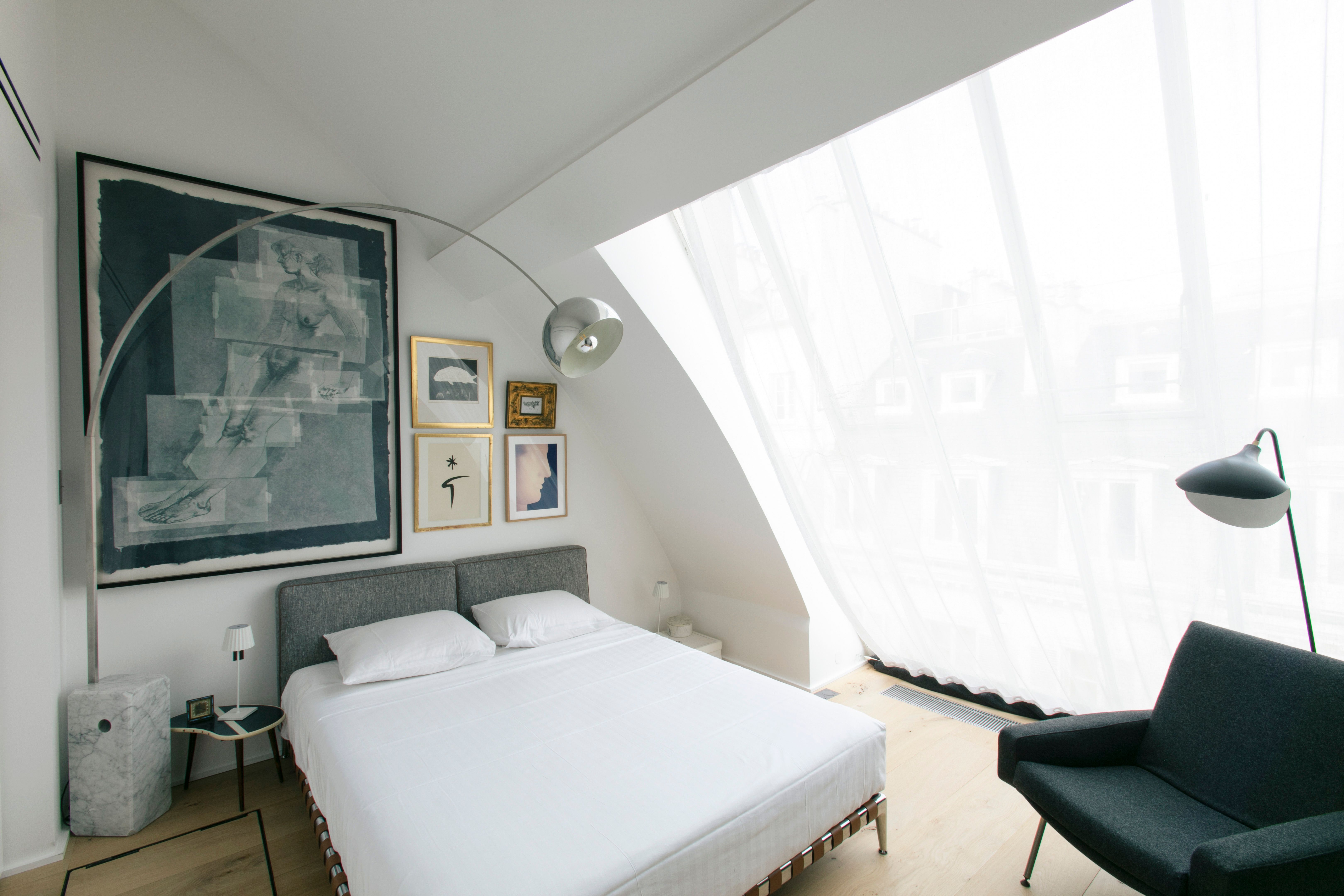 What a quintessentially Parisian setting this home has in picturesque Saint-Germain-des-Prés. It’s just a short walk from the River Seine, charming cafés, restaurants, and brasseries. If you don’t fancy eating out, there’s a chic industrial kitchen for creating some local delicacies. This room also has a striking, futuristic spiral staircase (it doesn’t have a handrail and is narrow and steep, so it’s not for the faint-hearted or those with limited mobility). But, once you get upstairs to the main bedroom, you’re rewarded with views over the rooftops of Paris. There's also a few surprises in store, including a print of Andy Warhol's Cow.