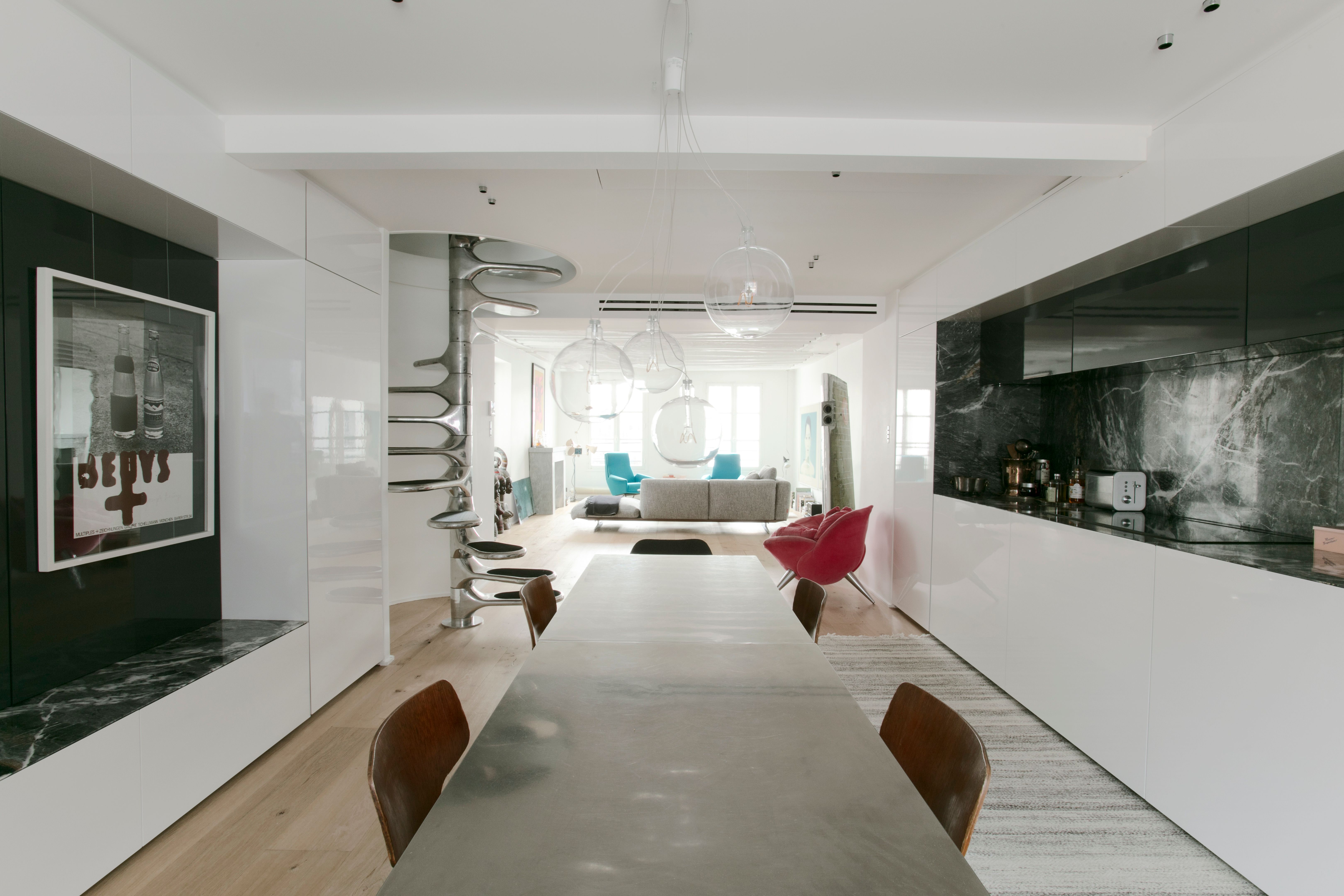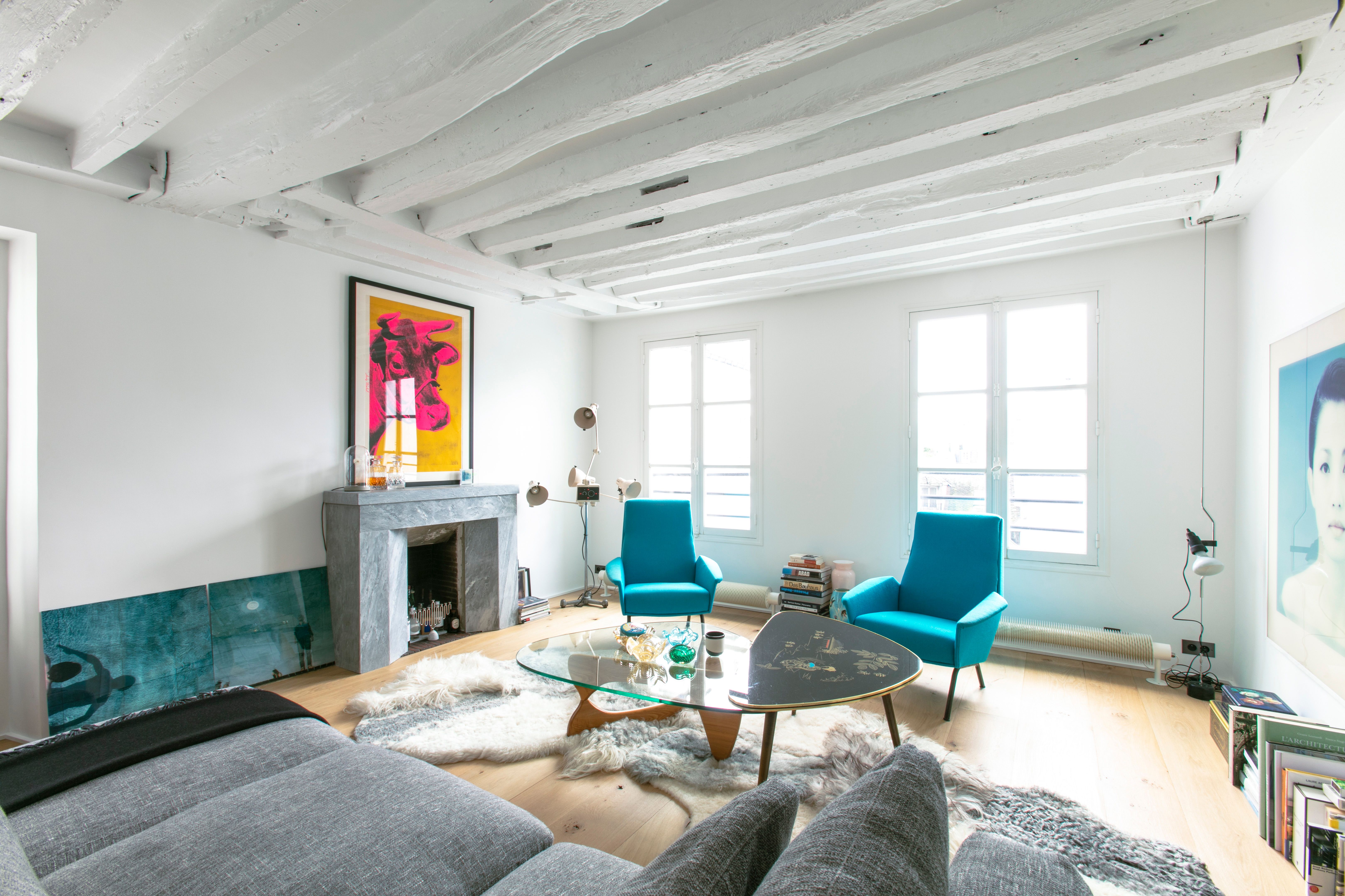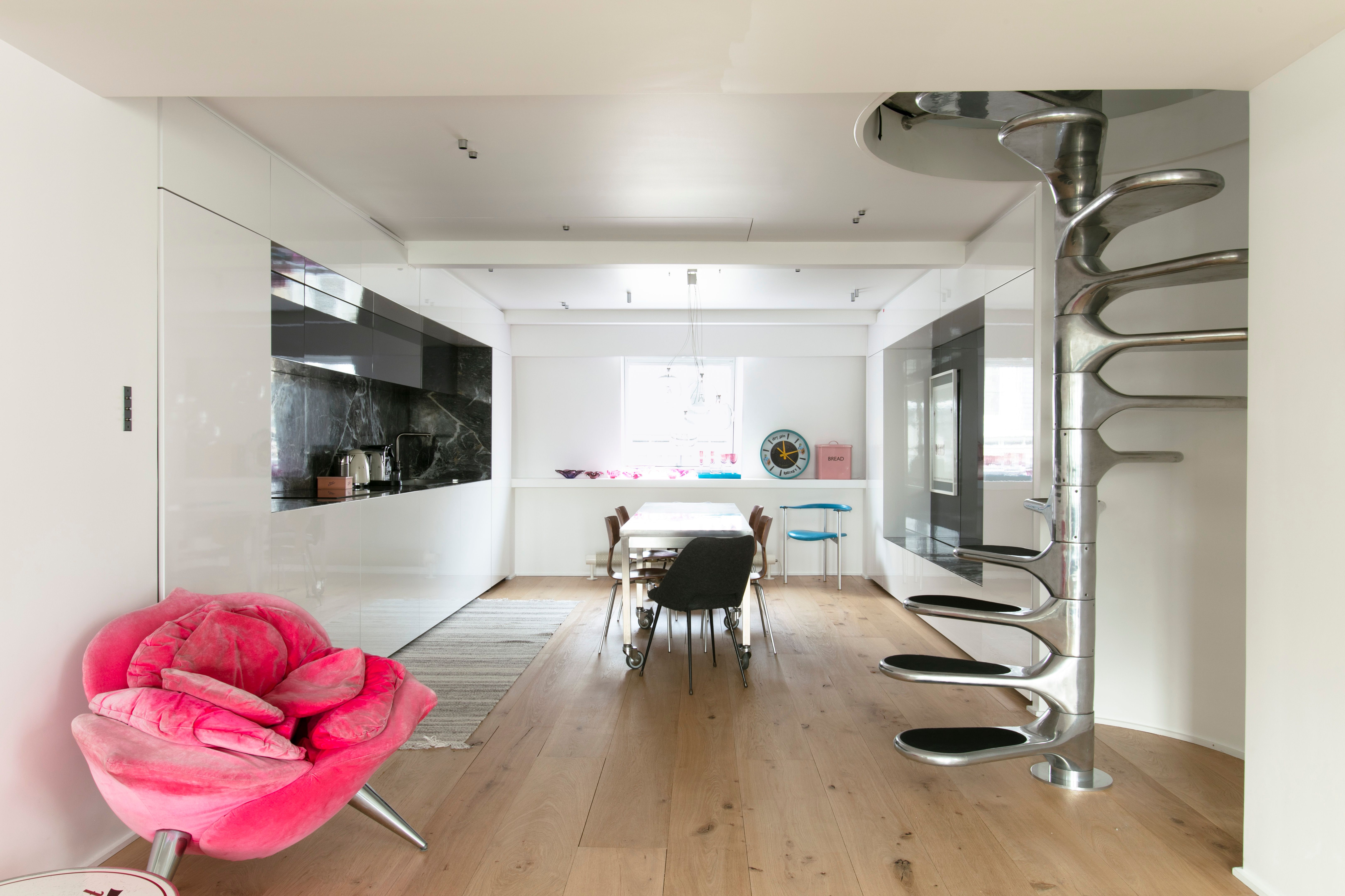 What a quintessentially Parisian setting this home has in picturesque Saint-Germain-des-Prés. It’s just a short walk from the River Seine, charming cafés, restaurants, and brasseries. If you don’t fancy eating out, there’s a chic industrial kitchen for creating some local delicacies. This room also has a striking, futuristic spiral staircase (it doesn’t have a handrail and is narrow and steep, so it’s not for the faint-hearted or those with limited mobility). But, once you get upstairs to the main bedroom, you’re rewarded with views over the rooftops of Paris. There's also a few surprises in store, including a print of Andy Warhol's Cow.