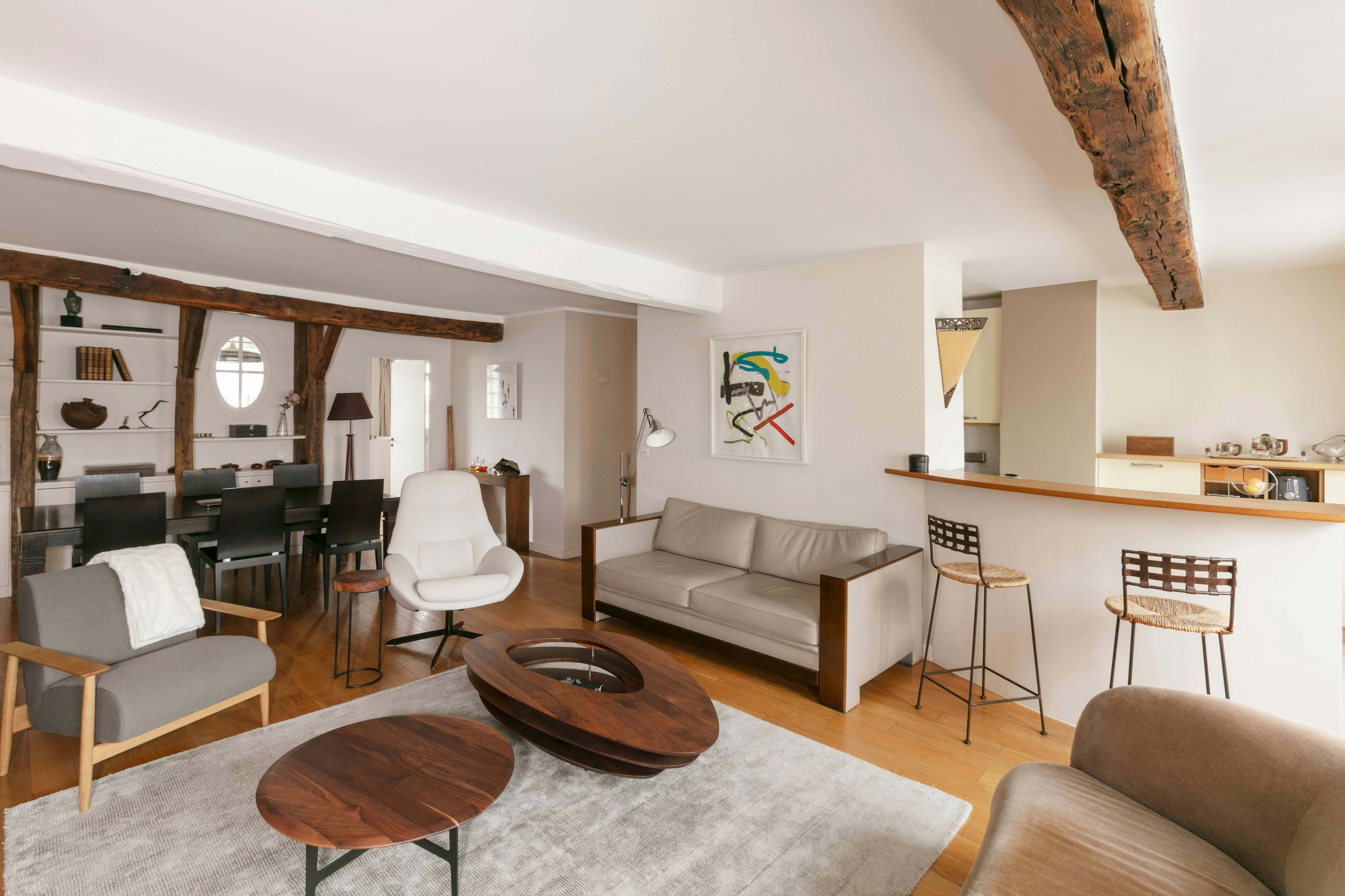 Enjoy charming rooftop views across Paris from this cosy, comfortable apartment. The open-plan living, dining and kitchen space is the heart of the home, and where you’ll likely spend most of your time – there’s plenty of light, so it’s warm and welcoming. The apartment is ideally located in the 5th arrondissement, a ten-minute walk from the historic Panthéon and the delightful Jardin des Plantes. There are several theatres nearby too, as well as easy transport links to the rest of Paris.