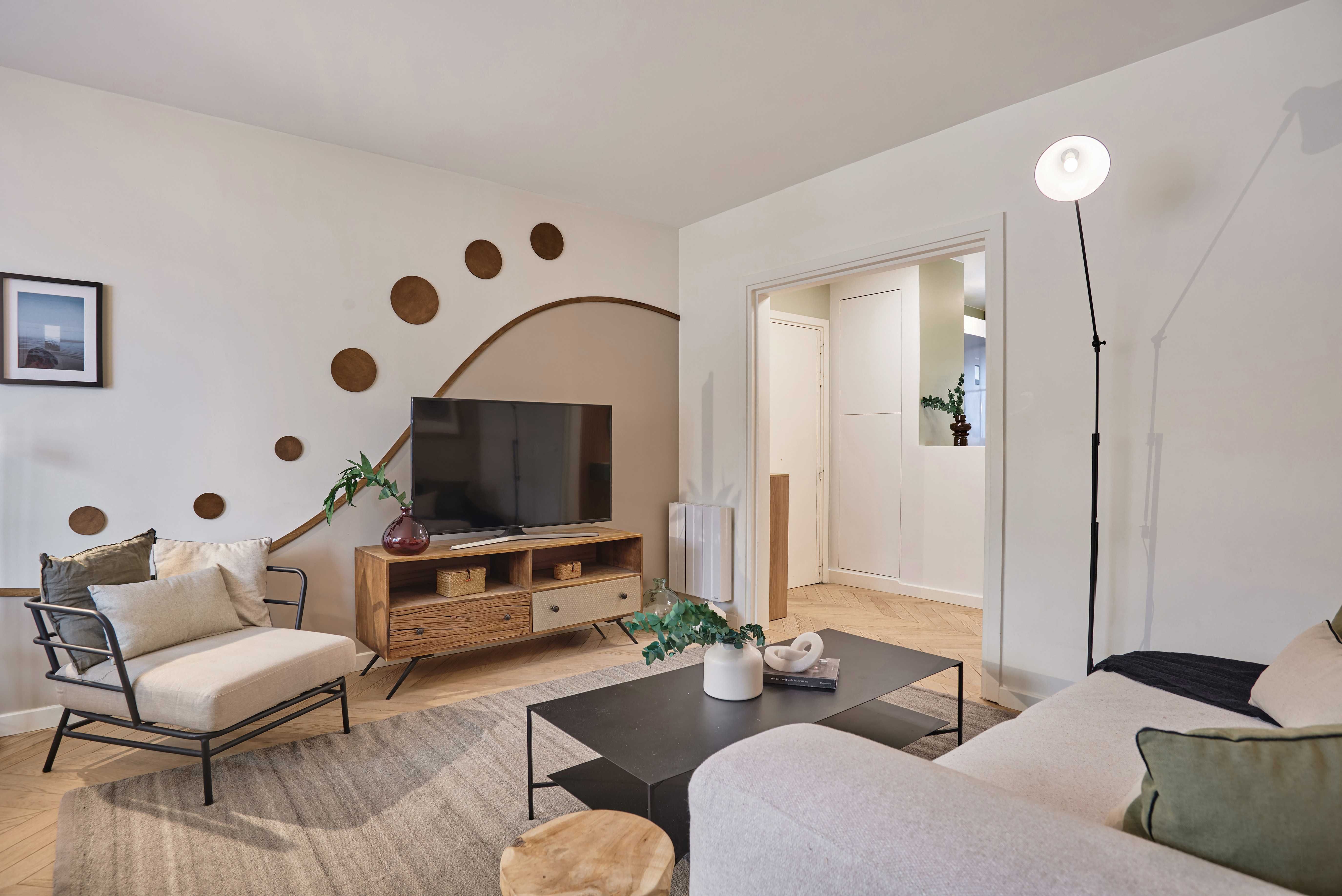 You'll find this apartment in the 16th arrondissement. Although you're slightly outside of the city centre here, the area has plenty to offer. You can walk to the Eiffel Tower in thirty minutes, or hop on a train or the metro at the nearby stations. We think the apartment is a cosy and comfortable option. You'll have everything you need to feel at home, including a desk in one of the bedrooms if you need to catch up on emails. There's even a record player – perfect for setting the mood come dinnertime.