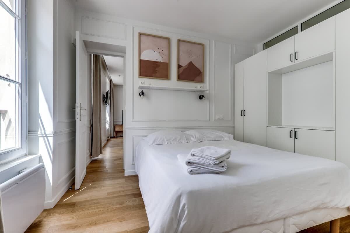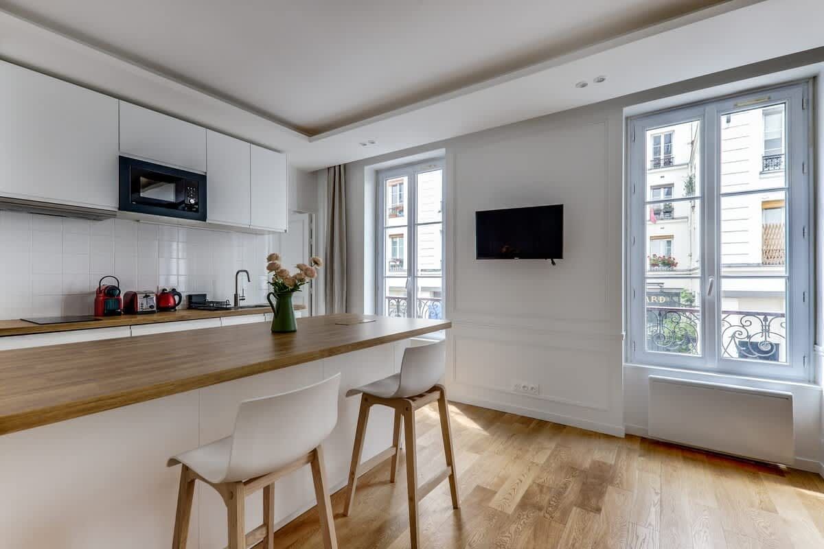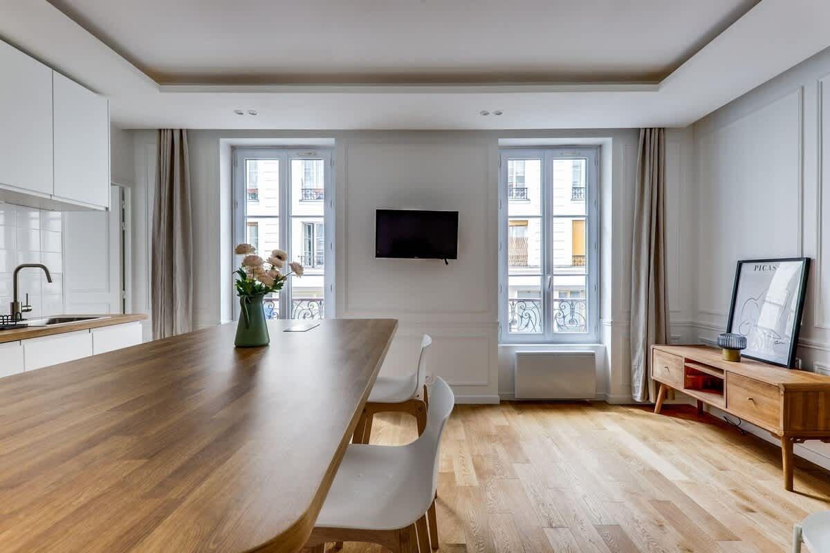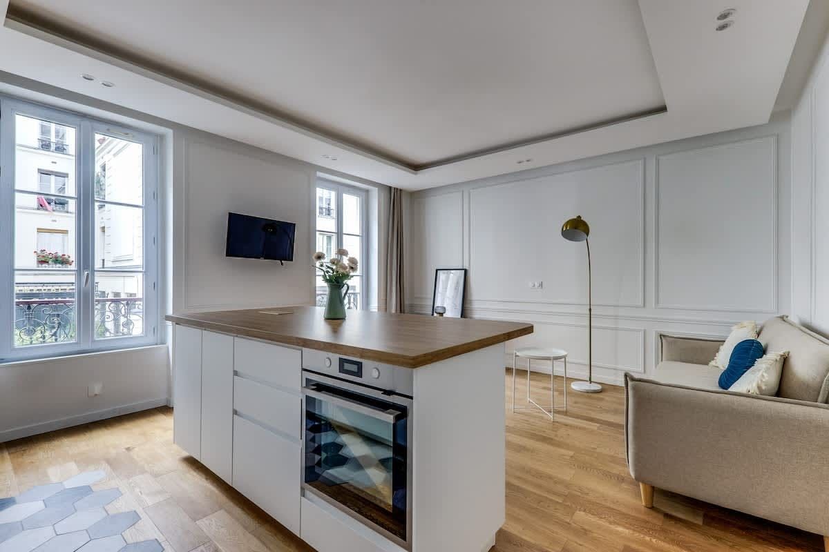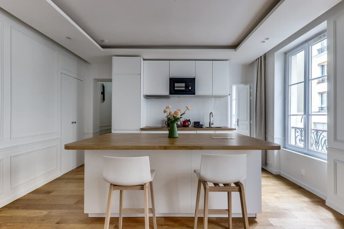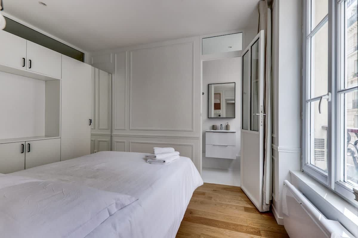 If you’re looking for a practical Parisian base, this 19th arrondissement apartment will do nicely. A great pick for a short working or sightseeing trip for a couple or single traveller, while the interiors may feel a little pared back for some, the period building's high ceilings and Juliet balconies bring some flair. When you’re ready to explore, hop on the nearby Goncourt Metro to head into central Paris, or keep things local. The canal-side eateries and bar scene of Saint-Martin, and the bustling markets of Gare du Nord, are within easy walking distance