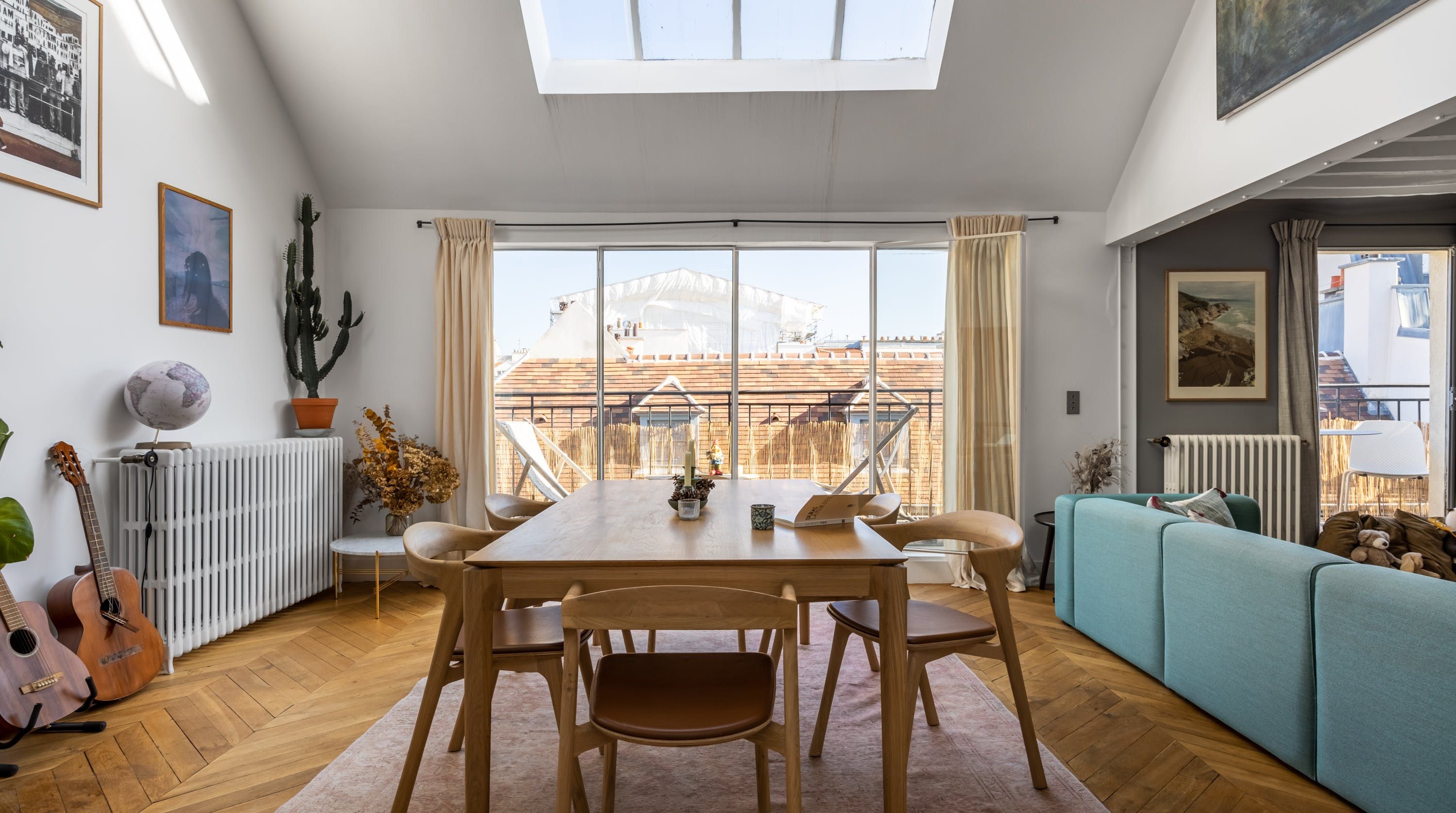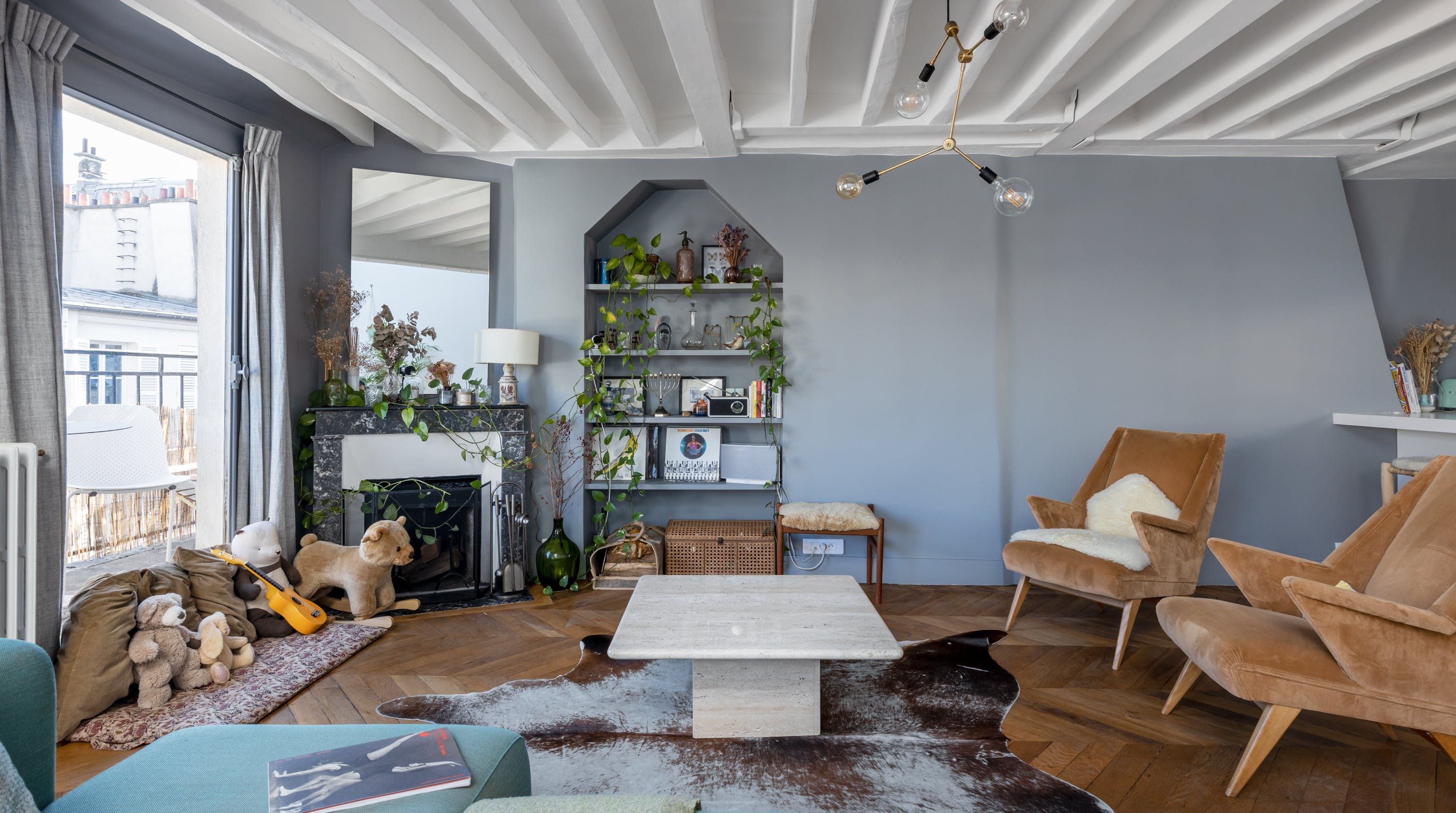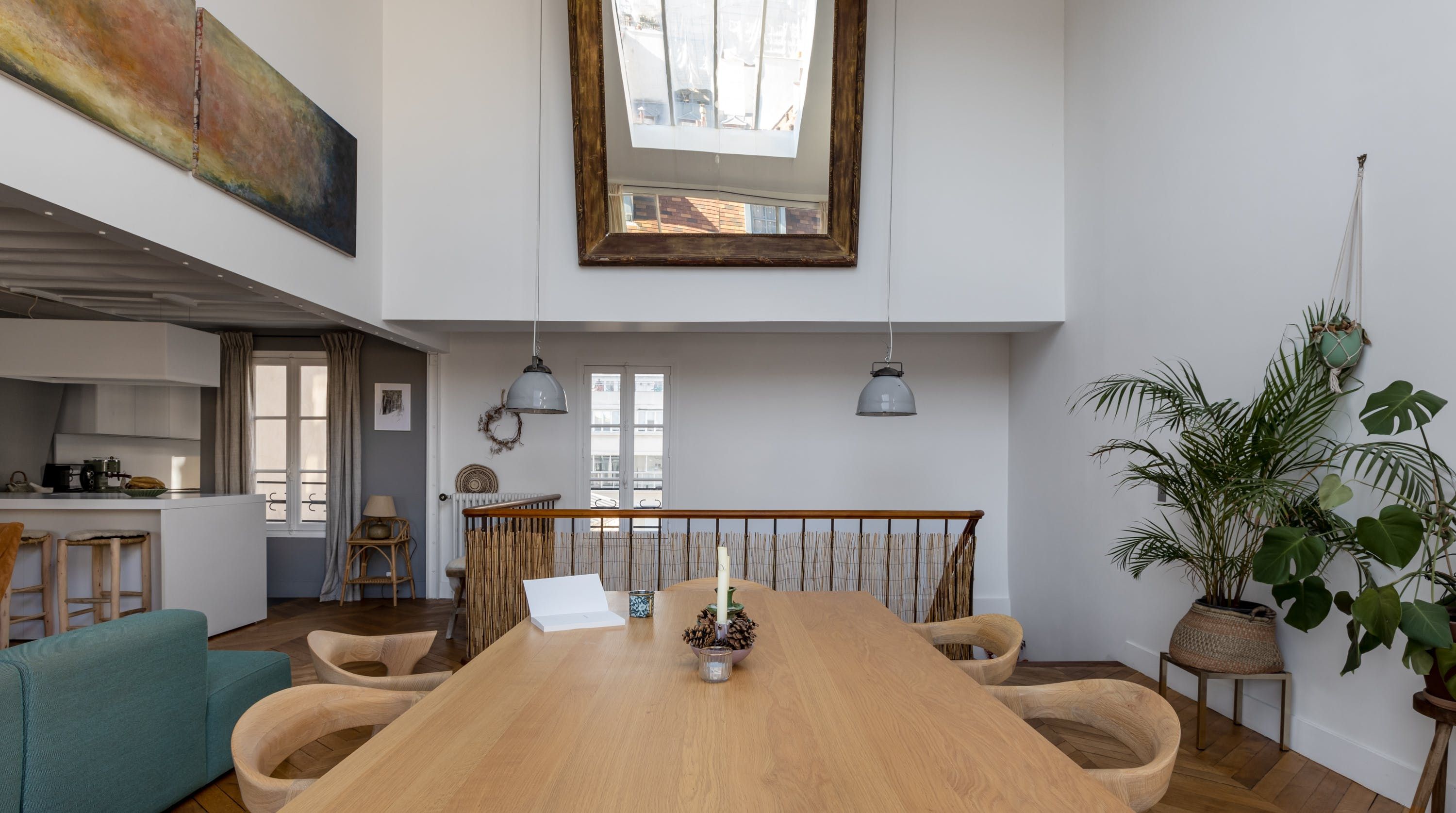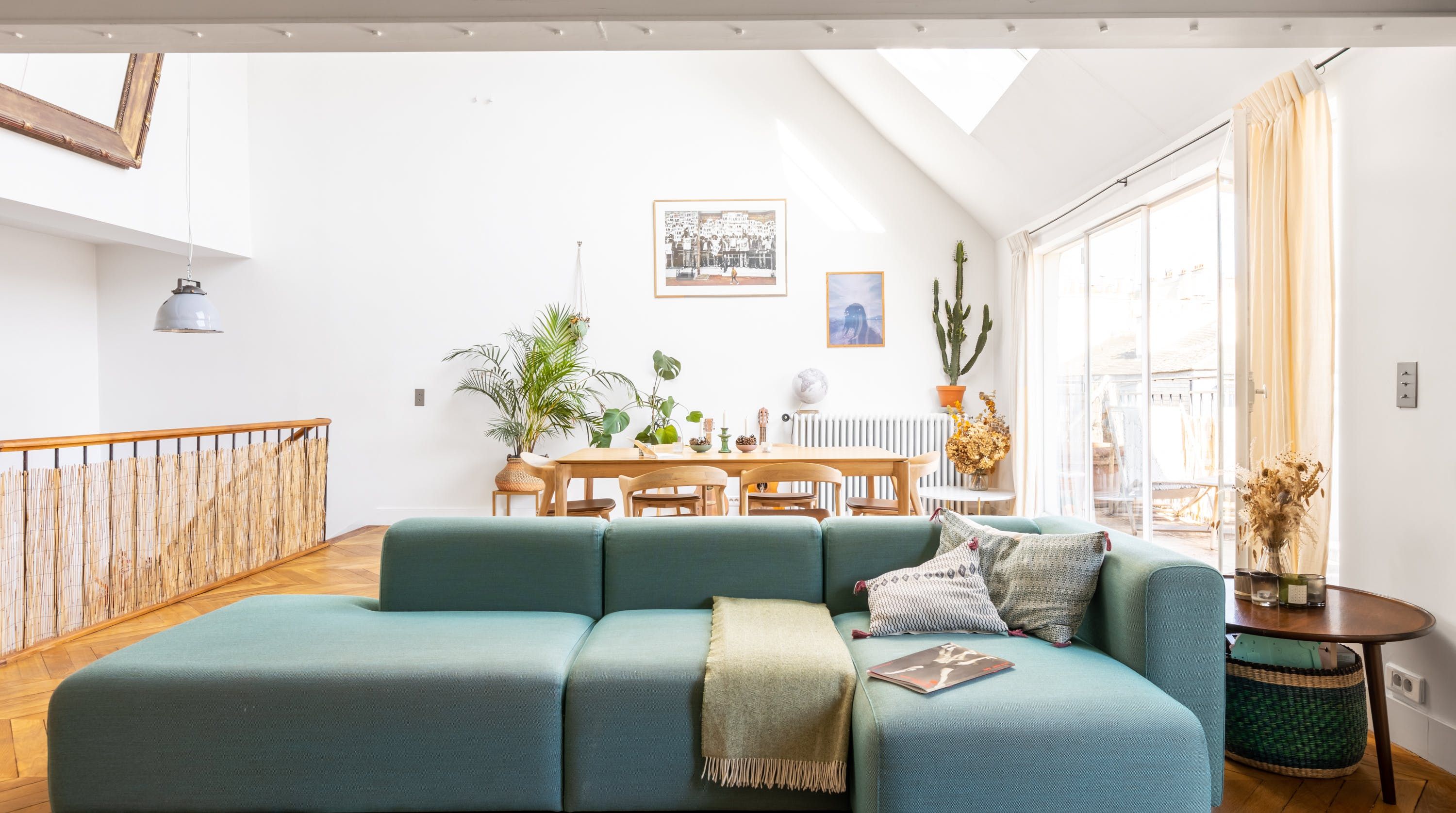 Dappled with botanica and brimming with trinkets and object d’art, there’s no doubt this apartment is in the heart of Le Marais – Paris’ artsiest neighbourhood. The surrounding streets are packed with studios, galleries and shops selling curios and it’s also home to the Picasso Museum. For a spot this close to the city centre, there’s bags of space for the group to spread out. Perhaps you’ll ponder a creative moment in the library-esque office, strum the acoustic guitar in front of the wall of windows in the dining area, or sprawl out on the L-shaped sofa and admire the rooftop view of Paris. If you’re feeling playful, the TV room has a PS5 and there’s a Japanese bar tucked into a corner with a retro bartop arcade machine. The piece de resistance is the skinny balcony, furnished with deckchairs and offering a rooftop view over Marais, particularly beautiful at sunset with a drink in hand.