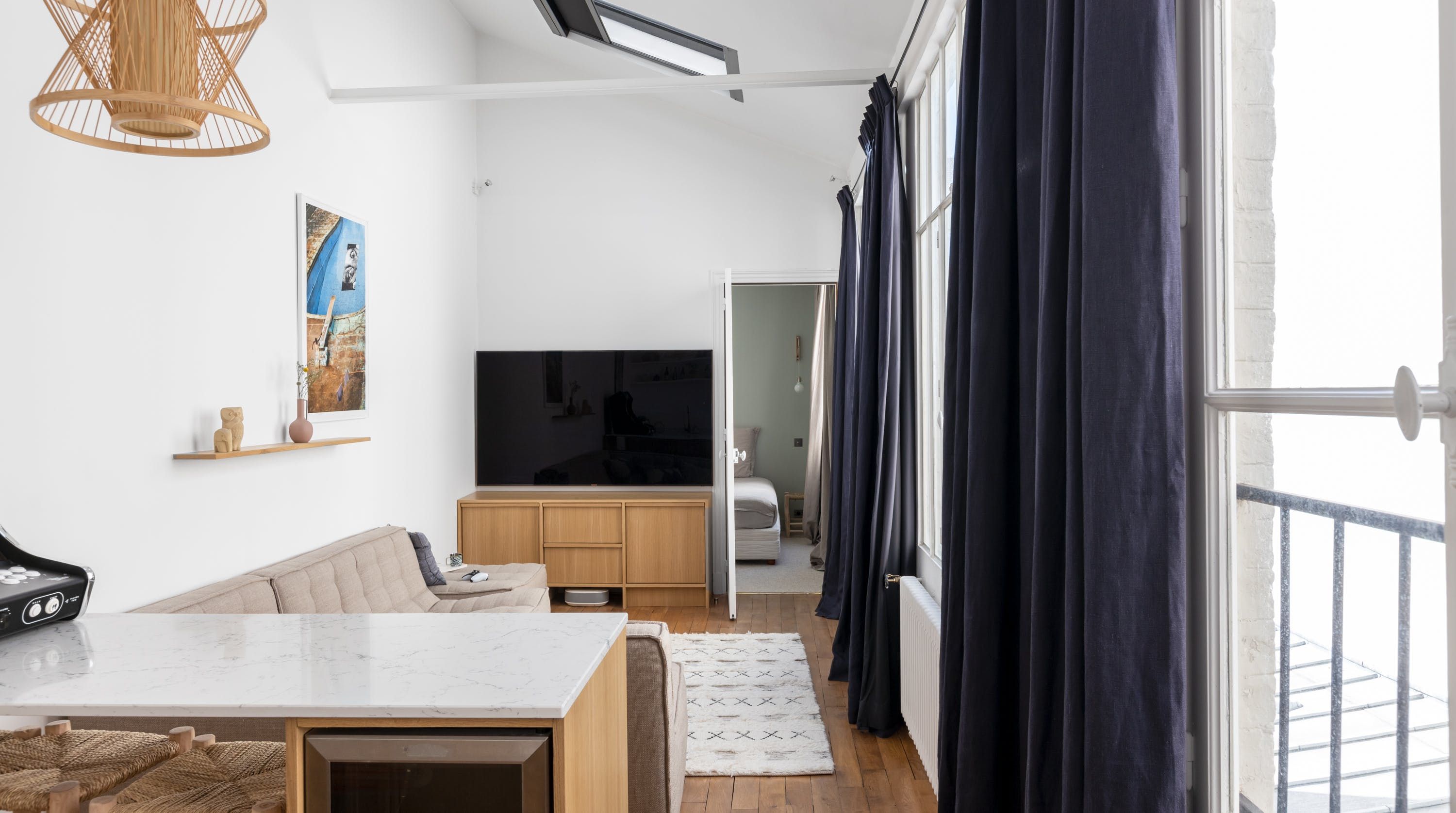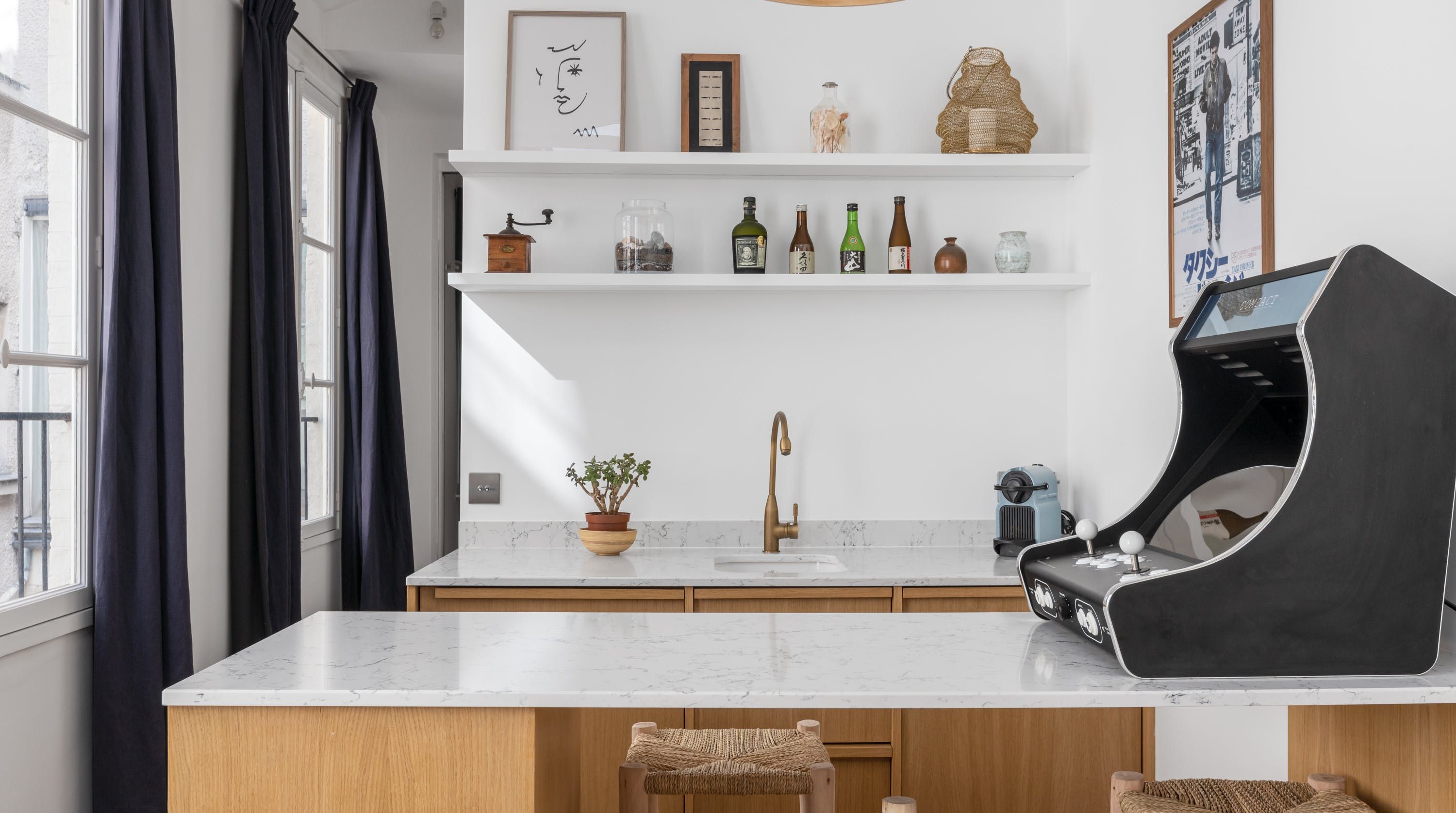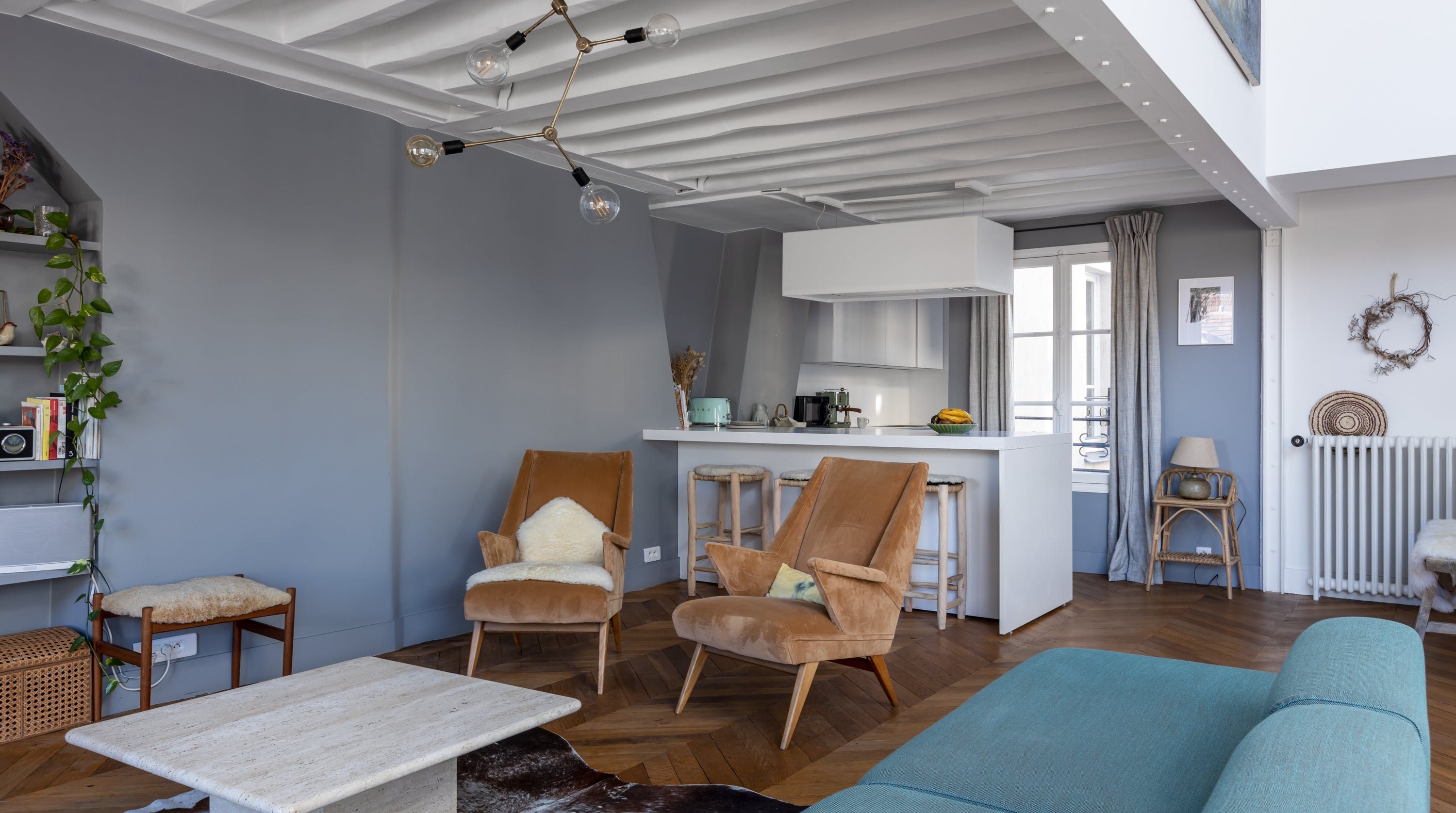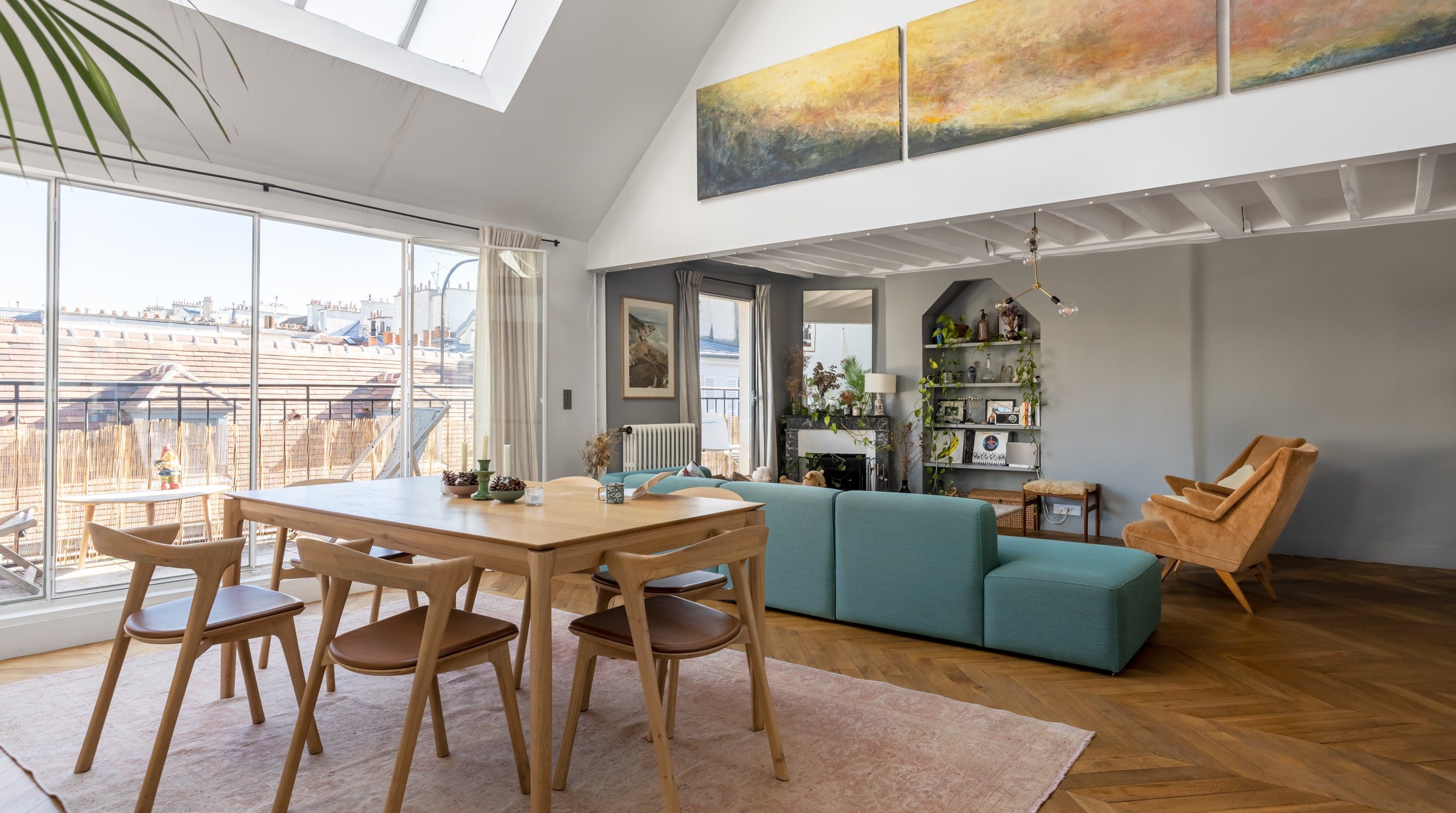 Dappled with botanica and brimming with trinkets and object d’art, there’s no doubt this apartment is in the heart of Le Marais – Paris’ artsiest neighbourhood. The surrounding streets are packed with studios, galleries and shops selling curios and it’s also home to the Picasso Museum. For a spot this close to the city centre, there’s bags of space for the group to spread out. Perhaps you’ll ponder a creative moment in the library-esque office, strum the acoustic guitar in front of the wall of windows in the dining area, or sprawl out on the L-shaped sofa and admire the rooftop view of Paris. If you’re feeling playful, the TV room has a PS5 and there’s a Japanese bar tucked into a corner with a retro bartop arcade machine. The piece de resistance is the skinny balcony, furnished with deckchairs and offering a rooftop view over Marais, particularly beautiful at sunset with a drink in hand.