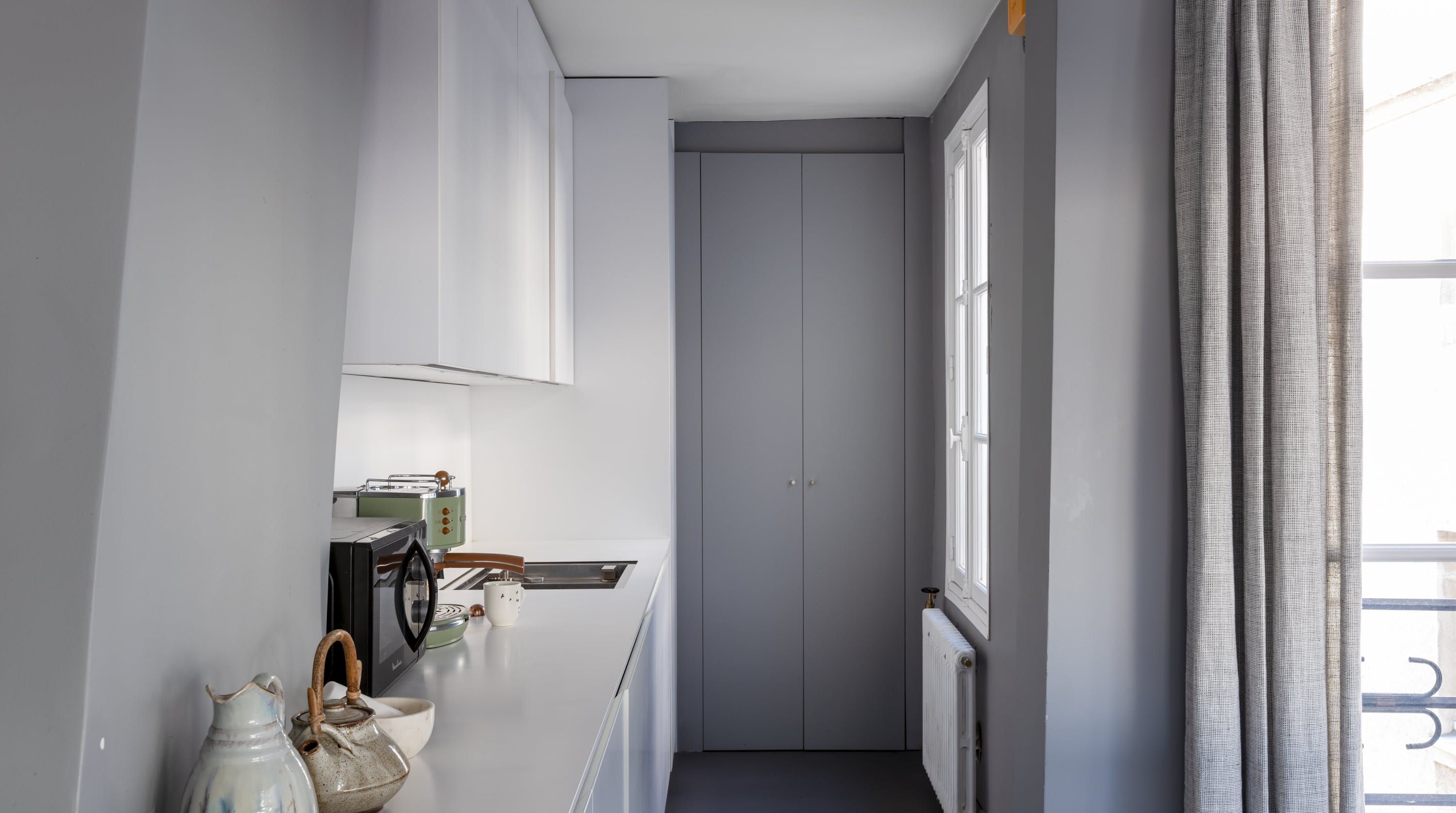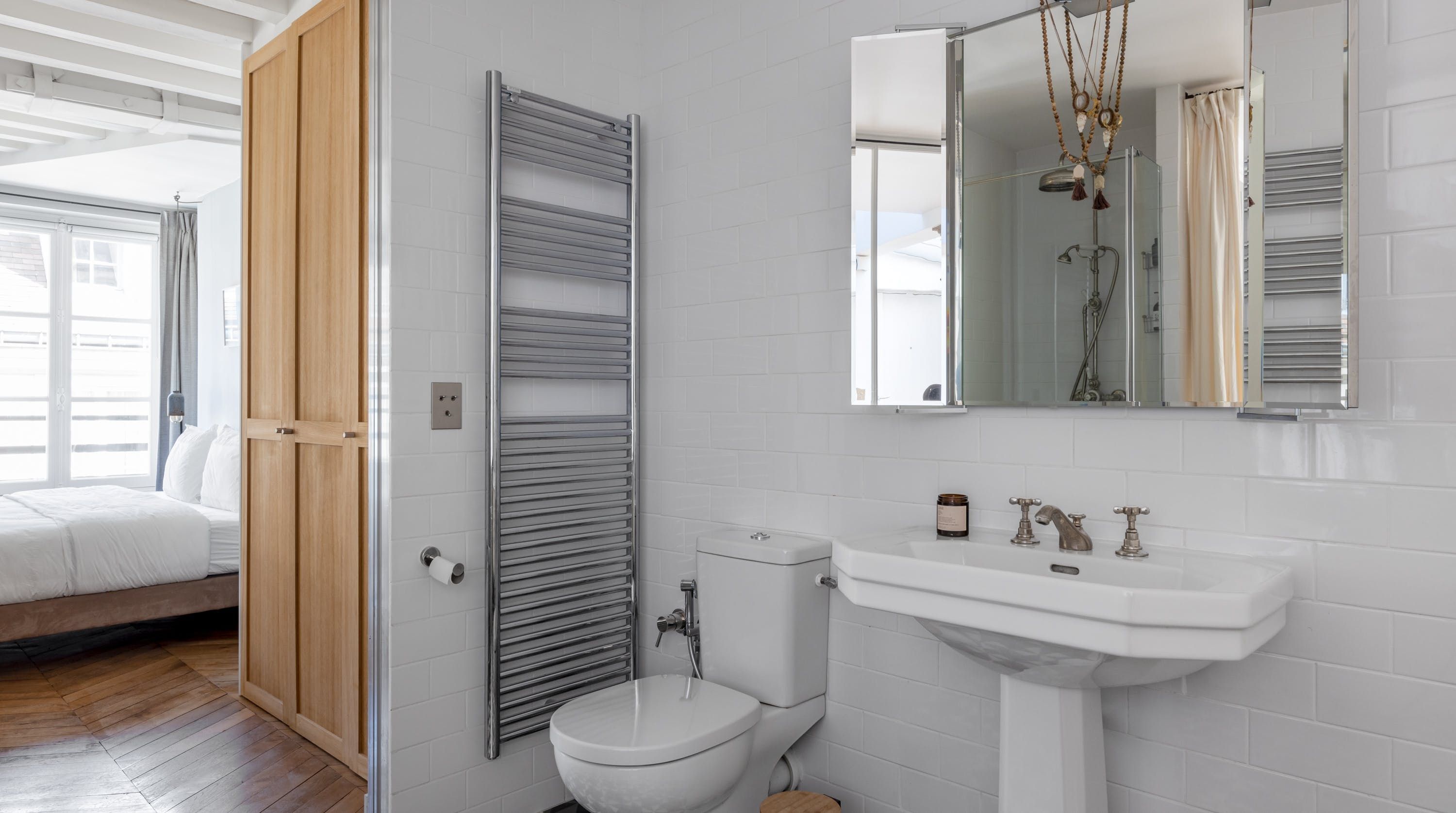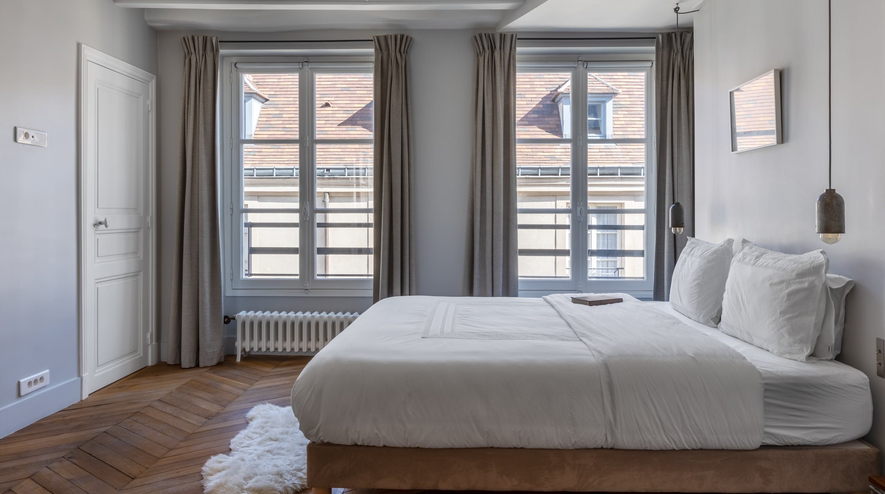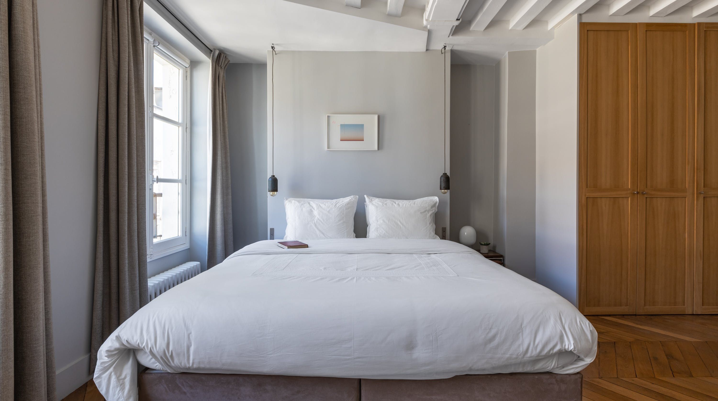 Dappled with botanica and brimming with trinkets and object d’art, there’s no doubt this apartment is in the heart of Le Marais – Paris’ artsiest neighbourhood. The surrounding streets are packed with studios, galleries and shops selling curios and it’s also home to the Picasso Museum. For a spot this close to the city centre, there’s bags of space for the group to spread out. Perhaps you’ll ponder a creative moment in the library-esque office, strum the acoustic guitar in front of the wall of windows in the dining area, or sprawl out on the L-shaped sofa and admire the rooftop view of Paris. If you’re feeling playful, the TV room has a PS5 and there’s a Japanese bar tucked into a corner with a retro bartop arcade machine. The piece de resistance is the skinny balcony, furnished with deckchairs and offering a rooftop view over Marais, particularly beautiful at sunset with a drink in hand.