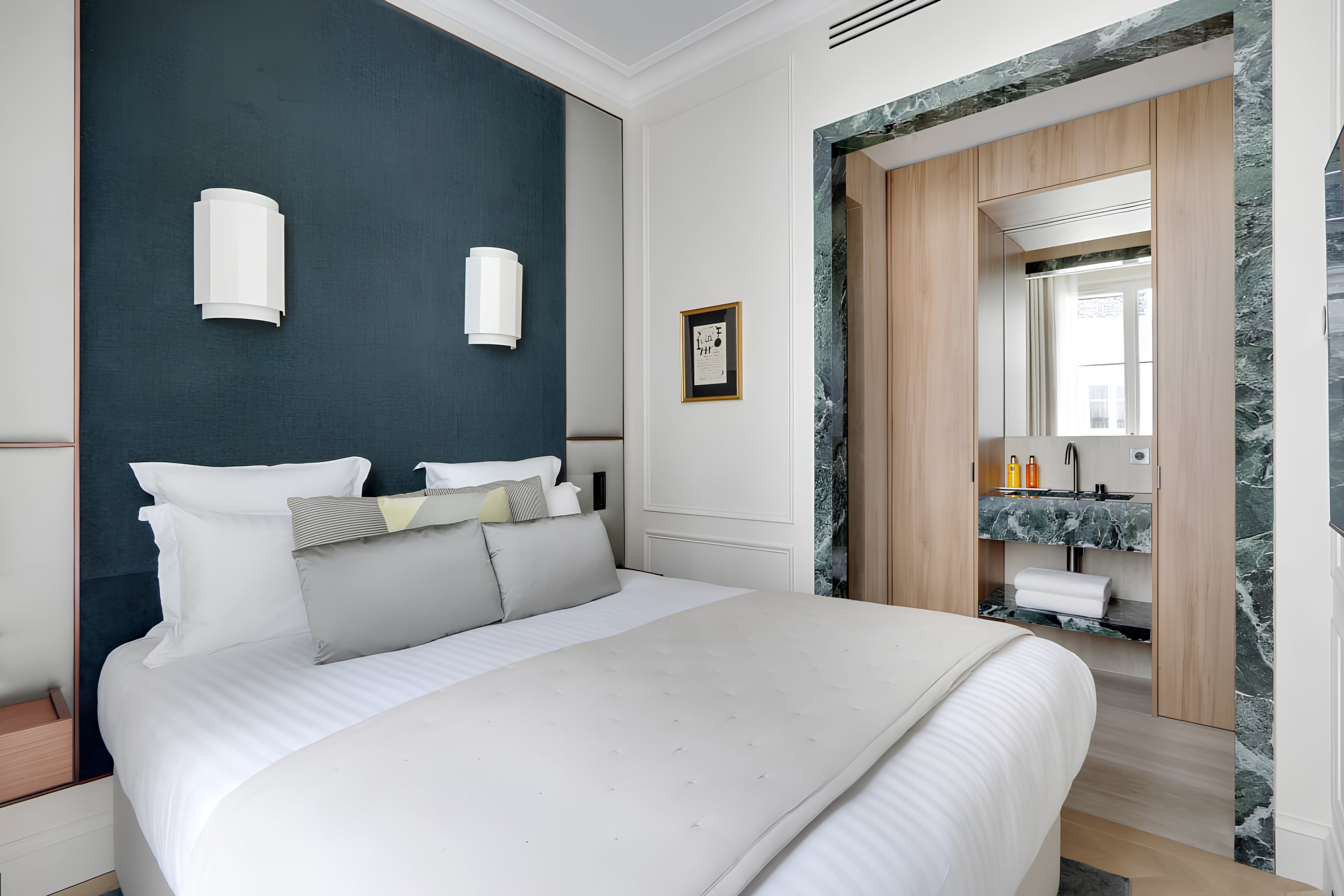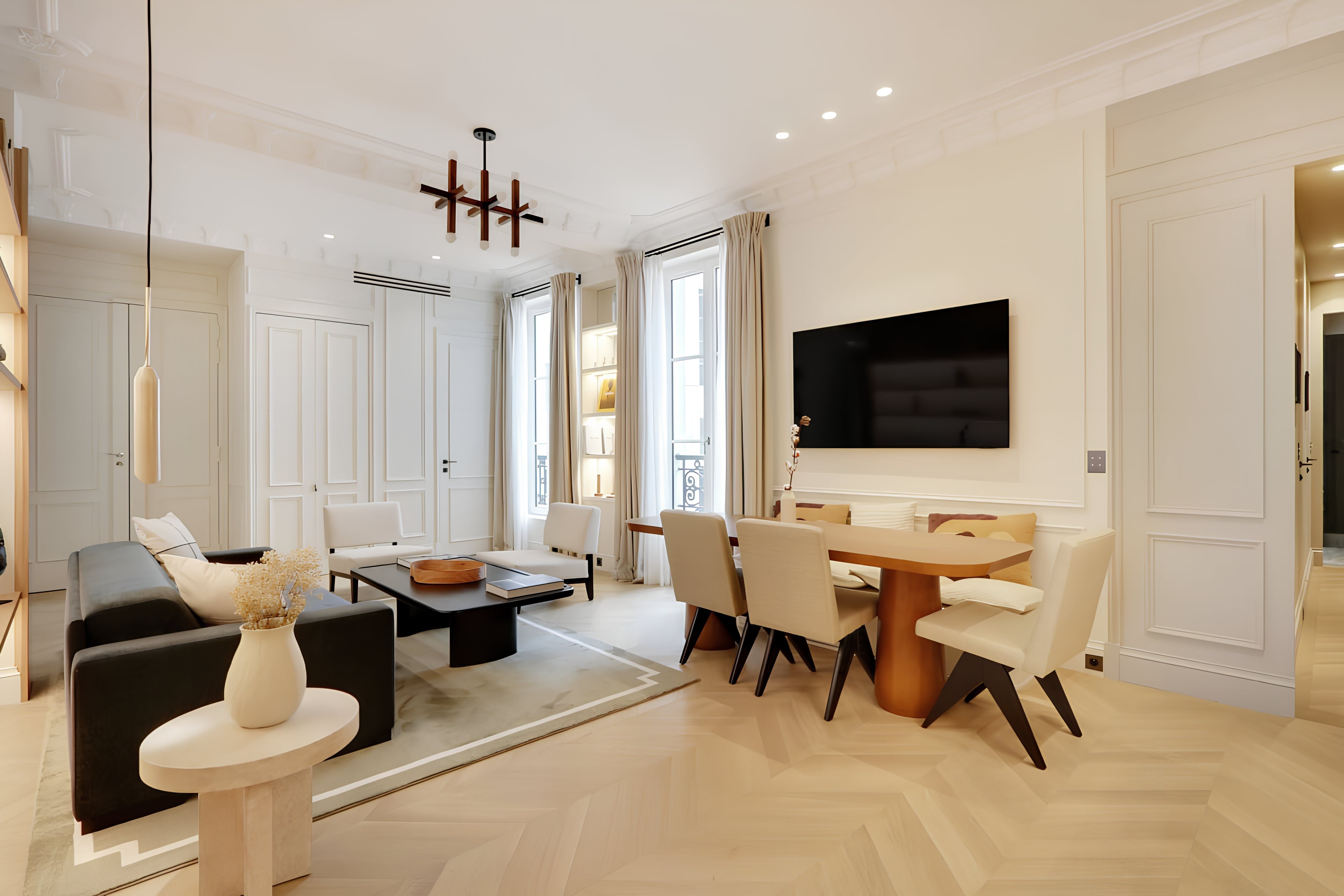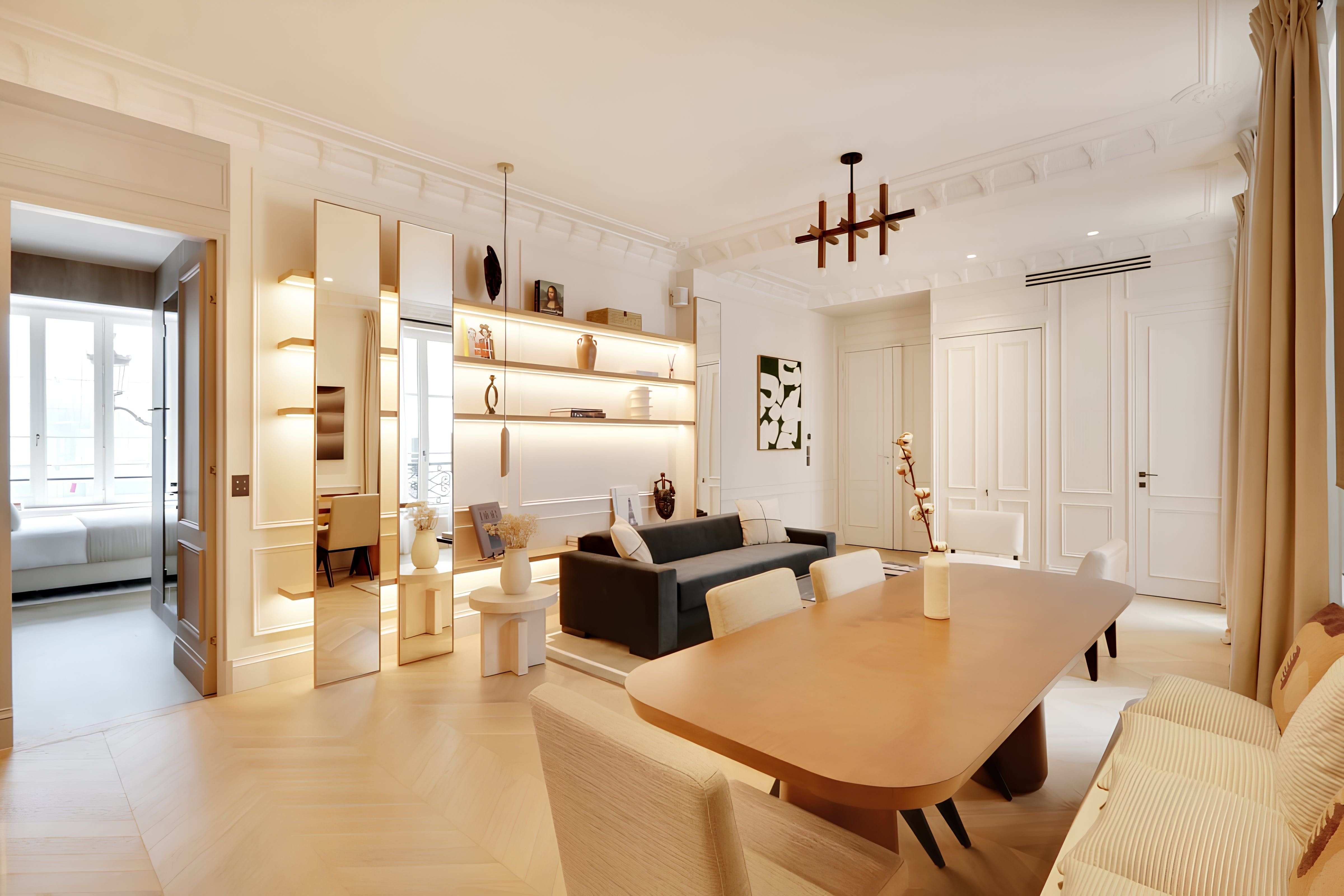 Located in the heart of Les Halles, this apartment is just a short walk from the famous Louvre and Notre-Dame Cathedral. If you’d like to venture to the other side of the capital, the Châtelet metro station is a couple of hundred metres from your doorstep. Relaxation is at the forefront with hotel-quality beds and a concierge service offering extras from daily housekeeping to a private chef. If you’re visiting for business, you won’t find a desk here, but the dining room doubles as a workspace.