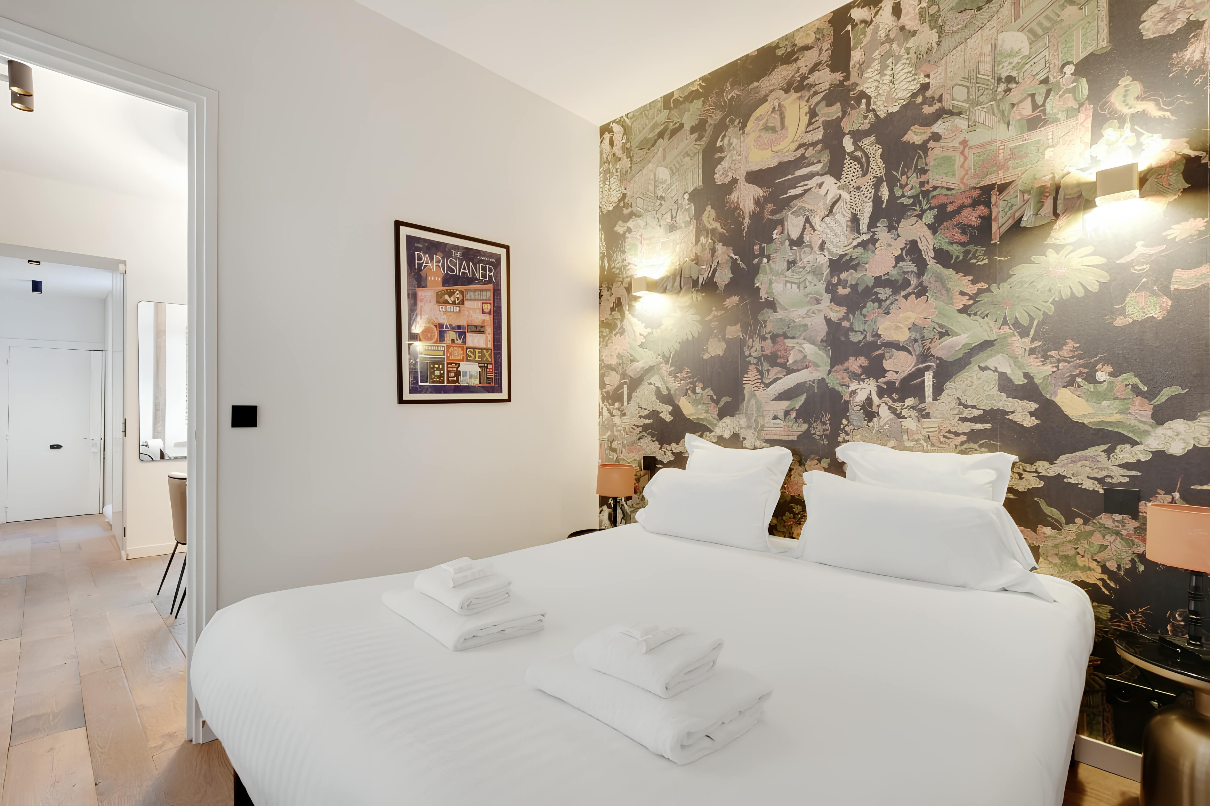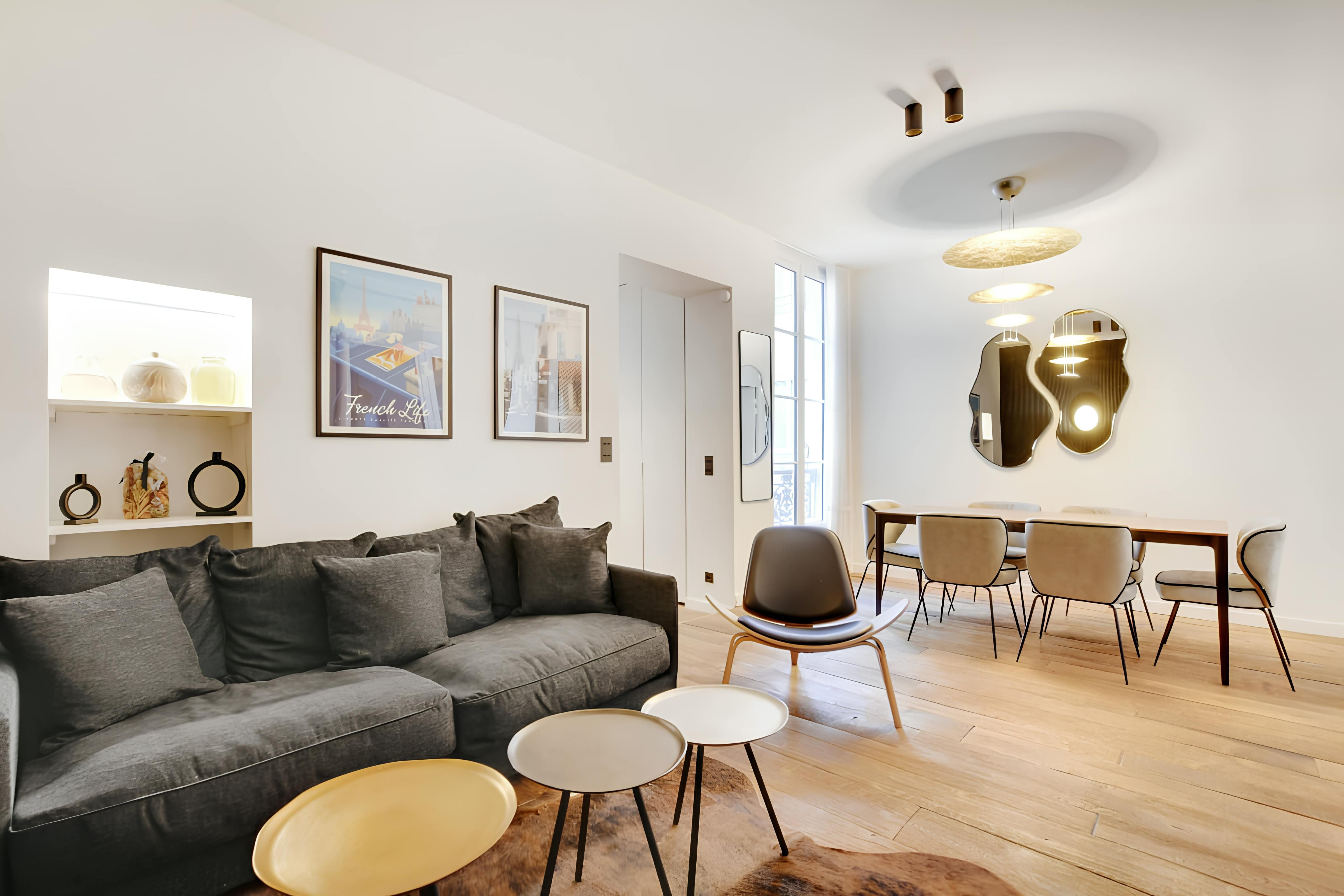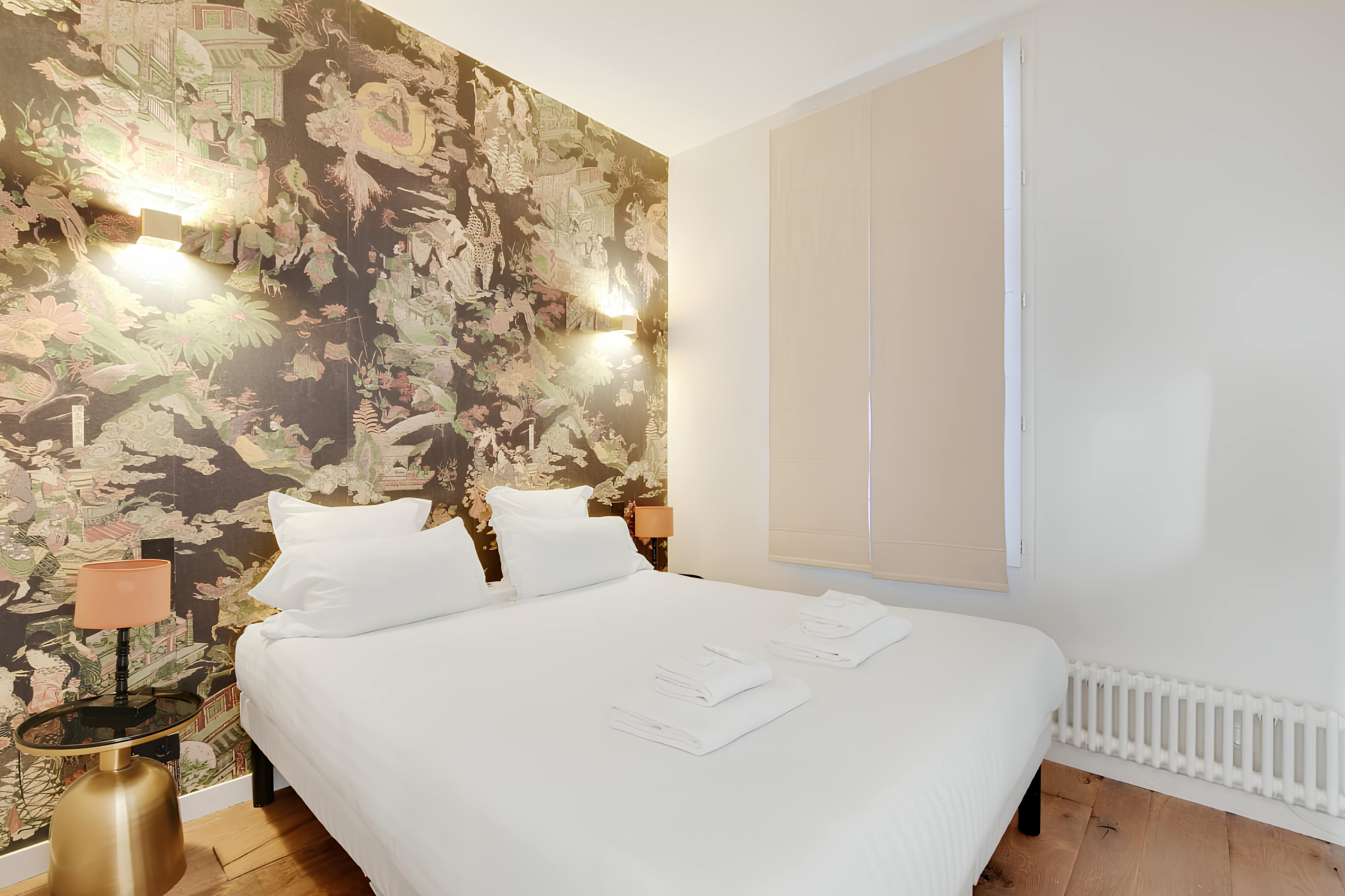This apartment works nicely for those seeking a base in central Paris. Though two guests will sleep on a sofa bed, there's just enough room to unwind in the lounge. Both bedrooms feature serpentine wallpaper inspired by Tibetan murals – it adds a whimsical touch to your nightly routine. The kitchen has all you need to rustle up a bite to eat, though we suggest dining out at the restaurants on your doorstep. Speaking of location, you're well-connected by metro or on foot to all the must-sees – be it the Louvre, Le Marais, Opera Garnier, or Notre Dame.