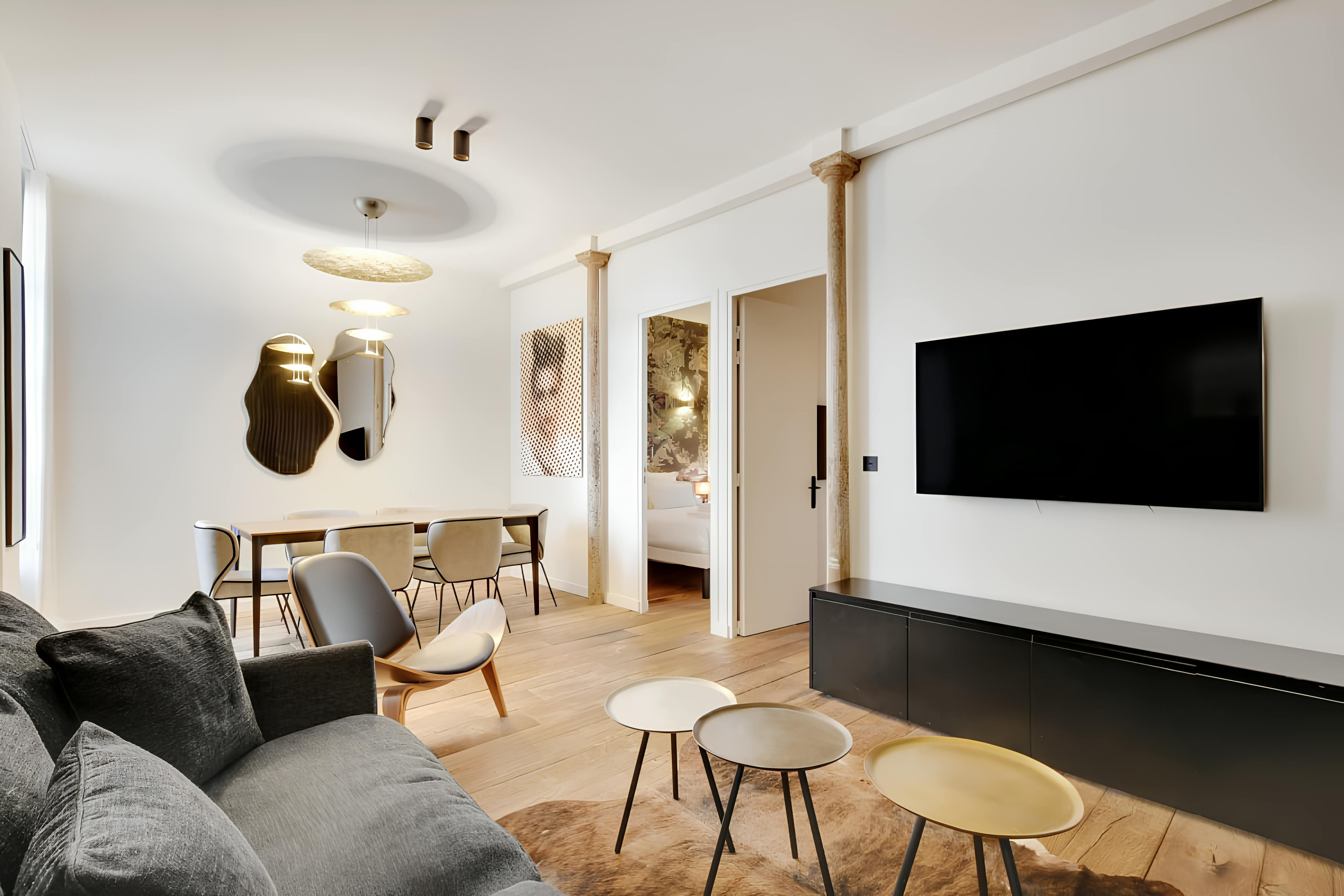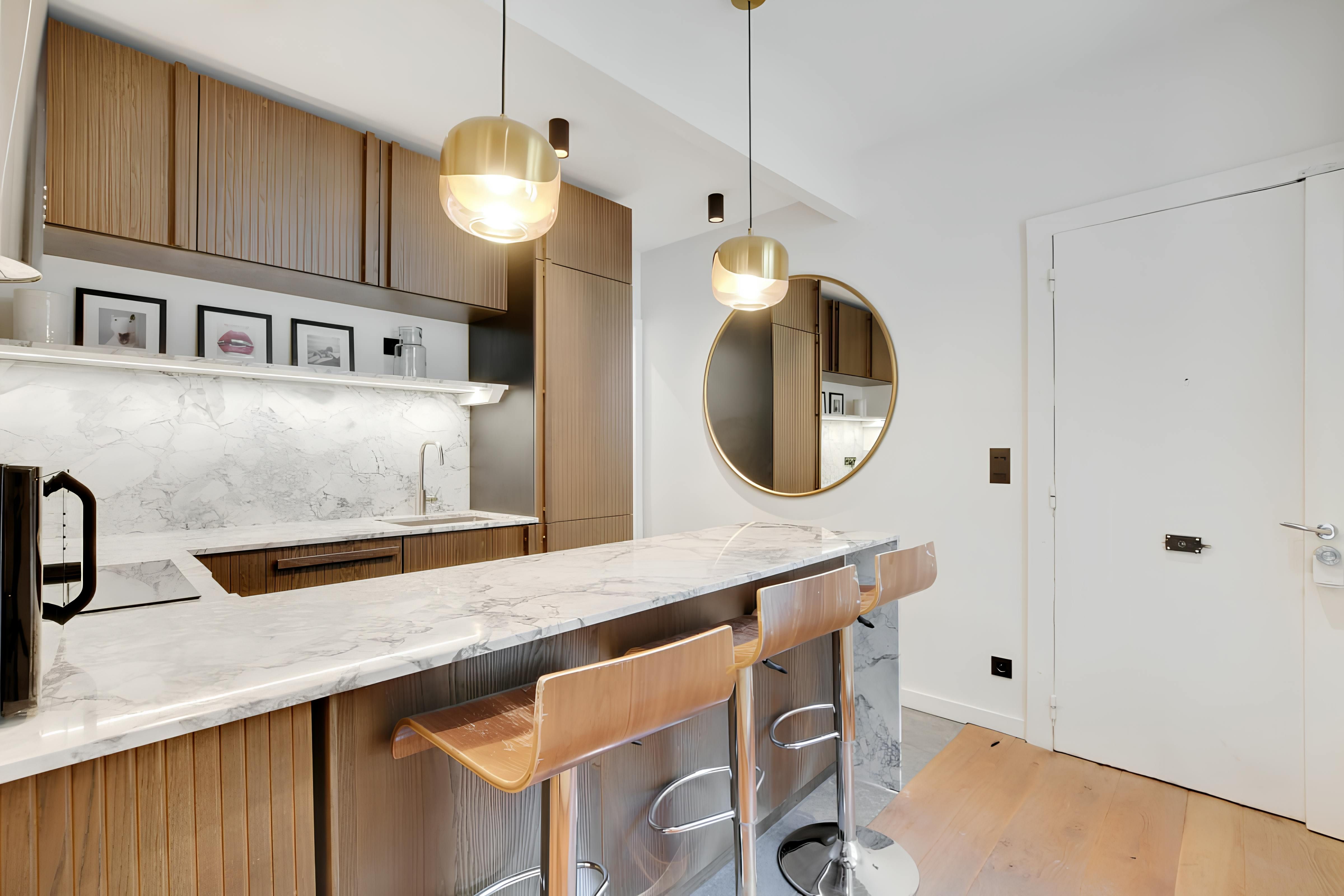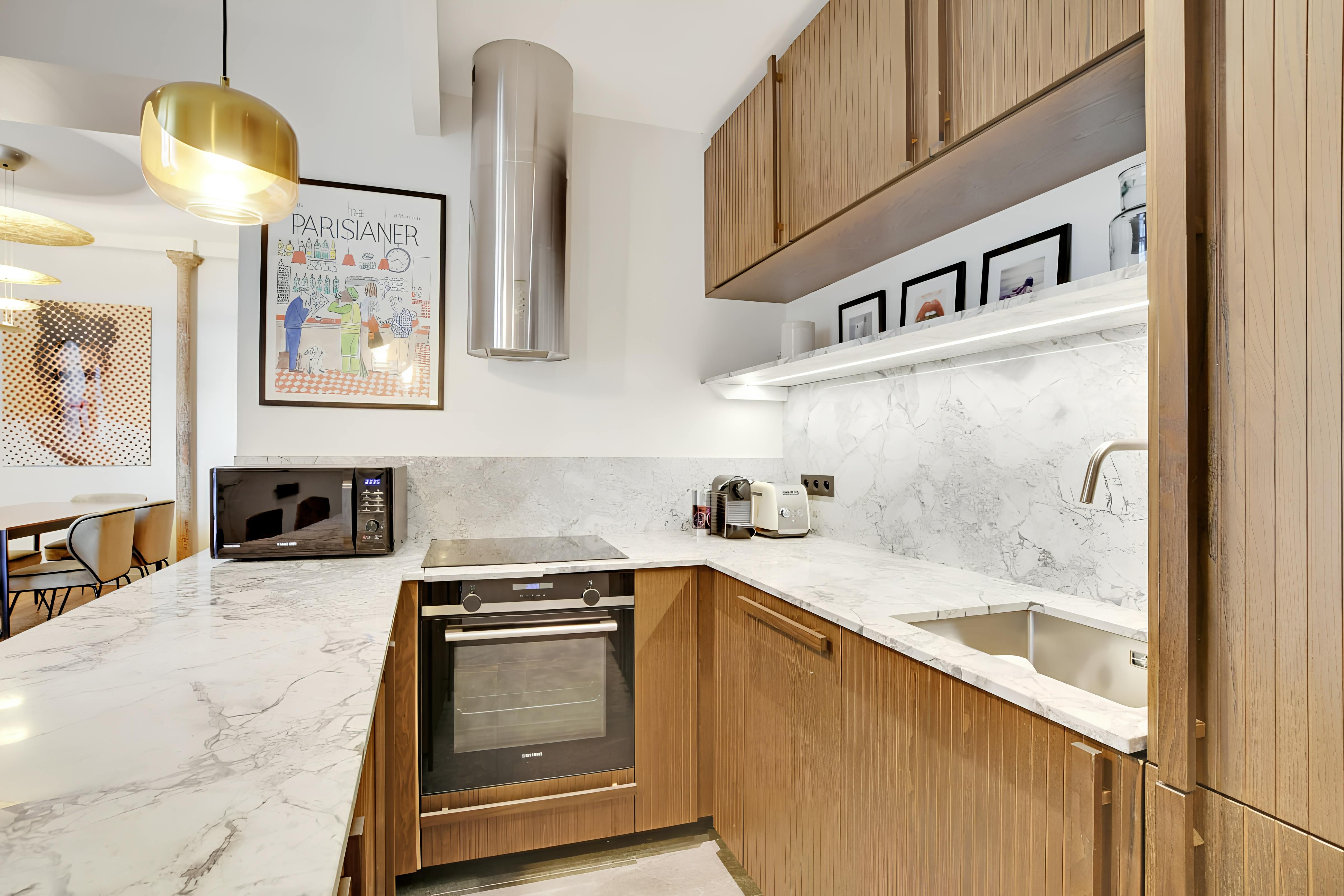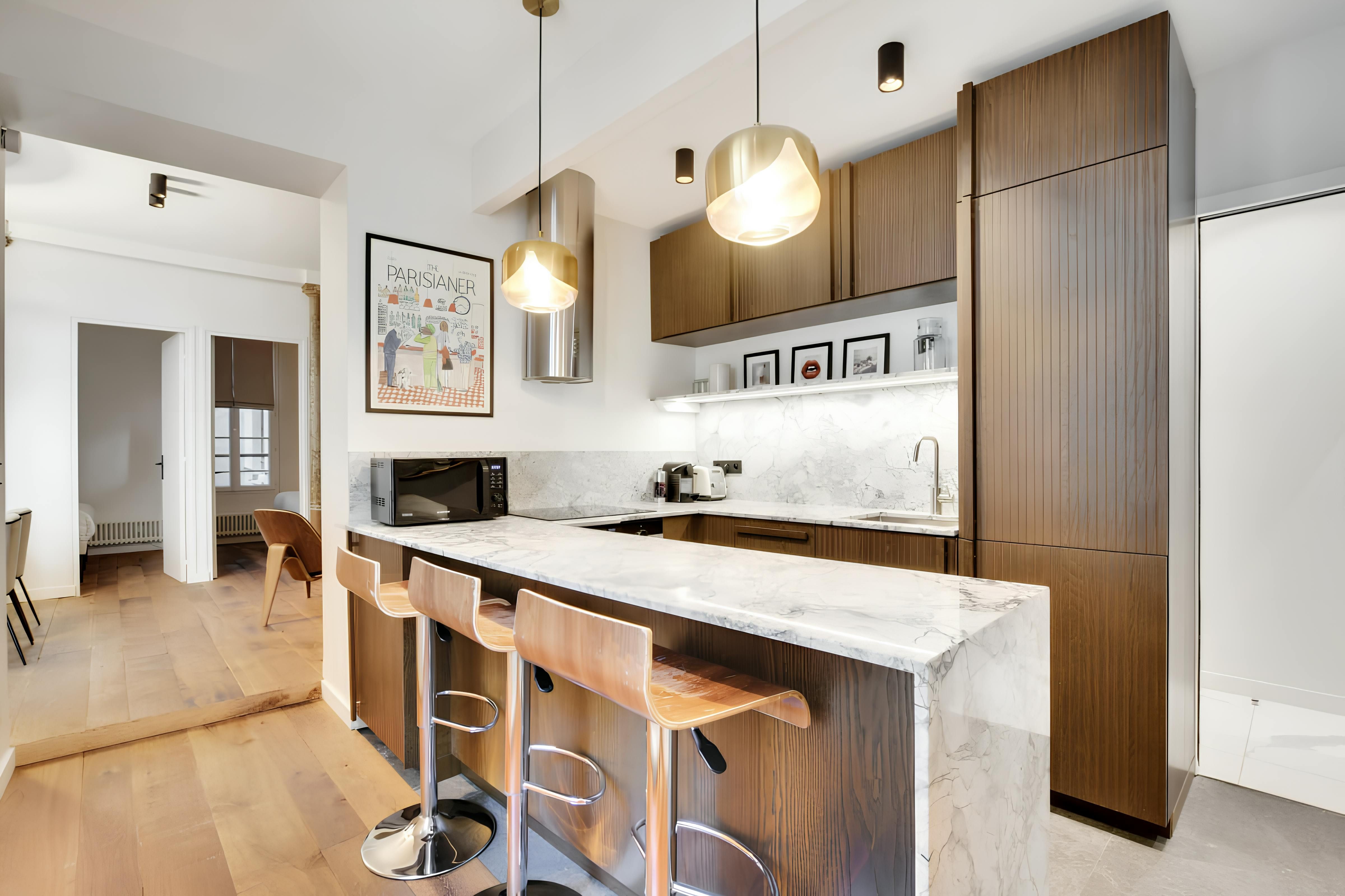 This apartment works nicely for those seeking a base in central Paris. Though two guests will sleep on a sofa bed, there's just enough room to unwind in the lounge. Both bedrooms feature serpentine wallpaper inspired by Tibetan murals – it adds a whimsical touch to your nightly routine. The kitchen has all you need to rustle up a bite to eat, though we suggest dining out at the restaurants on your doorstep. Speaking of location, you're well-connected by metro or on foot to all the must-sees – be it the Louvre, Le Marais, Opera Garnier, or Notre Dame.
