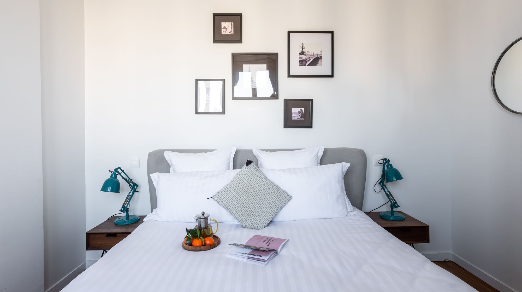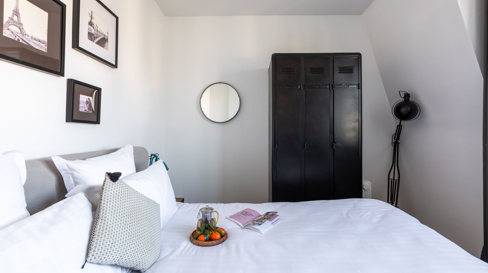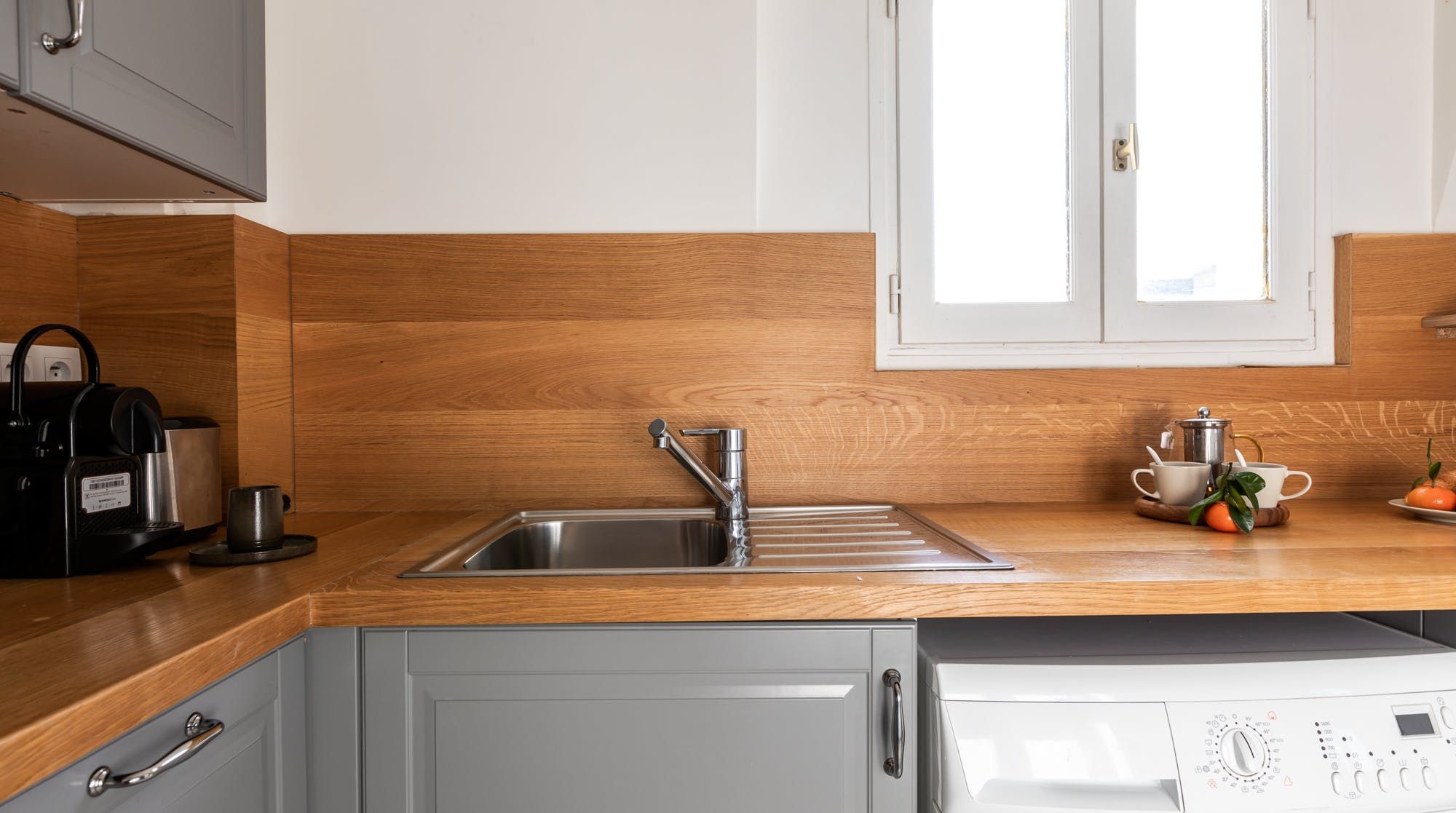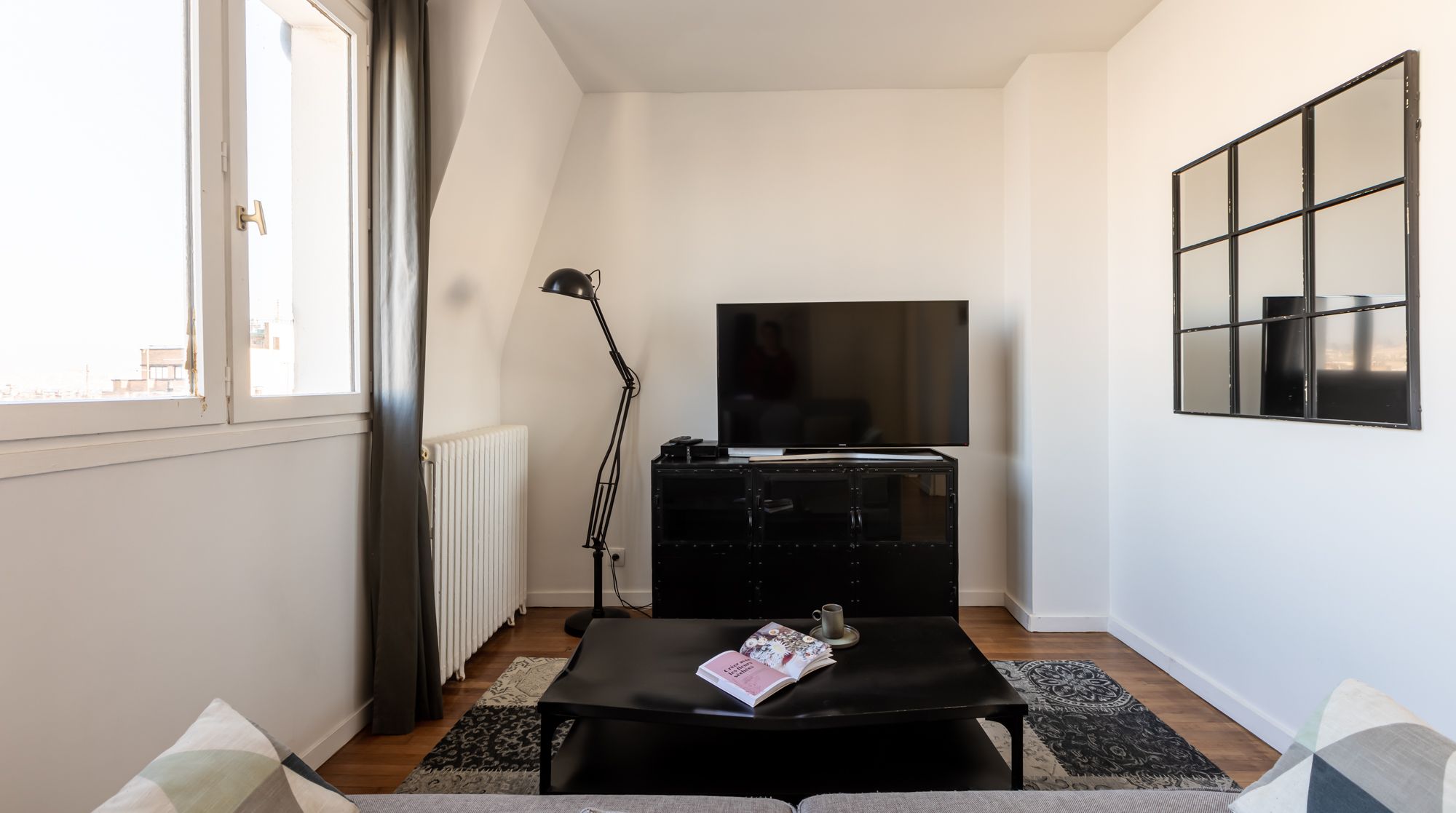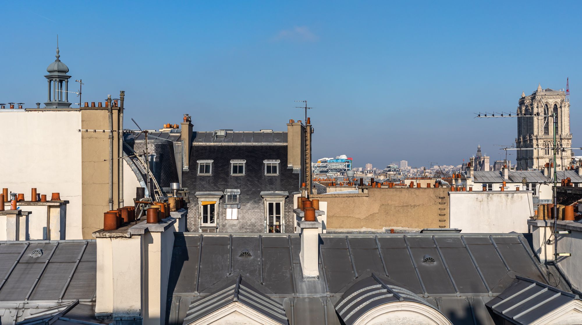 This pocket-sized flat may be snug, but trust us, the scenery more than makes up for it. From the window, you'll have a birds-eye view of Notre Dame in the distance, standing tall over Paris' rooftops. It's a striking peek across the city, and combined with the generous amount of natural light and simple aesthetic, it makes a stay here feel unique. Following a long day exploring, come home and unwind with a glass of wine on the sofa or a quick nibble around the dining table. There's not heaps of space – in fact, two guests will be sleeping on the sofa bed – but the location is excellent. Situated on a quiet street in the Latin Quarter, you're just a short walk from the Seine, Luxembourg Gardens and, of course, Notre Dame. We love this culturally-rich area – it's ripe with eateries, cafes and charming shops frequented by Sorbonne students – and all the major sights are either a quick metro ride or stroll away.