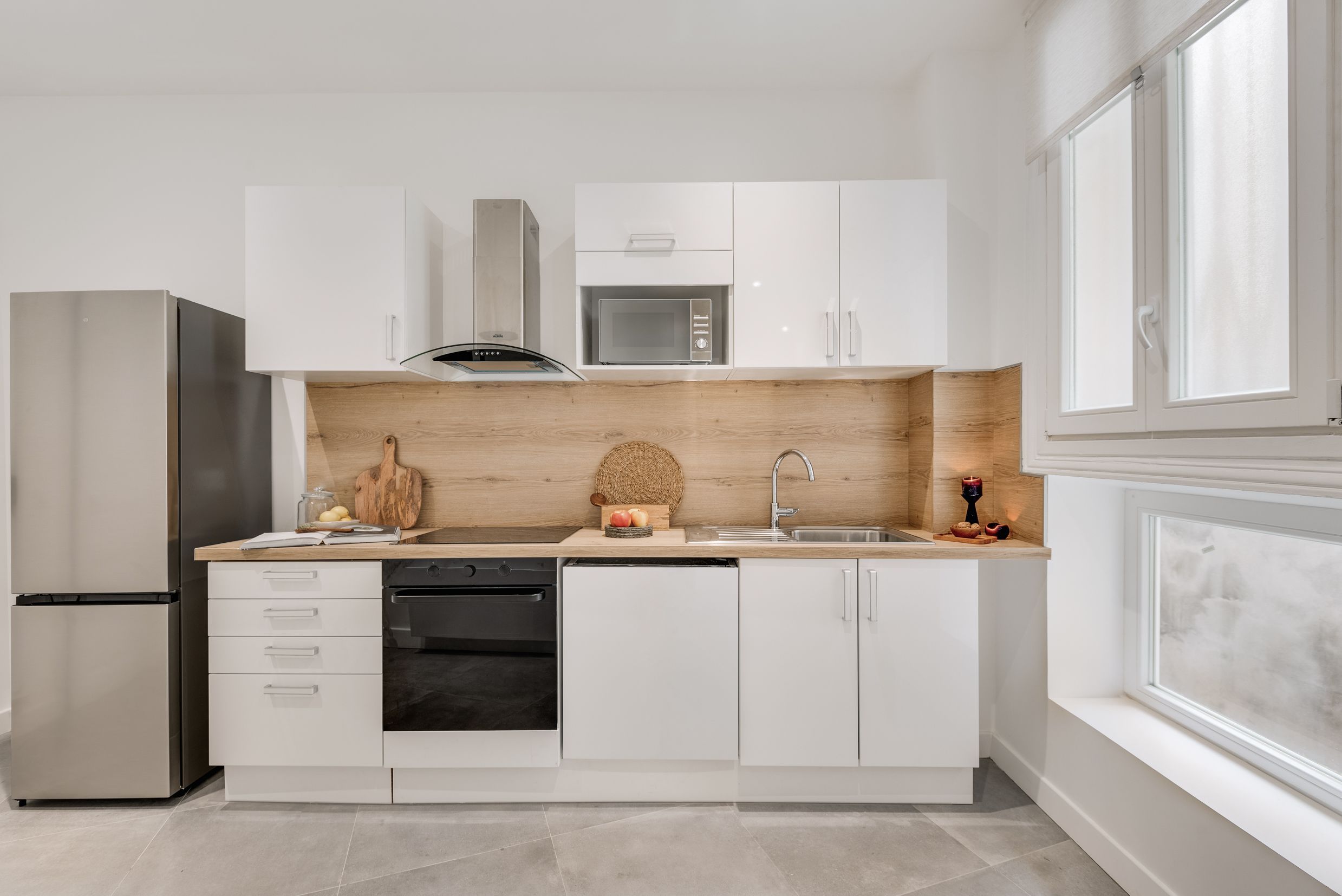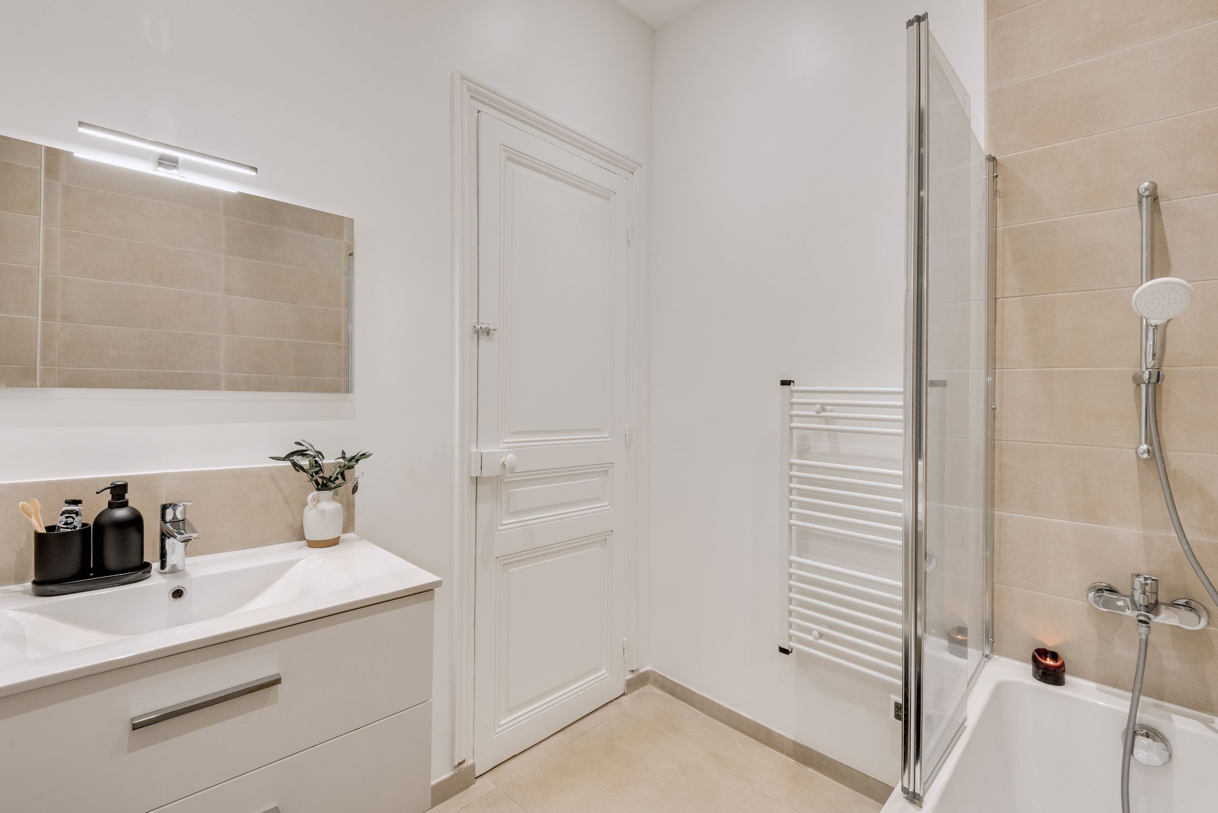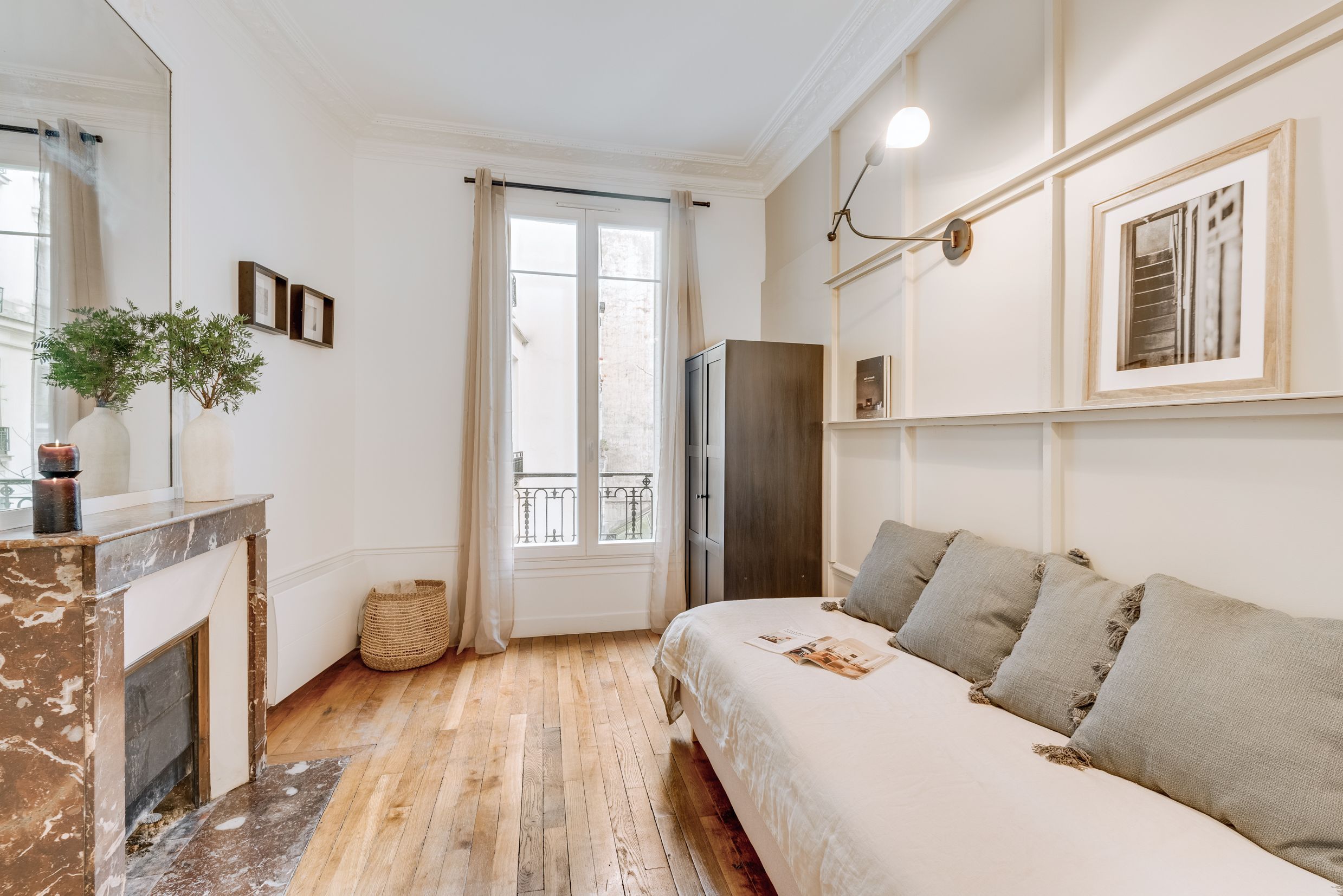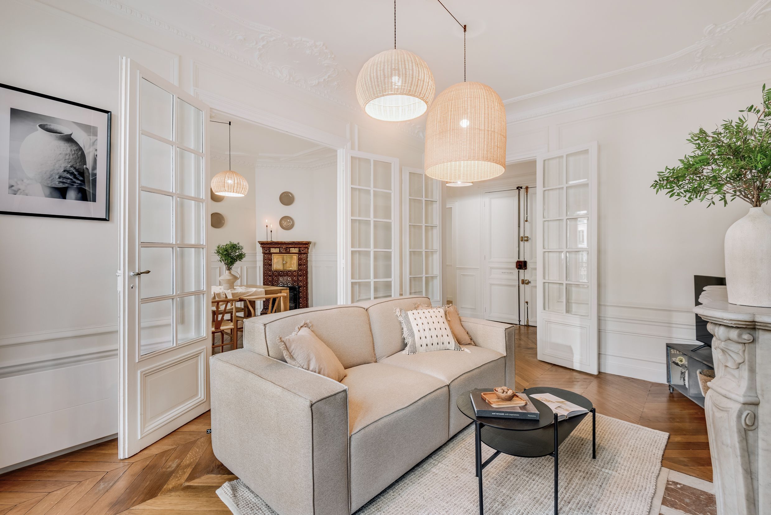 With parquet flooring, intricate coving, and an ornate fireplace, this apartment oozes Parisian elegance. Perfect for a family on a getaway to the French capital, you’ll find everything needed for a comfortable stay here. We love the living area, with light flooding in through the full length windows, while the bedrooms promise a serene spot to rest your head after a busy day of sightseeing. Locally, you’ll find Notre Dame Cathedral, the Musée National Picasso, and the Hôtel de Ville all within easy reach, and well worth a visit.