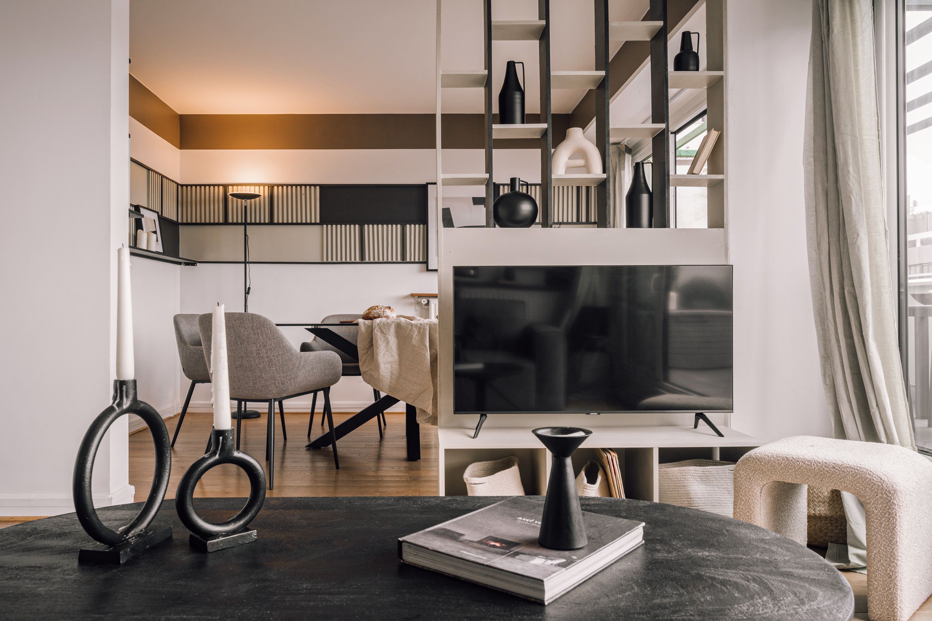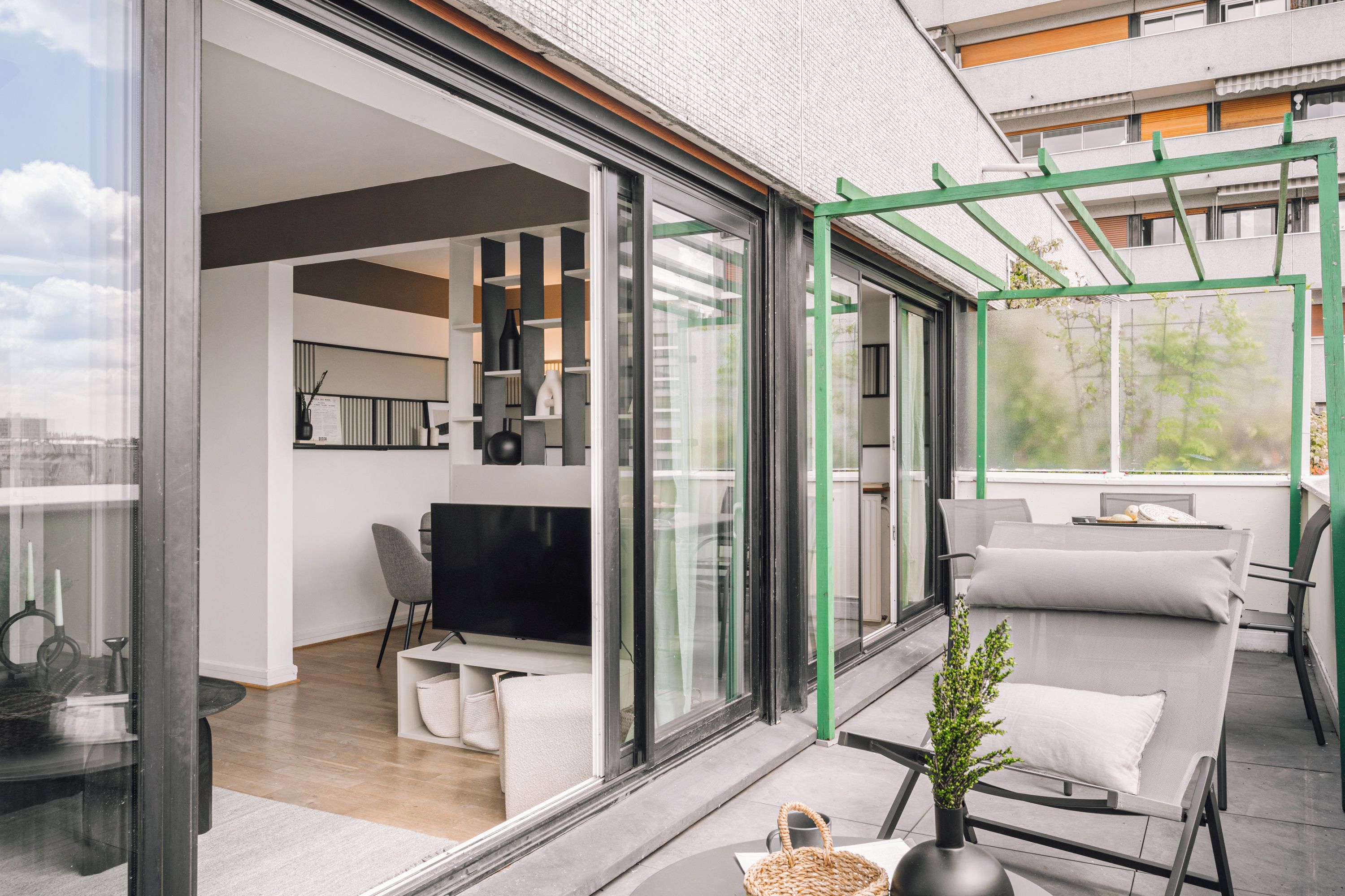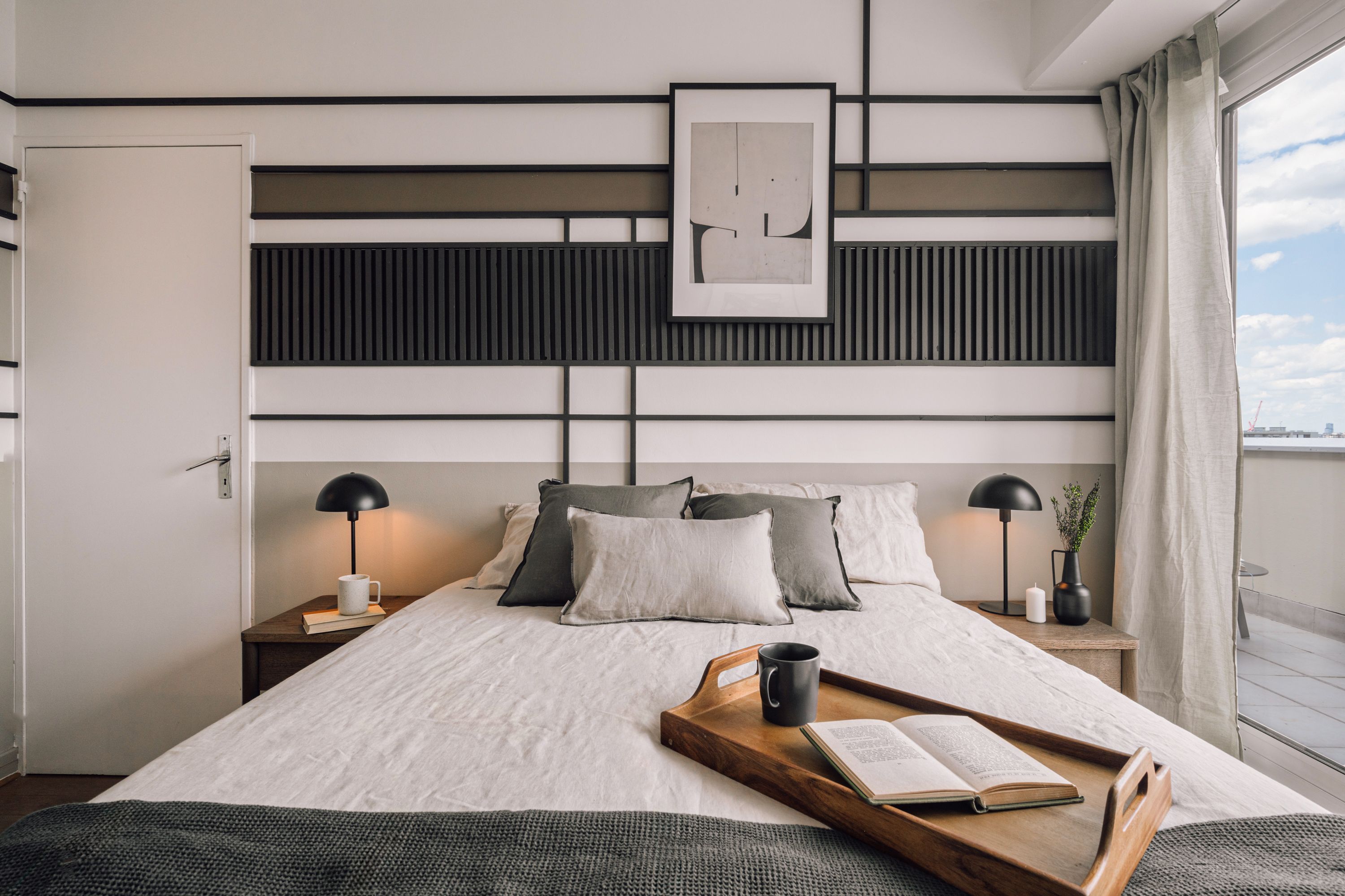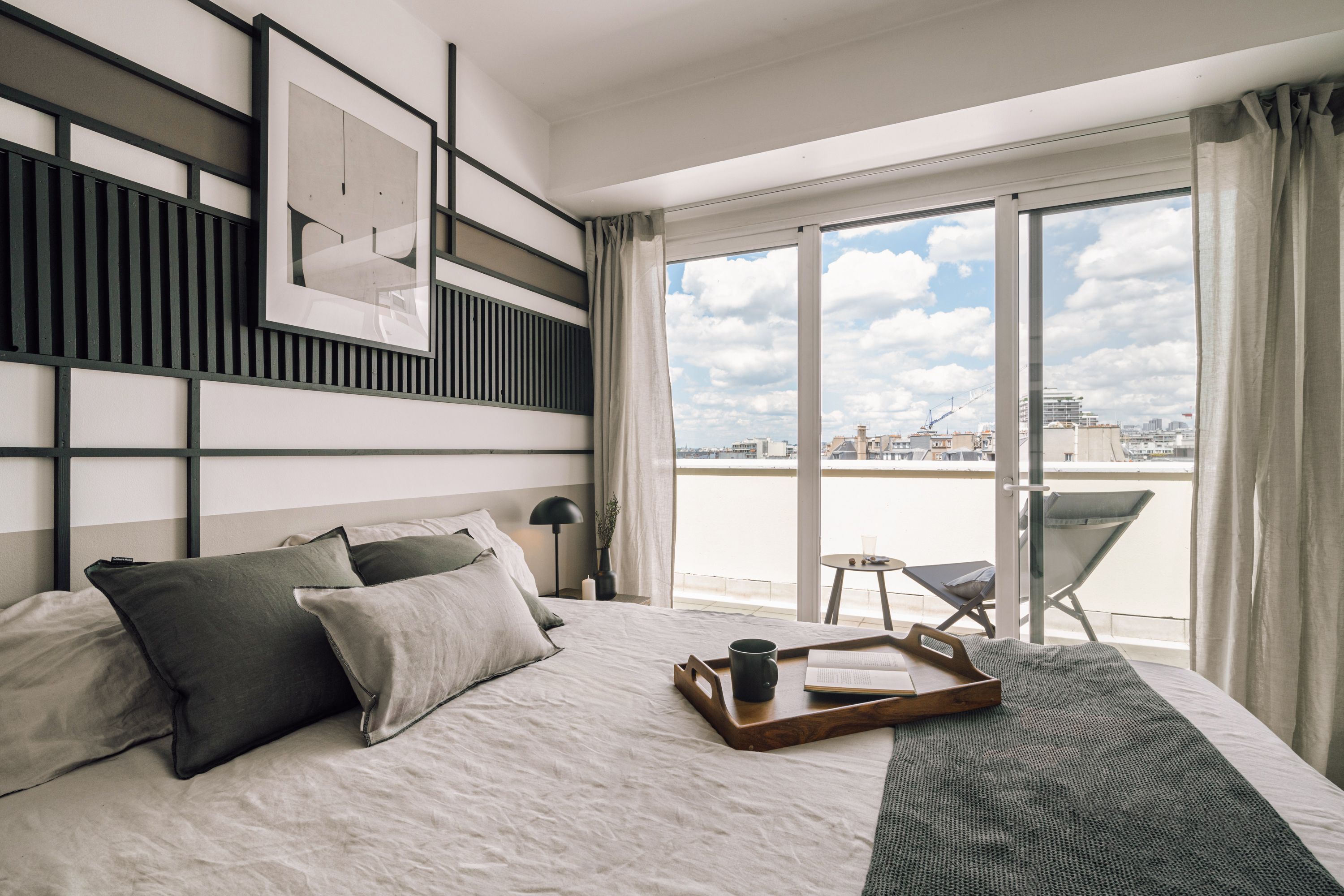 From far-reaching views to speedy wi-fi, this apartment has everything you need for a fuss-free stay. The highlight is the two balconies – both equally ideal for relaxing in the sunshine. One is right off the living area, while the second is accessed from the bedrooms and has a glimpse of the Eiffel Tower. Indoors, there's a desk for digital nomads, a vinyl player for music buffs, and a small (albeit slightly dated) kitchen for the group's chef. As for location, you'll be based in the 11th arrondissement. It's incredibly well-connected thanks to Rue des Boulets metro and the Place de la Nation, which are only a short walk away.