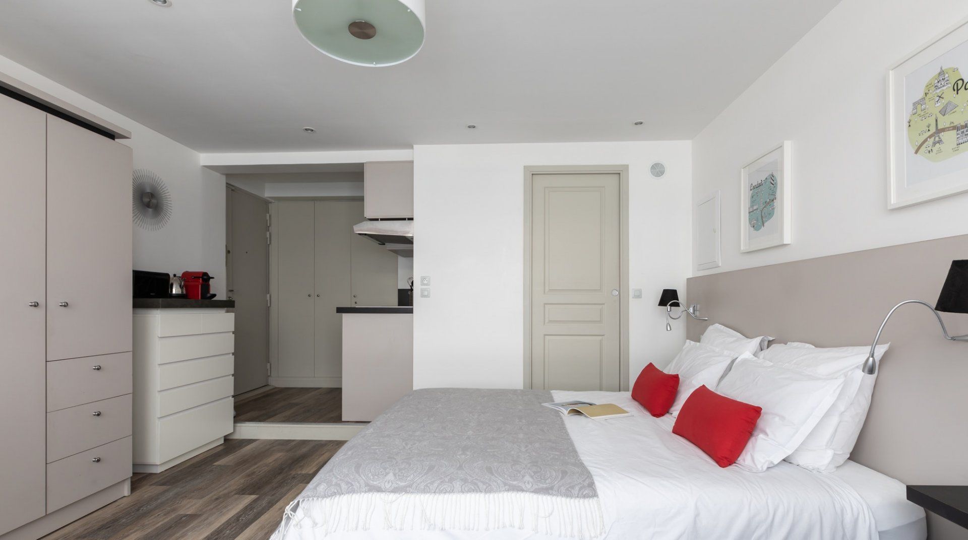 If you're looking for a place in the heart of Paris, this sleek and contemporary home, nestled down a quiet street, is perfect. It's only a ten-minute walk from the Eiffel Tower, while the Paris Métro station La Motte-Picquet Grenelle is just around the corner, literally a one-minute stroll away, if you want to explore this city further. You're also well served with plenty of brasseries and restaurants right on your doorstep here. Back at this stylish apartment, the thoroughly modernised interiors are complemented with plenty of light, thanks to the large windows. Enjoy a café au lait and some croissants for breakfast at your dining table, or prepare a light lunch in the kitchen, before heading out to enjoy the City of Love's attractions.