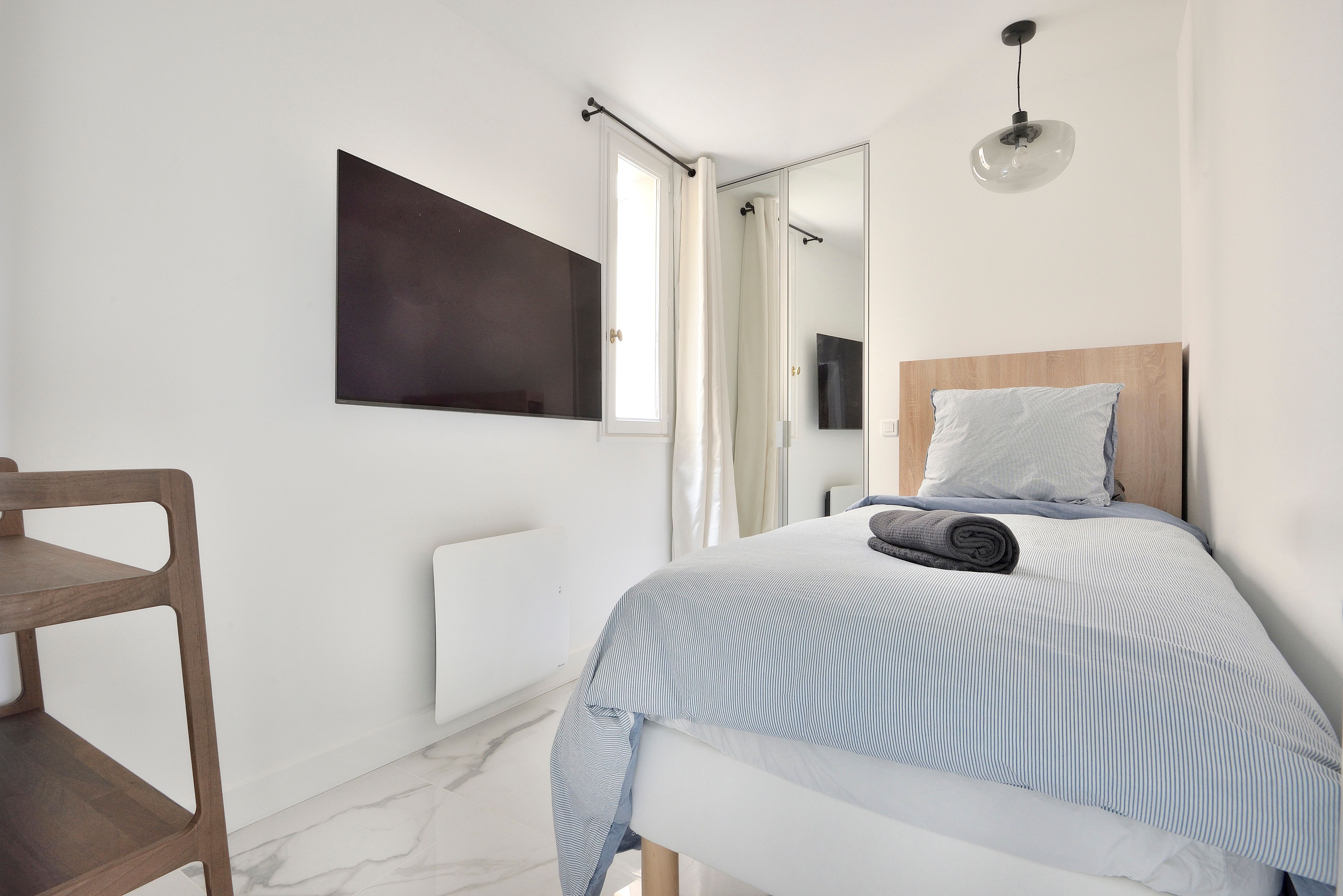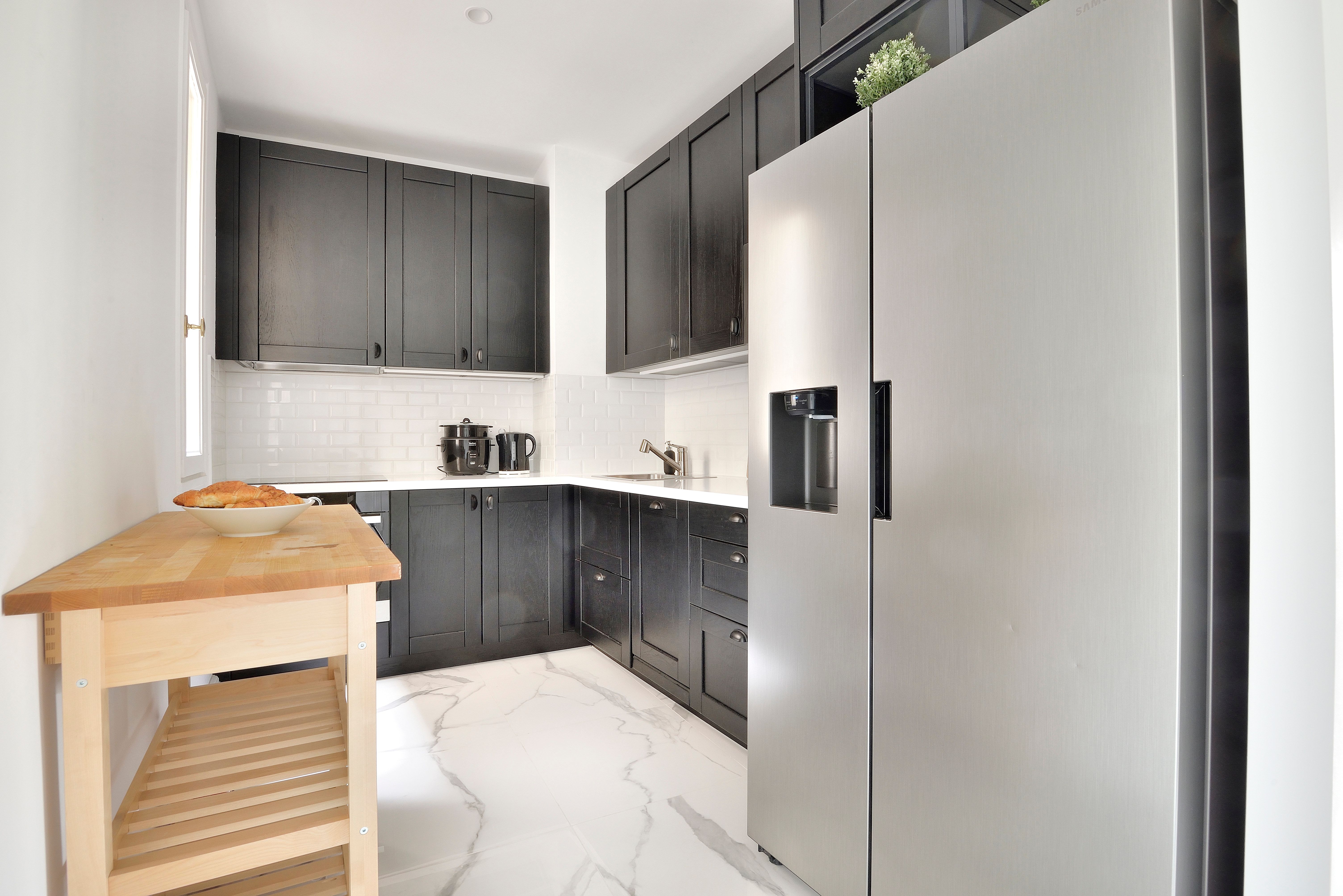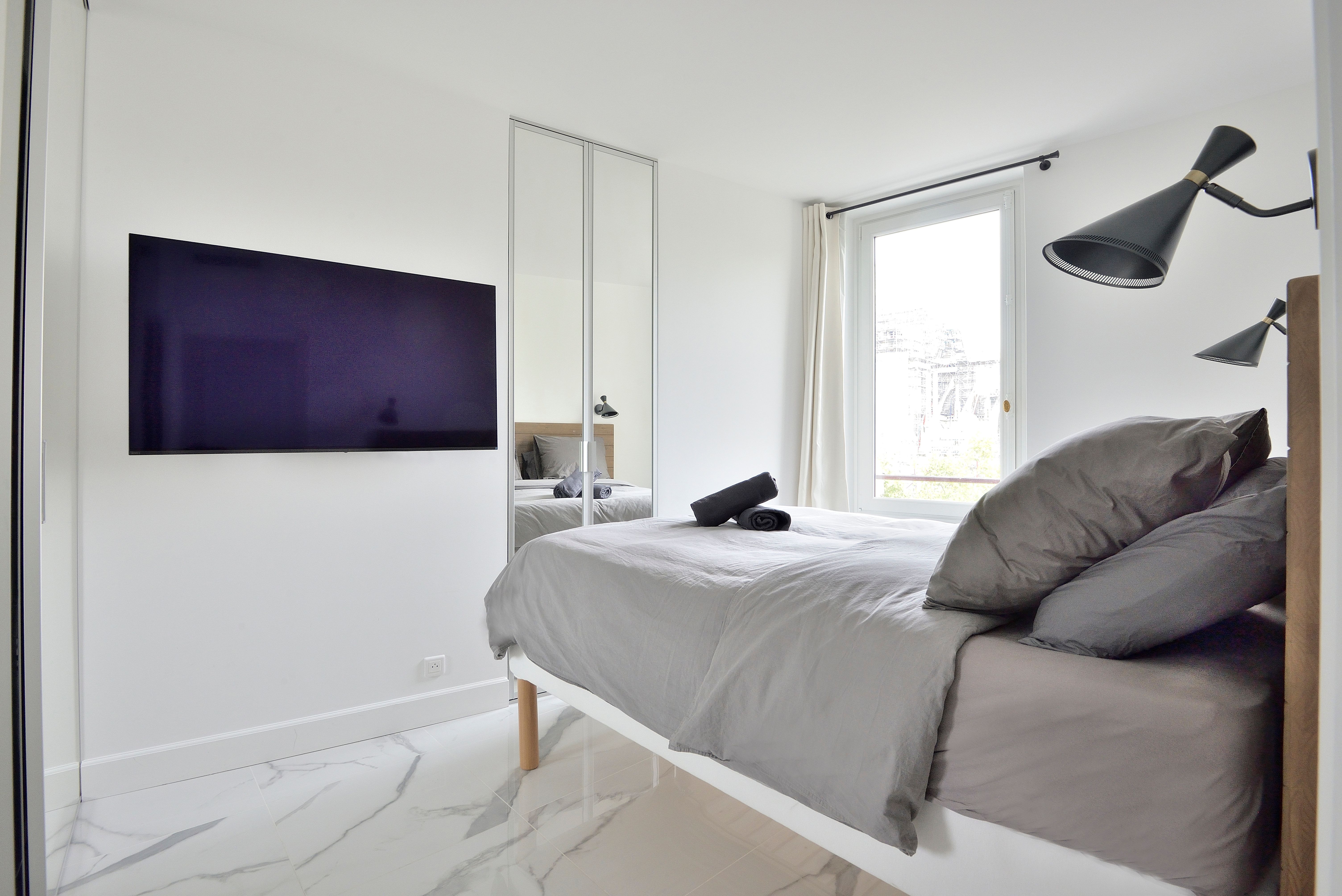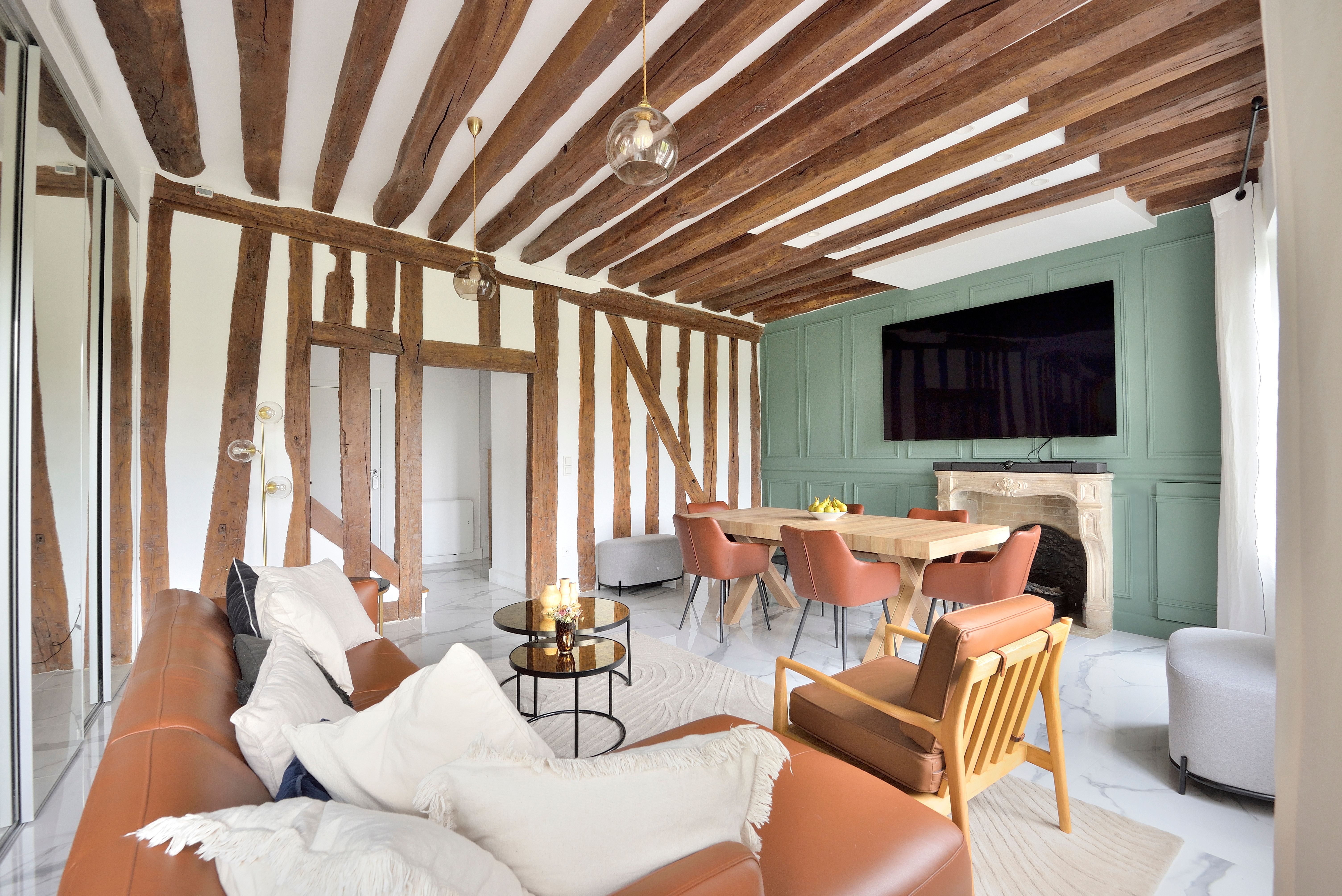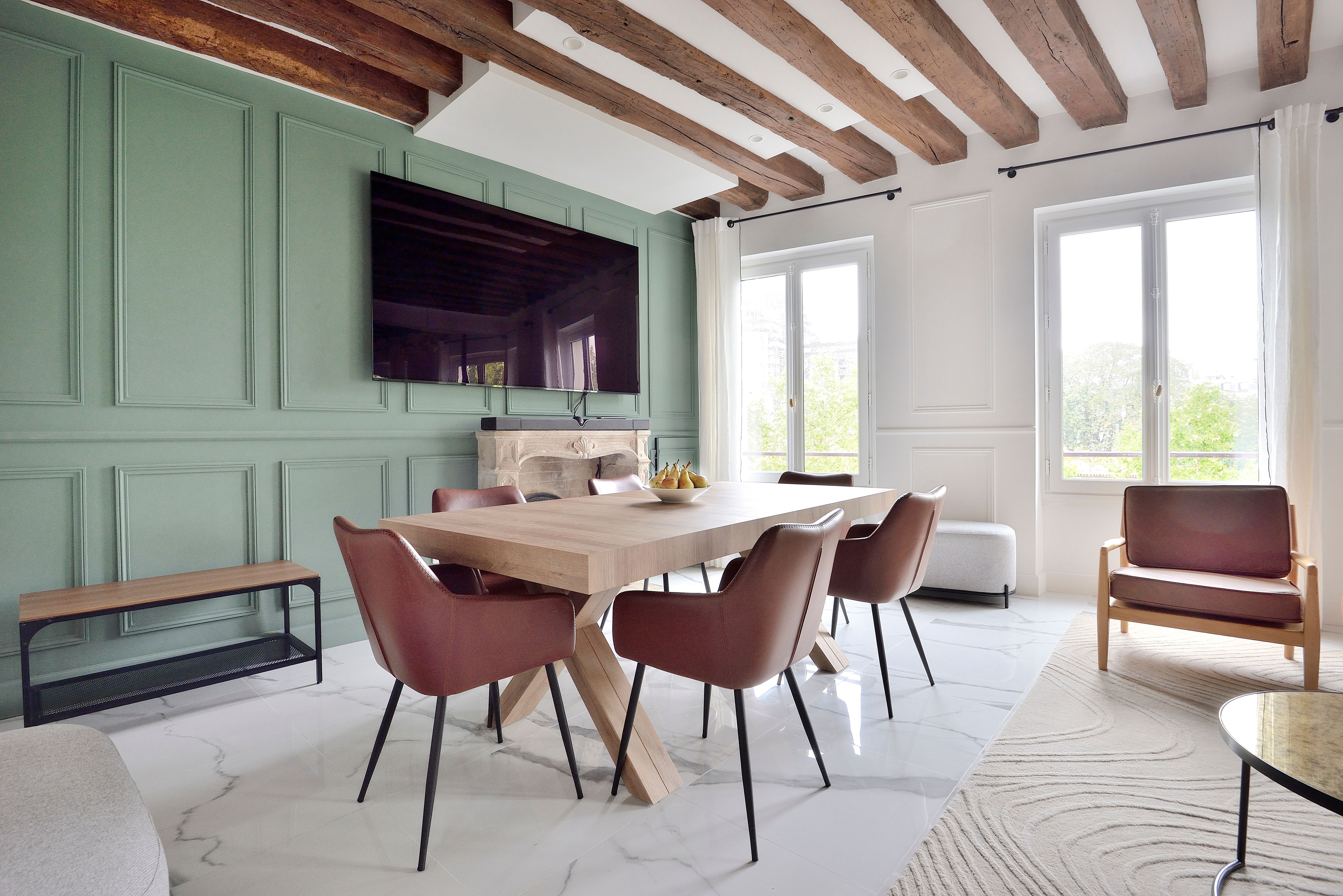 It's not a secret that this apartment's location is what initially caught our eye. Located on the banks of the Seine, Notre Dame is so close you'll be able to glimpse the spires from the windows. Plus, the Latin Quarter's many eateries and shops are just a short stroll away. Our favourite feature here is the wooden details, especially the timber ceilings – they are so charming and characterful. It's also split across two levels, so you'll have plenty of space, though it's worth noting that the building may not have a lift. With an incredible setting and comfortable living area, it ticks all the boxes for us.