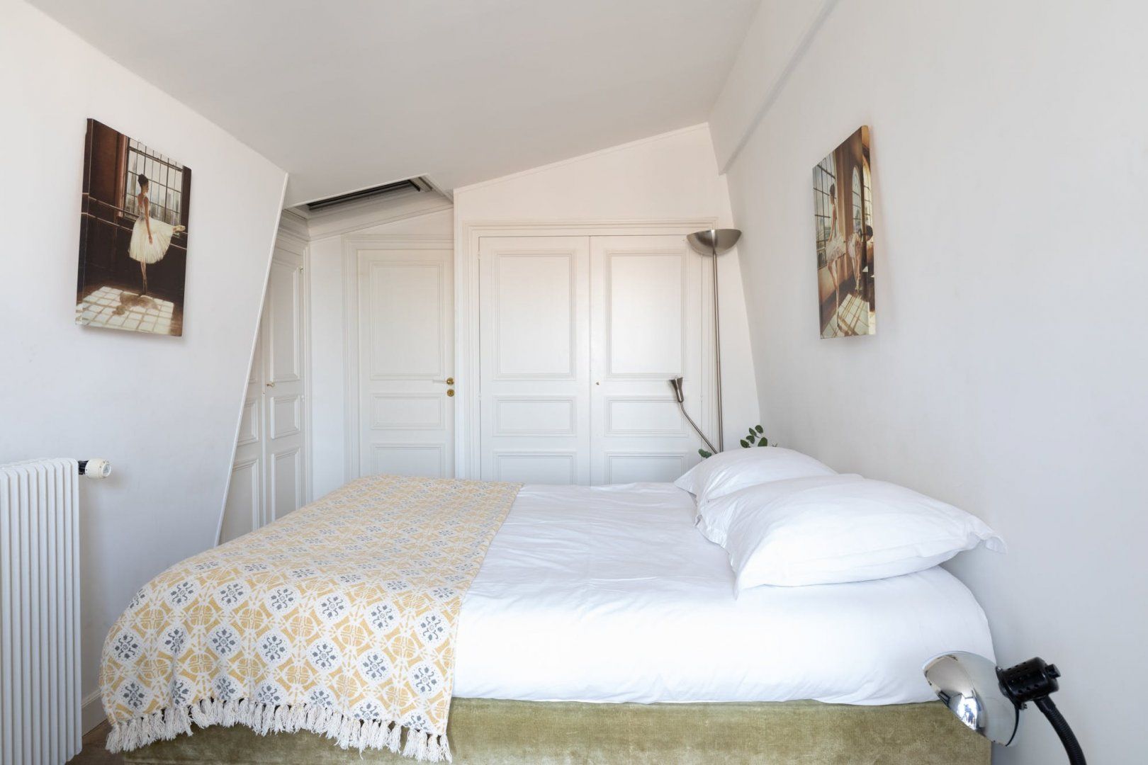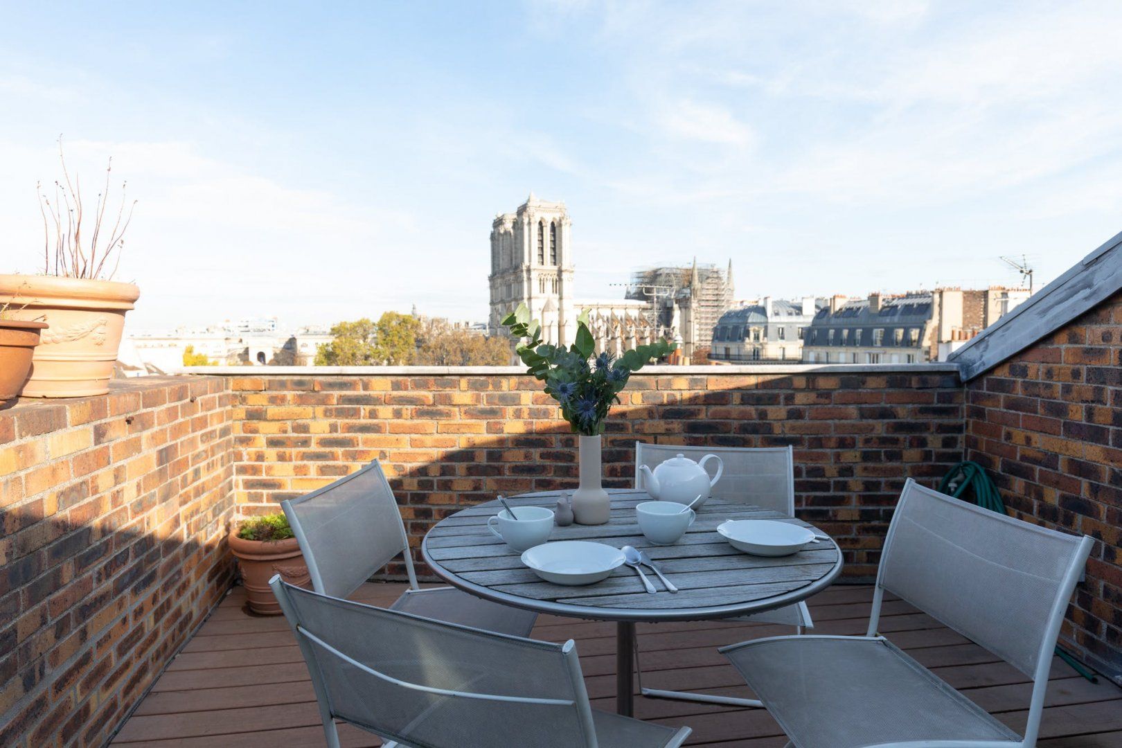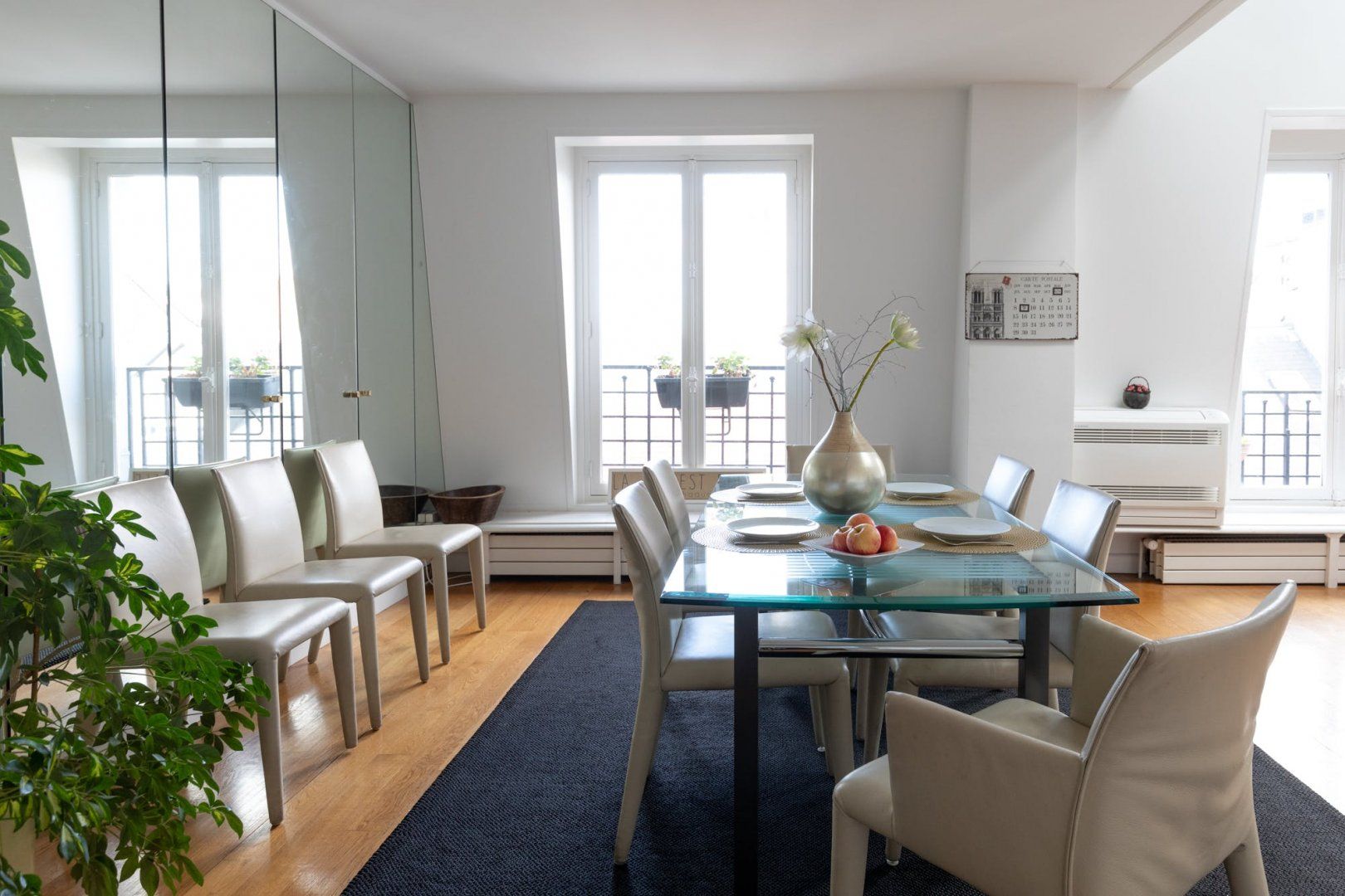This three-bedroom family home is perched on the top floors of a building in the Rive Gauche, just opposite the Île de la Cité and, therefore, boasts stunning views of Notre-Dame from its privileged sunny terrace. A modern home with airy living spaces and thoughtful amenities, a well-equipped kitchen with high-end Gaggenau appliances will delight any aspiring home cook. With air conditioning throughout, Smiling Cherub is an ideal home for a group looking for a central spot without compromising on modern comforts.