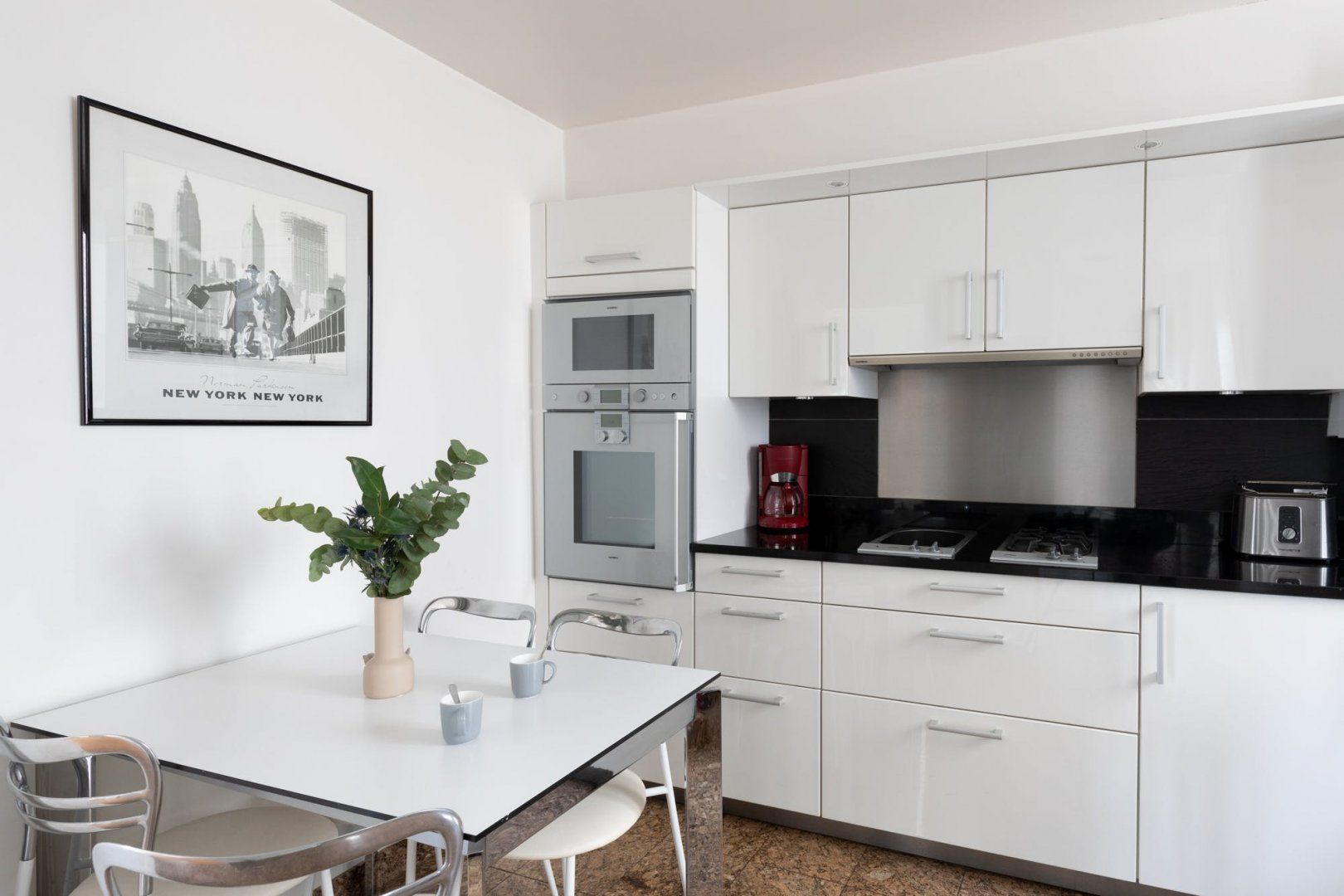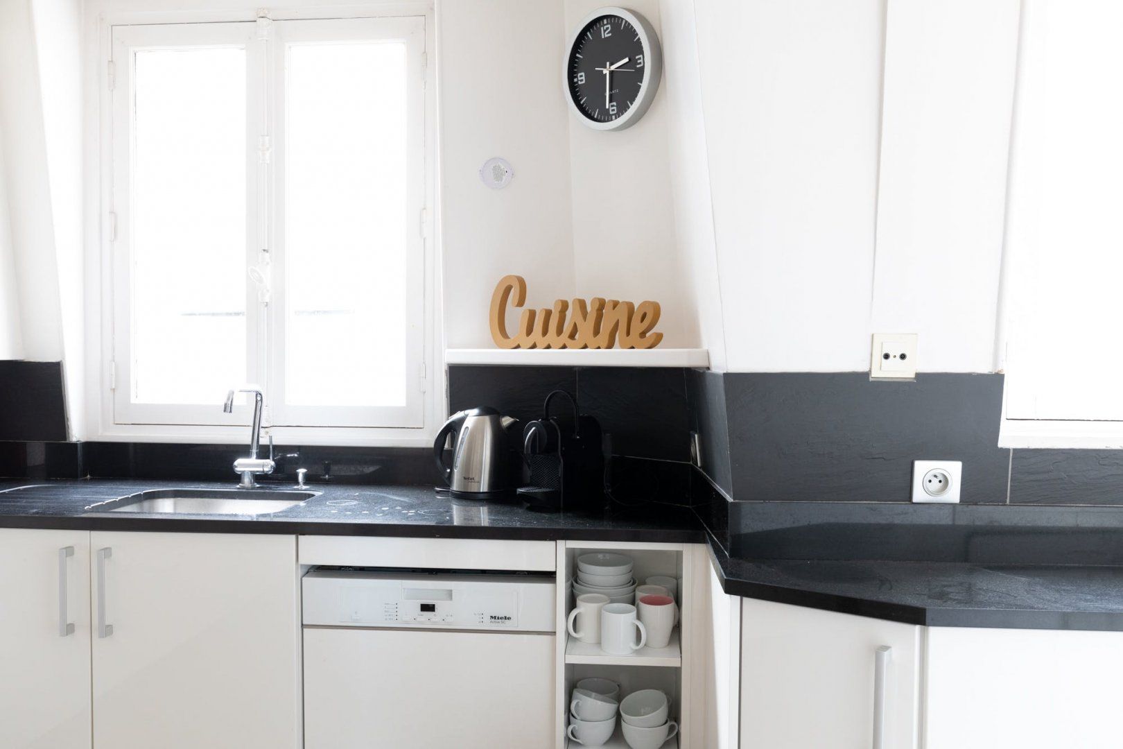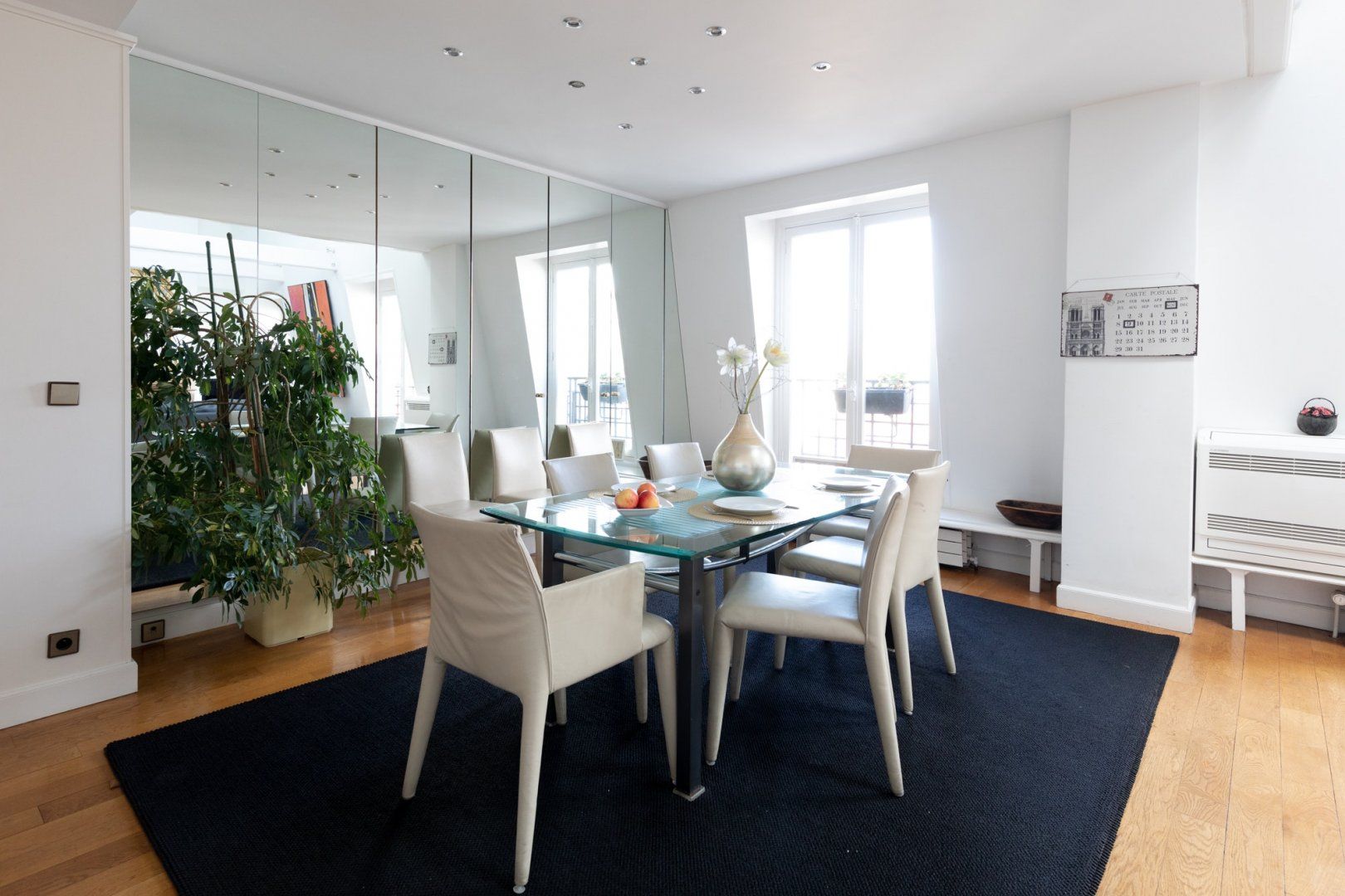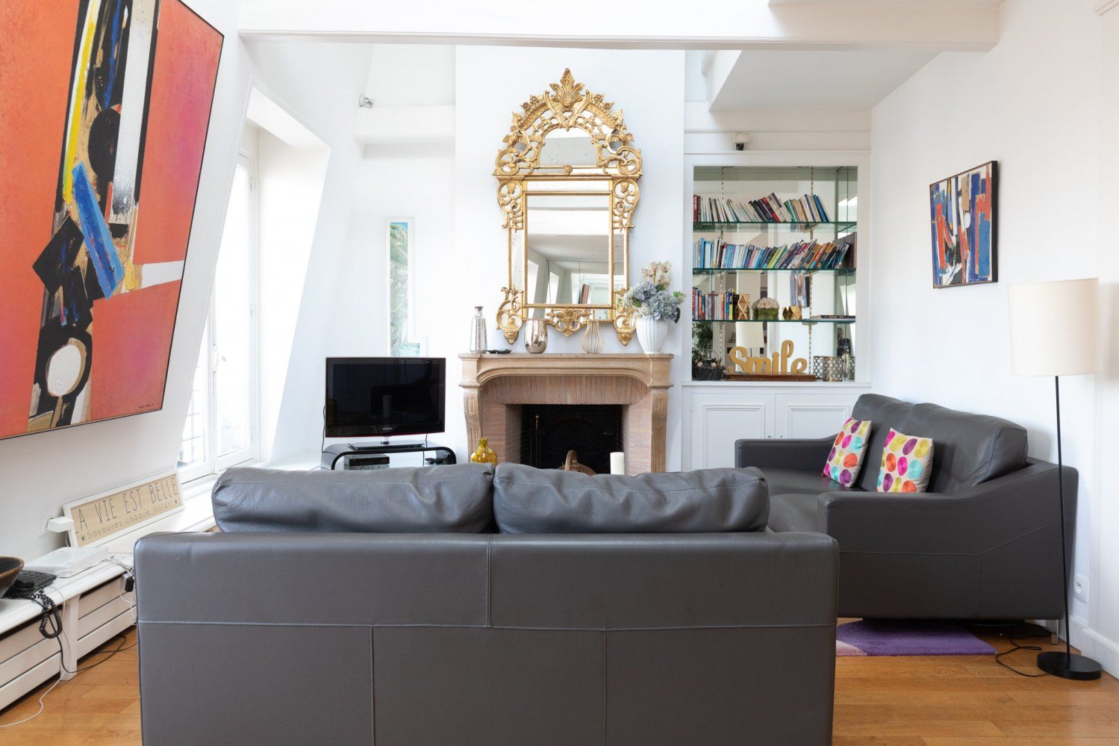 This three-bedroom family home is perched on the top floors of a building in the Rive Gauche, just opposite the Île de la Cité and, therefore, boasts stunning views of Notre-Dame from its privileged sunny terrace. A modern home with airy living spaces and thoughtful amenities, a well-equipped kitchen with high-end Gaggenau appliances will delight any aspiring home cook. With air conditioning throughout, Smiling Cherub is an ideal home for a group looking for a central spot without compromising on modern comforts.