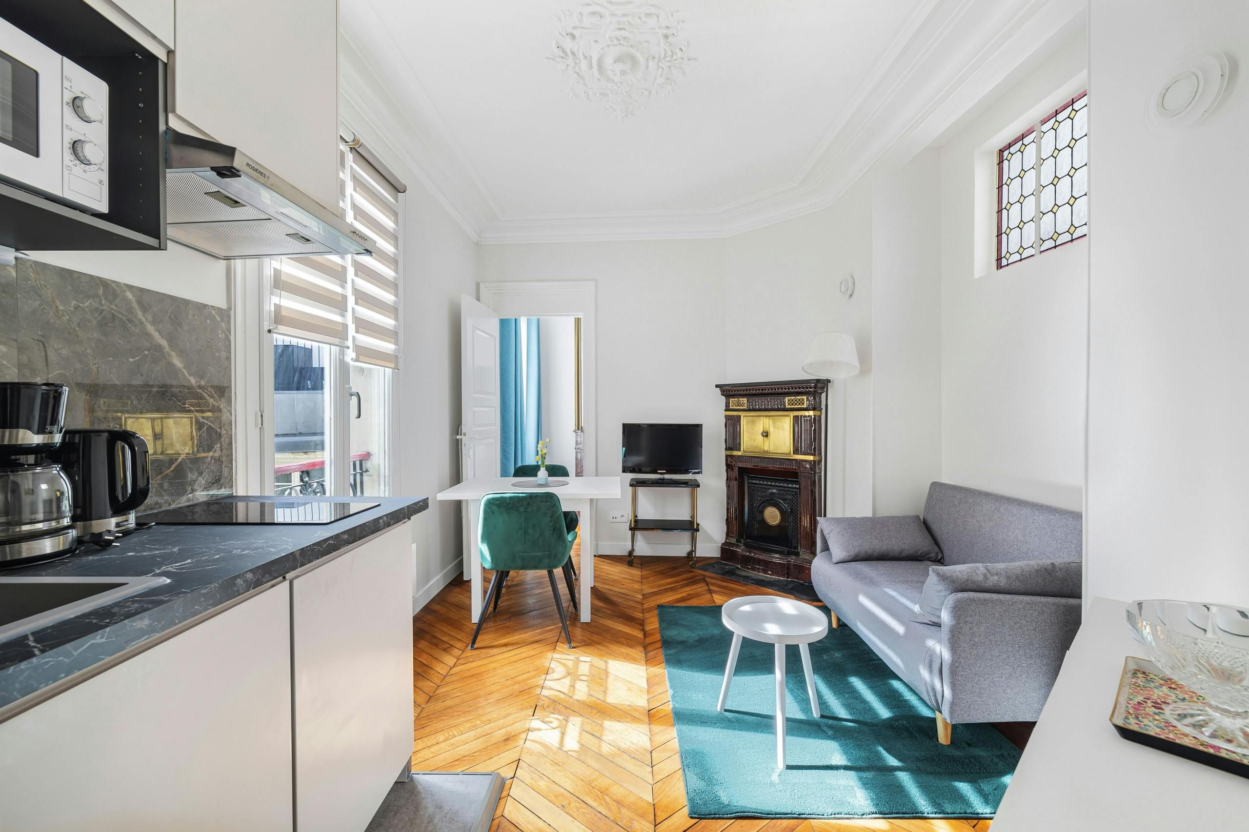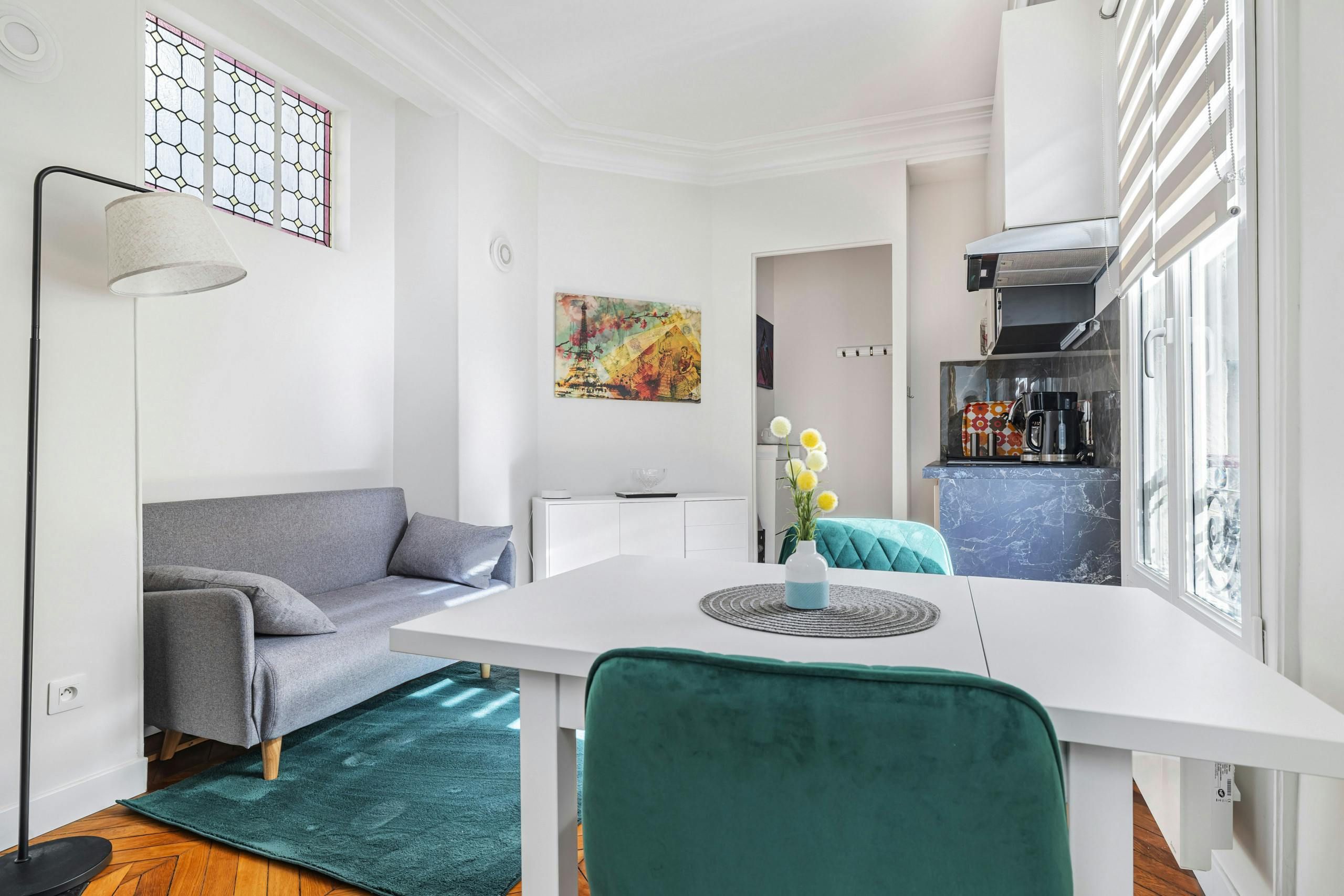 With an address right in the heart of the Marais, you’ll be staying in a fantastic location. You’ll be a short stroll from the Musée National Picasso-Paris, while plenty of boutiques, cafes and restaurants will be on your doorstep. Okay, so that’s the location, what about the home itself? Well, there’s no denying that the living space is compact, and the kitchenette doesn’t have an oven, but will you need one with all the eateries nearby? The bedroom, on the other hand, is a good size and there’s everything you more or less need for a comfy stay.