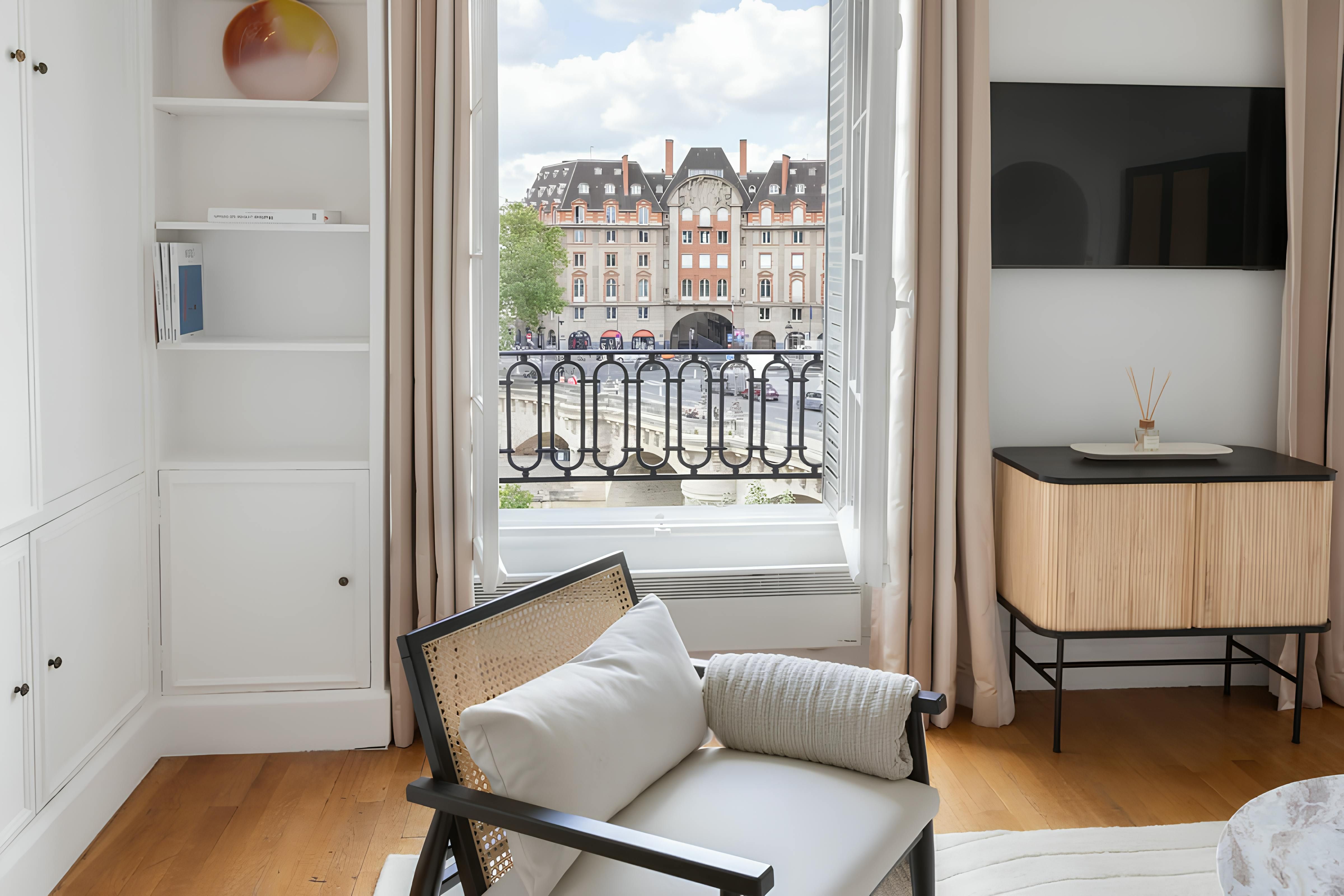 The Seine and Notre Dame Cathedral are your neighbours in this charming apartment. Set on the sought-after île-de-la-Cité, you'll be well-placed to explore on foot. Restaurants and cafes abound in the nearby Latin Quarter. Or, if seeing the sights is more your speed, you can stroll along the river towards the Louvre and Eiffel Tower. Back home, the climb to the fourth floor won't suit everyone, but we think the views overlooking the streets are worth it. The kitchen is a tad small and there isn't a dining space, but overall, it's a cosy and comfortable base for two.