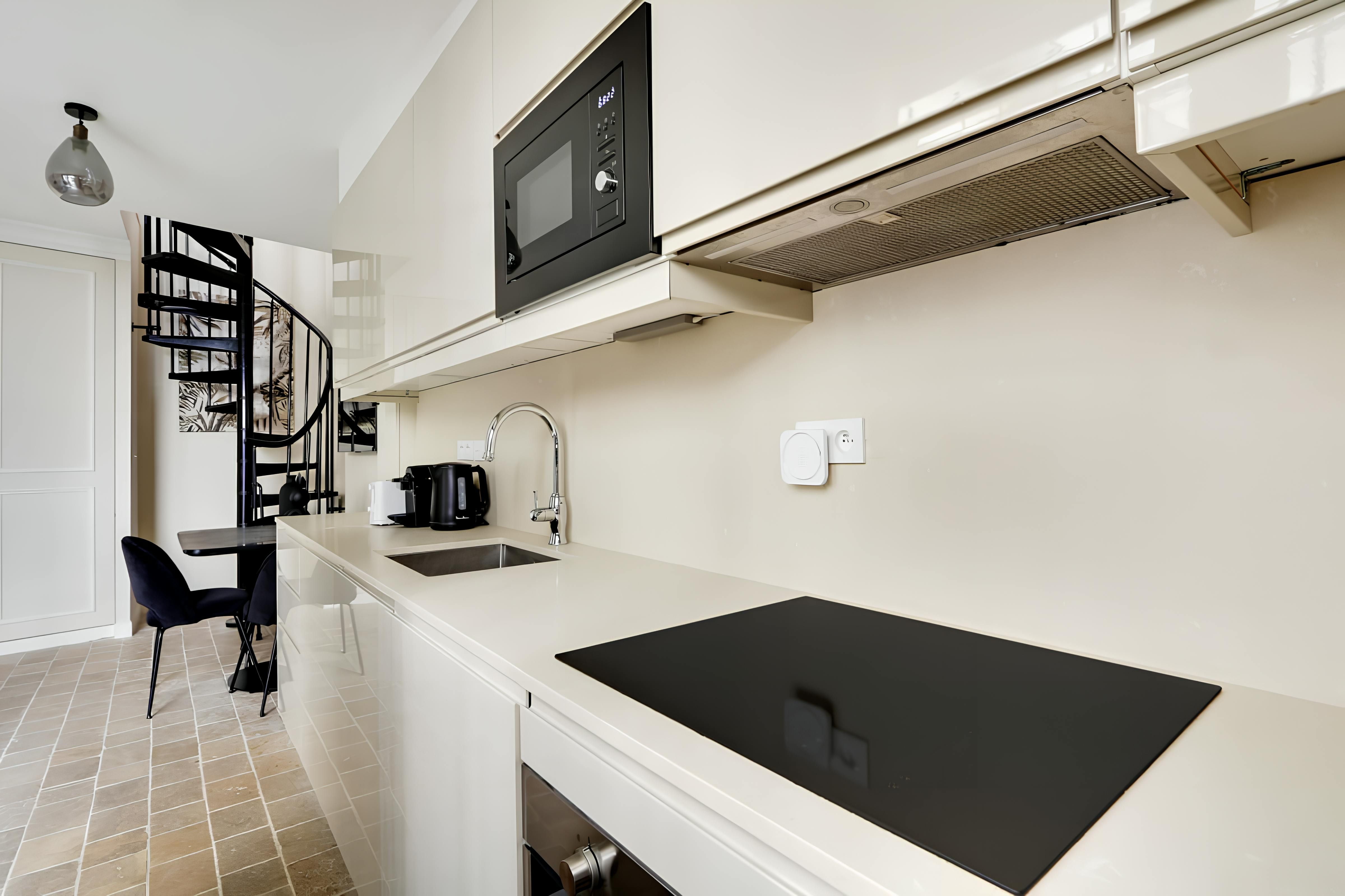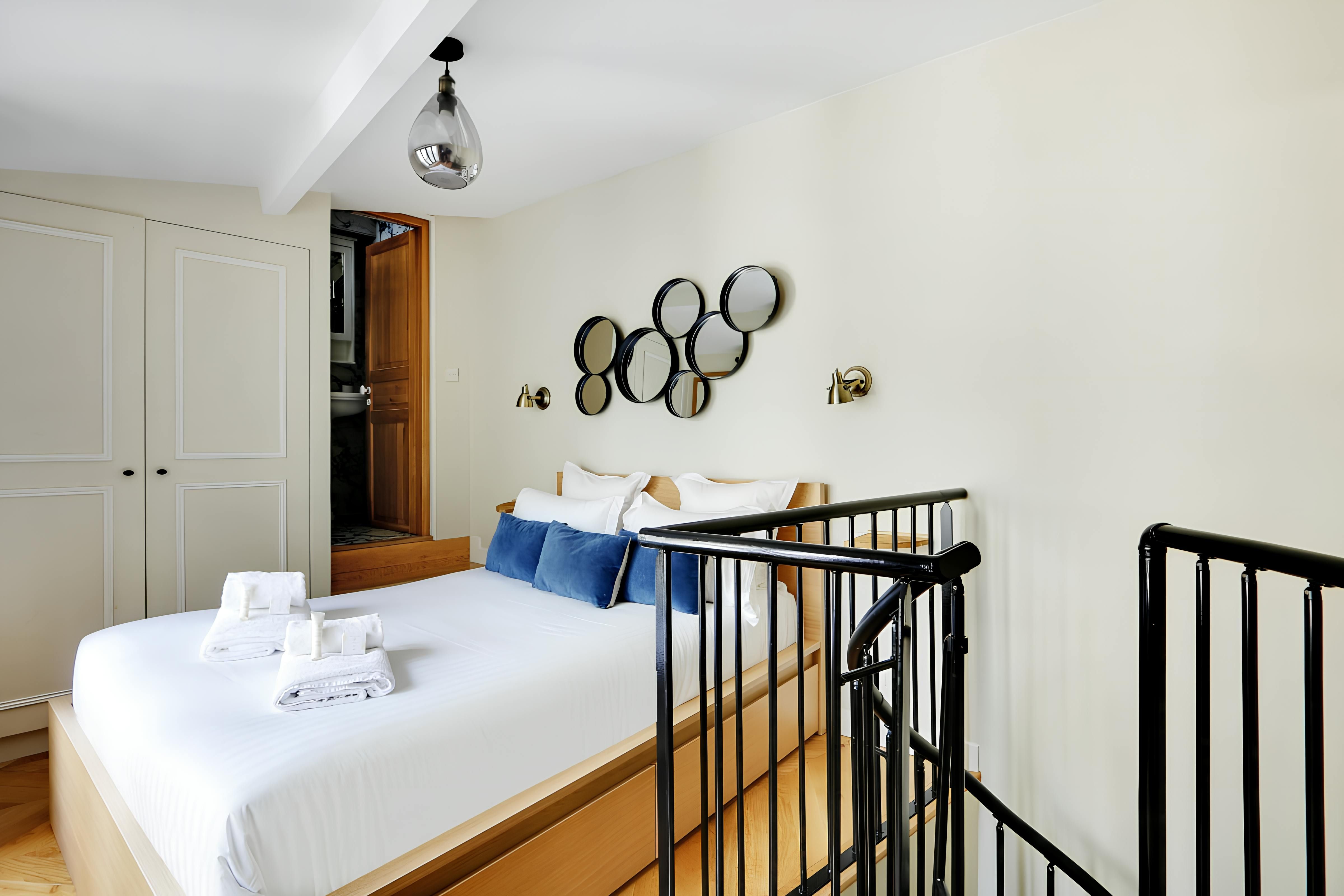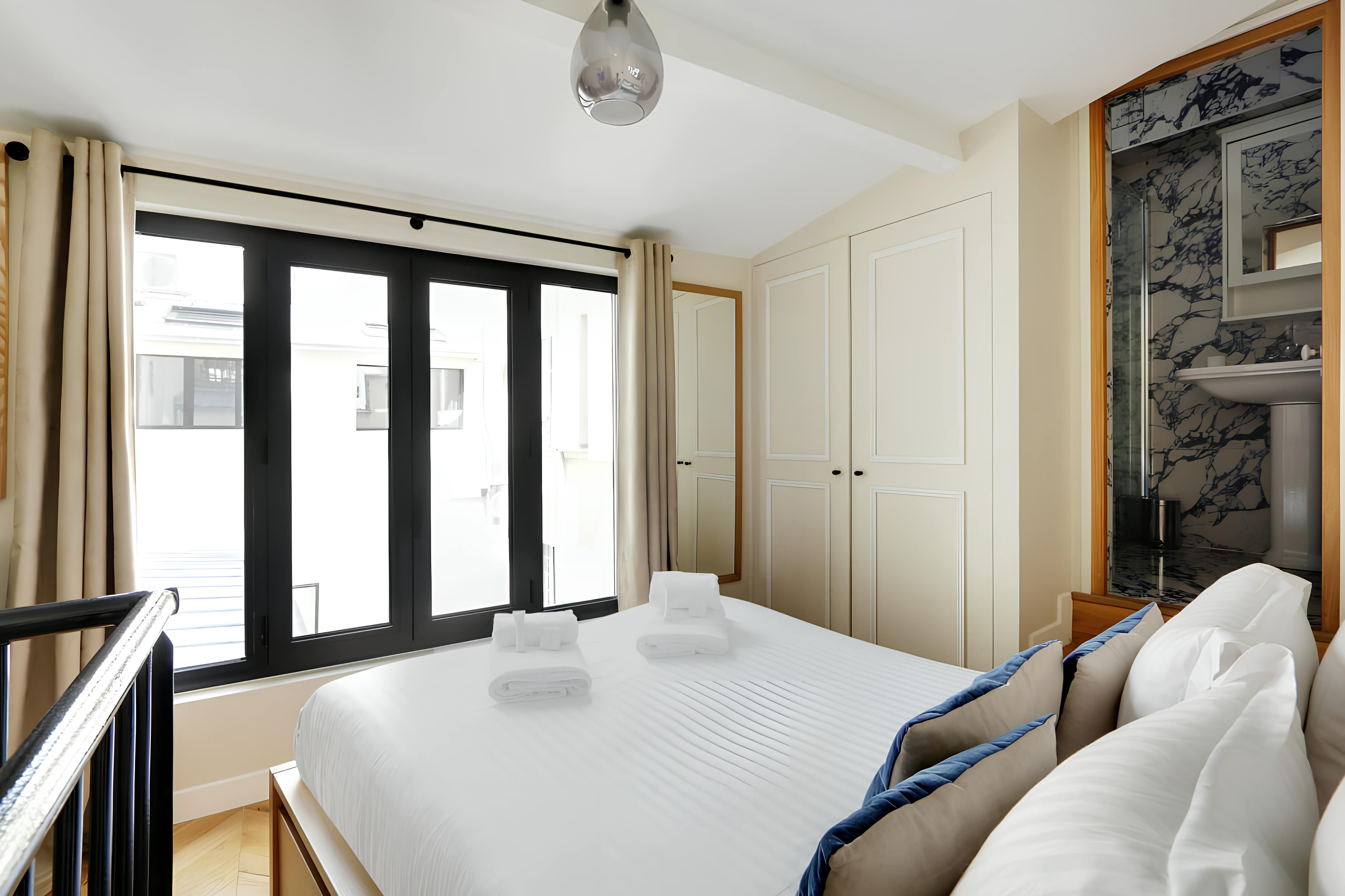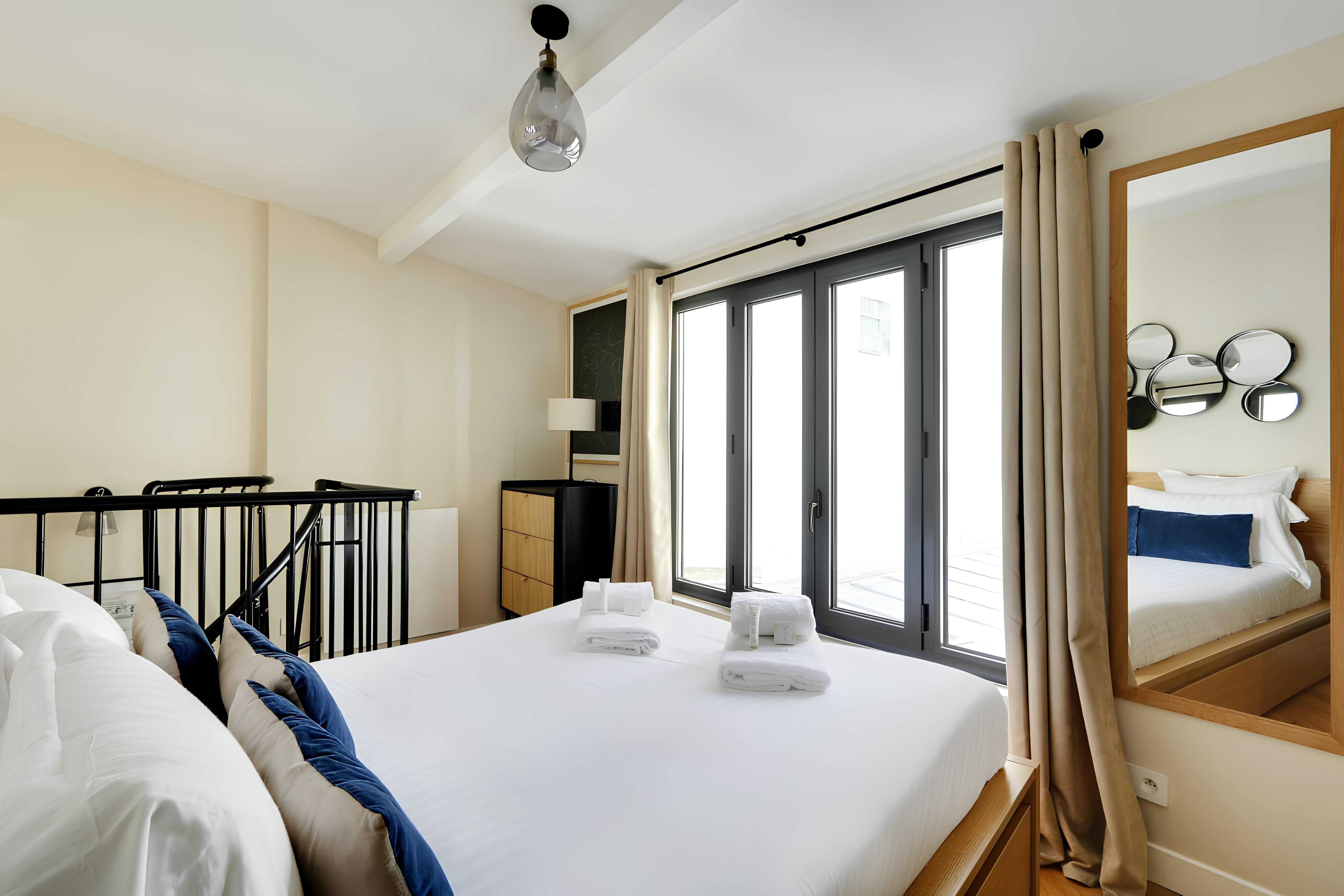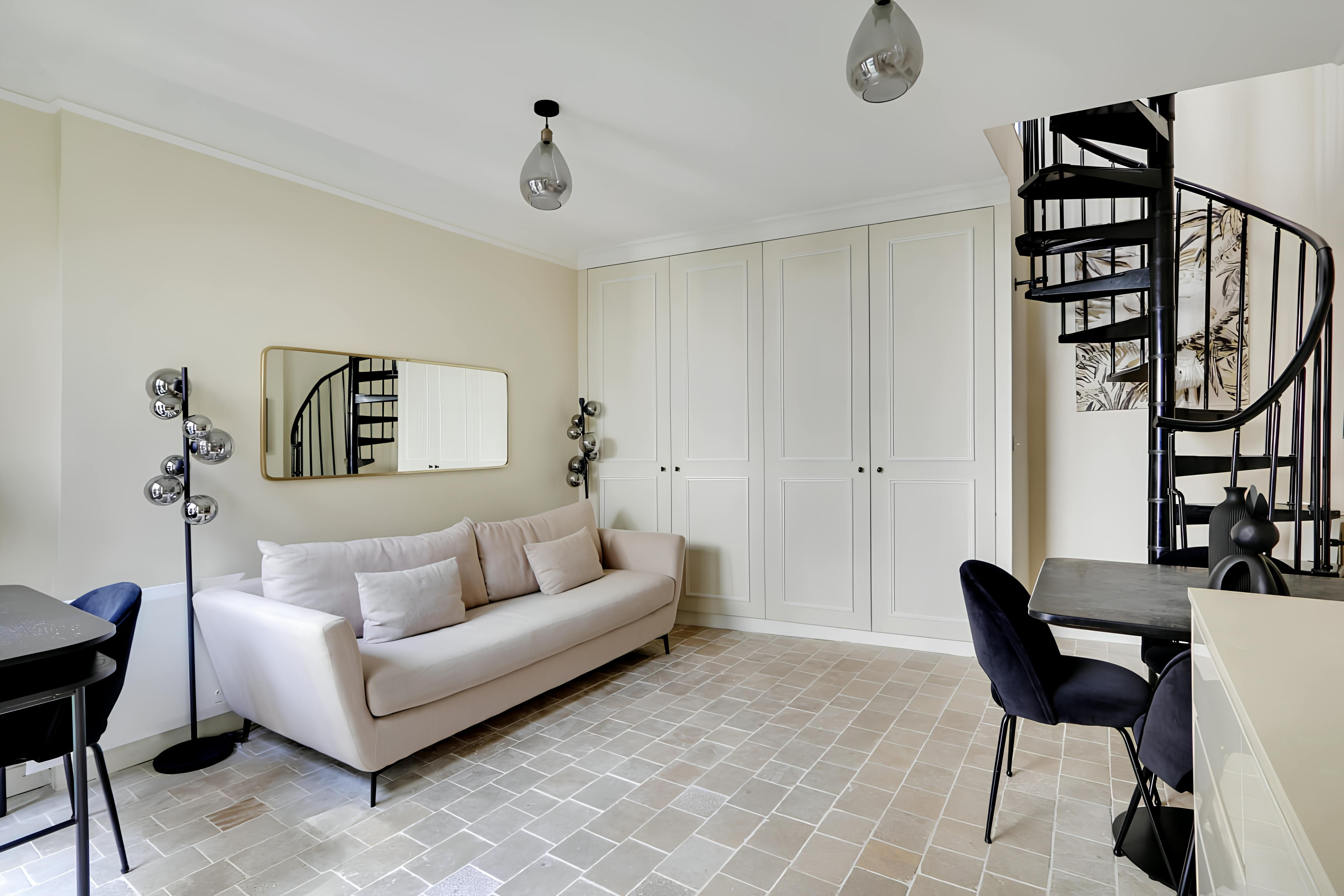 With Montmartre and the Sacré-Cœur Basilica within walking distance, this apartment has an excellent location. There are plenty of shops, cafes, restaurants and bars to explore here too. Or relax with a drink on this two-level apartment’s private terrace which leads through French doors to the open-plan living room. This space also sleeps guests three and four on a sofa bed. The kitchen is quite narrow, but it’s well-equipped for creating some home-cooked meals and there’s room around the adjacent table for all your family or friends.