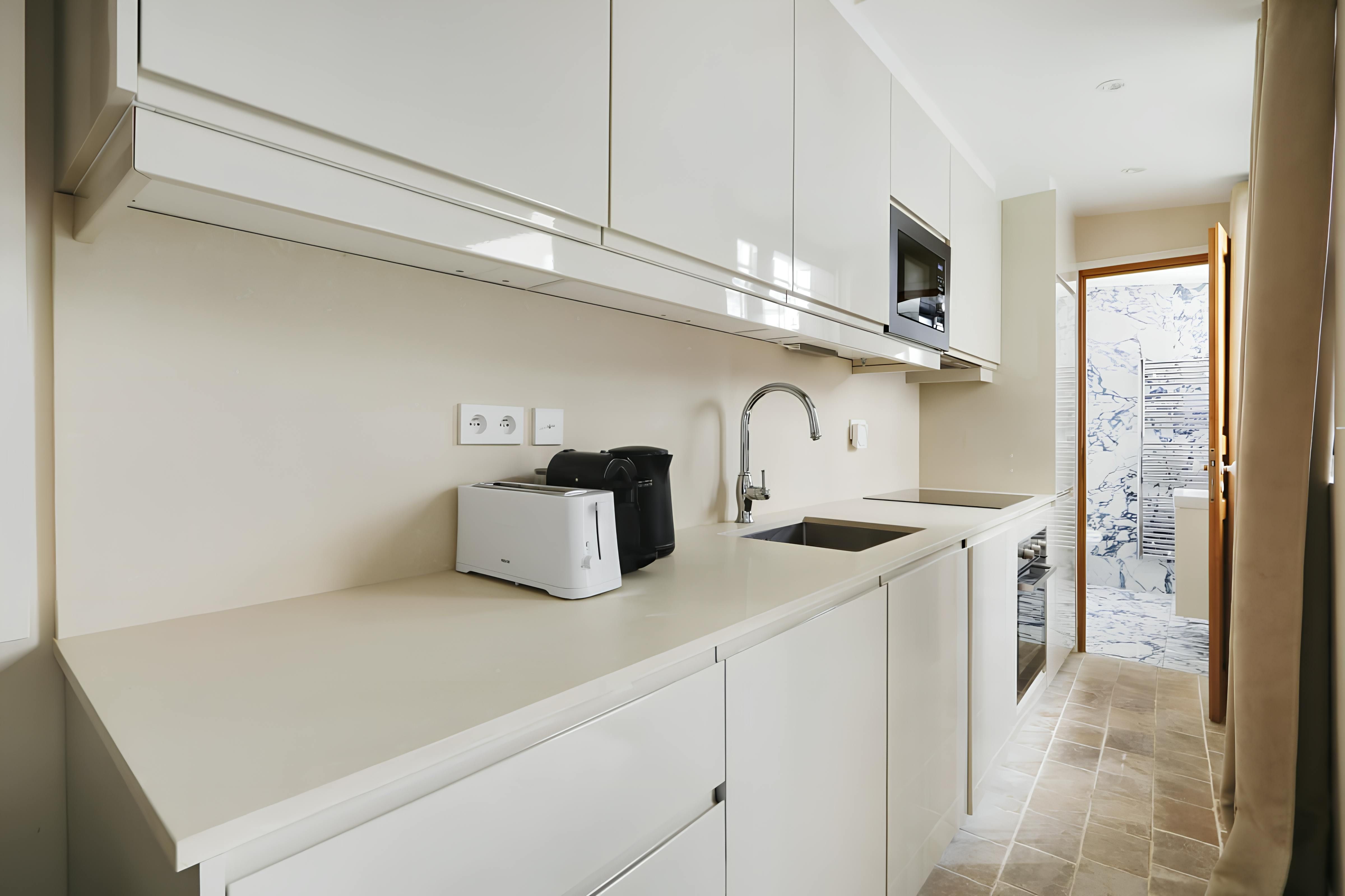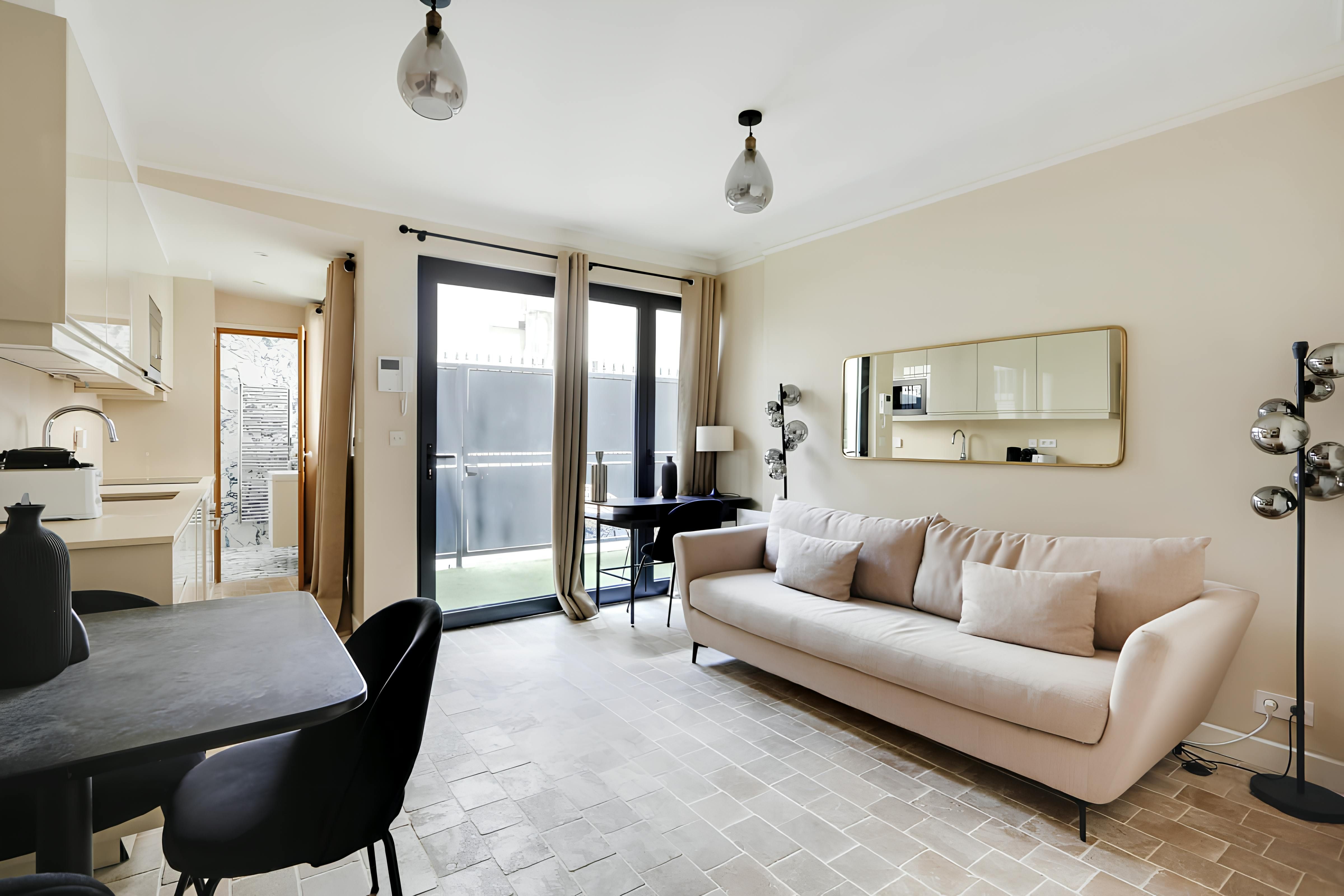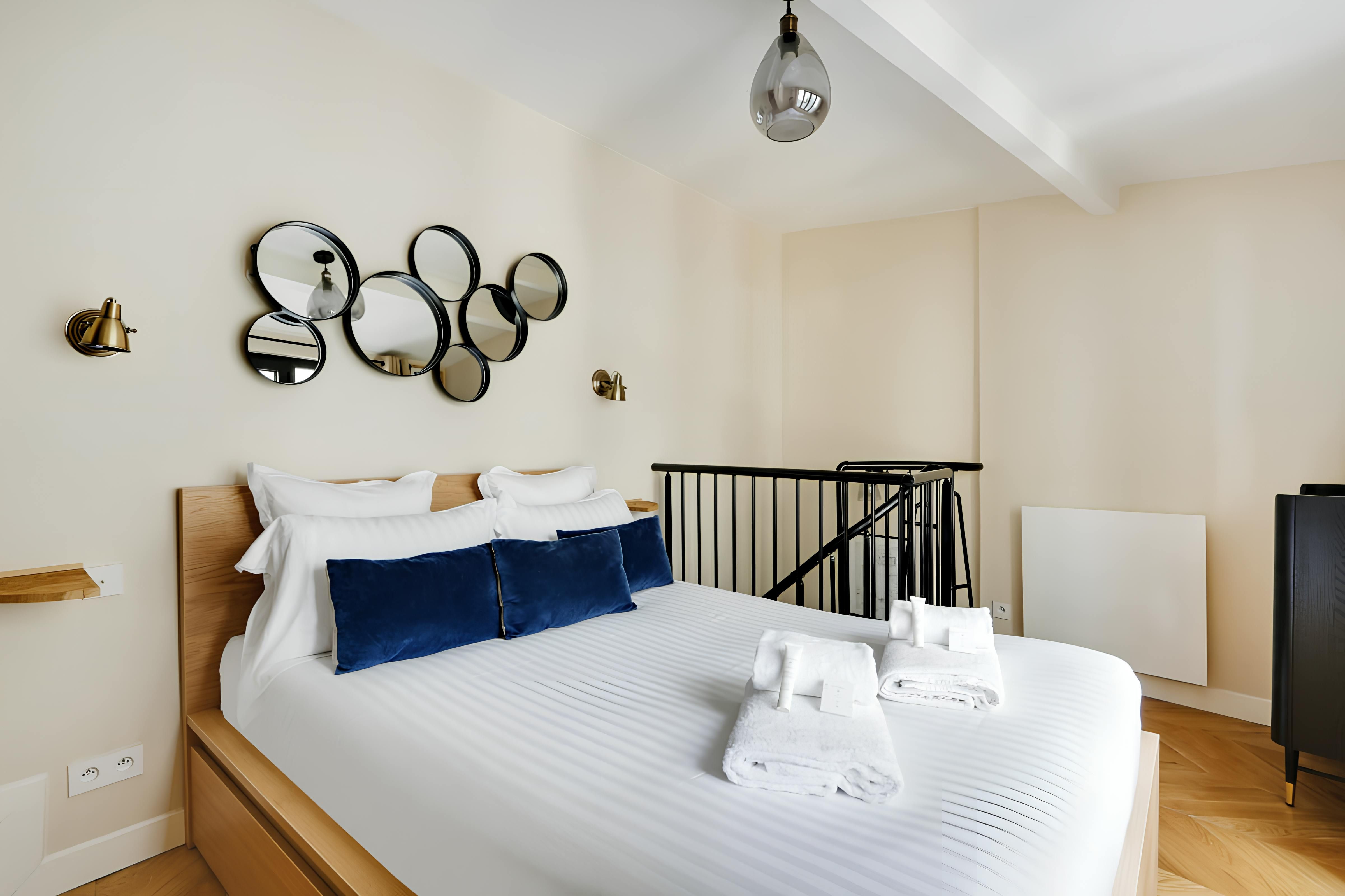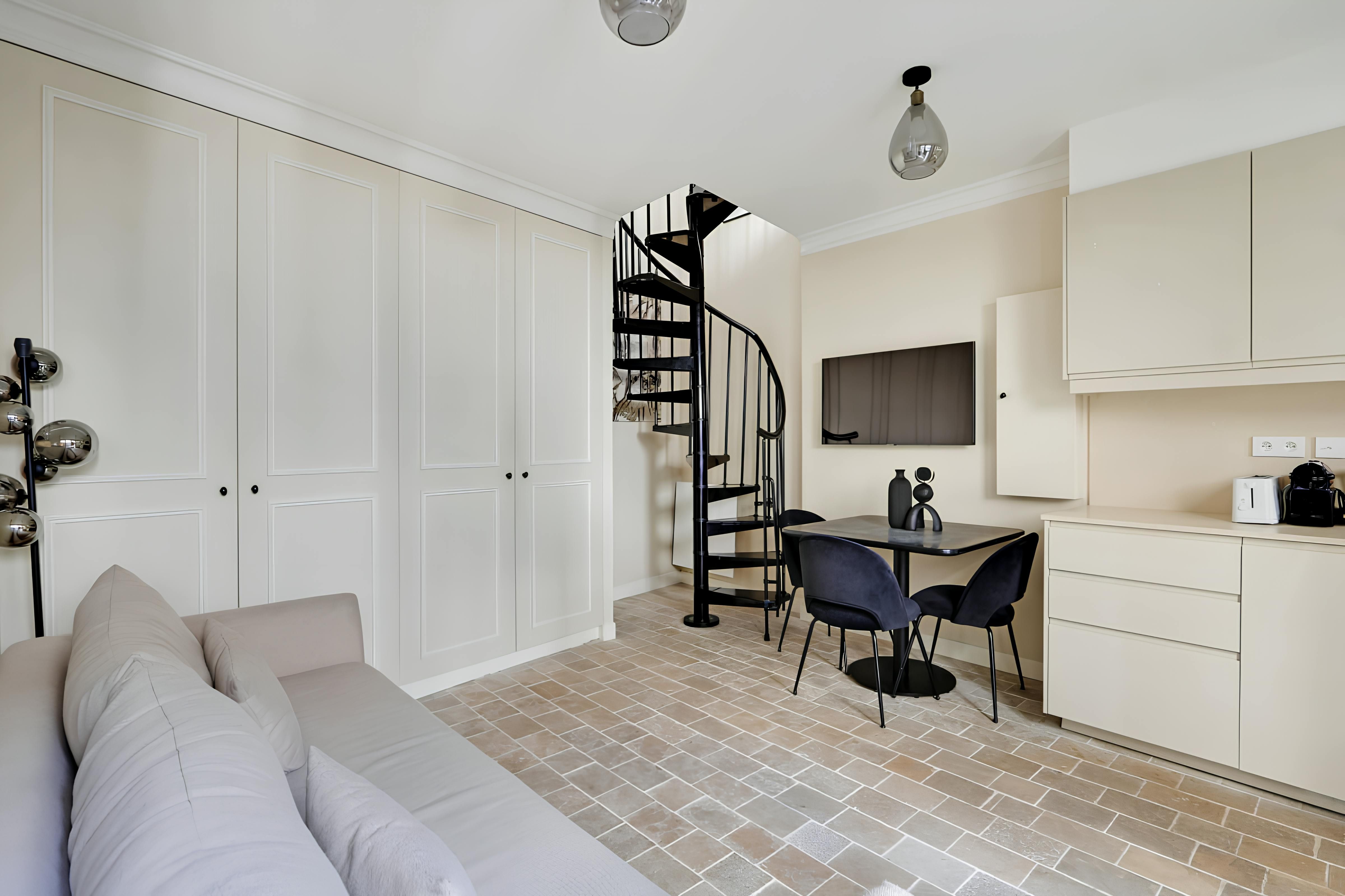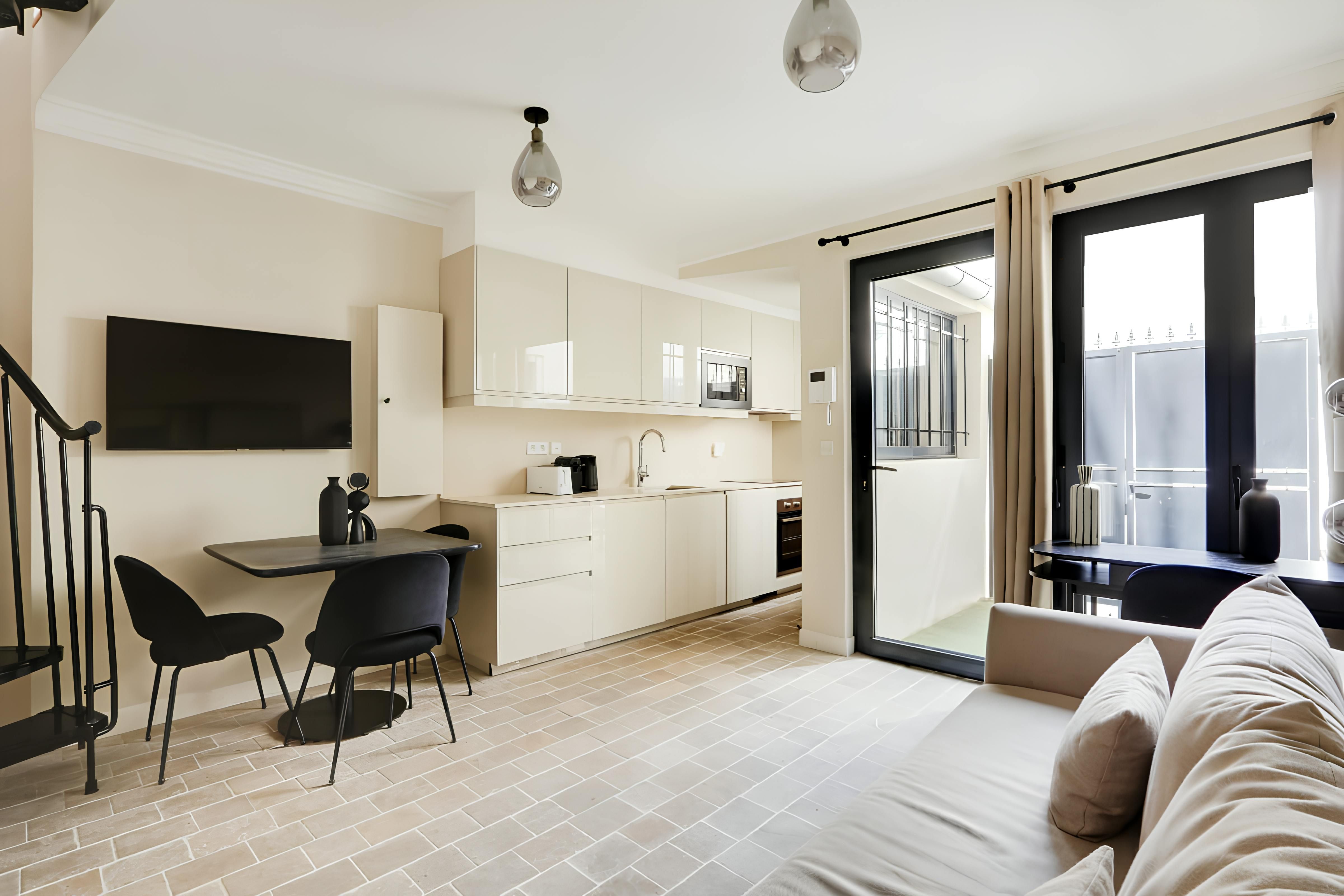 With Montmartre and the Sacré-Cœur Basilica within walking distance, this apartment has an excellent location. There are plenty of shops, cafes, restaurants and bars to explore here too. Or relax with a drink on this two-level apartment’s private terrace which leads through French doors to the open-plan living room. This space also sleeps guests three and four on a sofa bed. The kitchen is quite narrow, but it’s well-equipped for creating some home-cooked meals and there’s room around the adjacent table for all your family or friends.