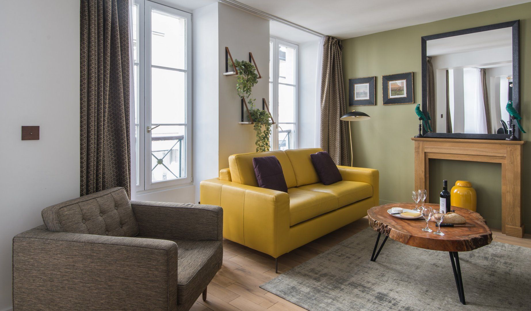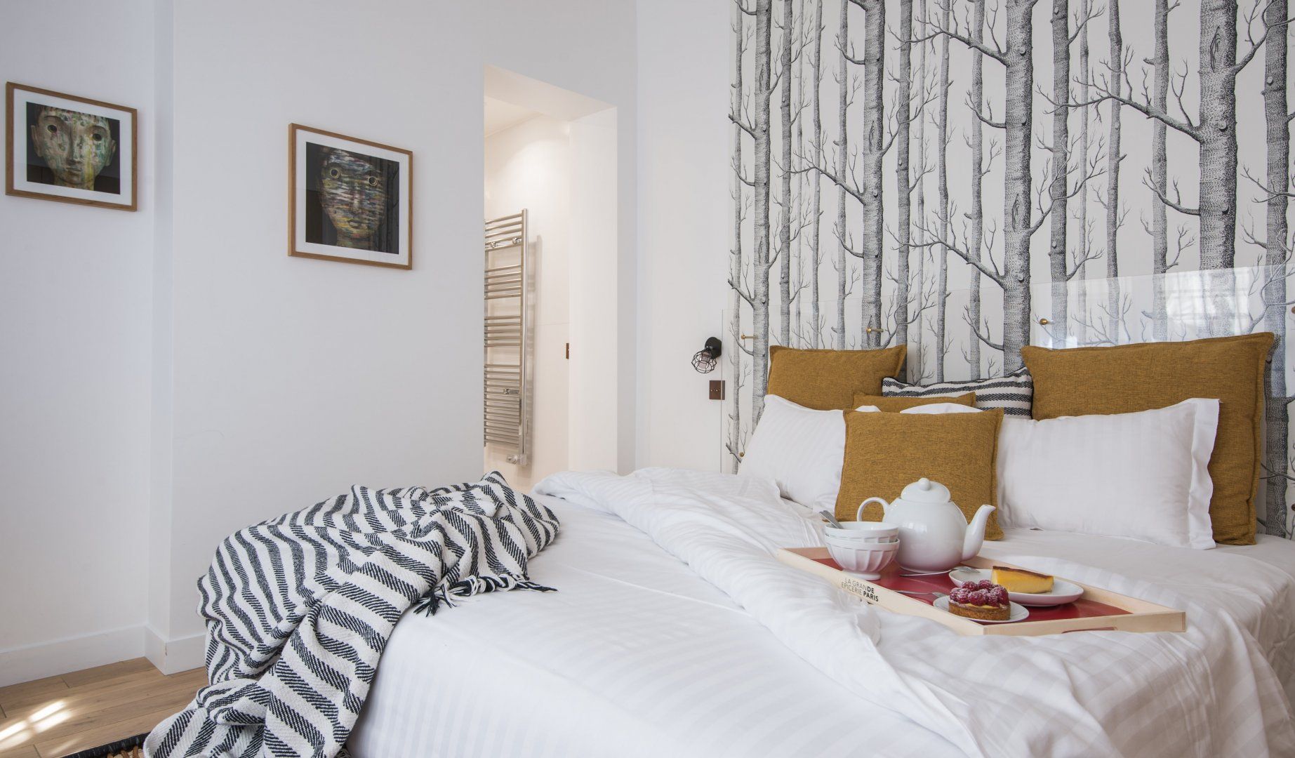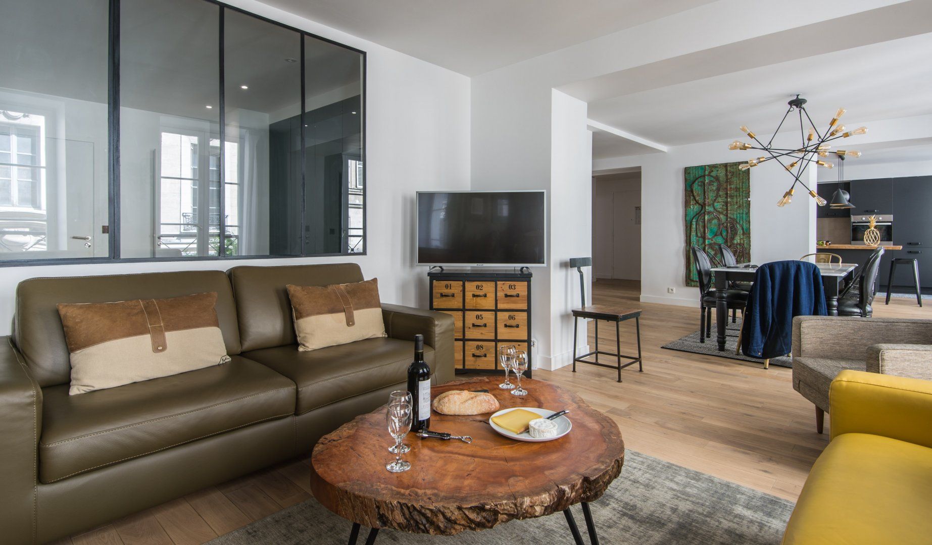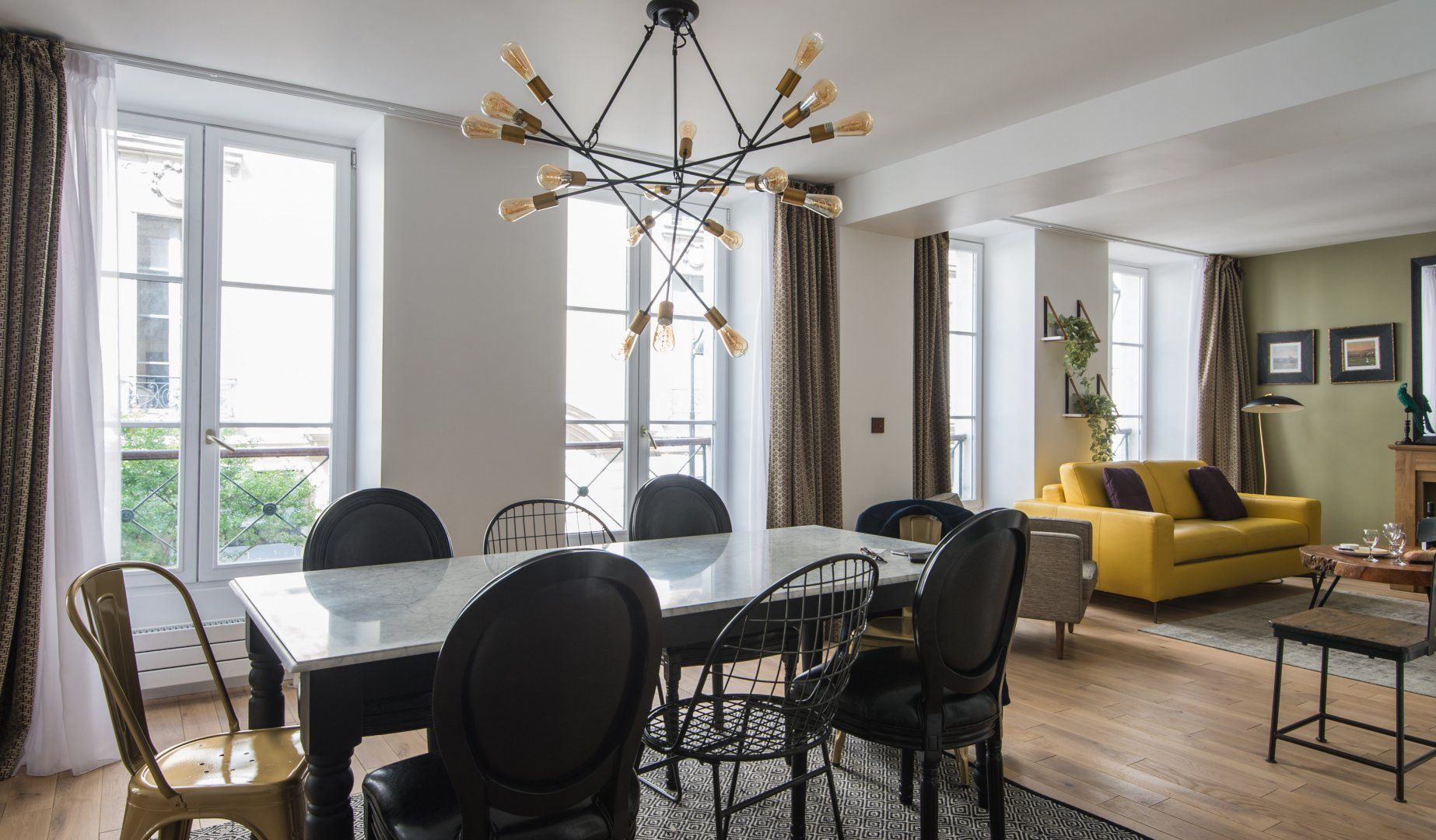 Located not far from the place de la République and at the heart of Paris' trendy NoMa (North Marais) district, this modern apartment is both cosy, stylish and perfectly placed. For those looking to tick off that lengthy bucket list, you'll find the Notre Dame just a twenty-five-minute walk away, the Louvre only a minute further (on foot), and the Bastille thirty minutes from your door. While a stroll through your immediate neighbourhood will have you passing hip bars, luxury boutiques and indie art galleries. When – weary from all that culture soaking – you do return home, whip up a hearty meal in that all-too-rare of Paris commodities, a well-equipped and large kitchen, that's perfect for a big family or a group of friends. Fry up a croque madame at the black anthracite cooking island, before sitting down to indulge around the chic dining area with quirky artwork adorning the walls and original lighting above. Fancy an evening in? The calming green-toned living space is the best spot for a wine and cheese night with good company – it feels modern with the colourful leather sofas, yet rustic and homely with the wooden coffee table and serene moody shades. The internal crittall windows are a classy touch too. Elsewhere, you'll find hidden away reading snugs, unique bedrooms with quirky wallpaper prints and artwork, as well as three swanky en-suite bathrooms. Spring has sprung in the Marais.