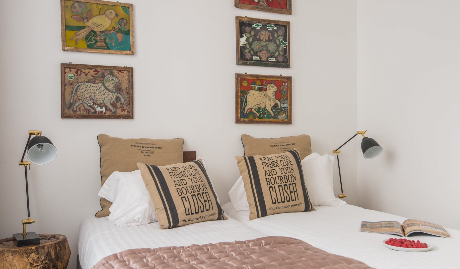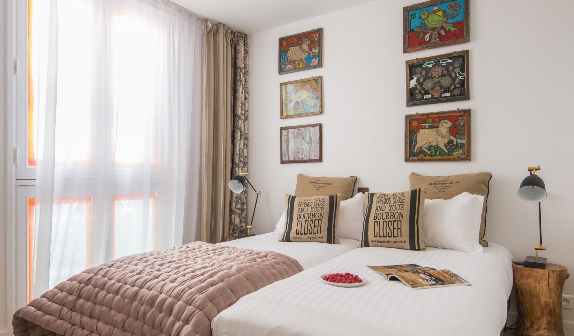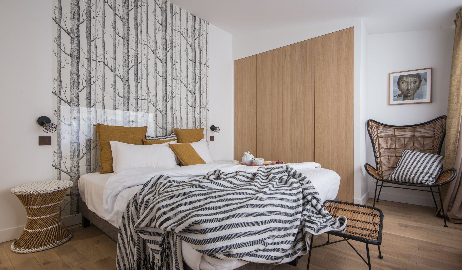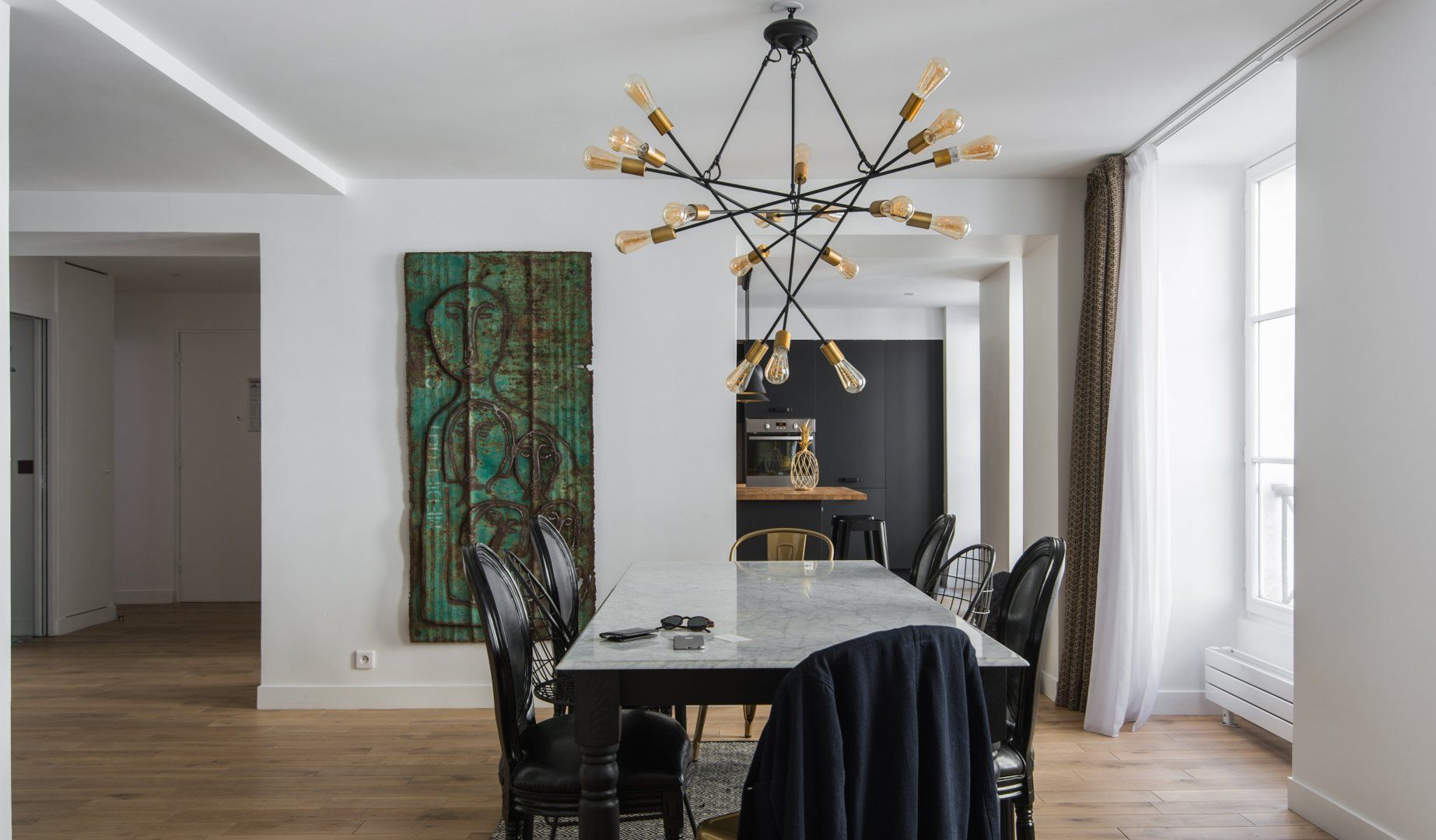 Located not far from the place de la République and at the heart of Paris' trendy NoMa (North Marais) district, this modern apartment is both cosy, stylish and perfectly placed. For those looking to tick off that lengthy bucket list, you'll find the Notre Dame just a twenty-five-minute walk away, the Louvre only a minute further (on foot), and the Bastille thirty minutes from your door. While a stroll through your immediate neighbourhood will have you passing hip bars, luxury boutiques and indie art galleries. When – weary from all that culture soaking – you do return home, whip up a hearty meal in that all-too-rare of Paris commodities, a well-equipped and large kitchen, that's perfect for a big family or a group of friends. Fry up a croque madame at the black anthracite cooking island, before sitting down to indulge around the chic dining area with quirky artwork adorning the walls and original lighting above. Fancy an evening in? The calming green-toned living space is the best spot for a wine and cheese night with good company – it feels modern with the colourful leather sofas, yet rustic and homely with the wooden coffee table and serene moody shades. The internal crittall windows are a classy touch too. Elsewhere, you'll find hidden away reading snugs, unique bedrooms with quirky wallpaper prints and artwork, as well as three swanky en-suite bathrooms. Spring has sprung in the Marais.