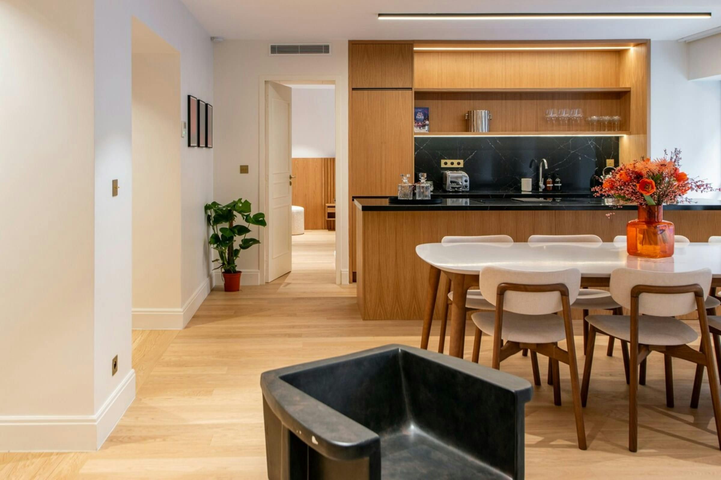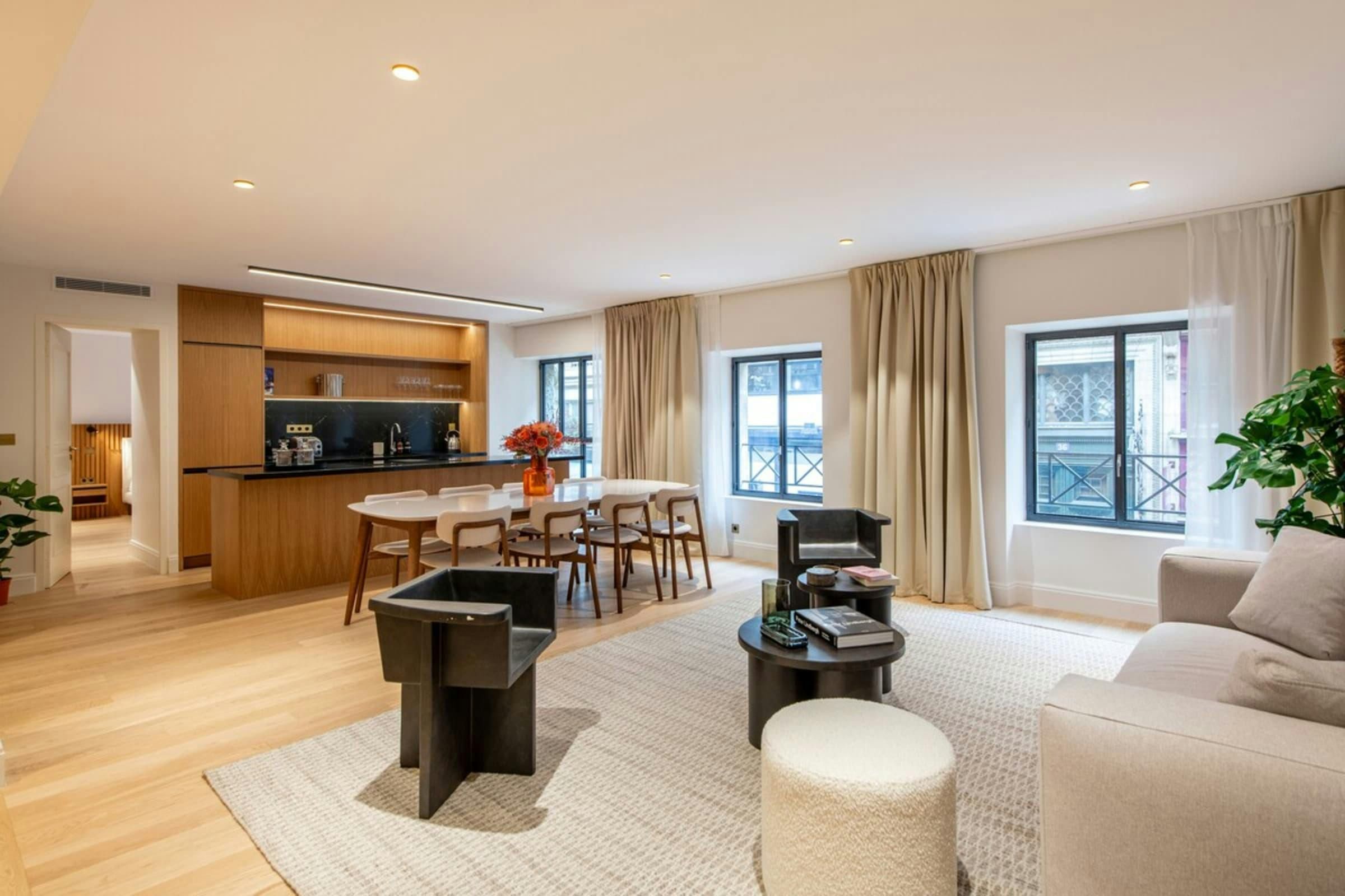 Whether you’re on a city break or here for work, it’s always great to have a selection of Paris’s main attractions within walking distance. The Louvre Museum, the Palais-Royal and the Tuileries Garden are all reachable on foot. Plus, Grands Boulevards is a short stroll from this apartment, renowned for its theatres, restaurants and shops. After all that sightseeing or shopping, you’ll be glad to know that this home has a sauna to unwind in. Or relax in the large open-plan living room – this apartment has been designed with your comfort in mind.