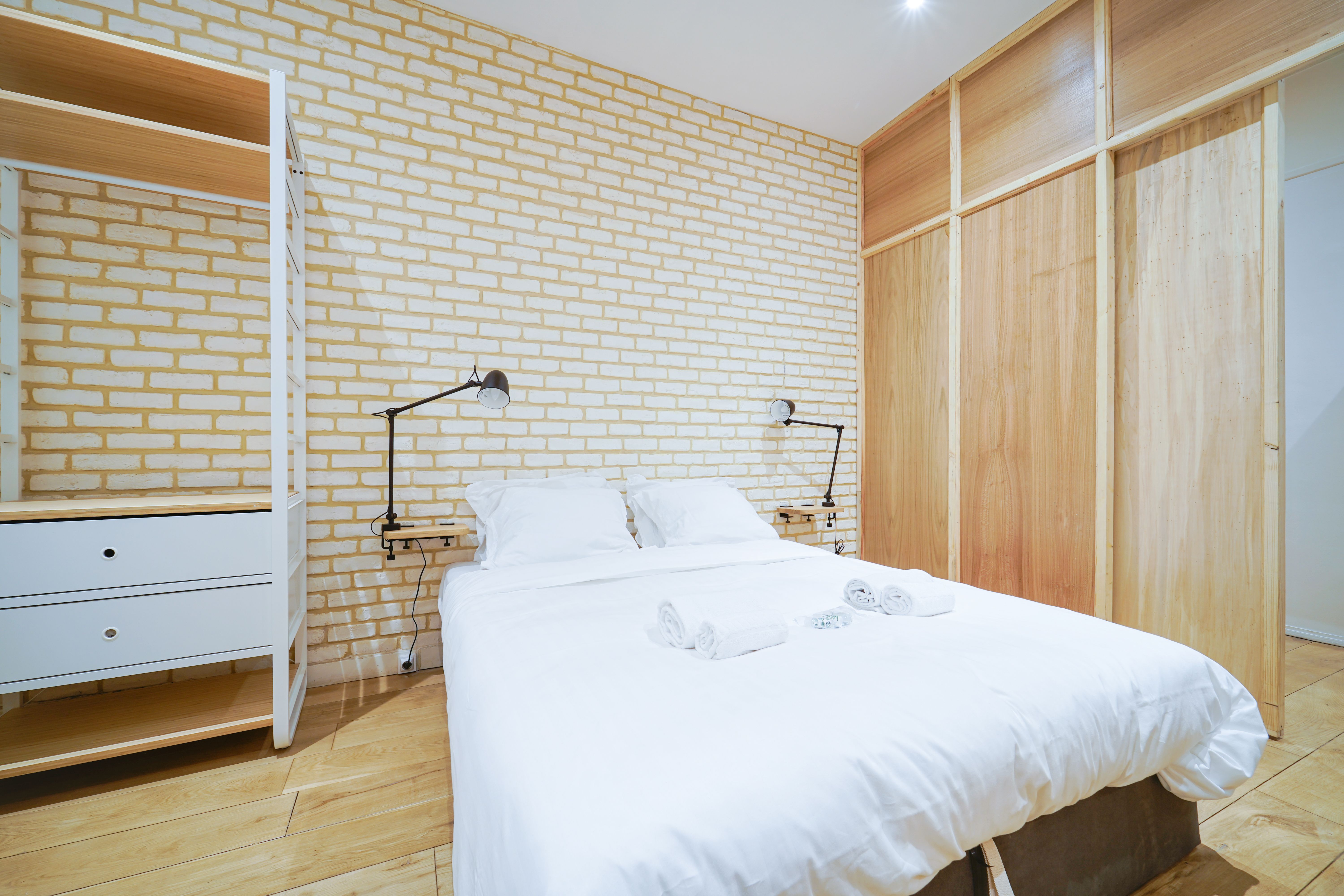 Back at this apartment, have a rest on the comfy sofa after all that sightseeing. Thanks to the vases of pampas grass, orchids and other plants dotted around, there's a lovely homely vibe here. We love the warm wood floors and exposed brickwork in the bedroom. This versatile place is perfect for a solo traveller, a work trip, a small family, as well as two couples.