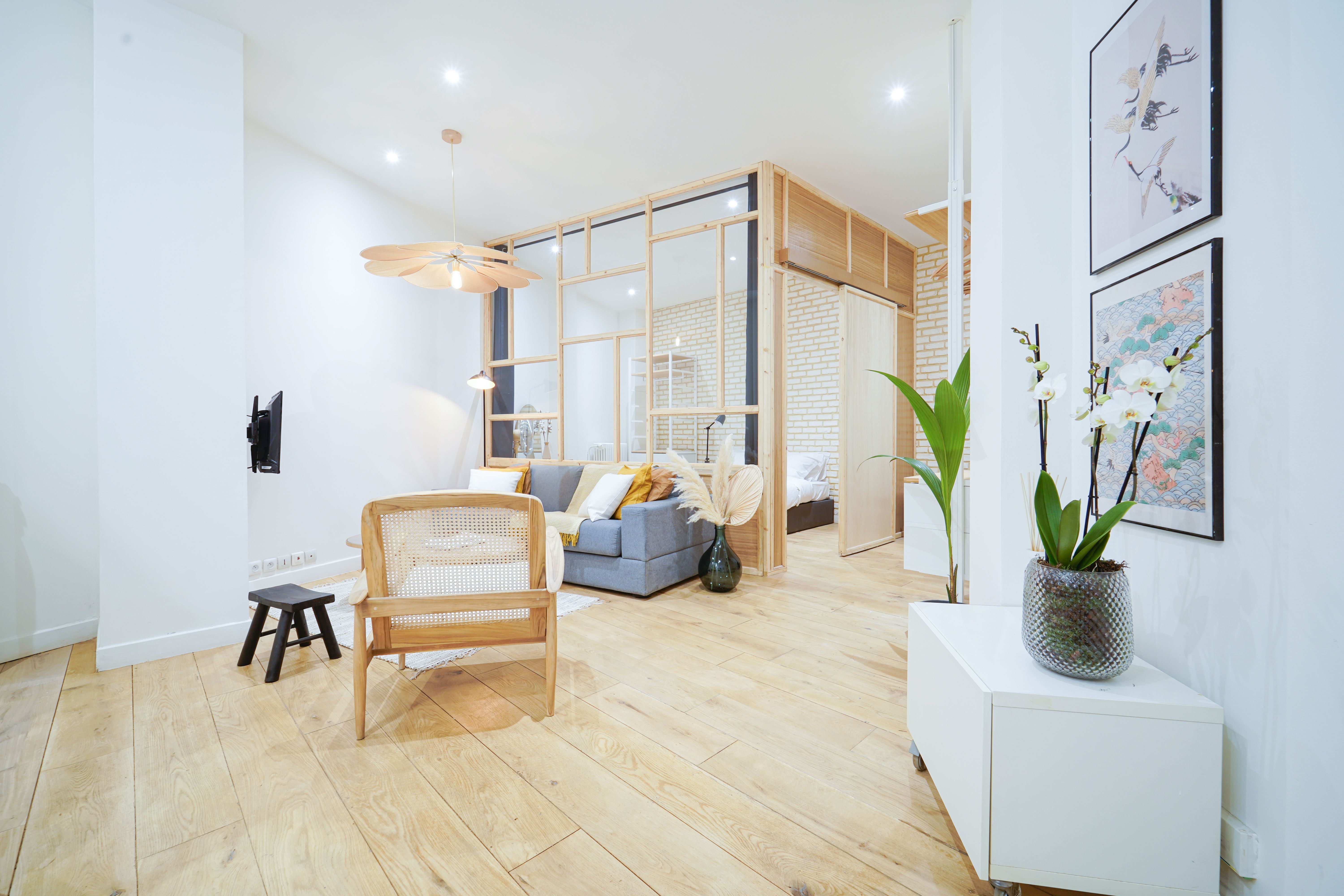 It's just a two-minute amble to Canal Saint-Martin from this stylish home. The canal is perfect for a romantic stroll with its towpaths, locks, and bridges. A six-minute saunter will take you to the American Business School of Paris, while the Sacré-Coeur is just over thirty minutes on foot. Other attractions nearby include Place de la République, a twenty-five-minute walk. There are plenty of bars and restaurants on your doorstep to enjoy too.