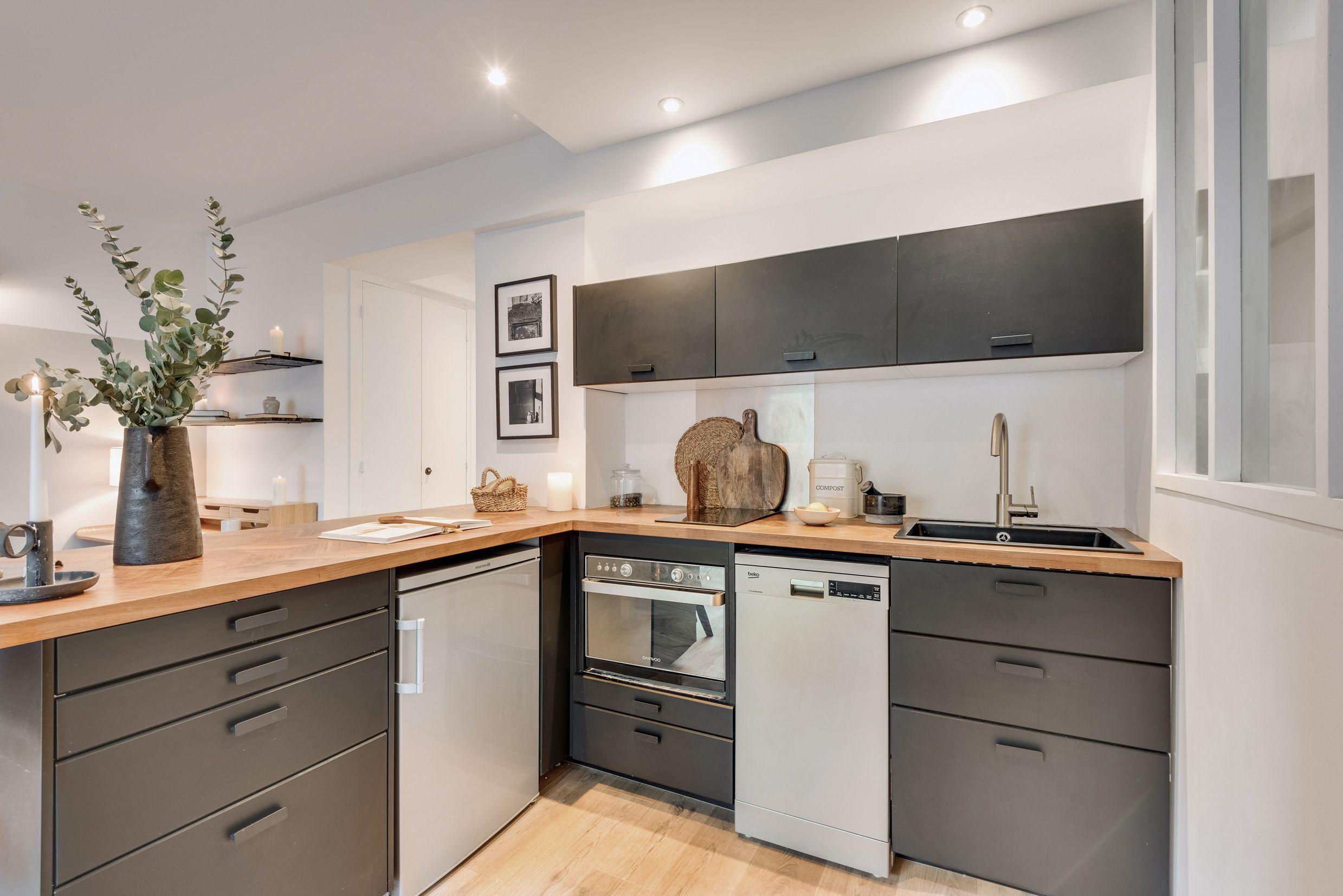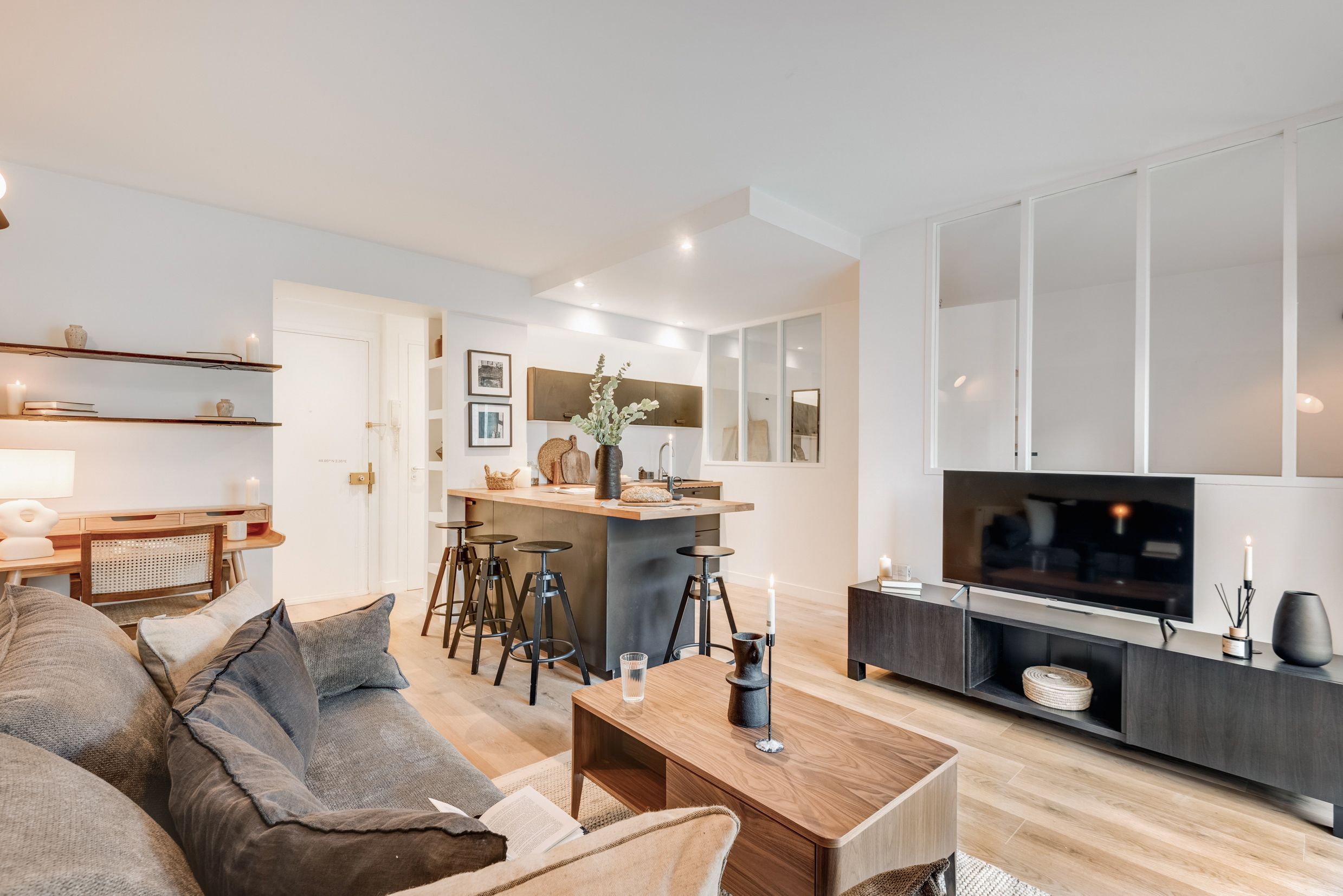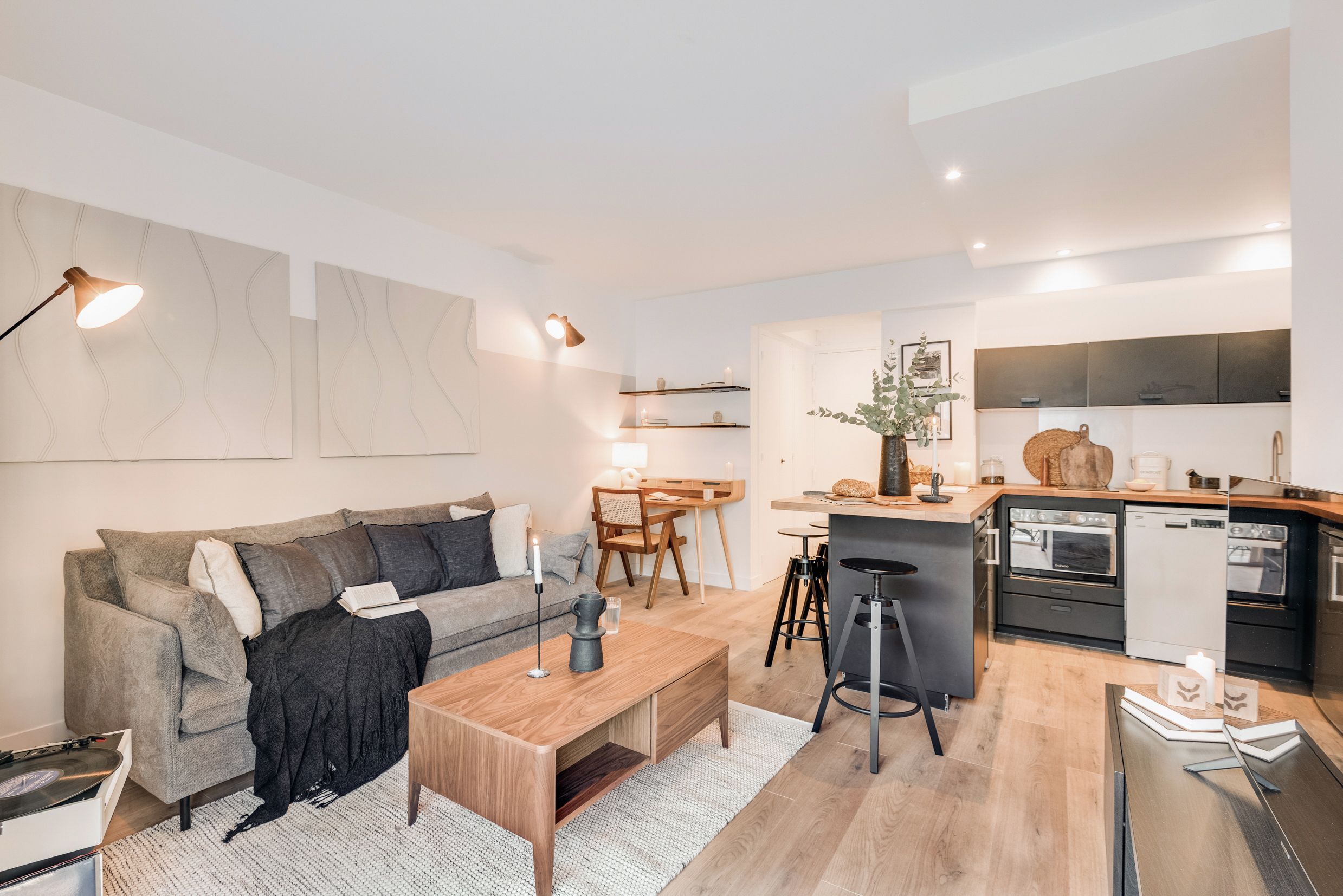 Small but stylish, this apartment is an ideal find for solo travellers. There's a desk in the lounge – handy for digital nomads – as well as a compact but well-appointed kitchen. The bedroom is undoubtedly snug, though there is an additional sofa bed here if needed. You'll also have a tiny balcony to enjoy alfresco coffees and cocktails. Location-wise, Batignolles is known for its trendy bars, cool eateries, and quirky shops. With transport links nearby, you can venture across Paris easily. Montmartre, home to the famous Sacré-Cœur, is also a thirty-minute stroll away.