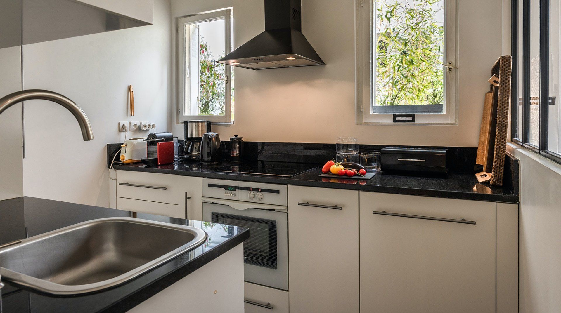 This spacious loft-style home with a bold personality would suit a group seeking a more authentic Parisian experience. Its location between Batignolles and Montmartre is not your typical tourist destination but it provides a tranquil haven from the bustle of more central parts. Expect a very personal style with vintage pieces and a curated collection of artwork and photography, while the amenities are also top-notch – there's a projector for movie nights and four bedrooms with en-suites, plus a practical study that can double up as an additional sleeping area.