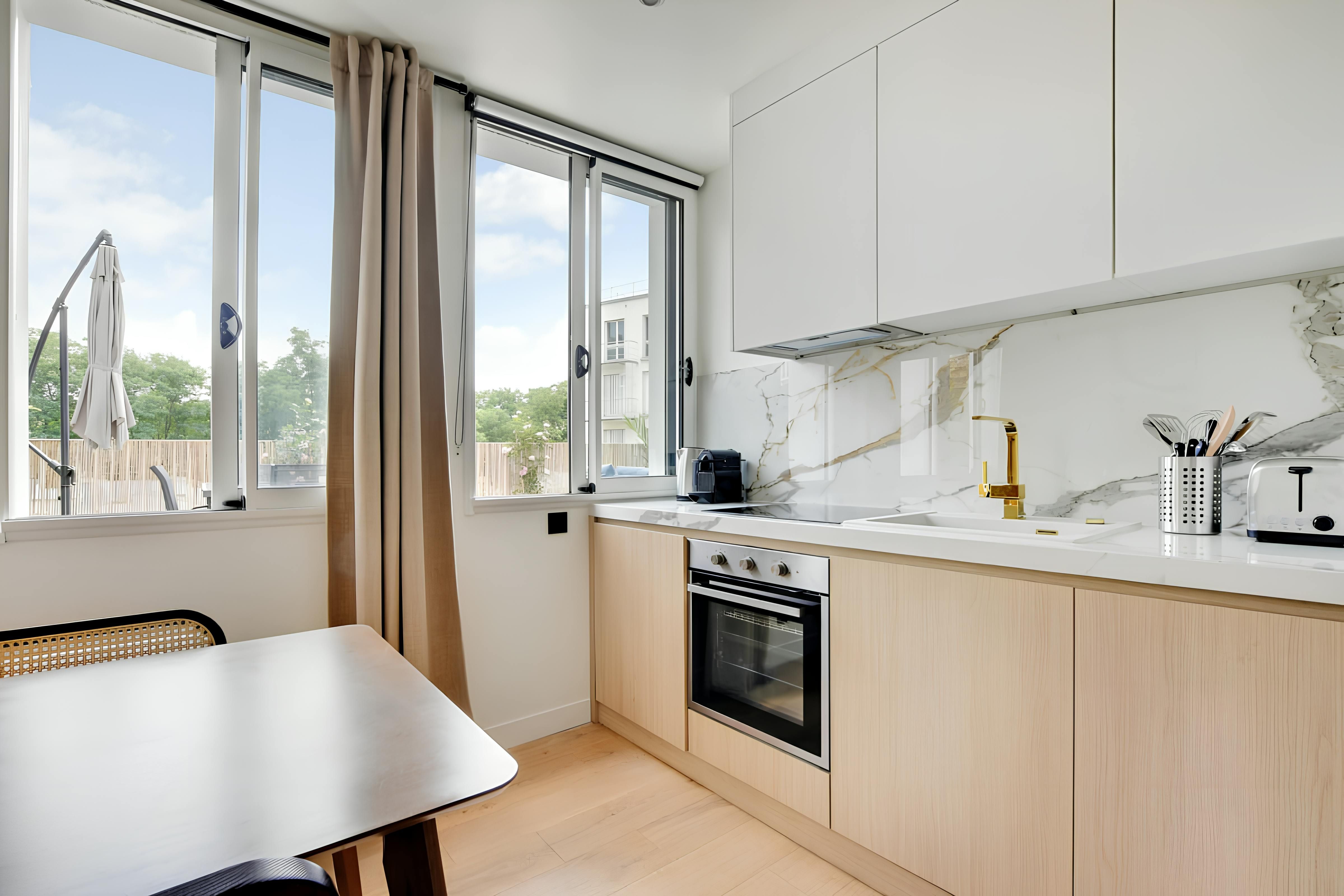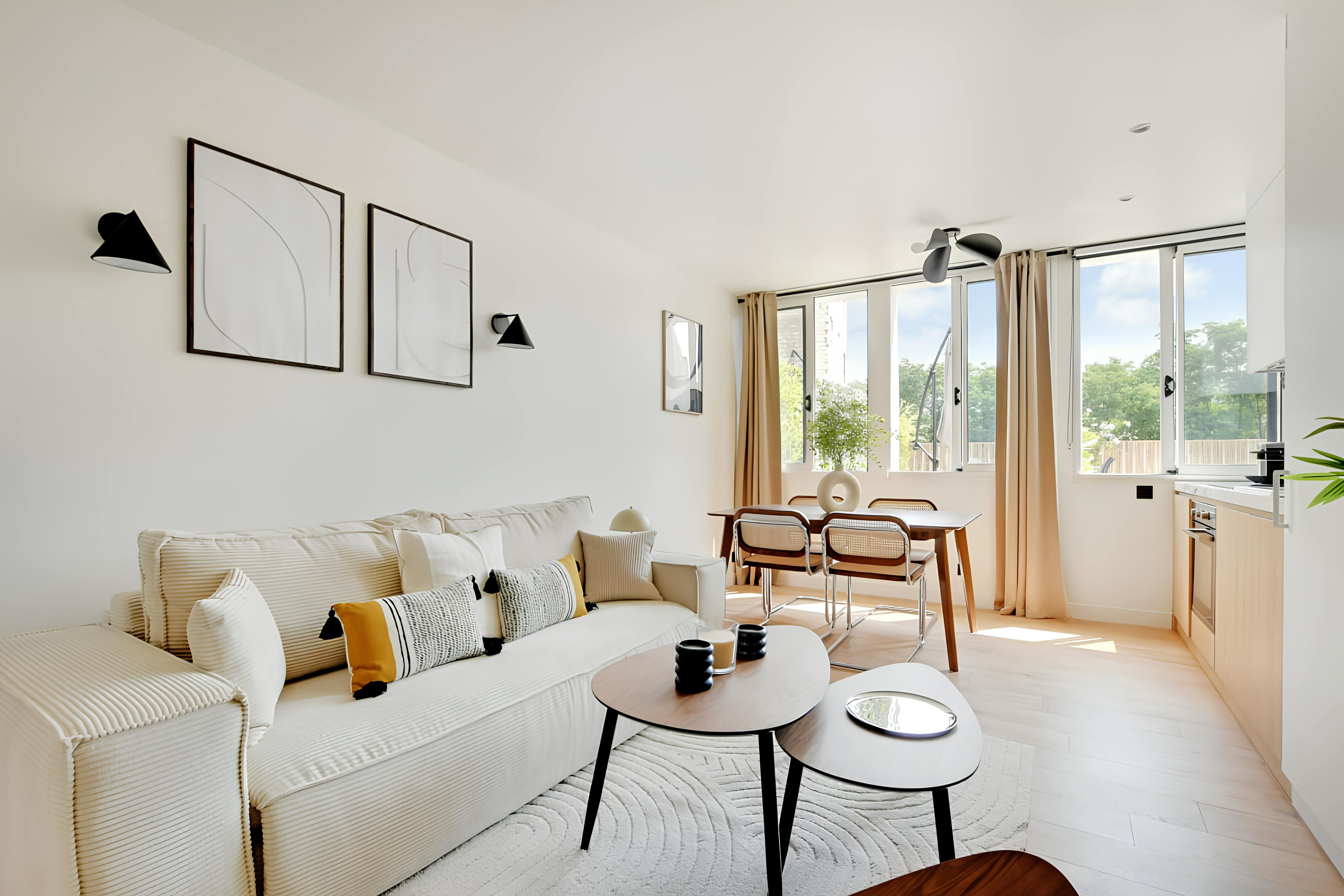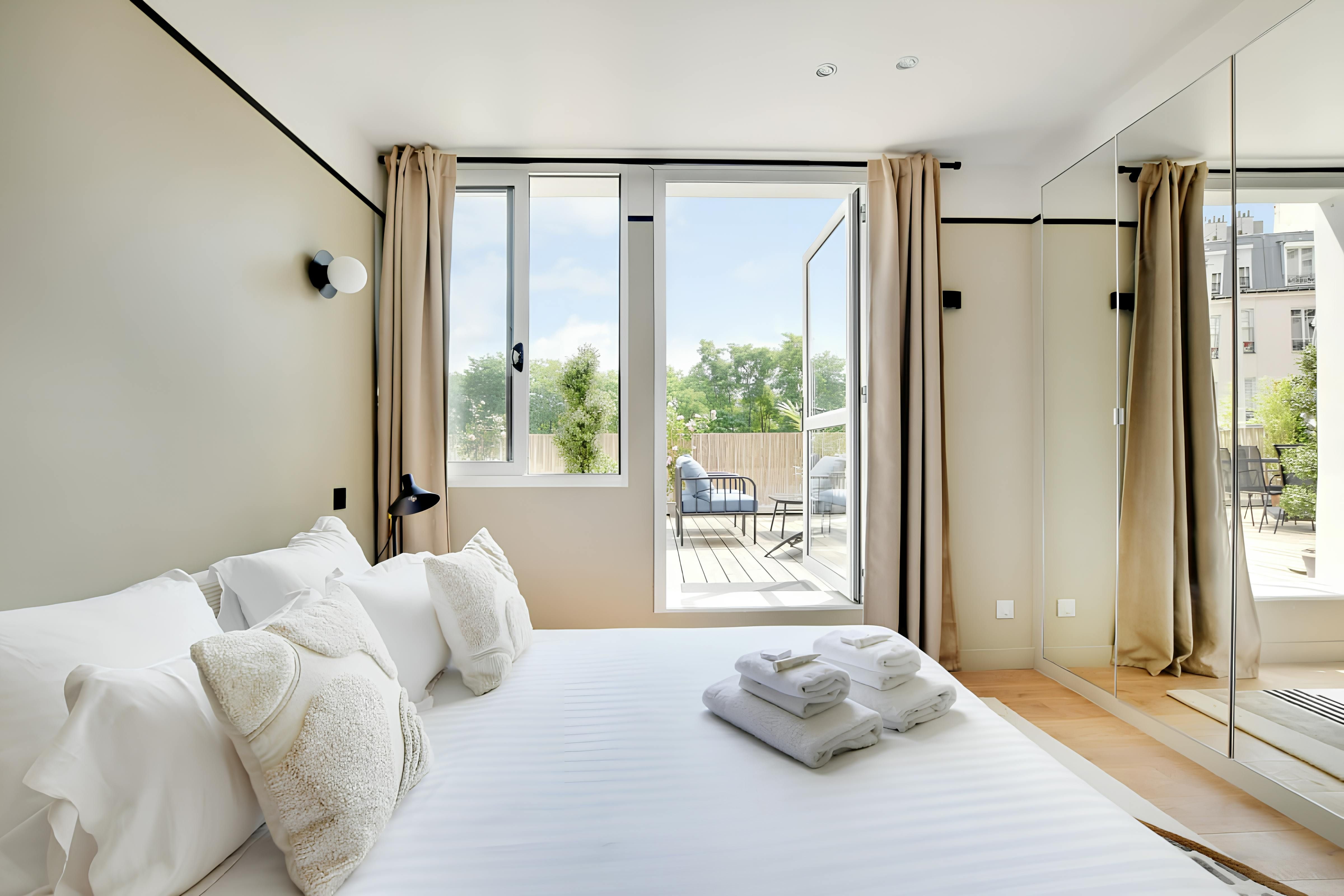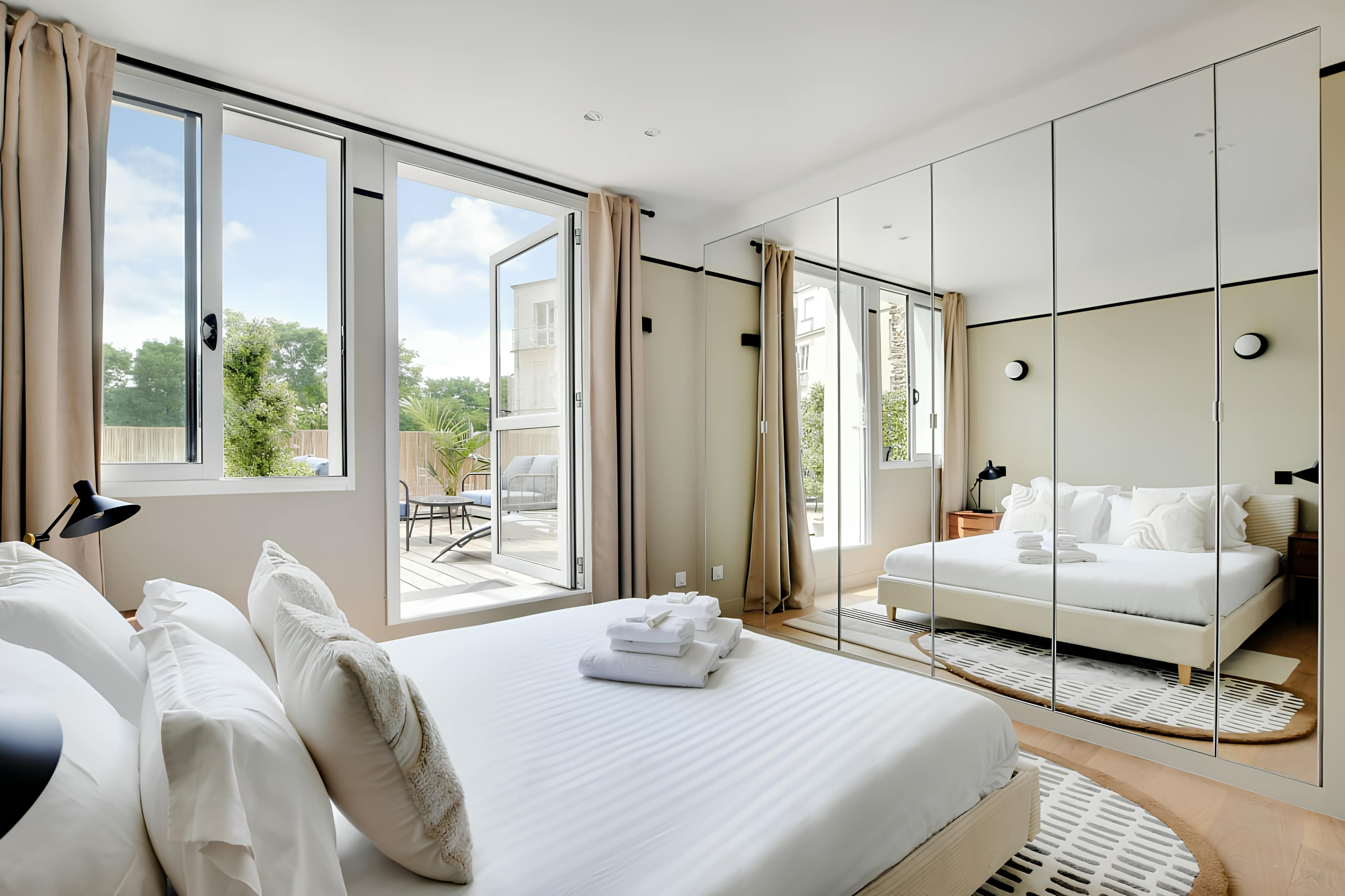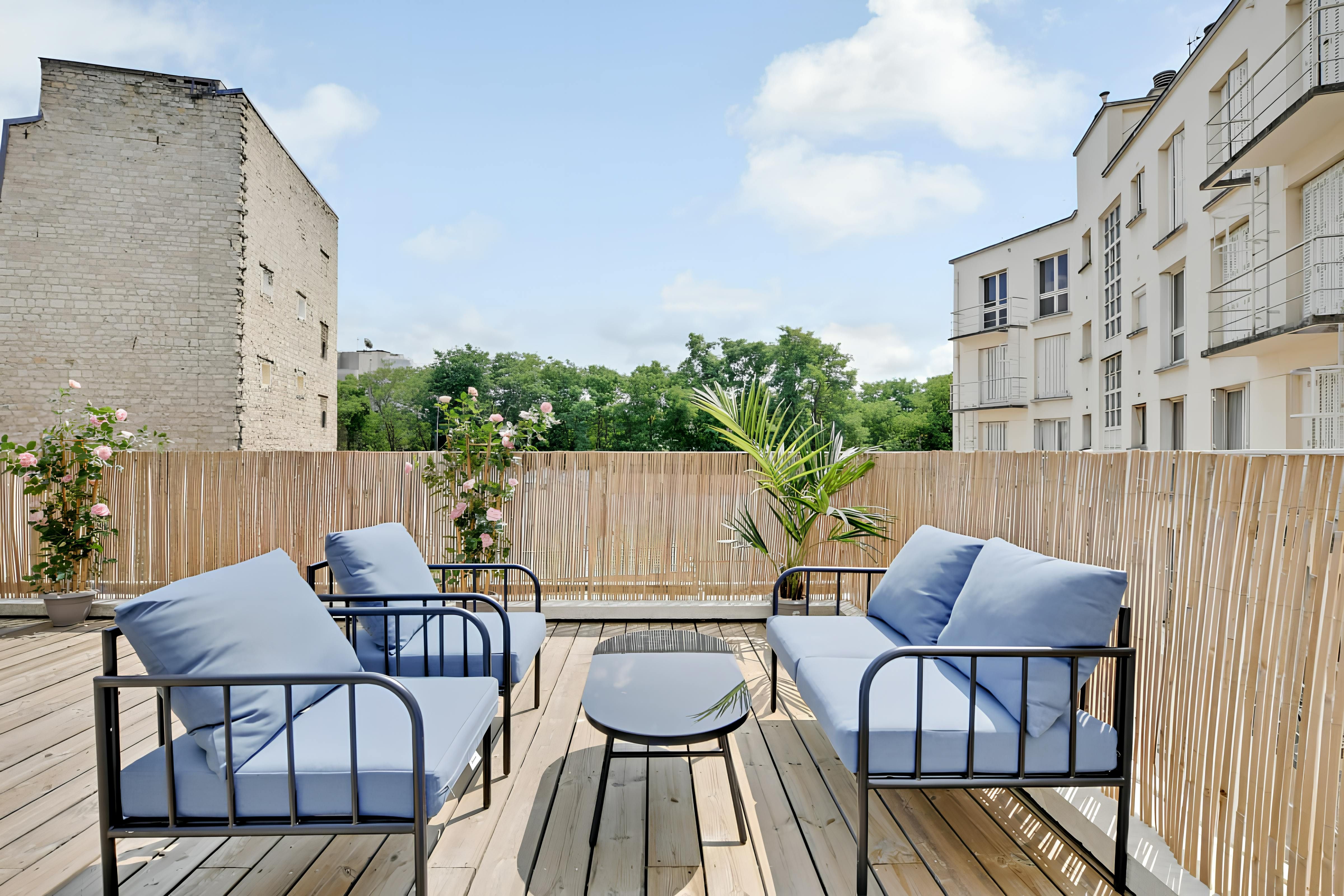 One of the highlights of this apartment has to be the private terrace with its pots of roses and views over the treetops. Inside, there are more vistas to enjoy from the light and airy open-plan living space (this spacious room also sleeps guests three and four on a sofa bed). There’s plenty to see and do in the area as well. A short stroll away you’ll find the Paris Zoological Park and Bois de Vincennes, as well as the Centre Sportif Alain Mimoun.