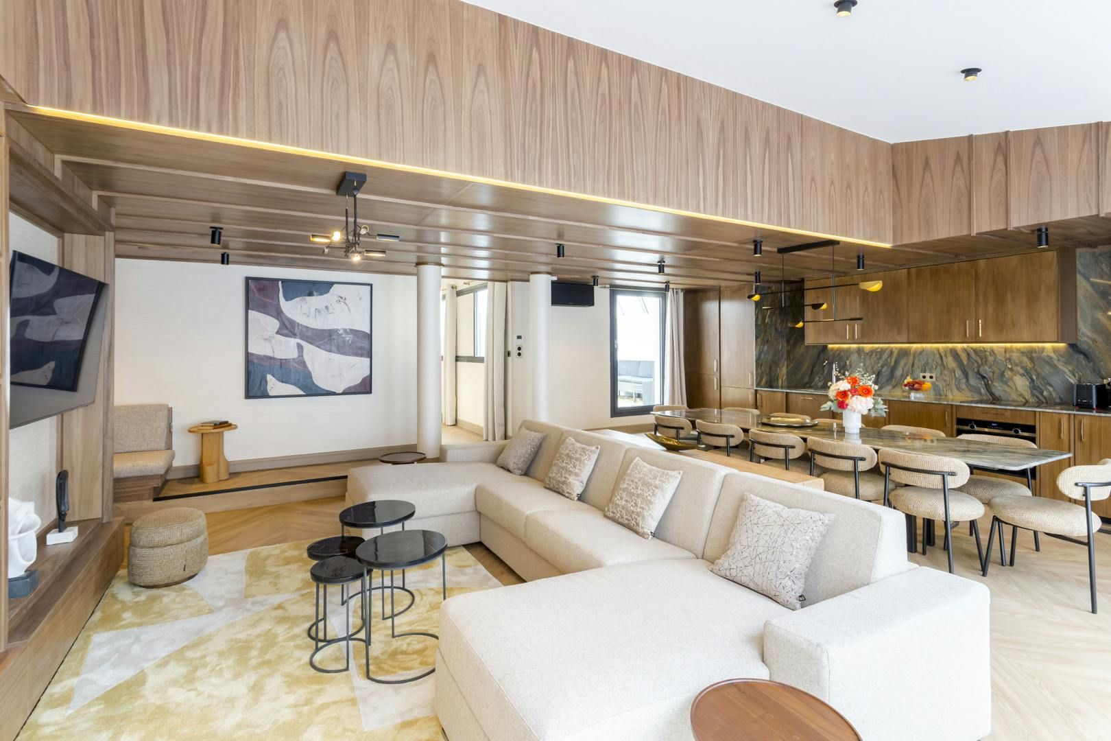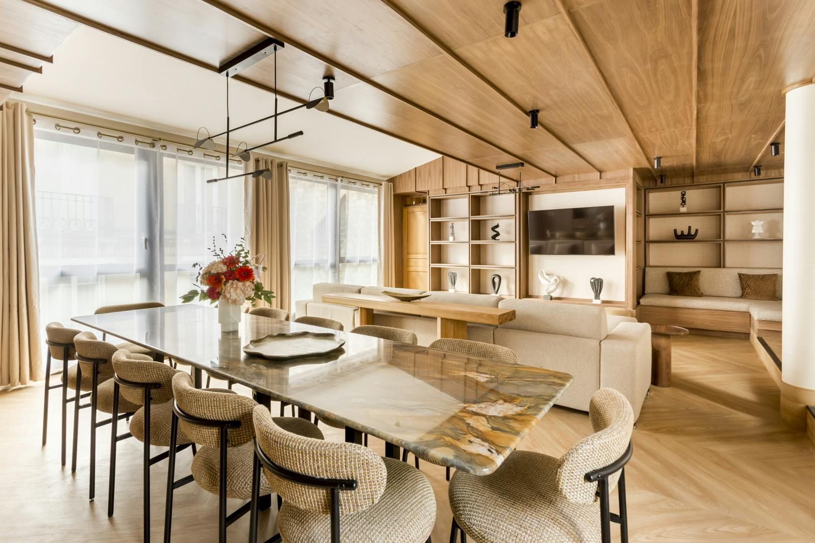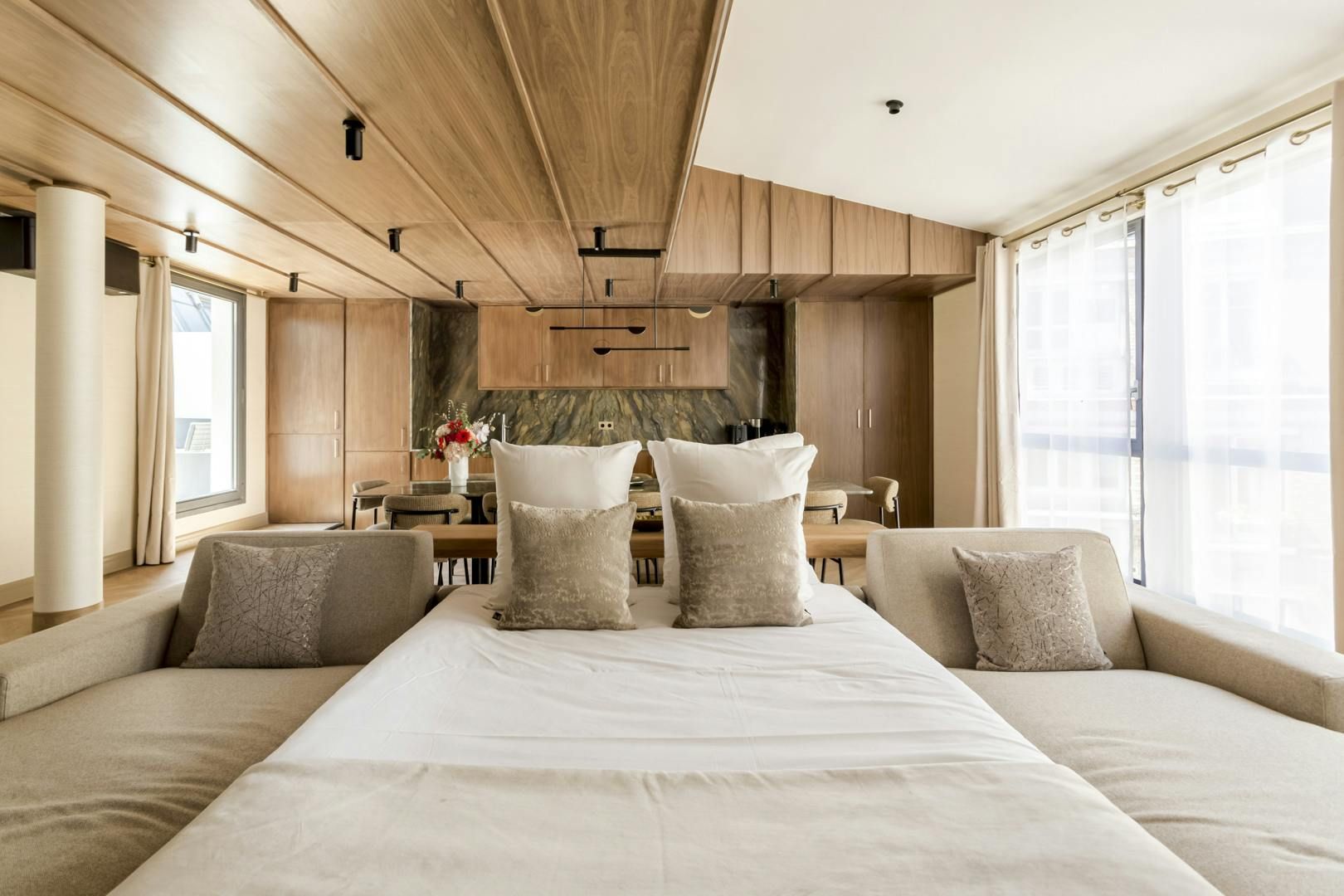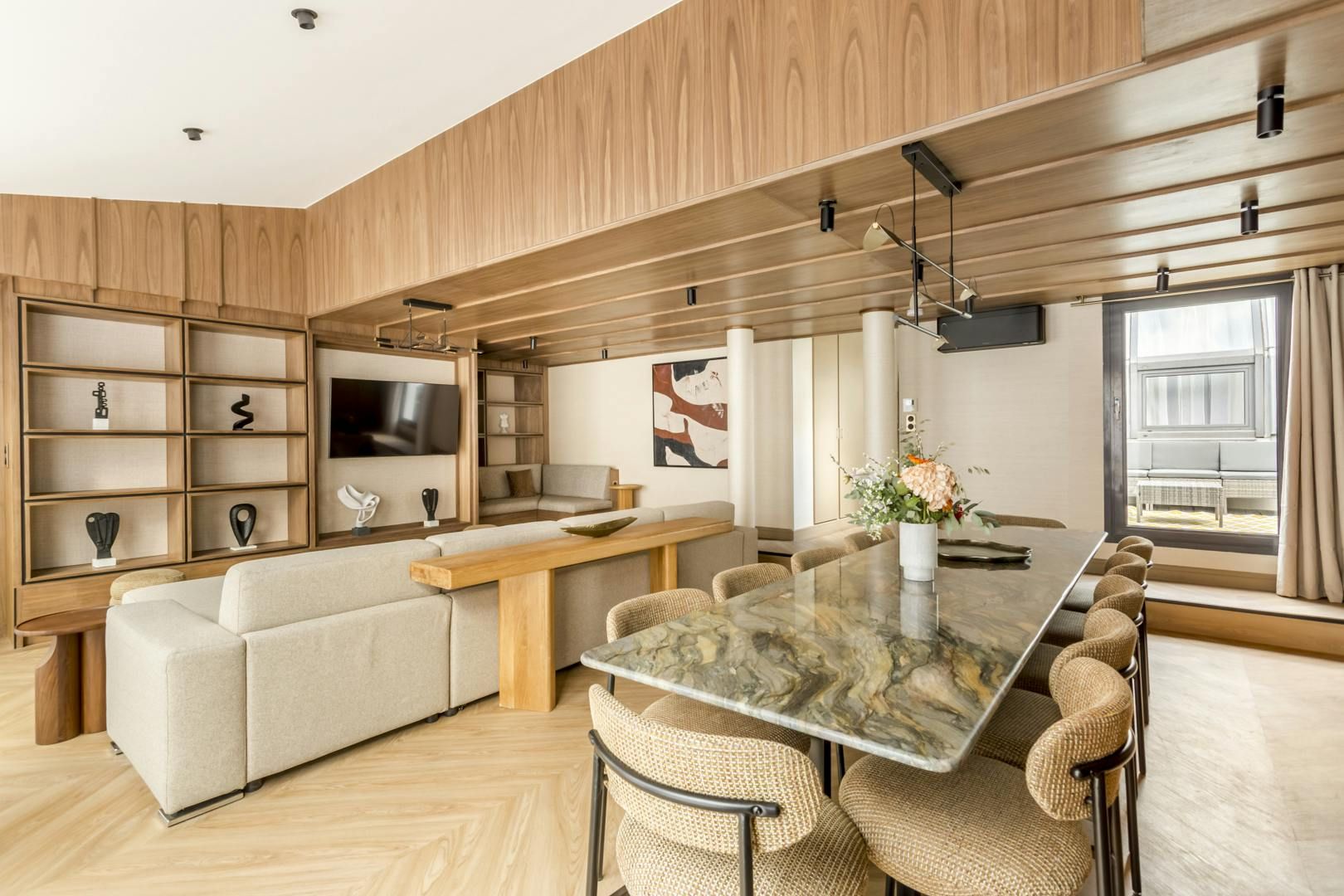 Located in the 15th arrondissement, with key sights like the Eiffel Tower within walking distance, this apartment is ideal for groups of friends, couples and families. With its own rooftop terrace – a true mark of luxury in Paris – and a dining table for twelve guests, this property was designed to host group gatherings. That being said, if staying in isn't really your thing, no worries. In this part of the city, the streets are bustling with authentic bistros, boutiques and cafes ripe for people-watching.