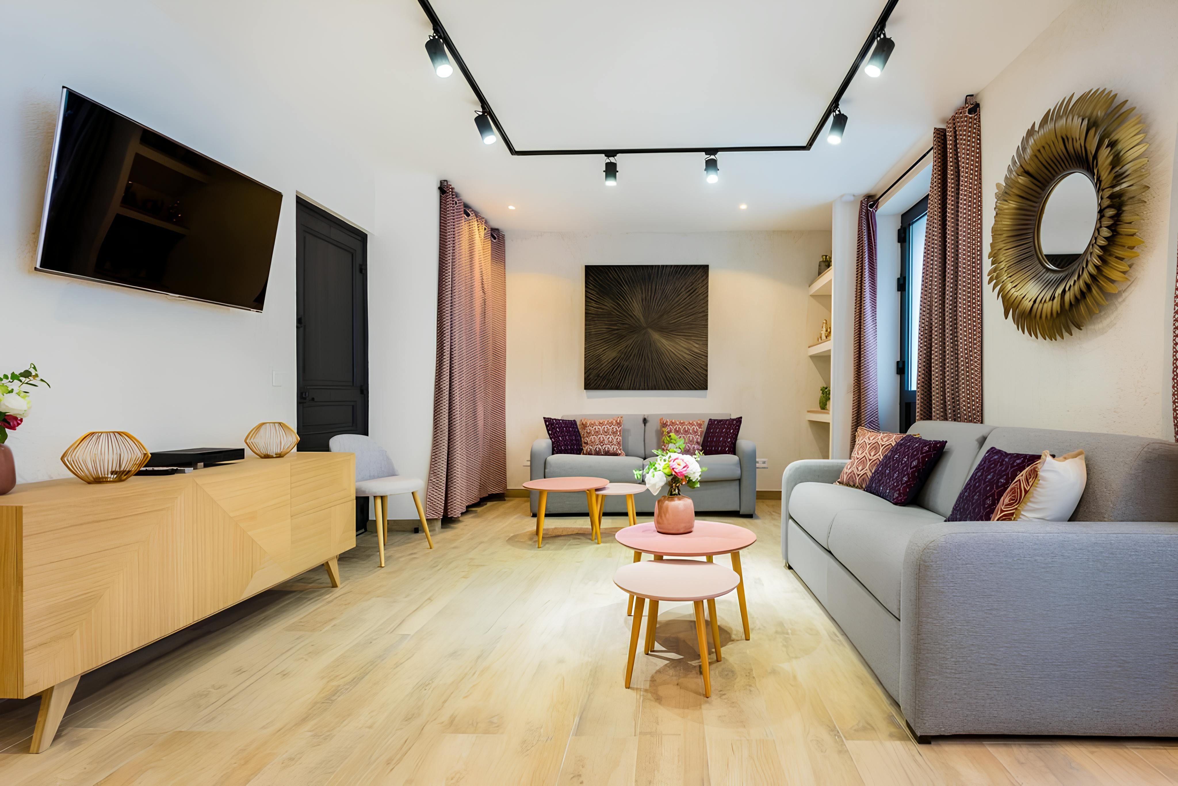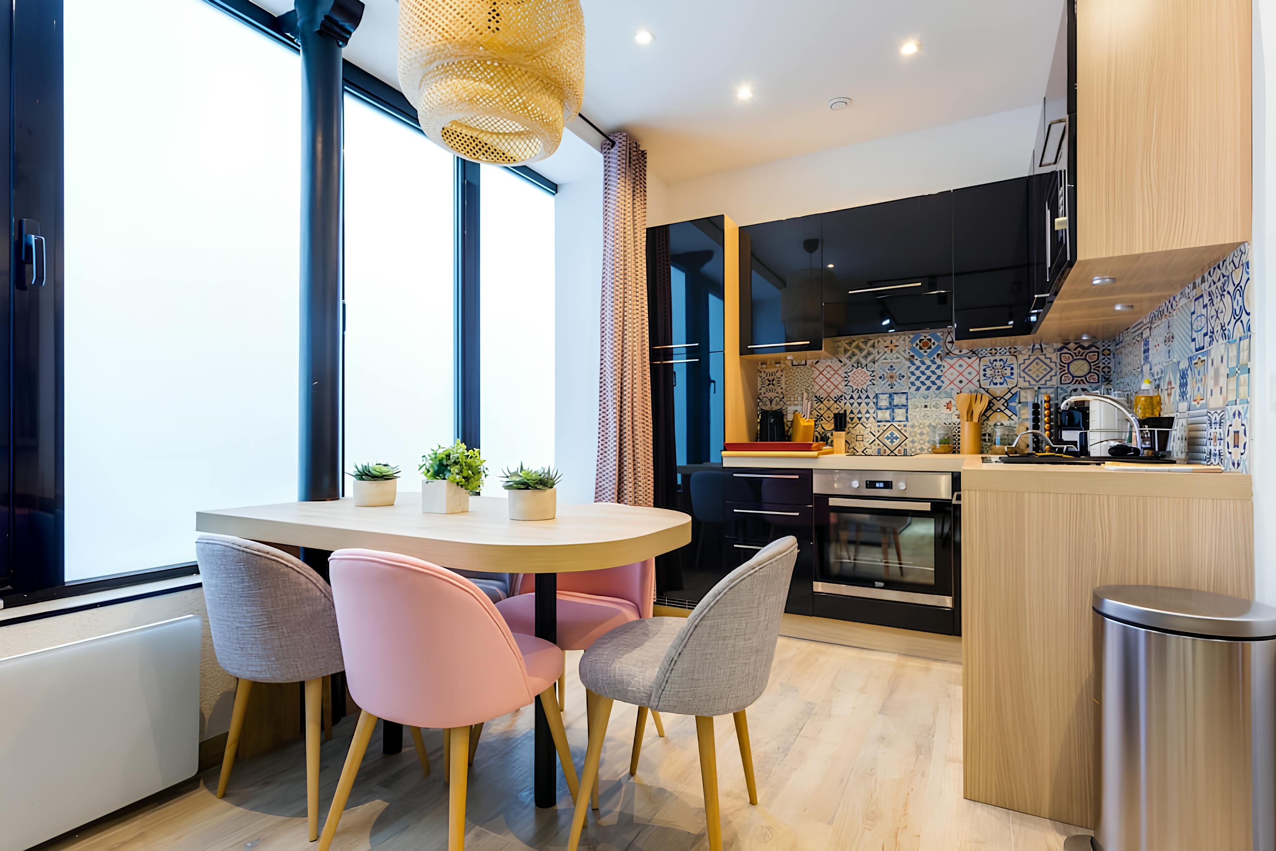 Located in the 20th arrondissement, this apartment makes it easy to experience the magic of Paris. You can stroll to local restaurants, cafes and shops. There are great public transport links with the nearest metro stop and bus lines just a short walk away. Back at home, the living room is perfect for cosy gatherings or catch up work sessions. At full occupancy, four guests will be sleeping on the sofa beds but this is a great option for families travelling with kids.
