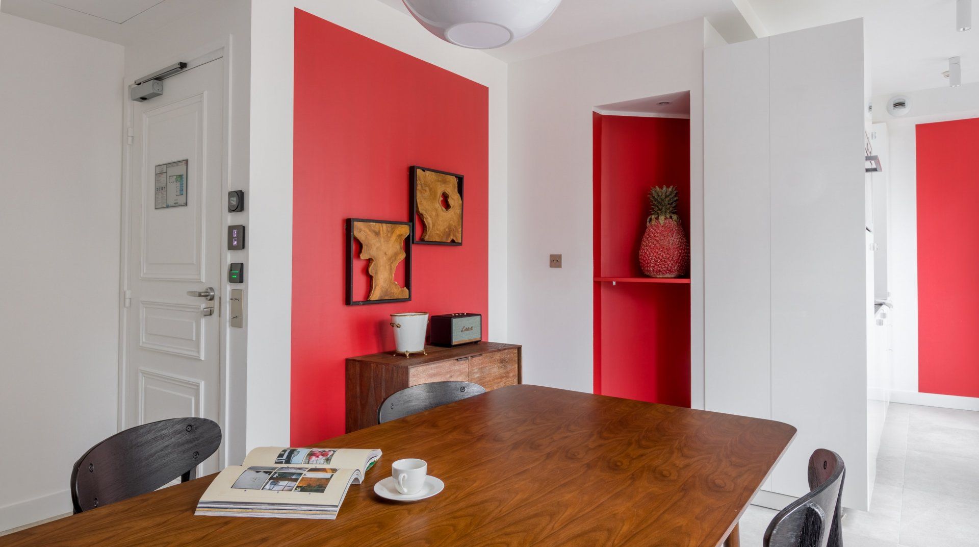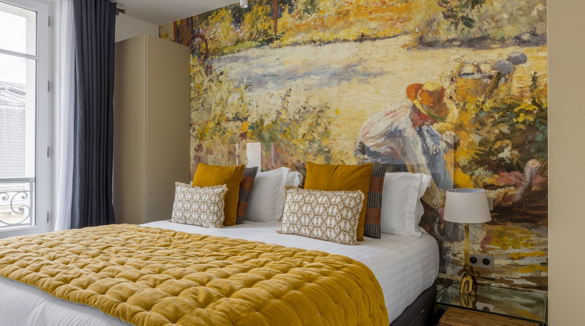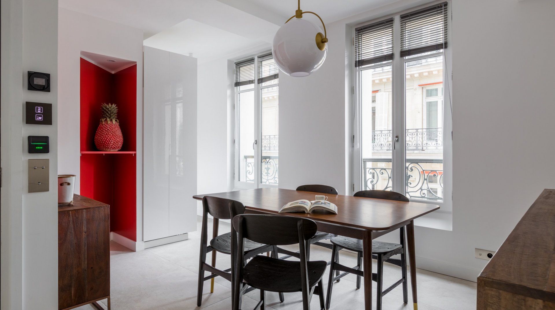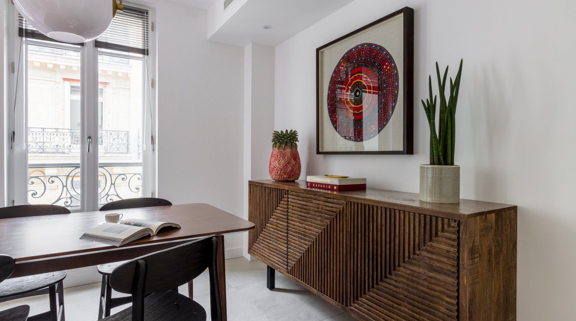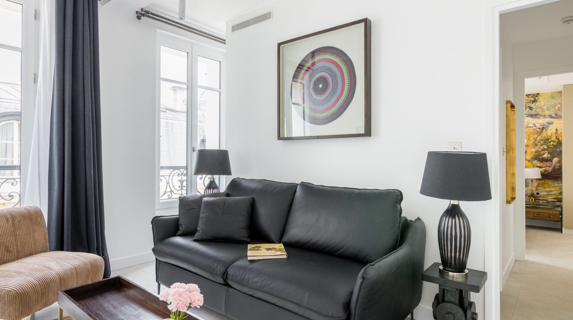 Set back slightly off the iconic Champs-Élysées, this arty home marries style and practicality – a pair that match so seemingly well together across different aspects of the Parisian way of living. Adorned with unique artwork, lamp fixtures and colour schemes, you'll admire the tasteful simplicity that brings enough to the eye without cluttering the space. As expected in Paris, large French windows fill the room with natural light and grant you a view of the street, lined with the classic Haussman style buildings. Dark wooden furniture and plush lounge seating areas (both private and communal) will ensure you have somewhere to sip your morning espresso before heading out for a fun-filled day. With endless shops and restaurants to discover locally, you'll be spoilt for choice when it comes to luxury fashion and international cuisine in particular. If art, history and culture is your vibe, then you're in the right place. Take your pick from some of the greatest museums in the world, including the Palais de Tokyo – only a ten-minute walk away.