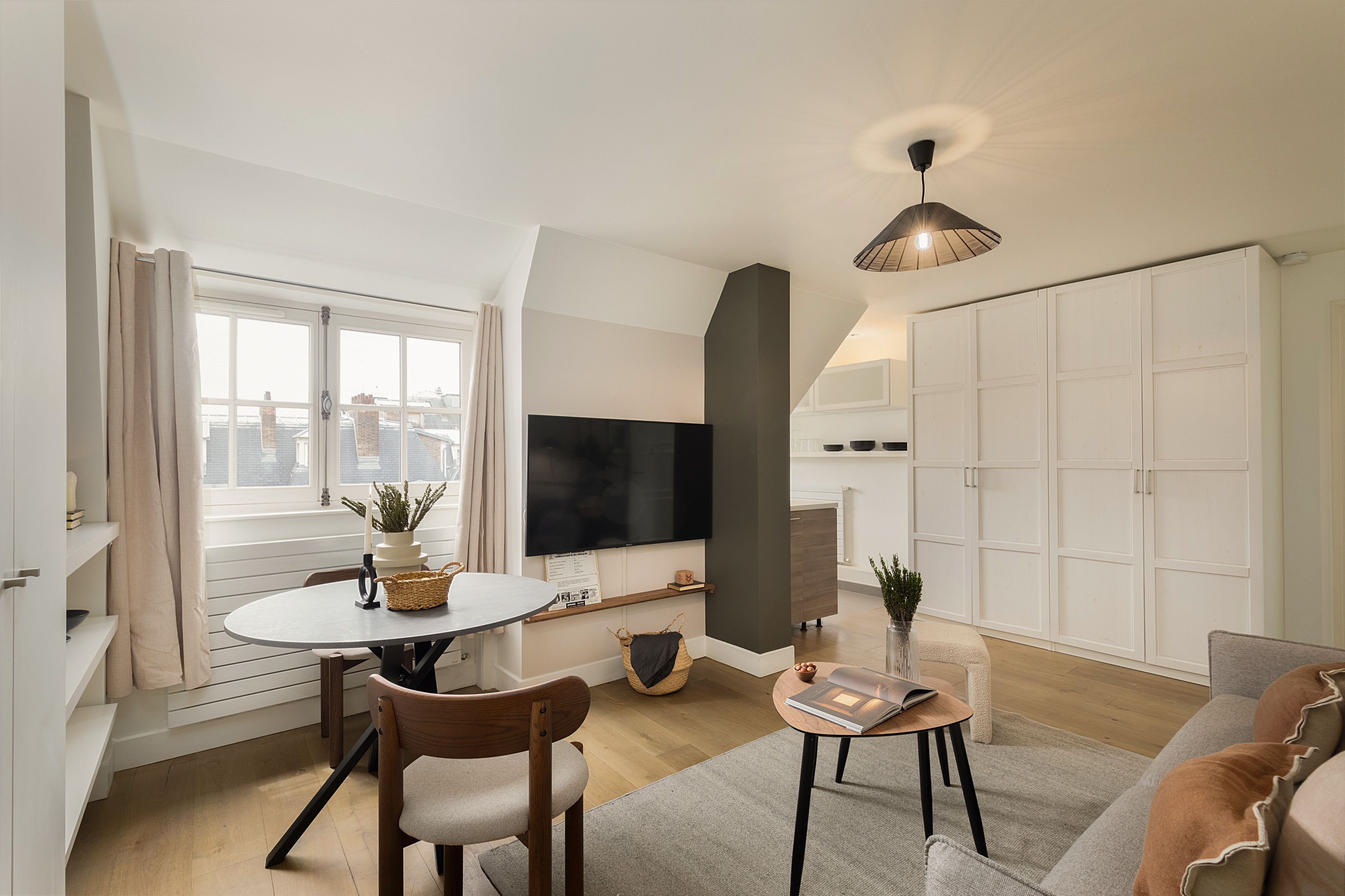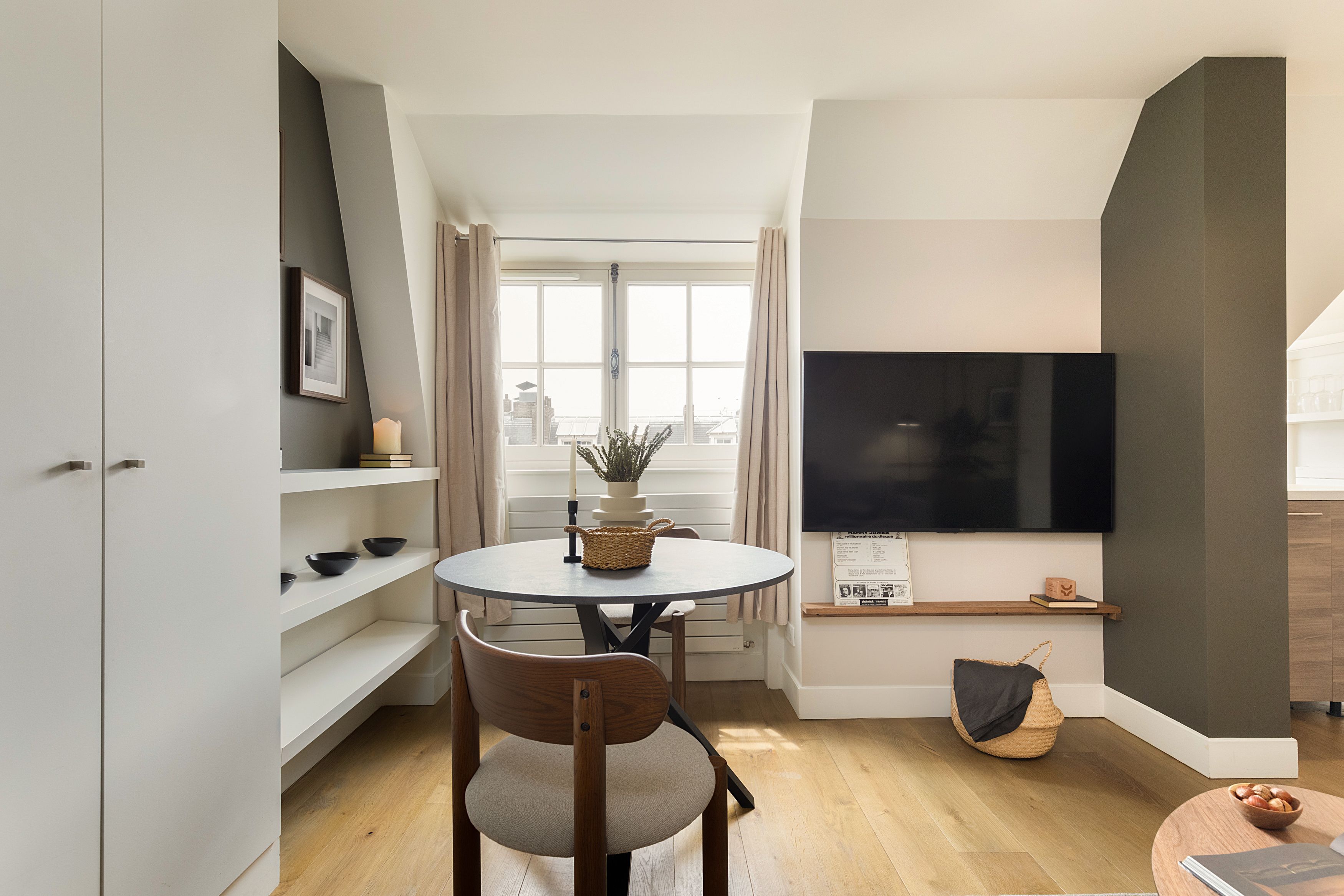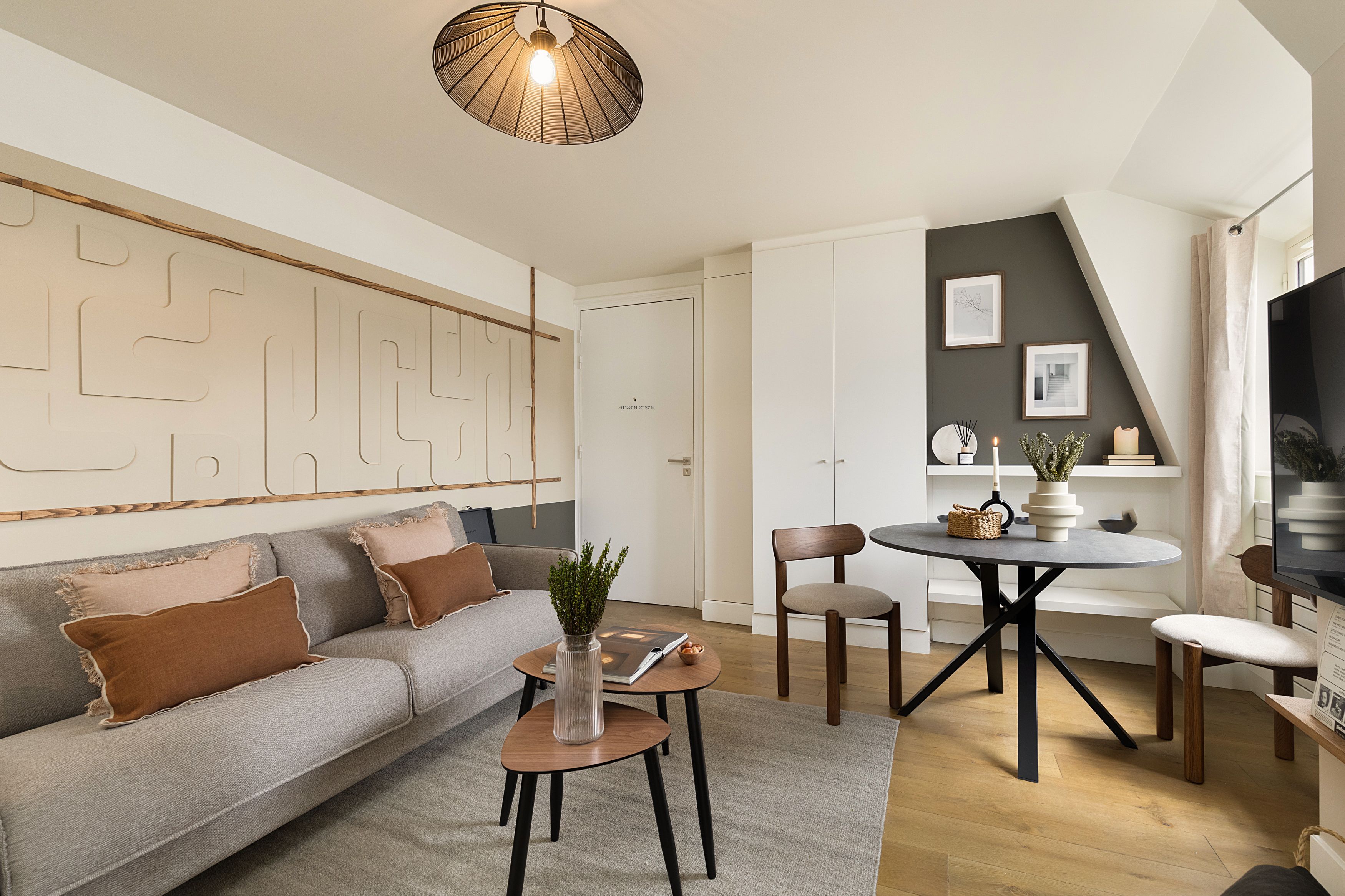 Amidst the elegant streets of Neuilly-sur-Seine, this apartment offers a calm city sanctuary. You’ll be welcomed by soft tones, stylish furnishings and all the home comforts you could need to settle in and unwind. There’s a record player, a coffee maker and a sofa bed in the living room for one guest. Plus, you can stroll to Bois de Boulogne for refreshing walks and there’s a great selection of restaurants and cafes within easy reach. Plus, there are great public transport links providing connections with the rest of Paris.