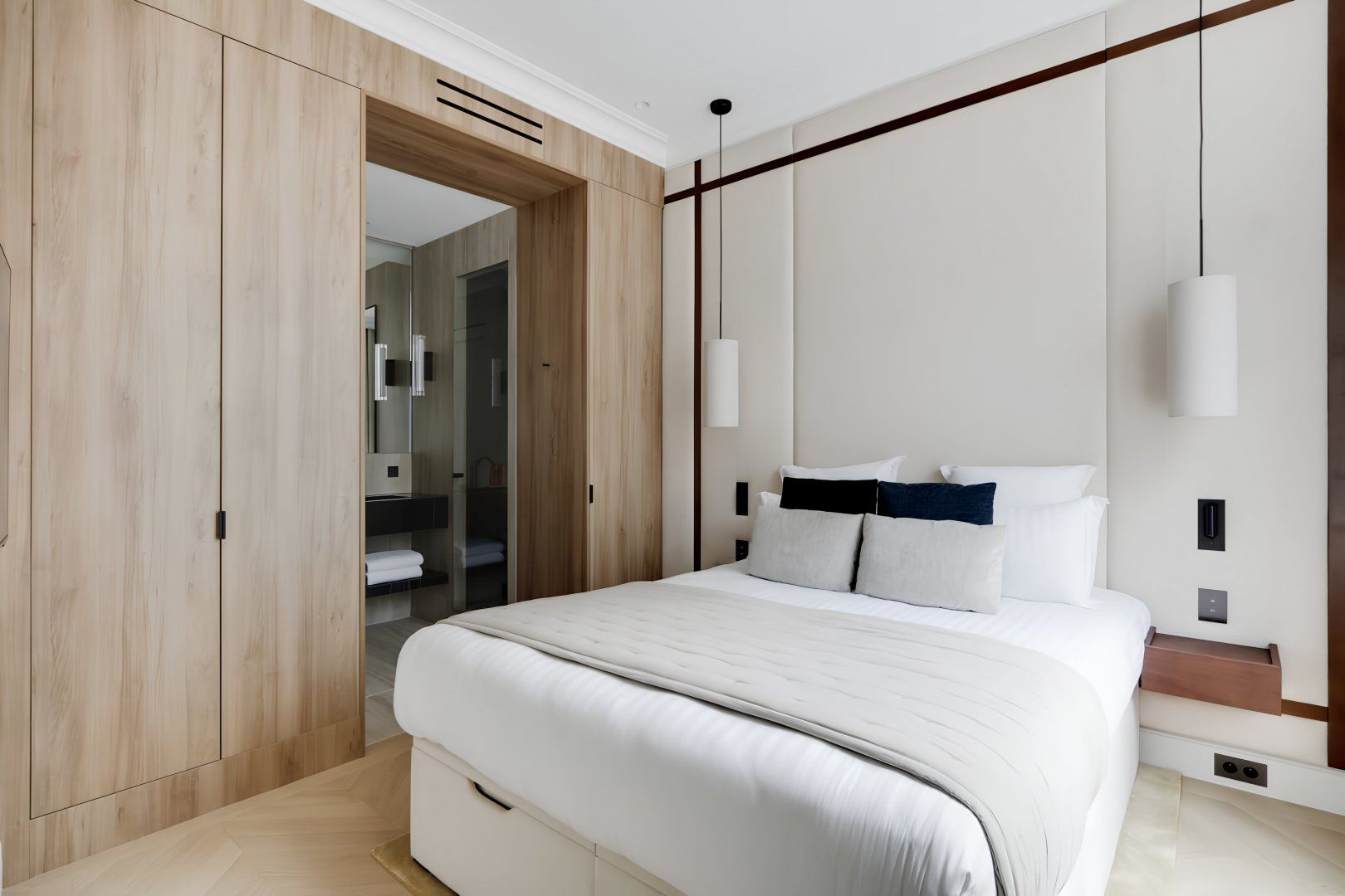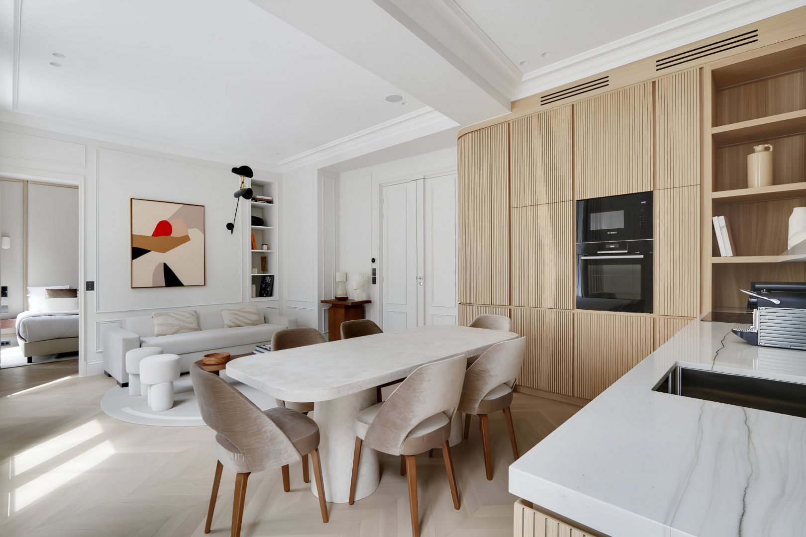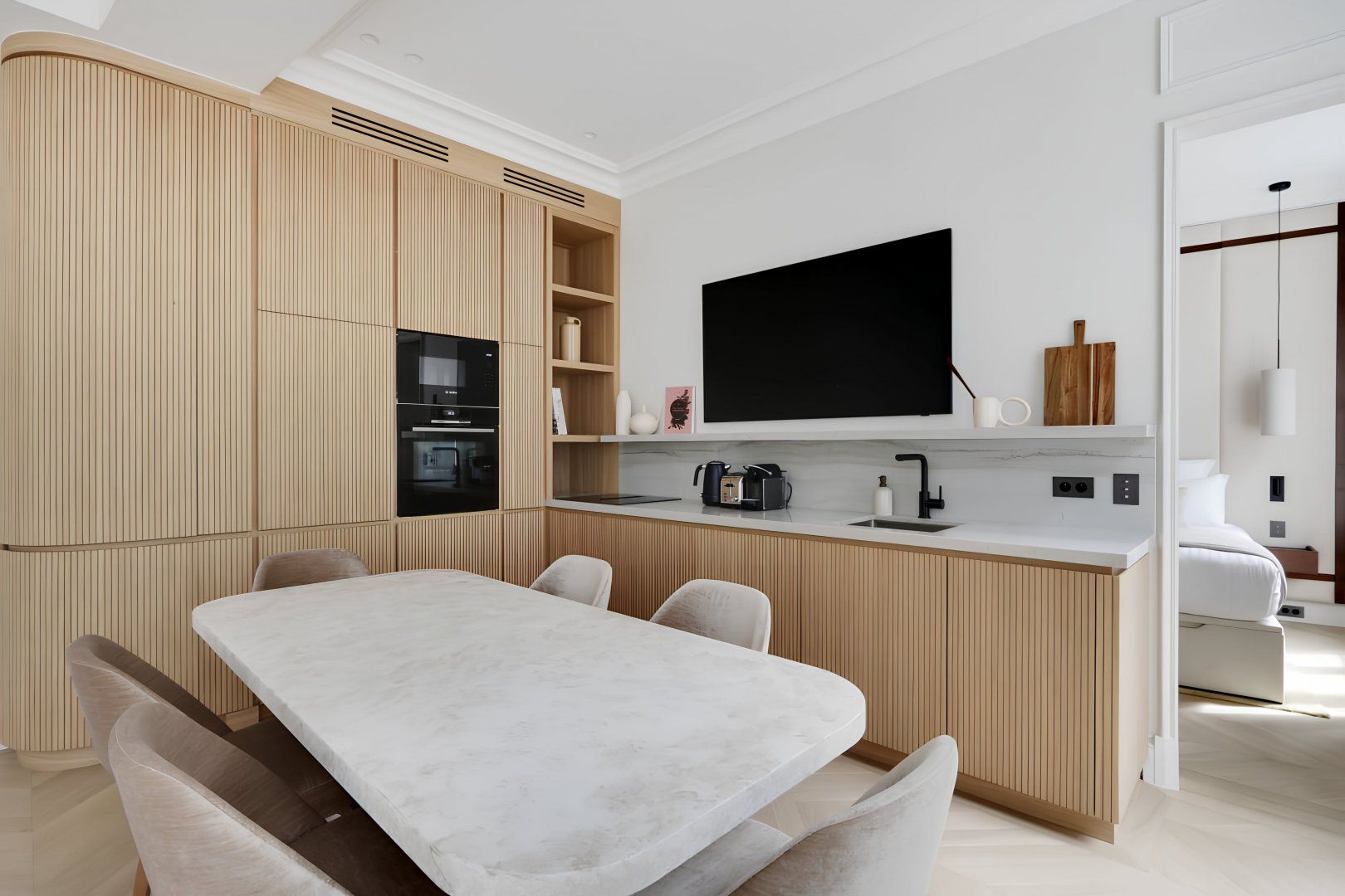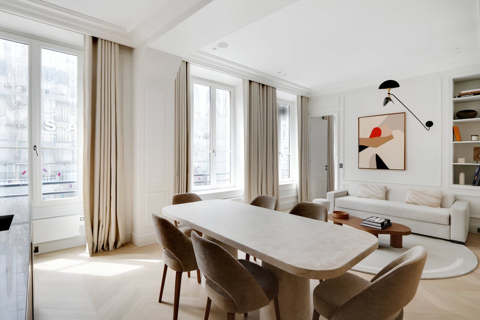 This apartment welcomes you to a calm sanctuary in the heart of the city. Located in a traditional Haussmann building, the rooms perfectly embody classic Parisian style. You will also find plenty of socialising space across the living and dining room, while the bedrooms bring ease and comfort to daily living. Housekeeping is included in your stay and there is a concierge on hand to organise extras like private chefs and grocery deliveries. There is no private parking here, but you will find shops, galleries and restaurants all within easy walking distance.