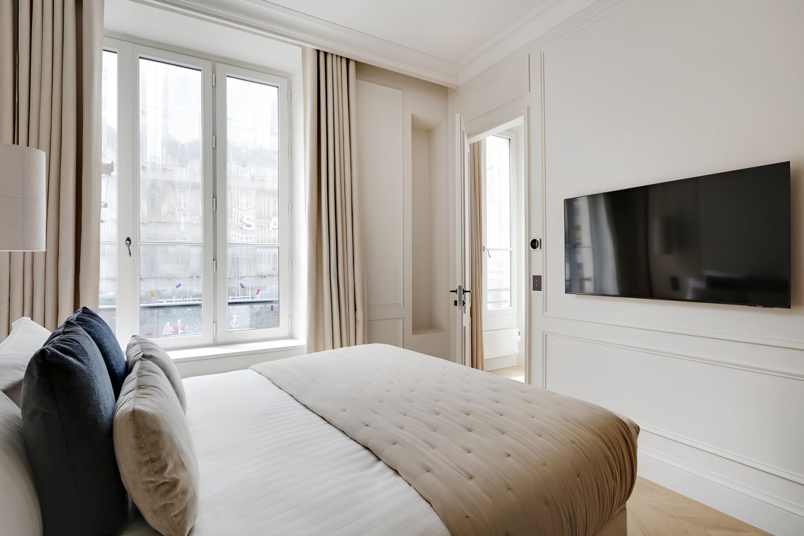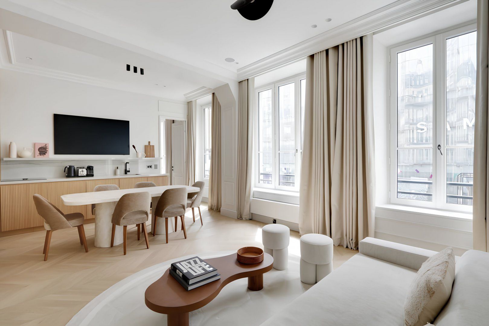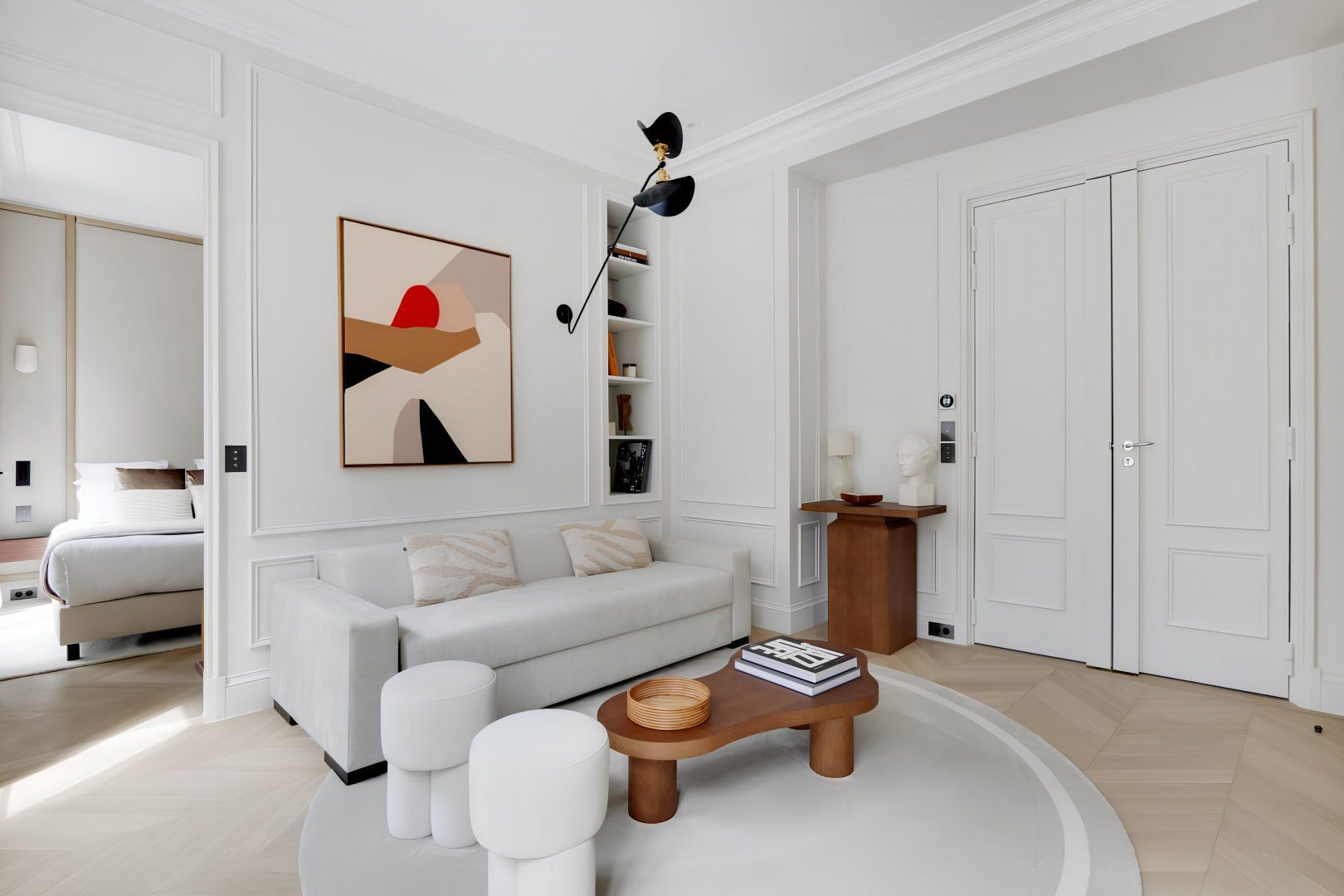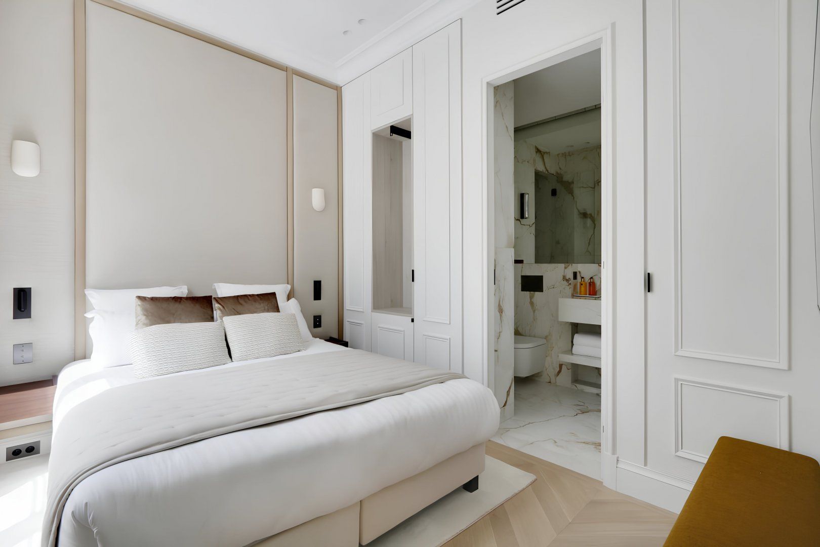 This apartment welcomes you to a calm sanctuary in the heart of the city. Located in a traditional Haussmann building, the rooms perfectly embody classic Parisian style. You will also find plenty of socialising space across the living and dining room, while the bedrooms bring ease and comfort to daily living. Housekeeping is included in your stay and there is a concierge on hand to organise extras like private chefs and grocery deliveries. There is no private parking here, but you will find shops, galleries and restaurants all within easy walking distance.