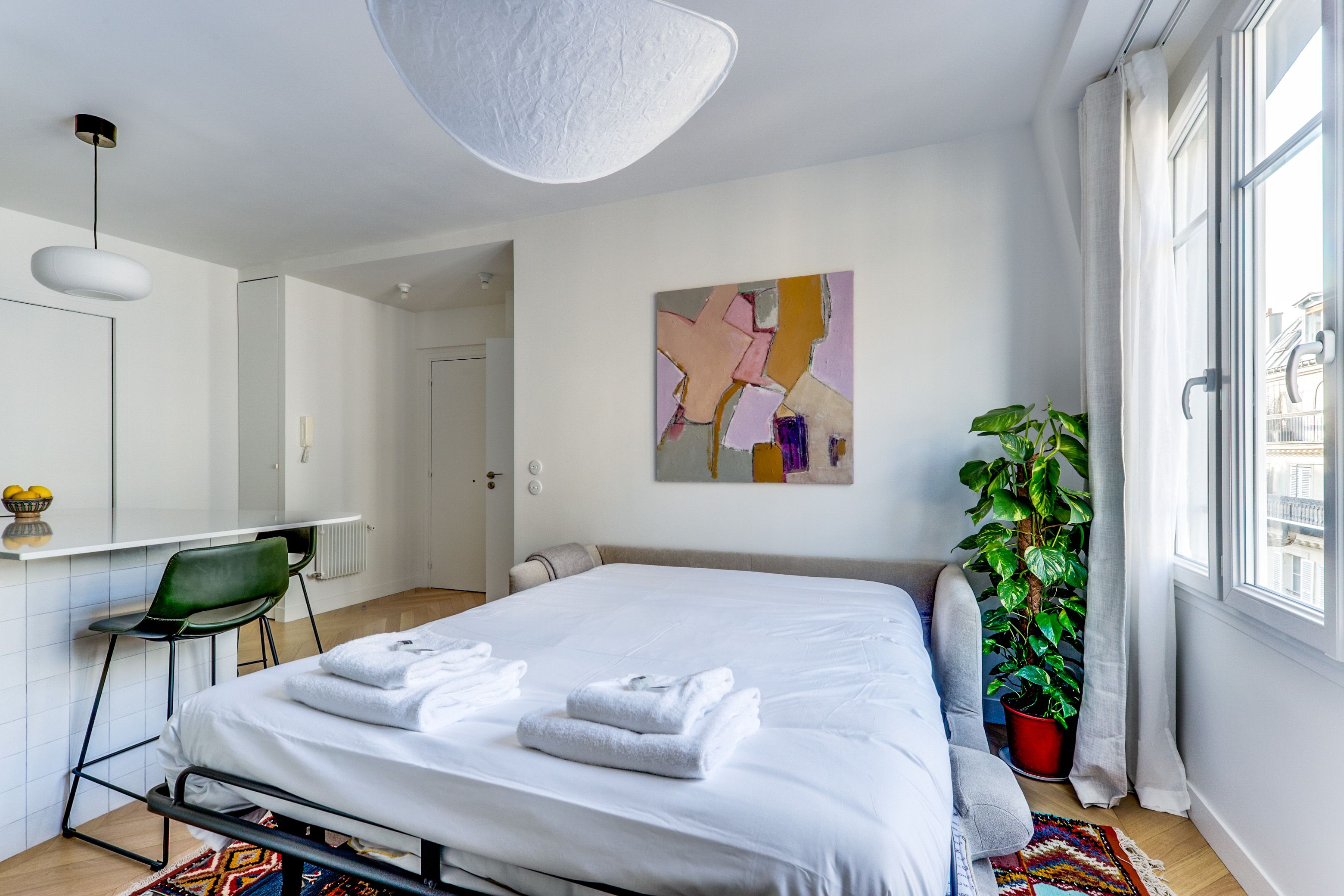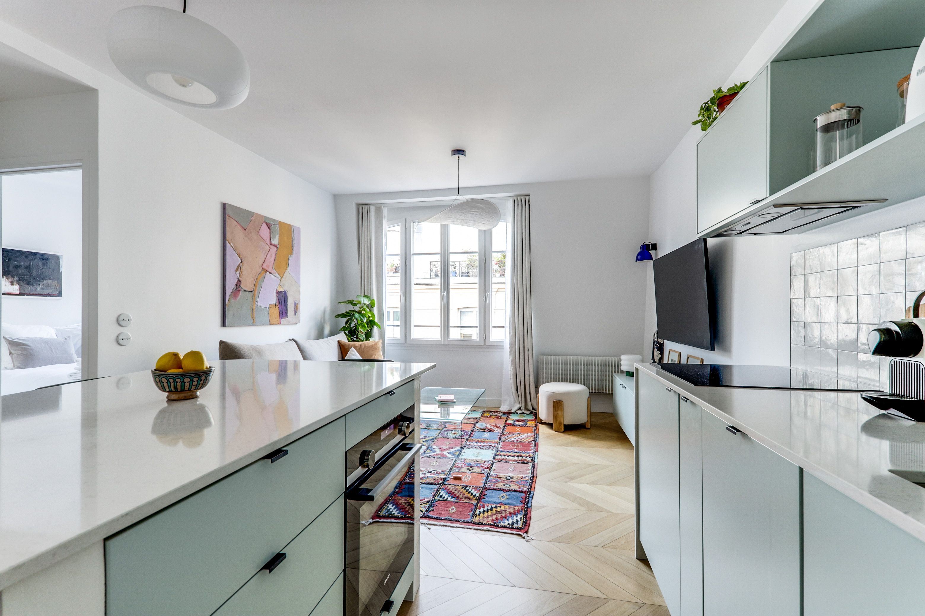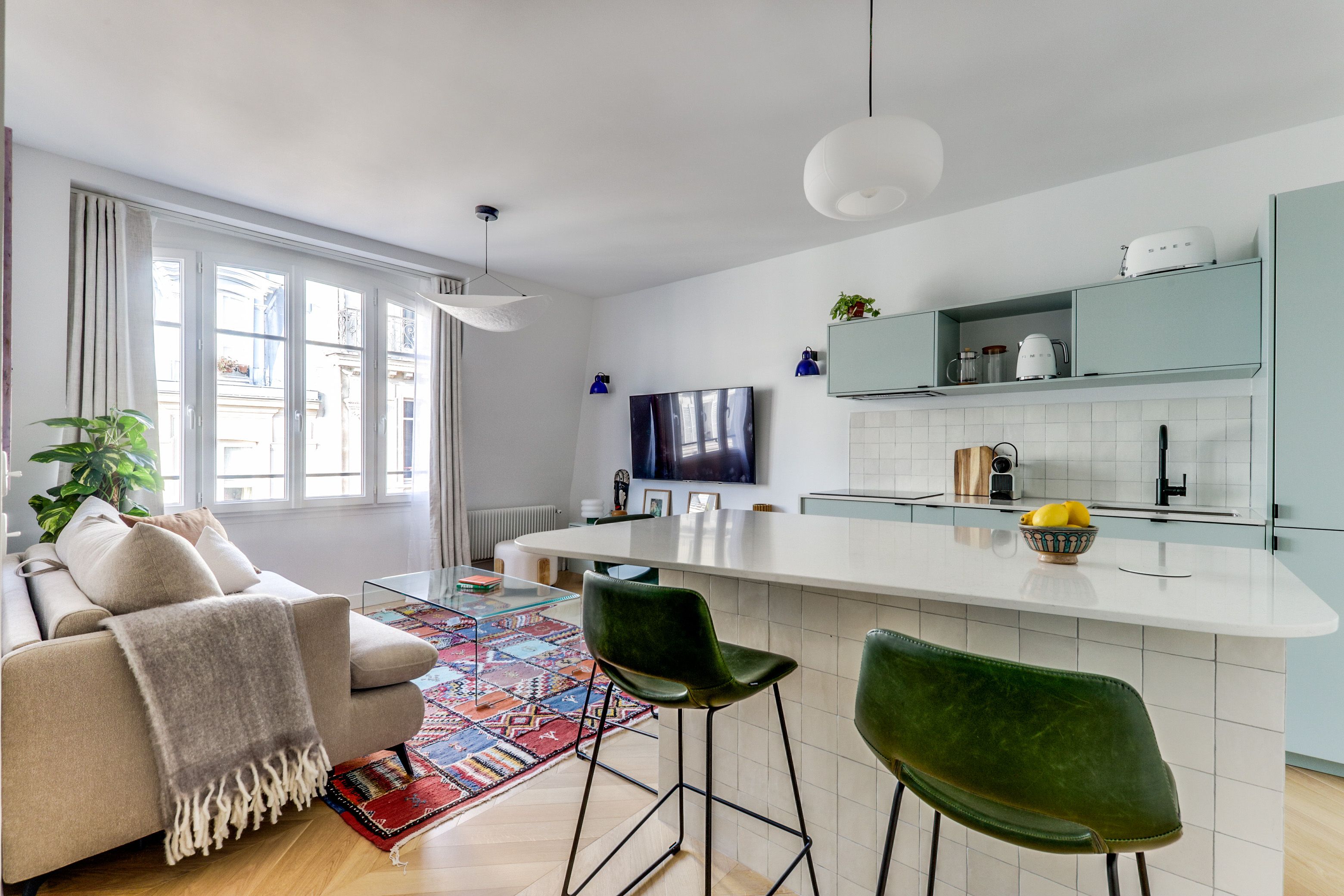 South Pigalle is a lively and artsy enclave nestled between Opéra and Montmartre. With metro stations nearby and plenty of restaurants, bars, and shops within walking distance, it makes an excellent base for both seasoned visitors and first-time tourists. The apartment itself is also a chic place to call home. We love the amount of light in the living area, as well as the character features like arched windows and herringbone floors. Just keep in mind that two guests will sleep on a sofa bed – a worthwhile compromise, given the central location.