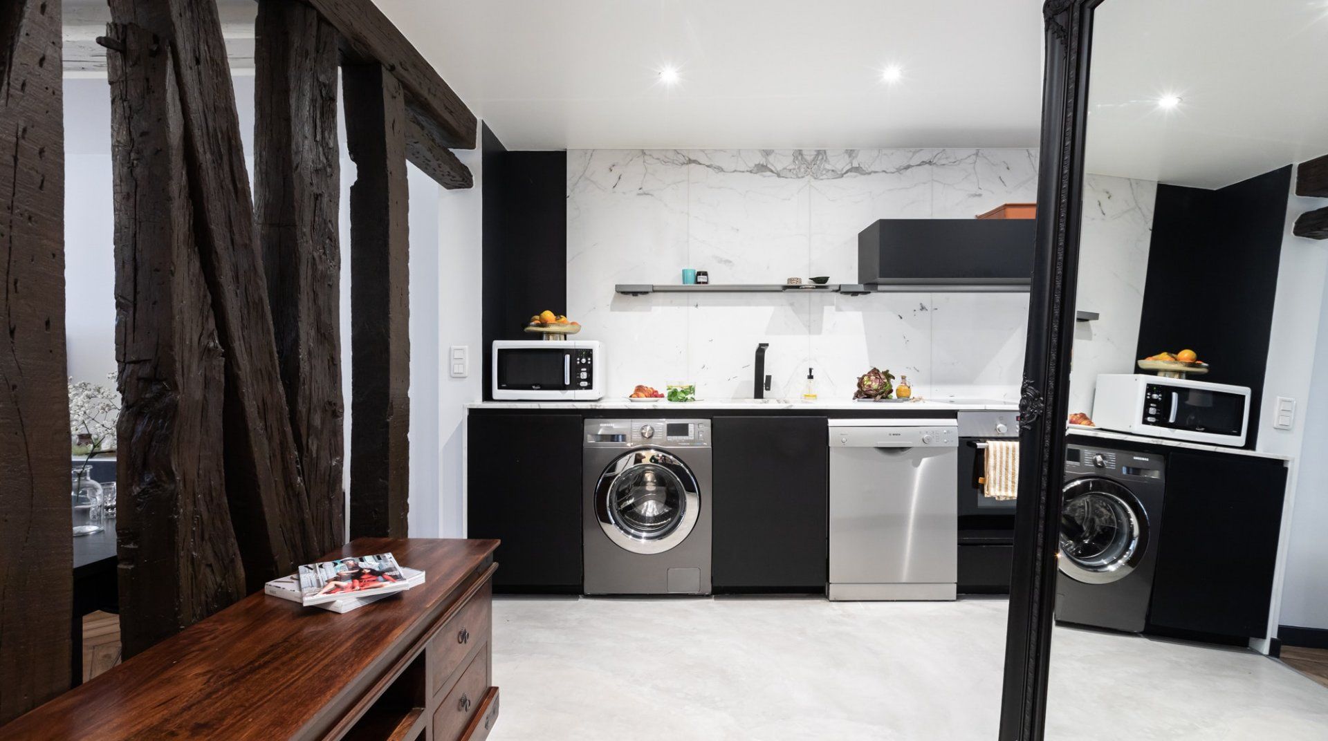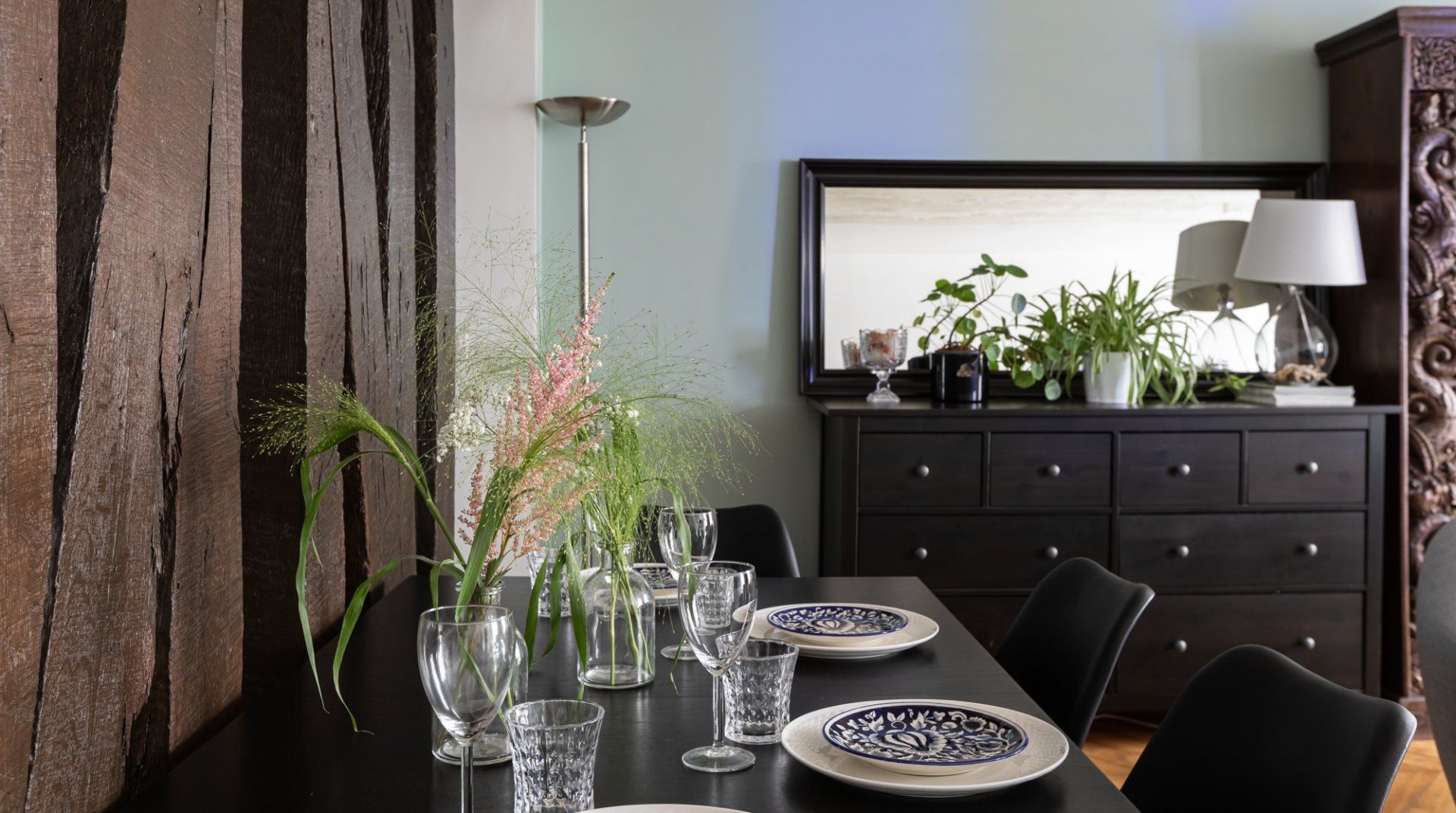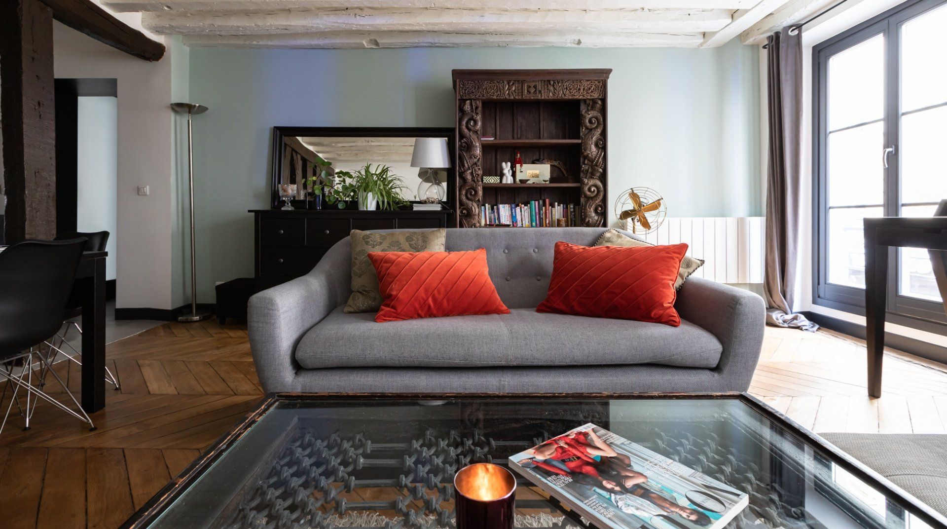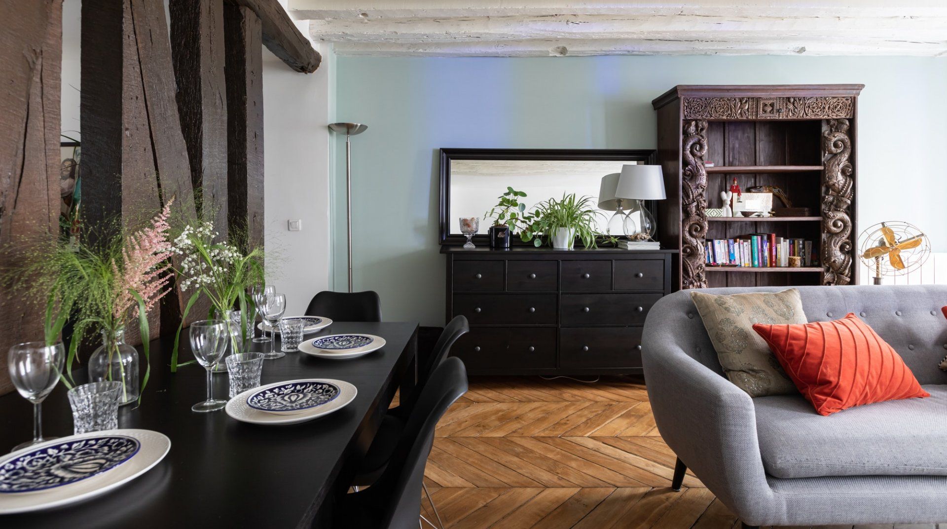 This home is set within an exclusive central spot, in what's informally known as Paris' Little Tokyo – a hub of Japanese cuisine, but also offering a variety of specialty stores and tea rooms. The home is cosy and welcoming, with lots of darker tones and exposed original beams. There is a nod to Eastern design too, with a few intricately carved pieces with heaps of character. It would suit a small family of three looking for a homely space in the heart of central Paris.