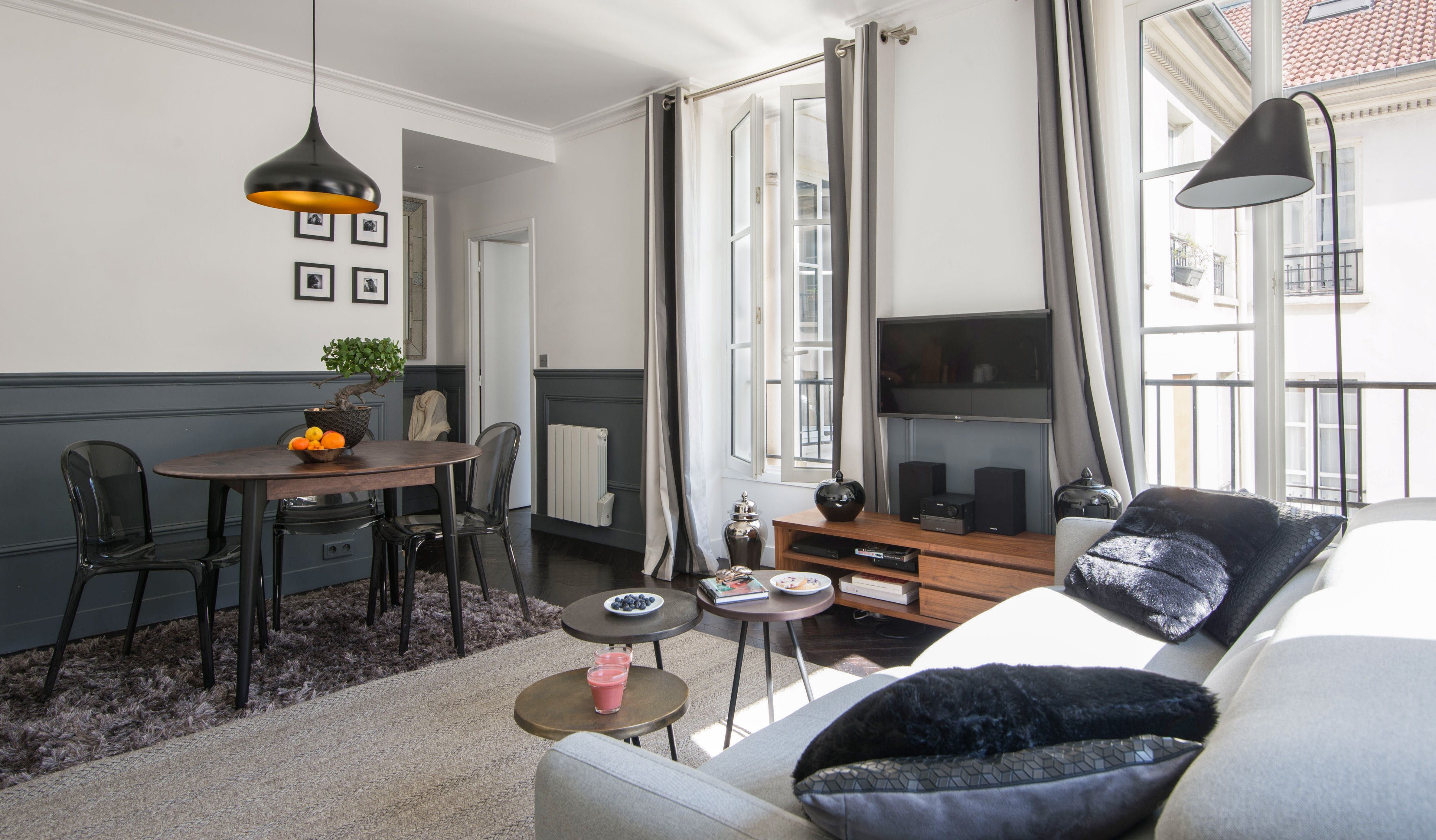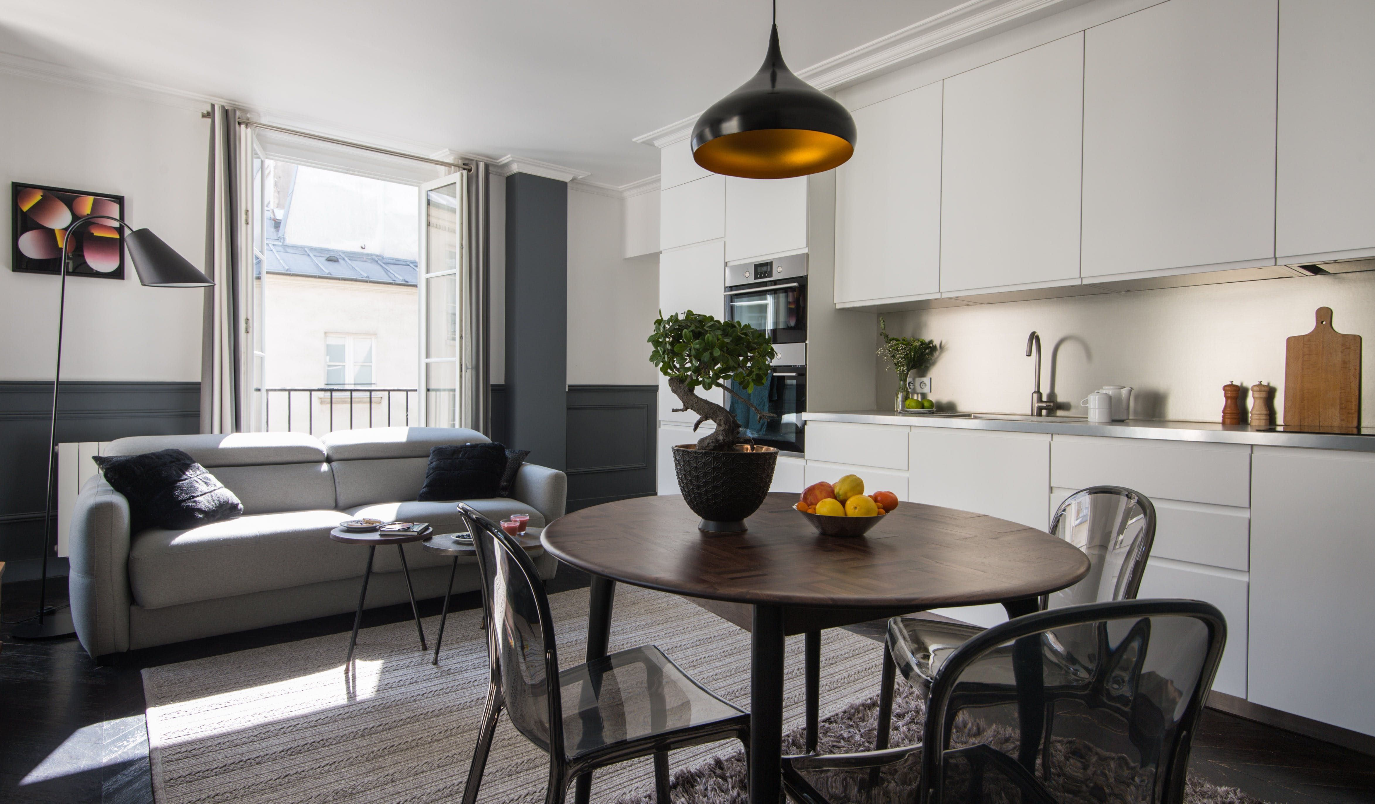 If you're coming to Paris for the first time, a stay in Le Marais is highly recommended. The neighbourhood has the je ne sais quoi that people search for when they visit the French capital — winding cobbled streets, a wide choice of art galleries and plenty of late-night bars and cafes in which to enjoy a glass of red on a street-side table. This apartment is found in the heart of the area and despite the ceaseless activity happening at ground level, the space is as calm as they come. The interior design is effortlessly chic, from the modern palette of greys and velvet cushions on the plush sofa to the minimalist kitchen finished in white. We appreciated the Juliet balcony too, which will be lovely to open up and gaze out of on summer days.