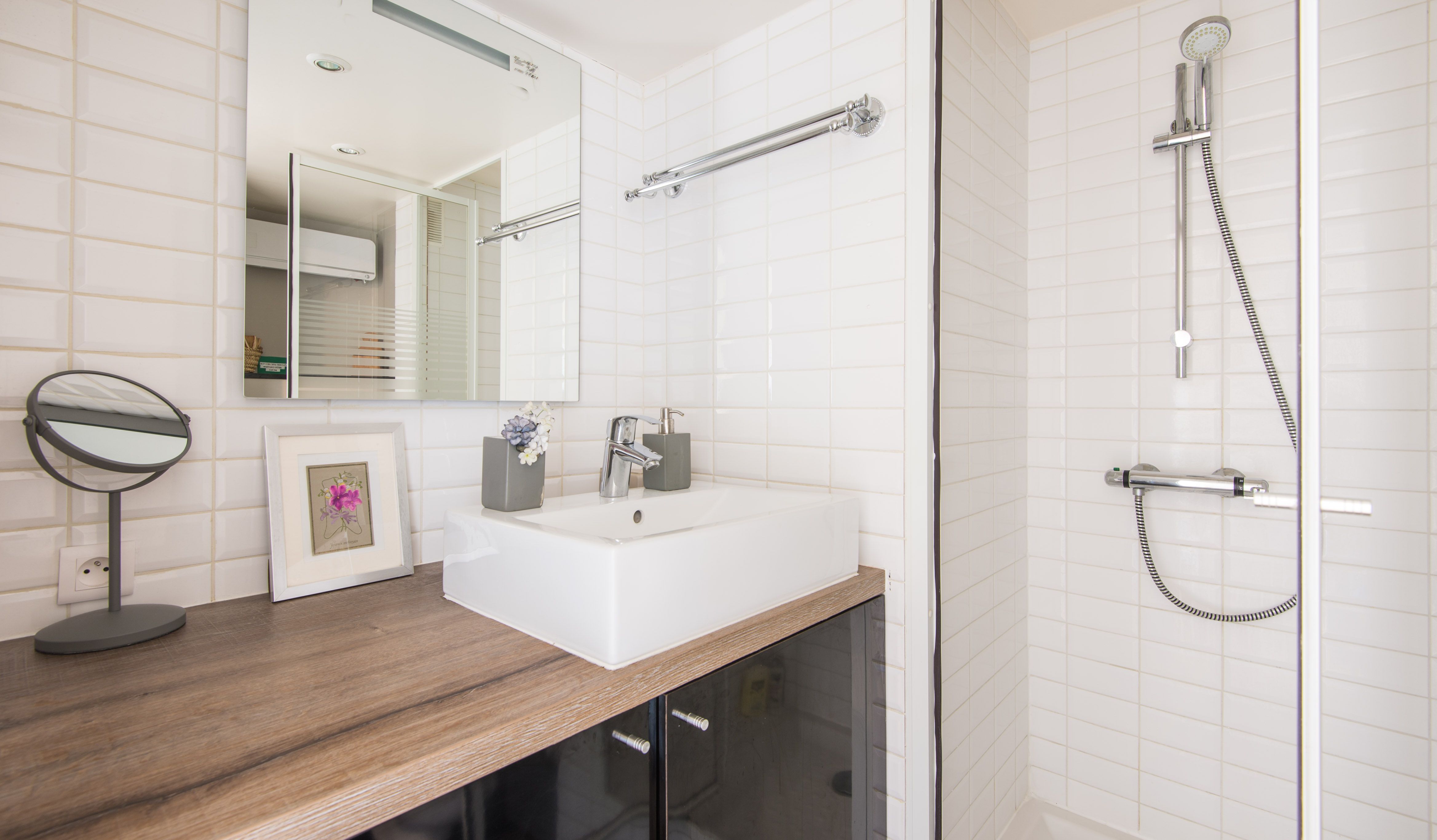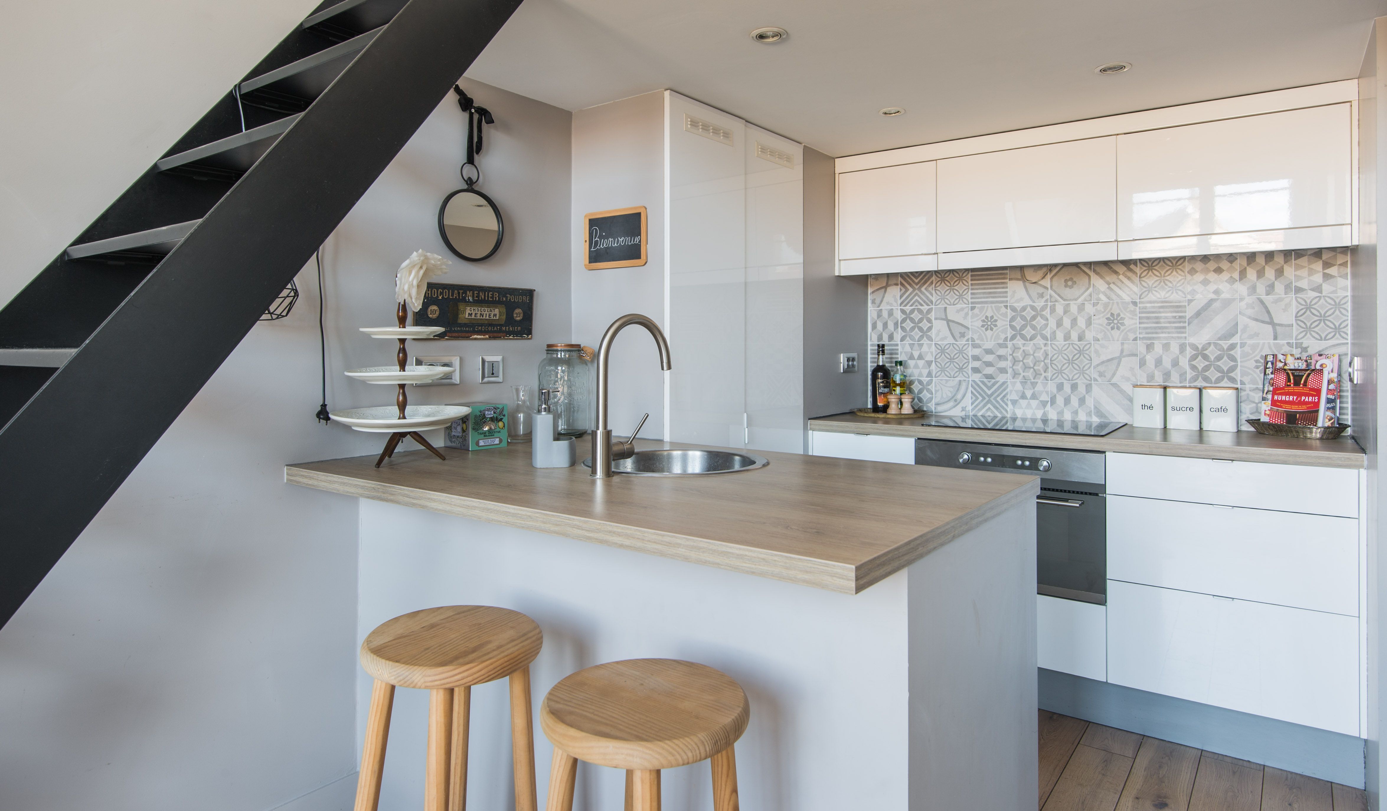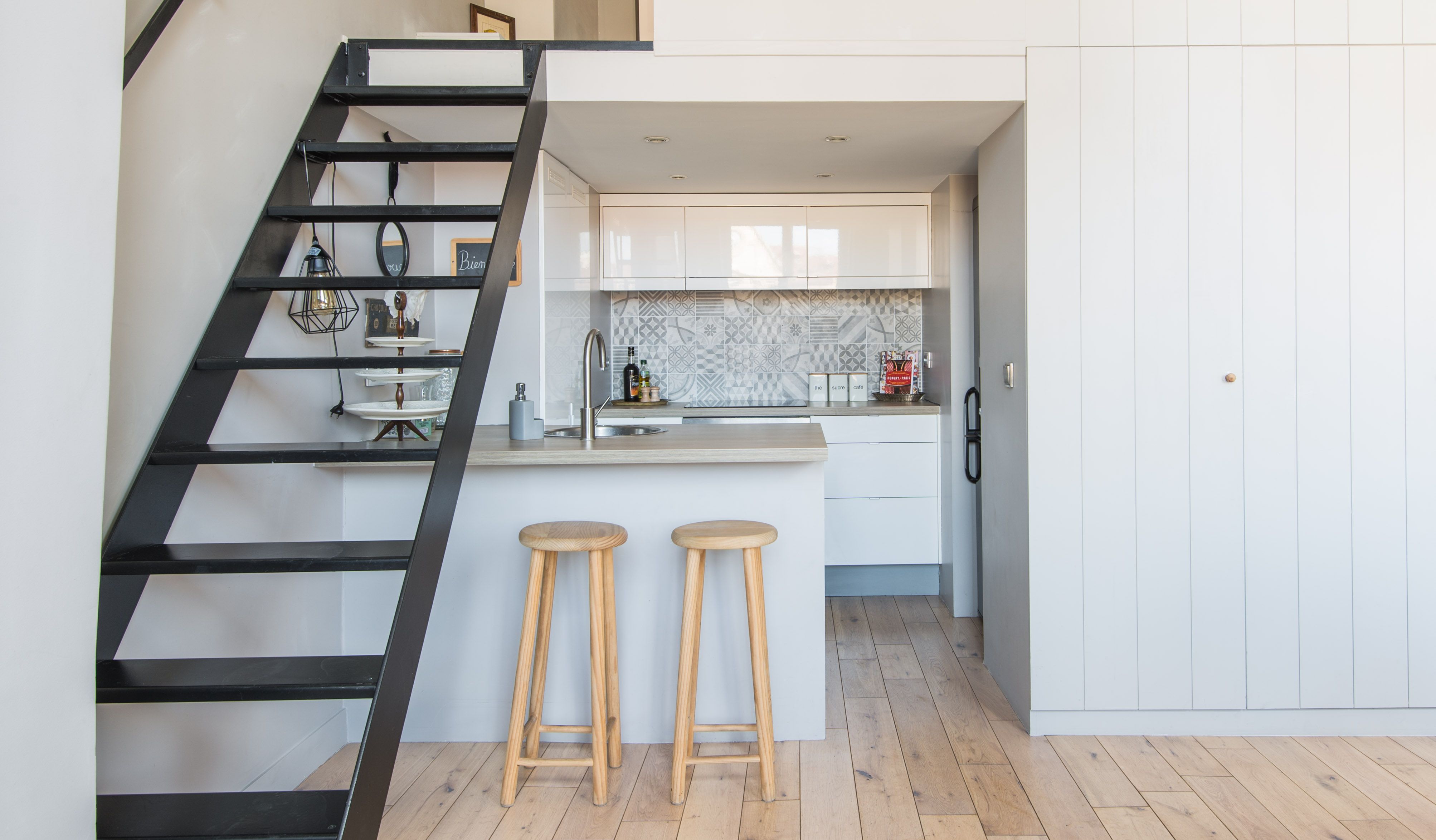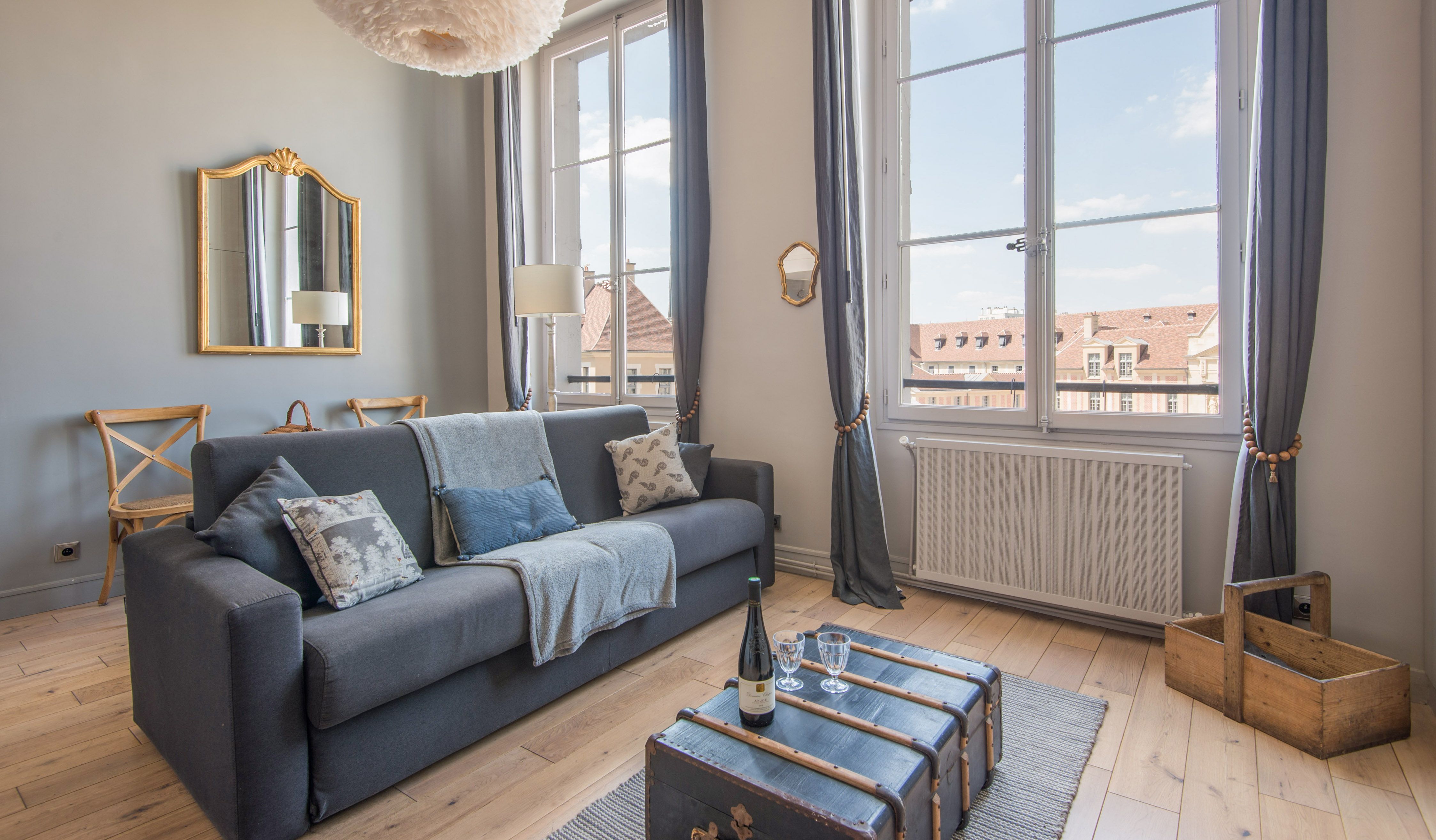 Located in the middle of the trendy Rive Gauche, this beautiful loft studio feels effortlessly chic and wonderfully Parisian. With its honey-hewed wood floors, tall ceilings, soft blue palette, and gold framed mirror, there's an air of regal sumptuousness here that feels oh so apt in its Saint-Germain-des-Prés neighbourhood. You'll instantly be dazzled by the floor-to-ceiling windows offering views of the 17th-century Hospice of Laennec and the top of the Eiffel Tower, which shimmers like glittering diamonds when the sun sets over the city. Take in the views from the plump blue sofa, enjoying your morning coffee while perusing the many Paris guide books and French cookbooks your host has provided before setting off for a day of exploring. You've got countless sights and monuments within easy reach on foot, including Rue du Bac (ten minutes away), the Luxembourg Gardens and Les Deux Magots (thirteen minutes), the Musée d'Orsay (twenty minutes) and the Eiffel Tower (thirty minutes). Meanwhile, the city's historic Le Bon Marché department store is right on your doorstep, as well as countless gourmet food shops and pâtisseries. After a day of sightseeing, come back home for a glass of wine and a meal at home before curling up on the sofa with one of the Paris-themed DVDs provided. Then climb the stairs up to your cosy mezzanine bedroom for a dreamy night's sleep.